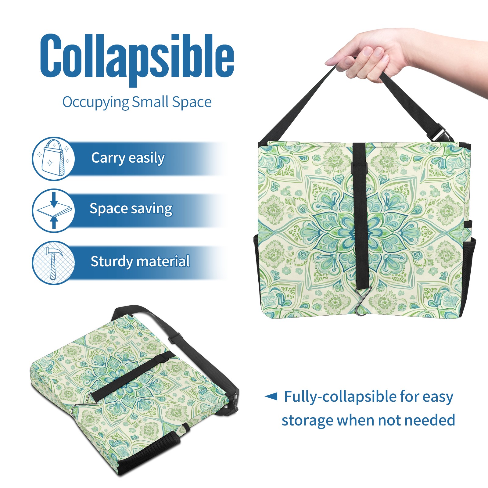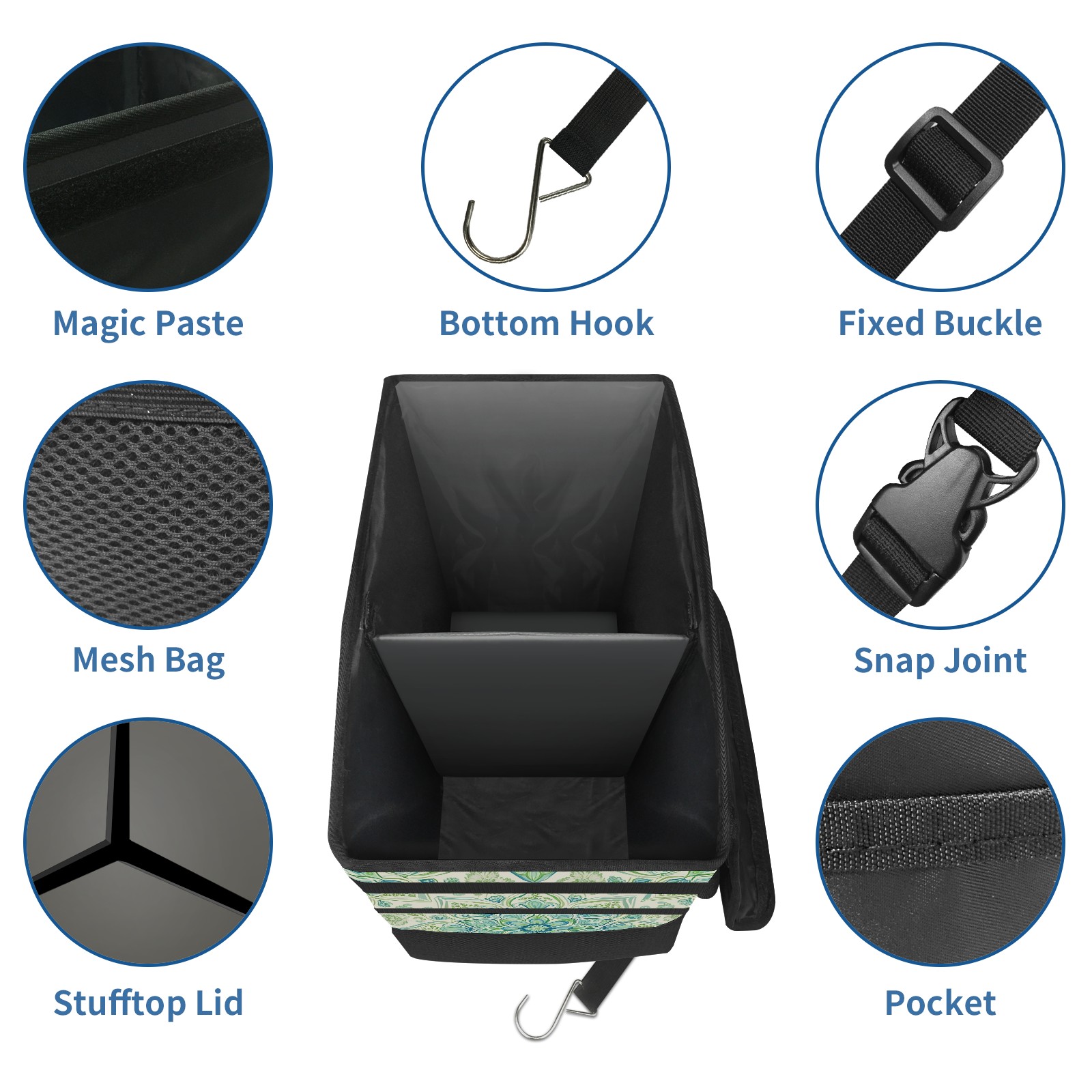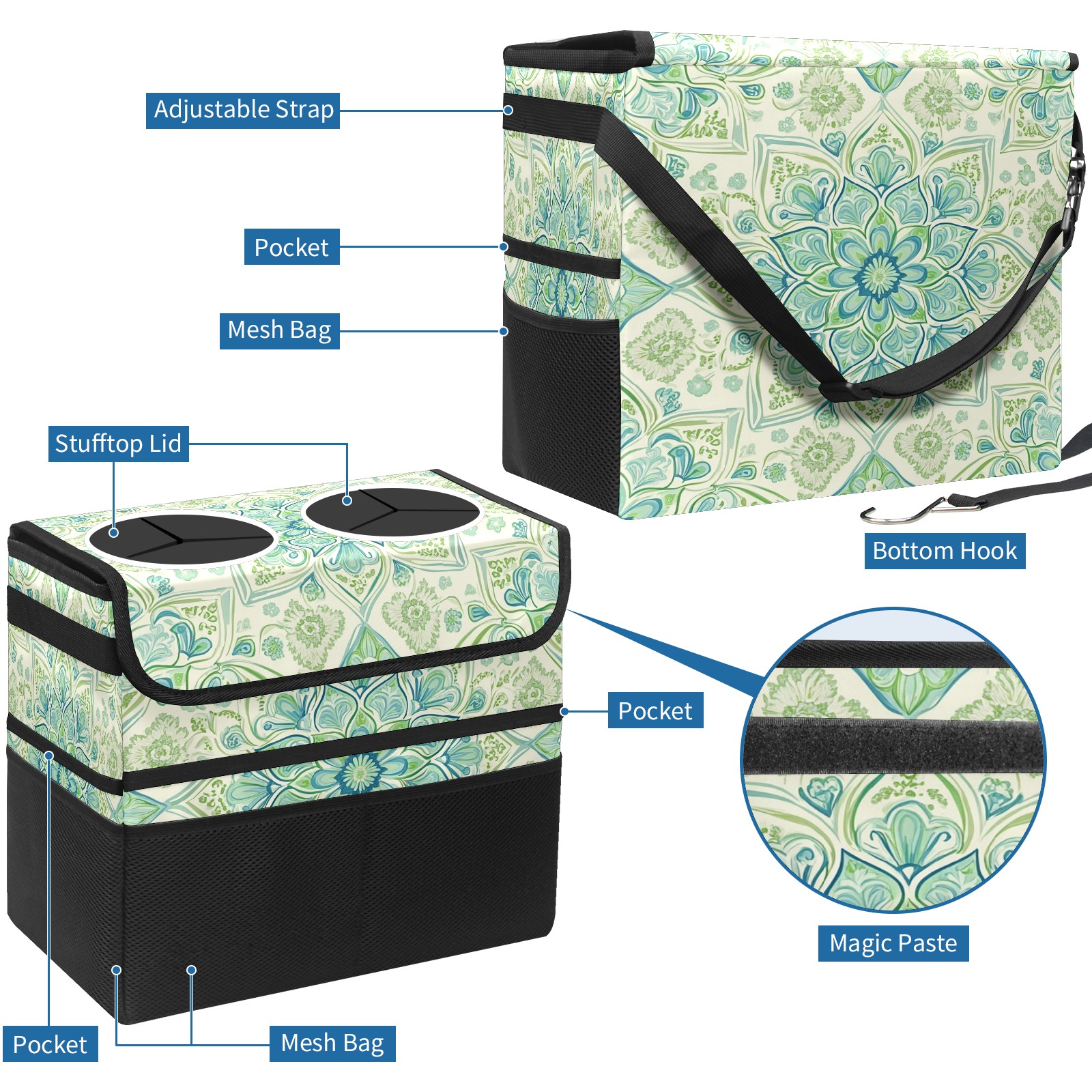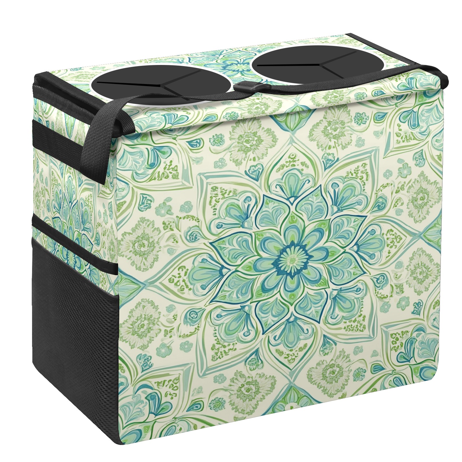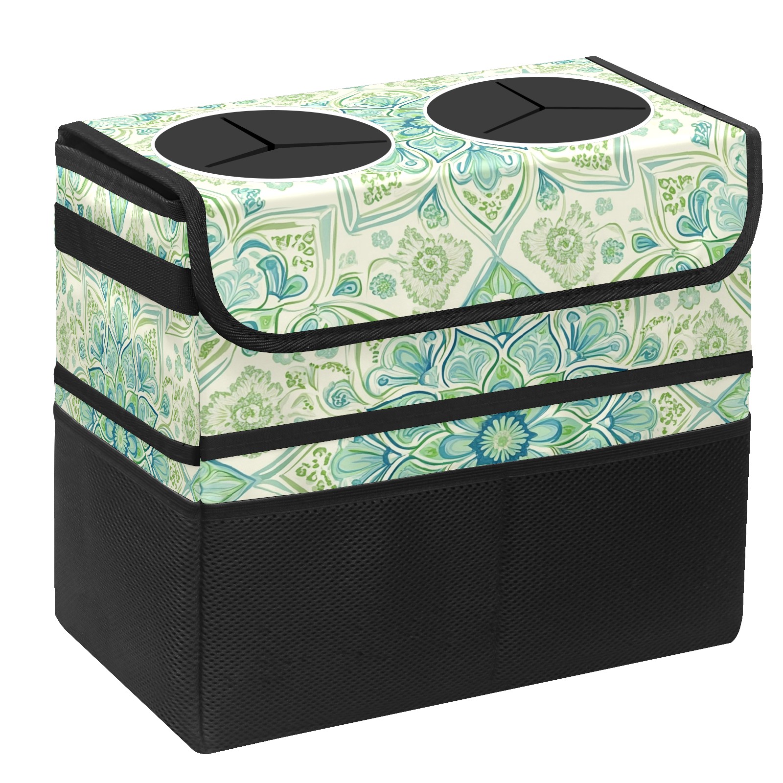 Car Trash Can with Lid, Portable Hanging Automotive Garbage Bin for Vehicles, Leakproof Waste Bag Container for SUV Truck Van Interior Auto Travel Road Trips(Green Mandala)
