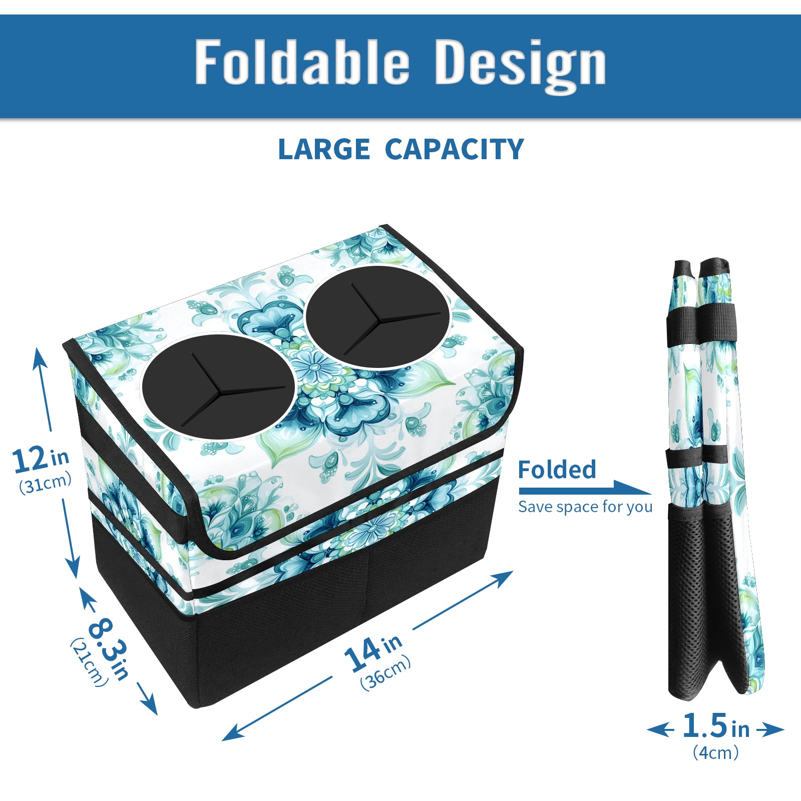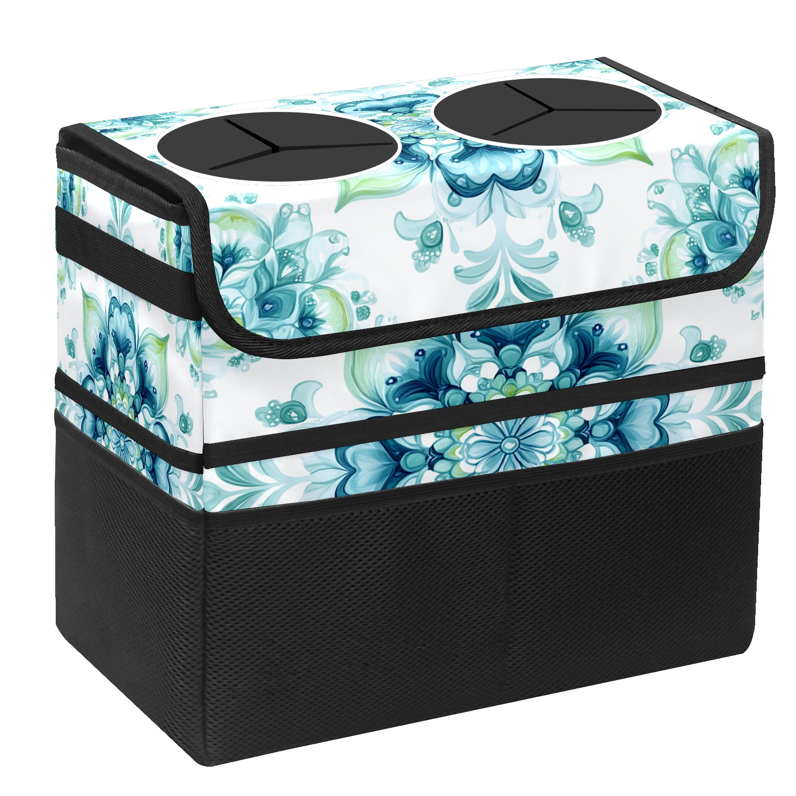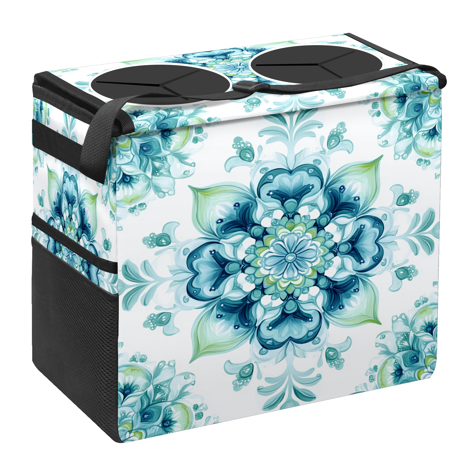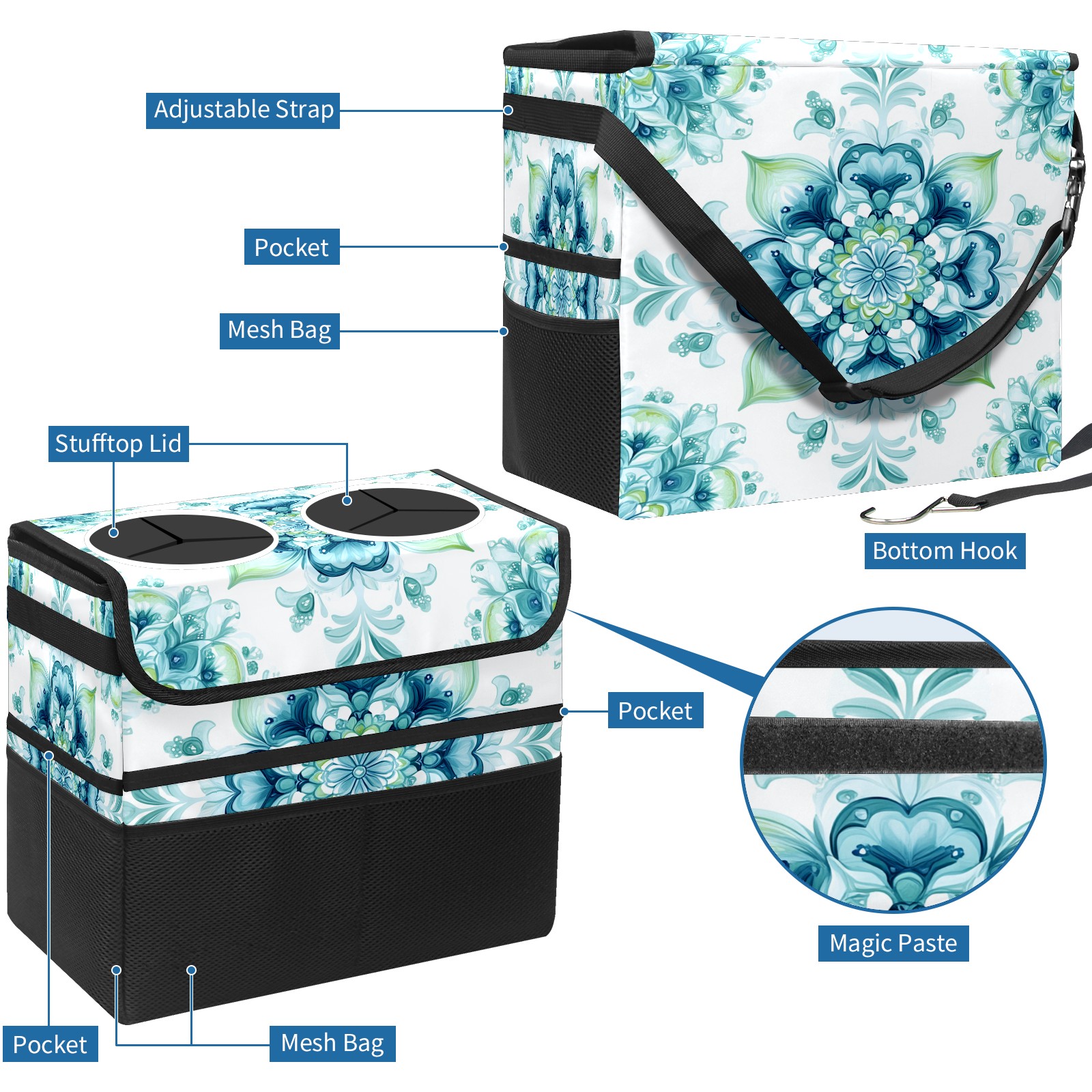 Car Trash Can with Lid, Portable Hanging Automotive Garbage Bin for Vehicles, Leakproof Waste Bag Container for SUV Truck Van Interior Auto Travel Road Trips(Blue Mandala)