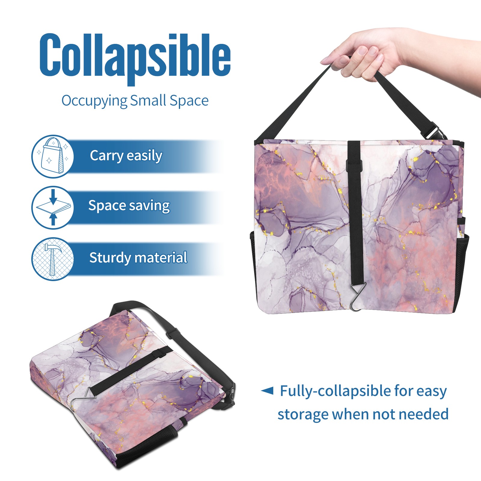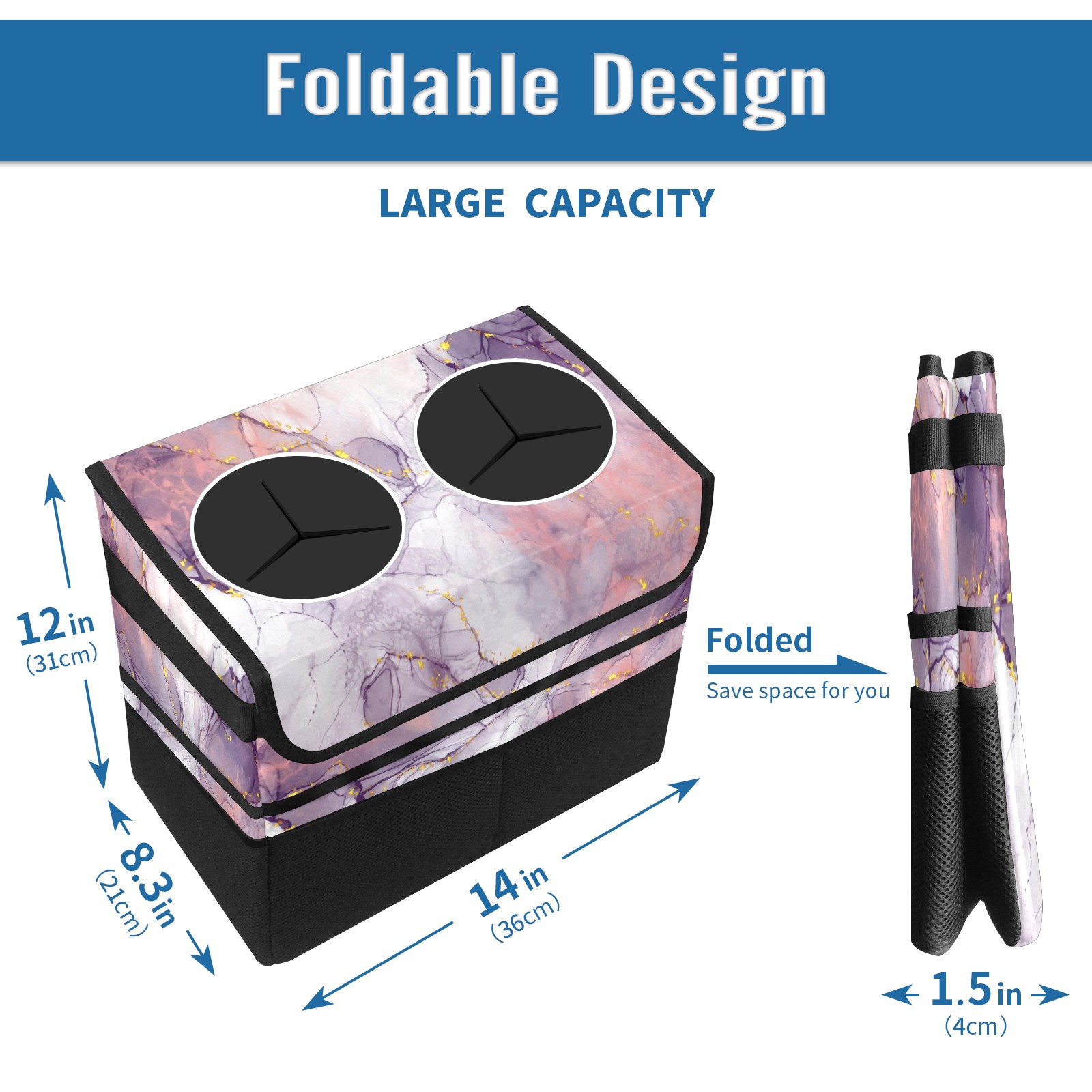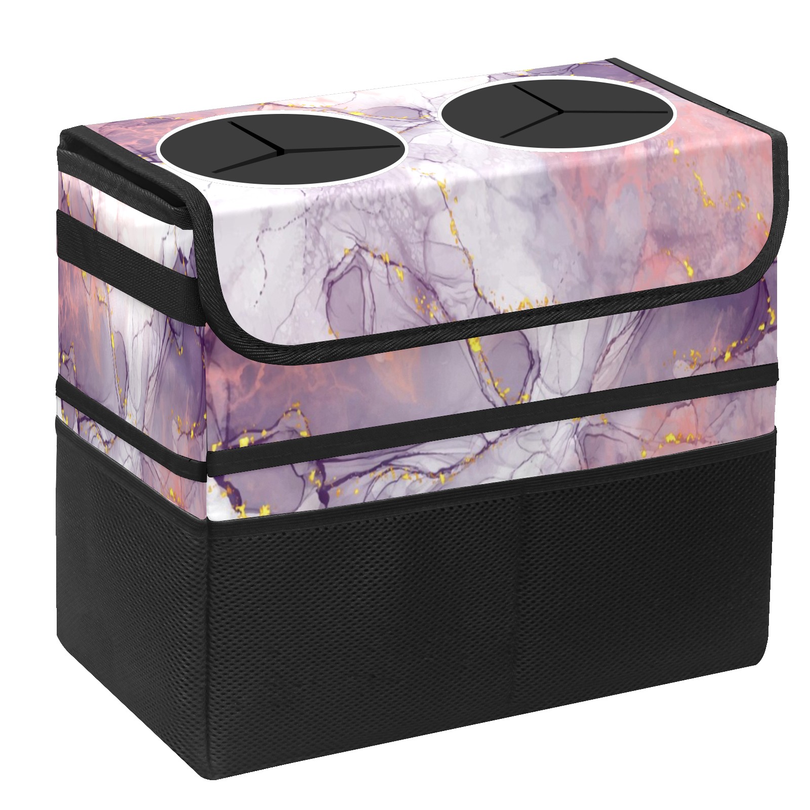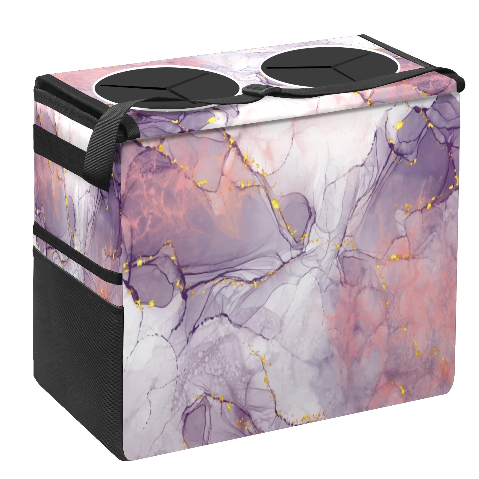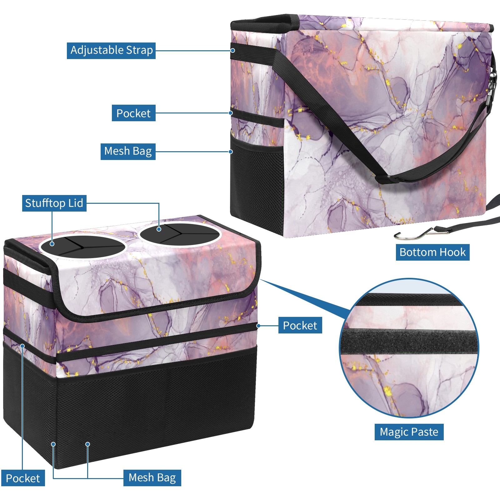 Car Trash Can with Lid, Portable Hanging Automotive Garbage Bin for Vehicles, Leakproof Waste Bag Container for SUV Truck Van Interior Auto Travel Road Trips(Purple Marble)