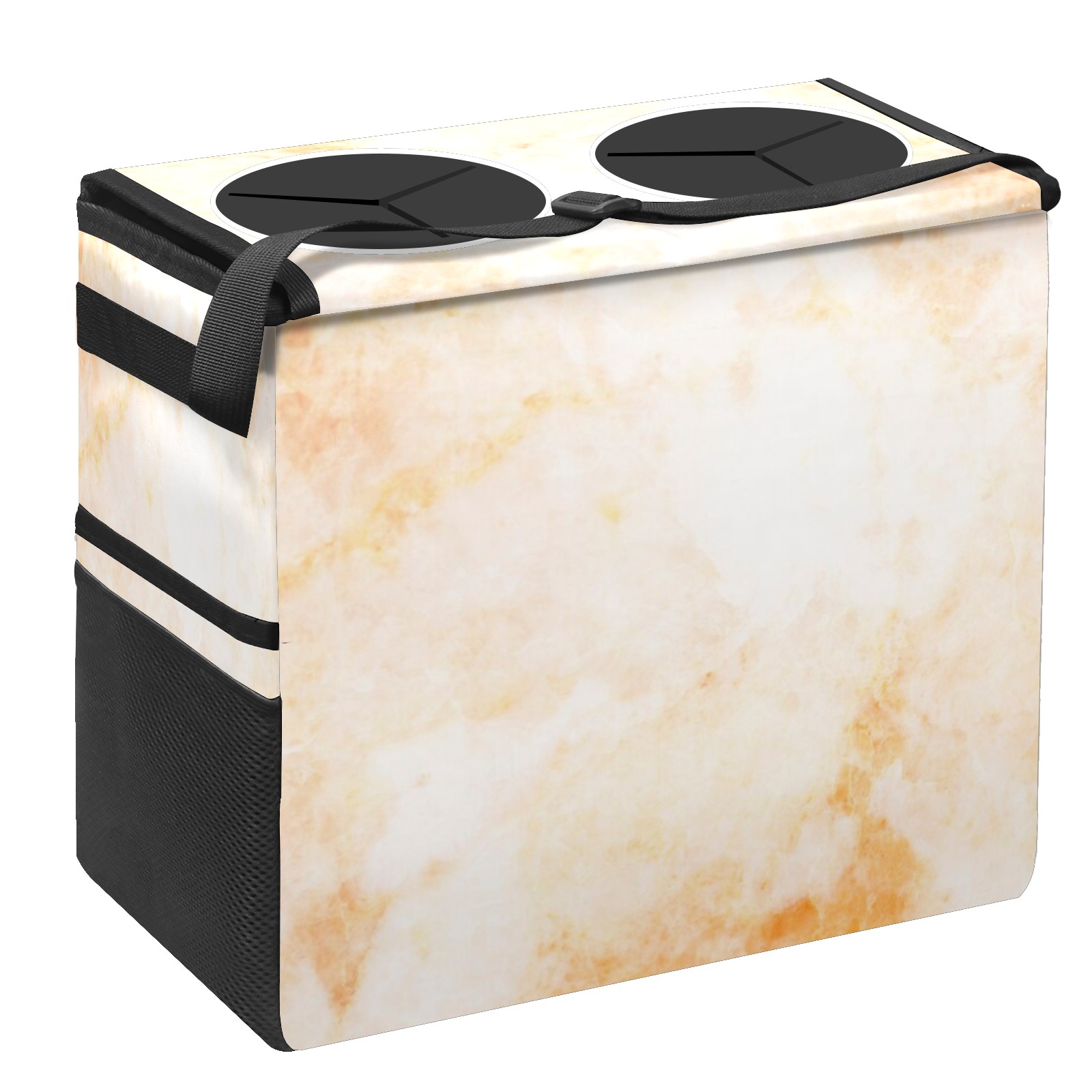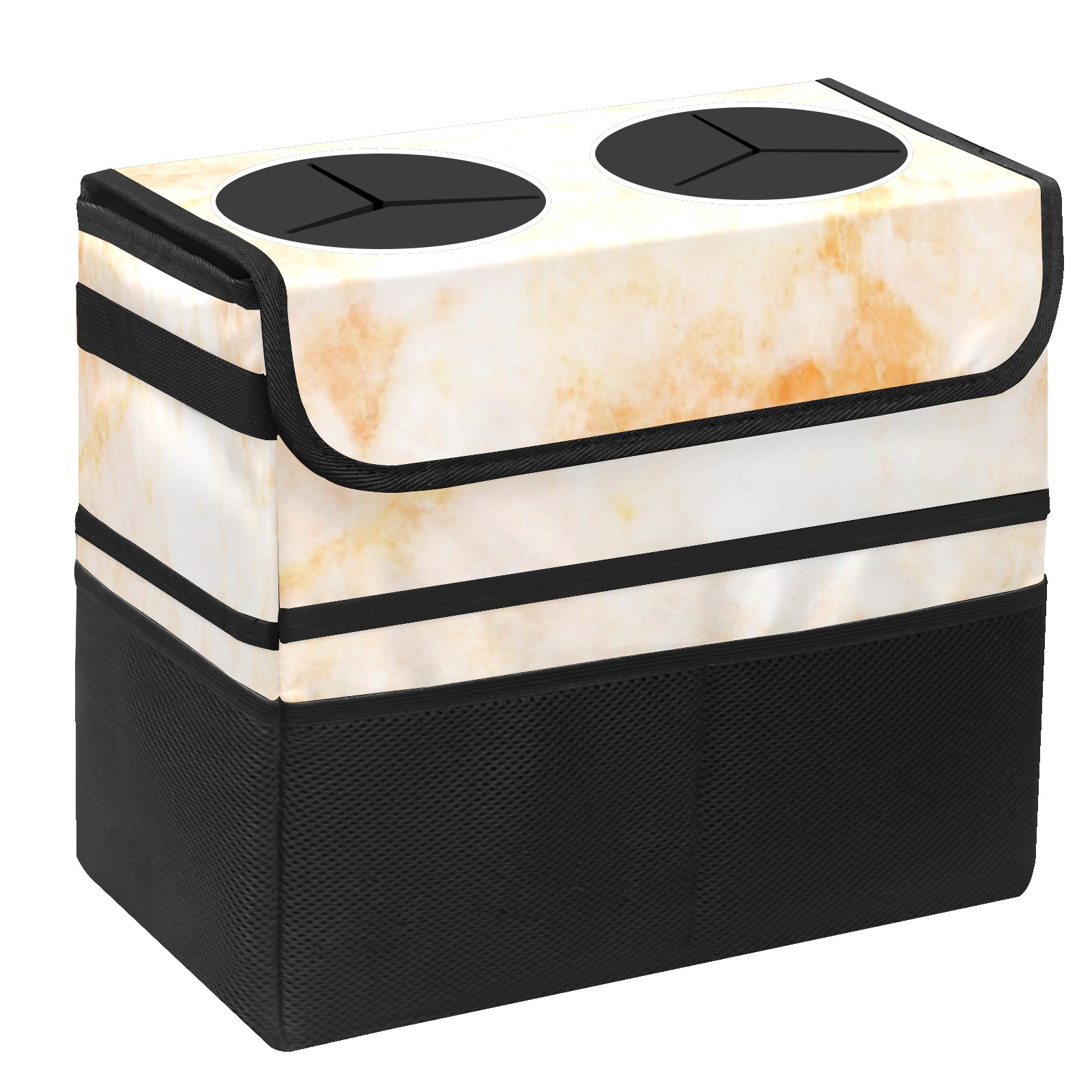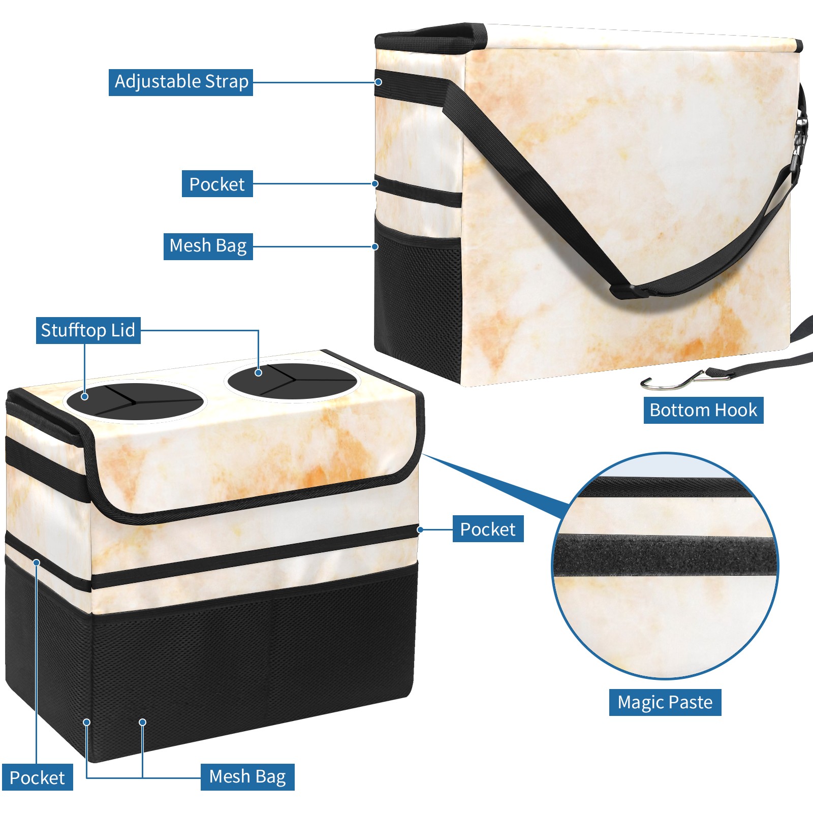 Car Trash Can with Lid, Portable Hanging Automotive Garbage Bin for Vehicles, Leakproof Waste Bag Container for SUV Truck Van Interior Auto Travel Road Trips(Orange Marble)