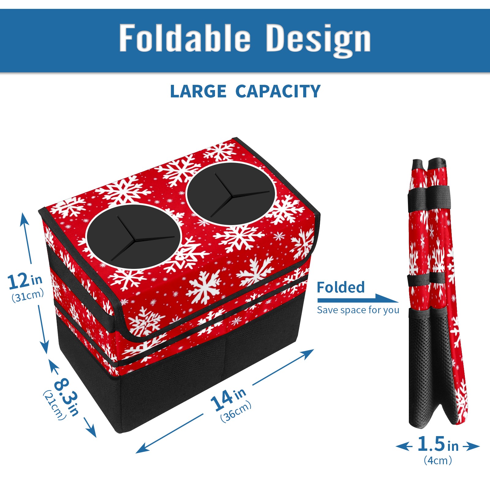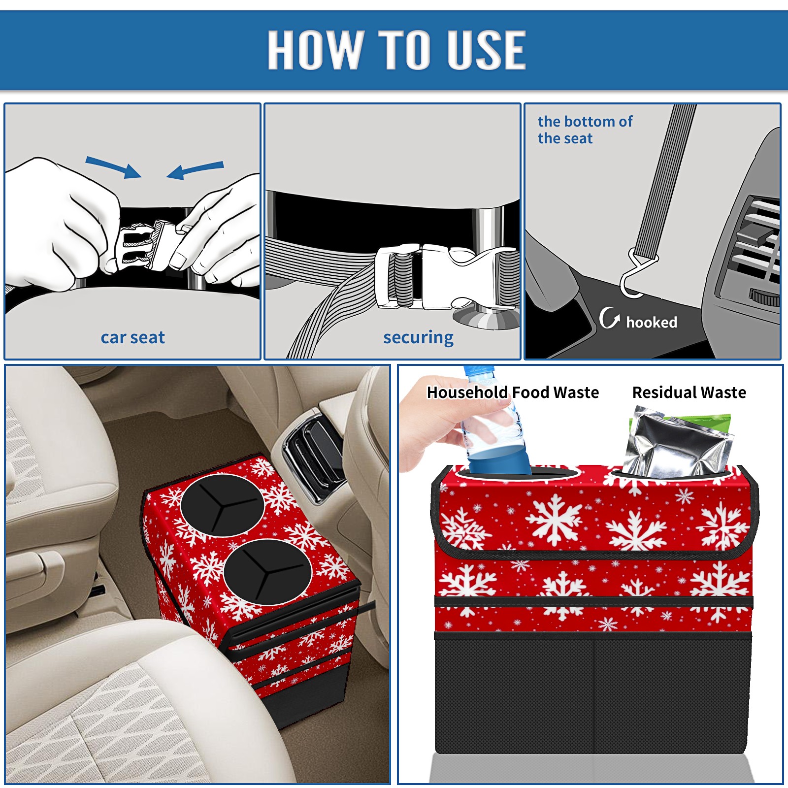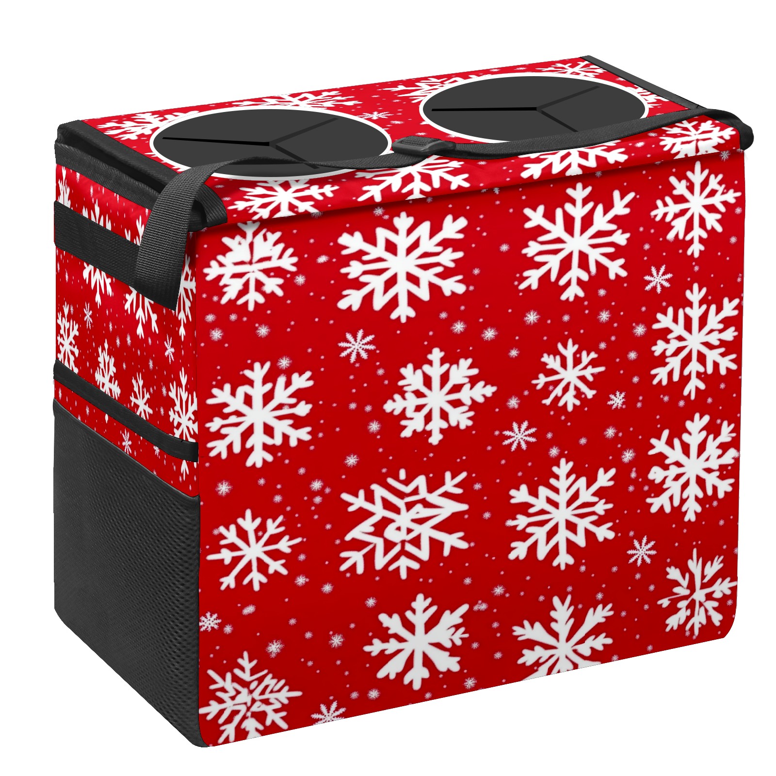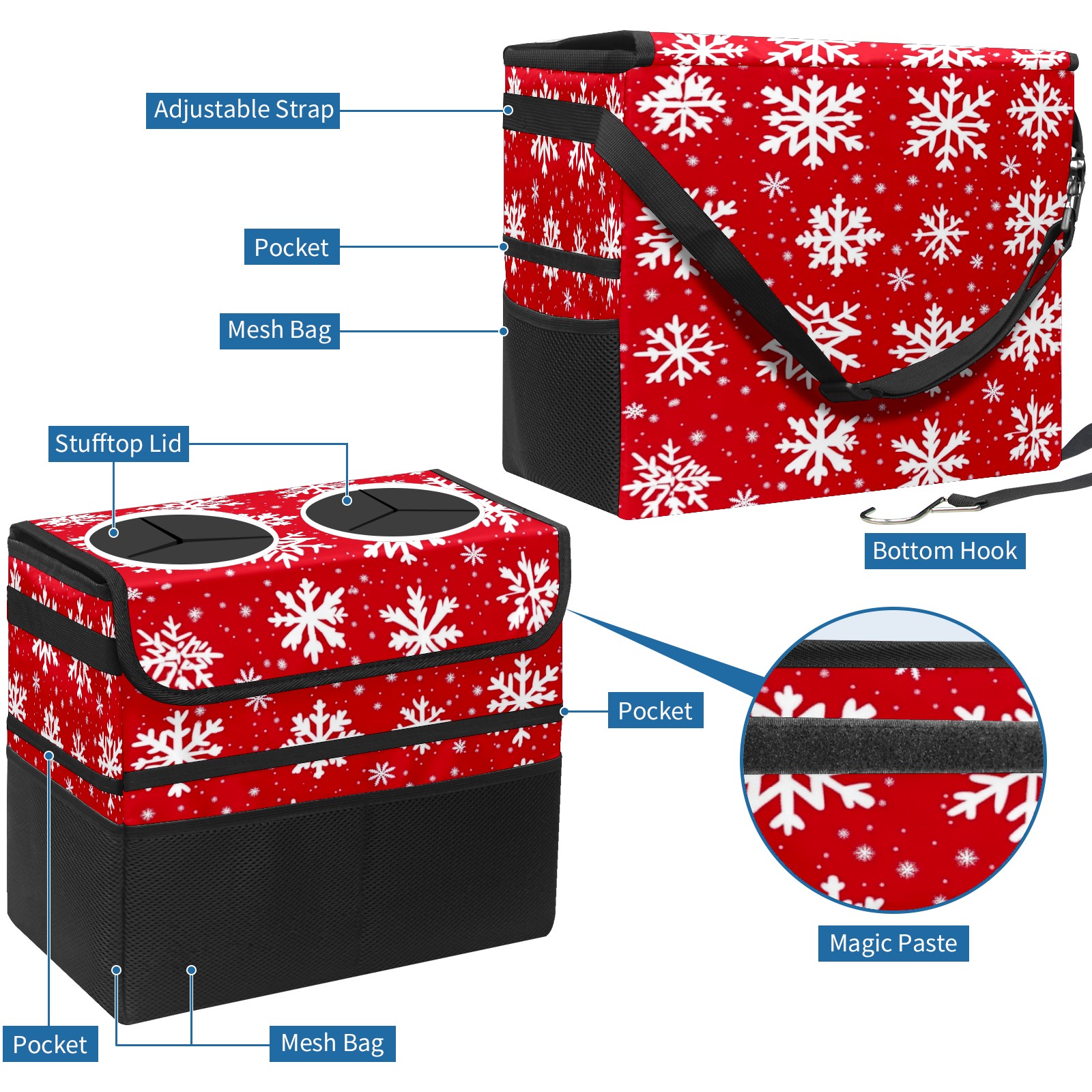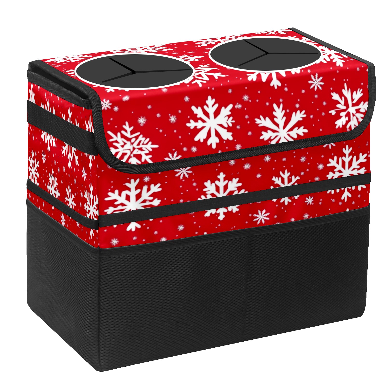 Car Trash Can with Lid, Portable Hanging Automotive Garbage Bin for Vehicles, Leakproof Waste Bag Container for SUV Truck Van Interior Auto Travel Road Trips(White Snowflakes)