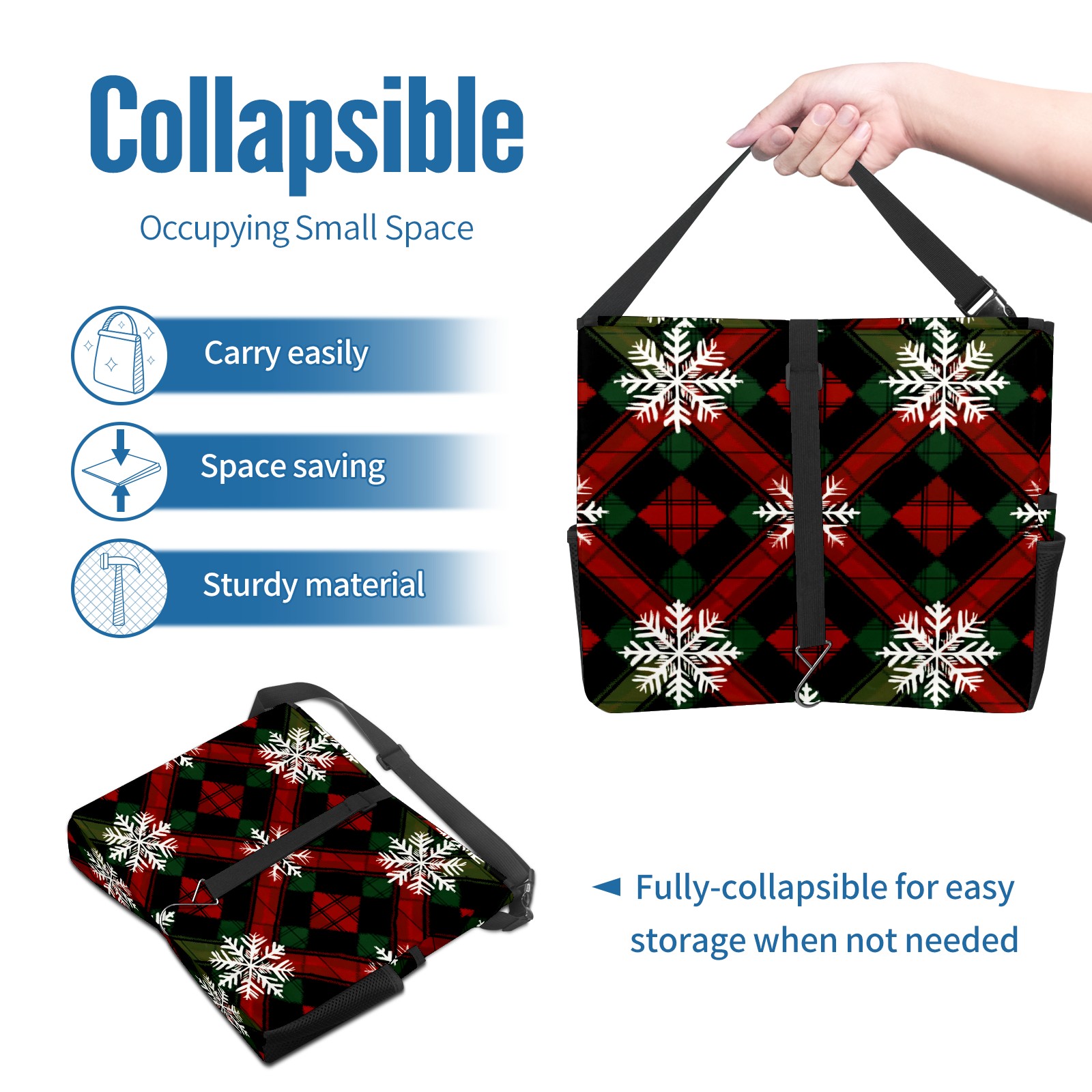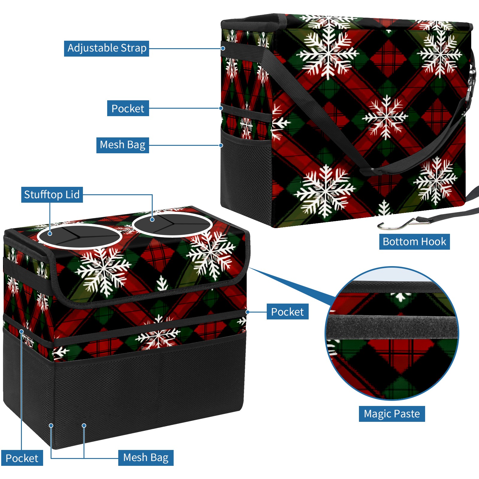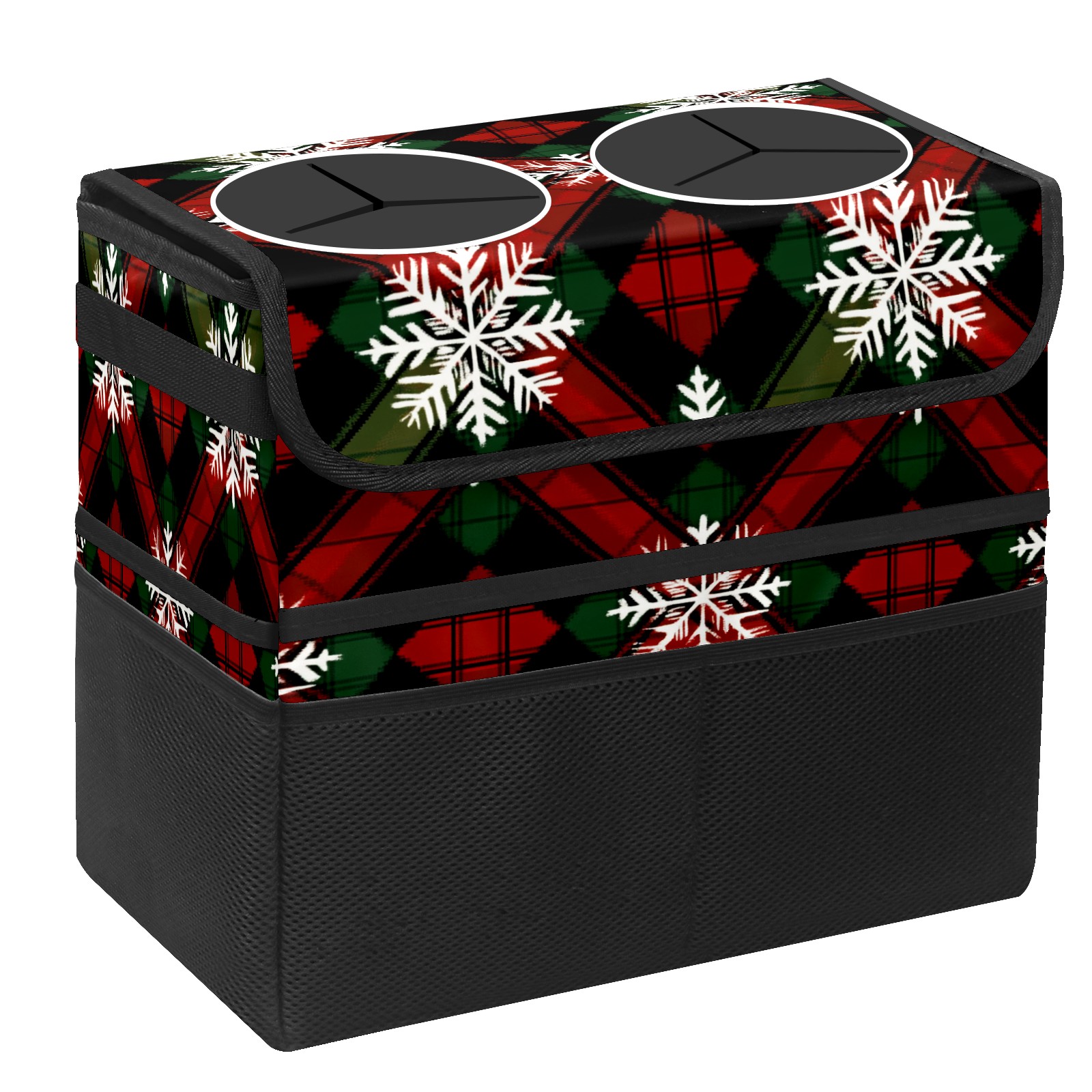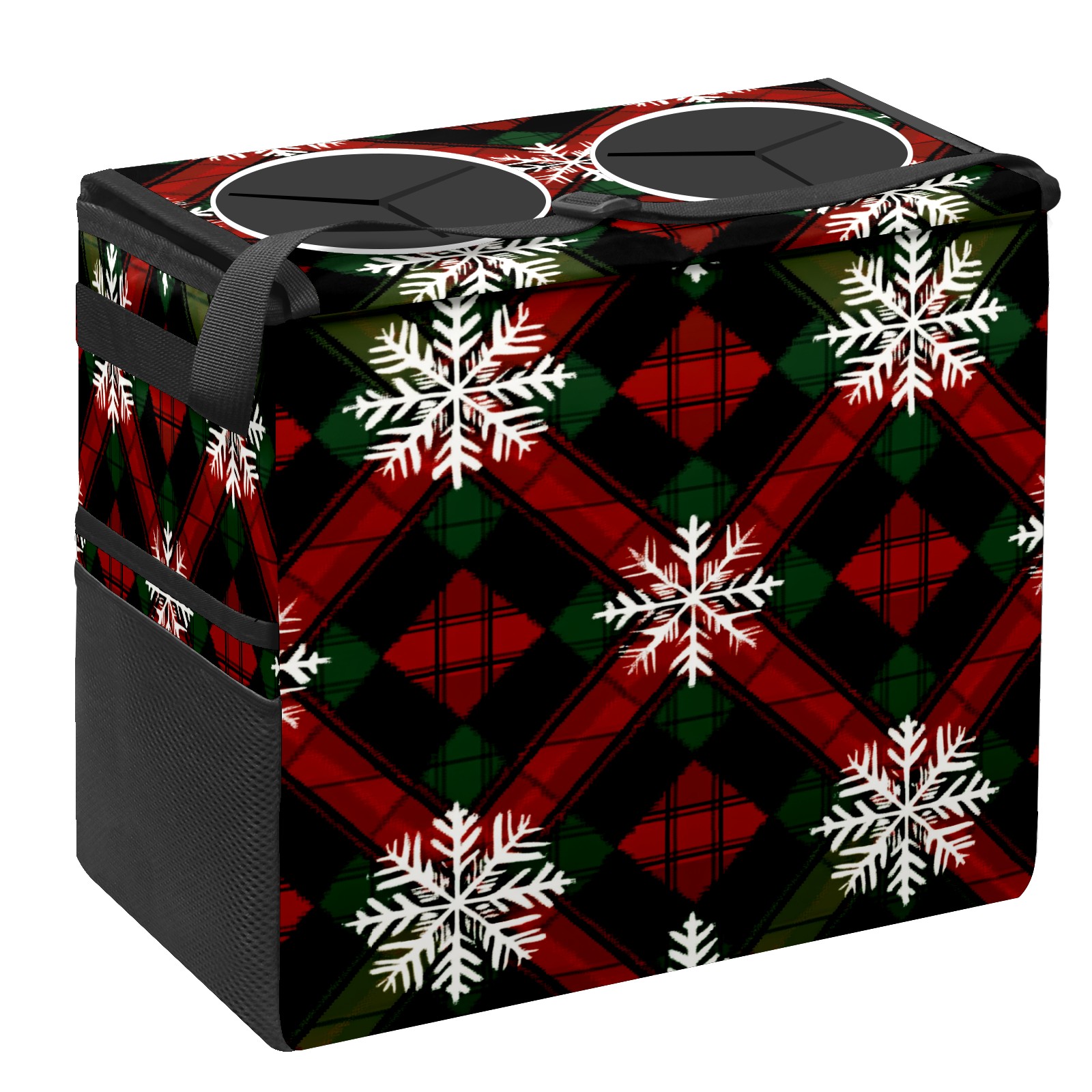 Car Trash Can with Lid, Portable Hanging Automotive Garbage Bin for Vehicles, Leakproof Waste Bag Container for SUV Truck Van Interior Auto Travel Road Trips(Red Green And Black Tartan)