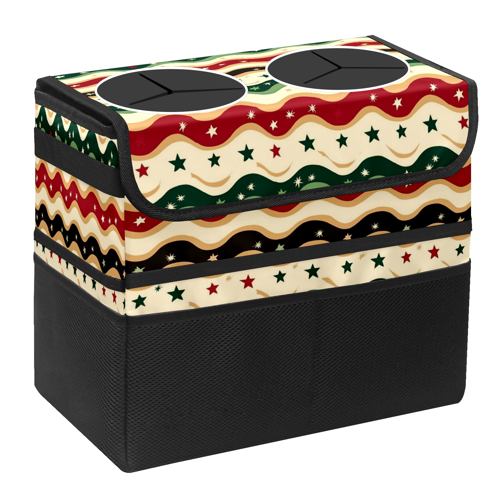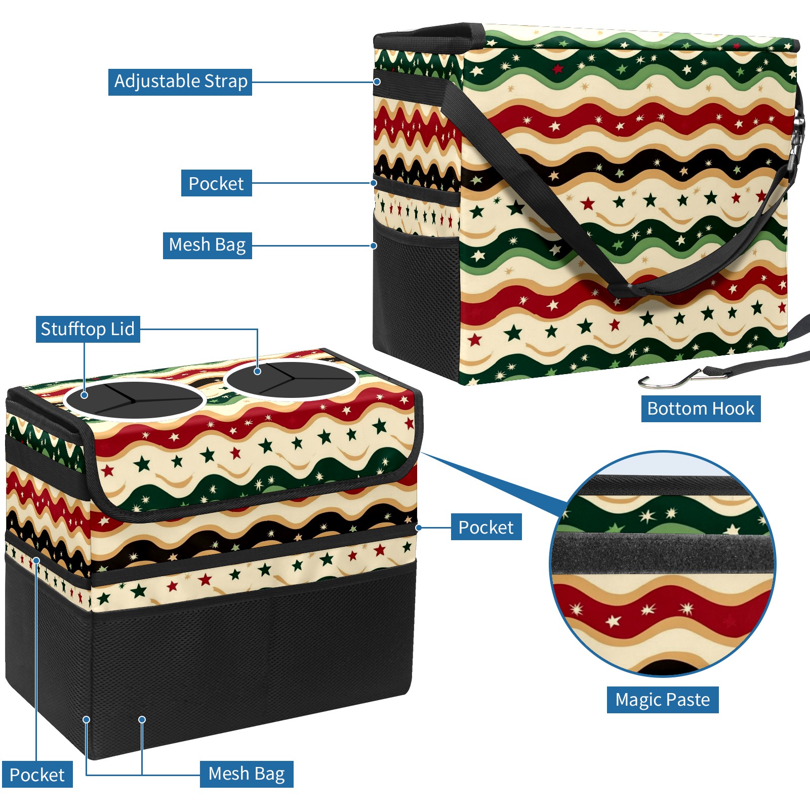 Car Trash Can with Lid, Portable Hanging Automotive Garbage Bin for Vehicles, Leakproof Waste Bag Container for SUV Truck Van Interior Auto Travel Road Trips(Christmas-themed)