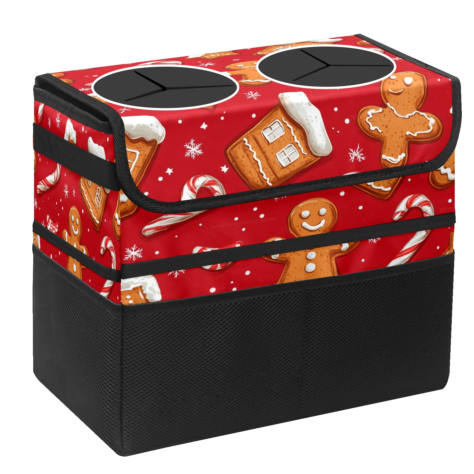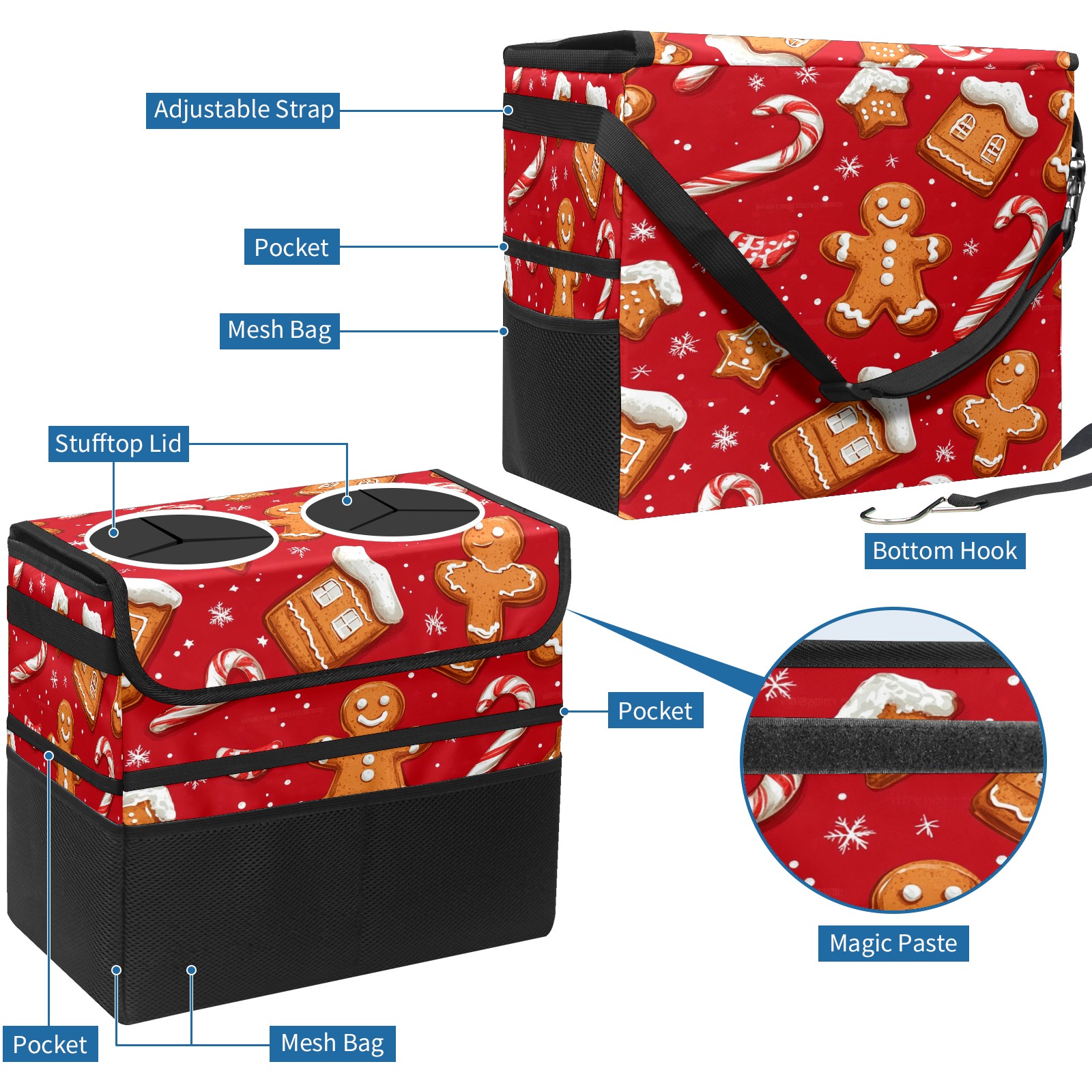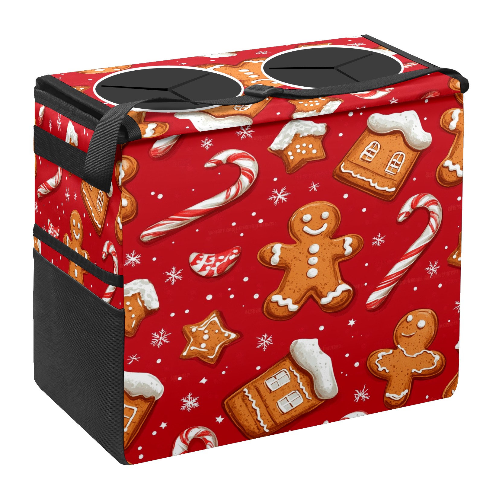 Car Trash Can with Lid, Portable Hanging Automotive Garbage Bin for Vehicles, Leakproof Waste Bag Container for SUV Truck Van Interior Auto Travel Road Trips(Cookies And Candy Cane)