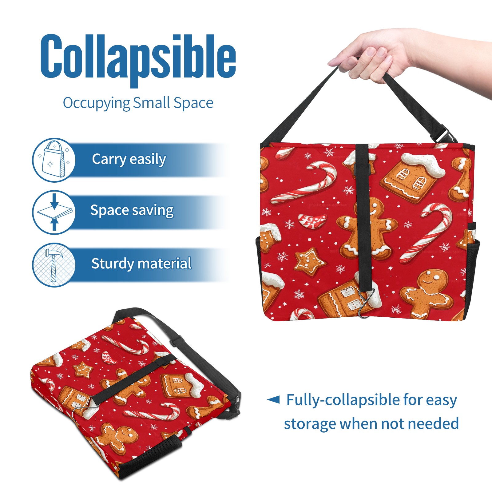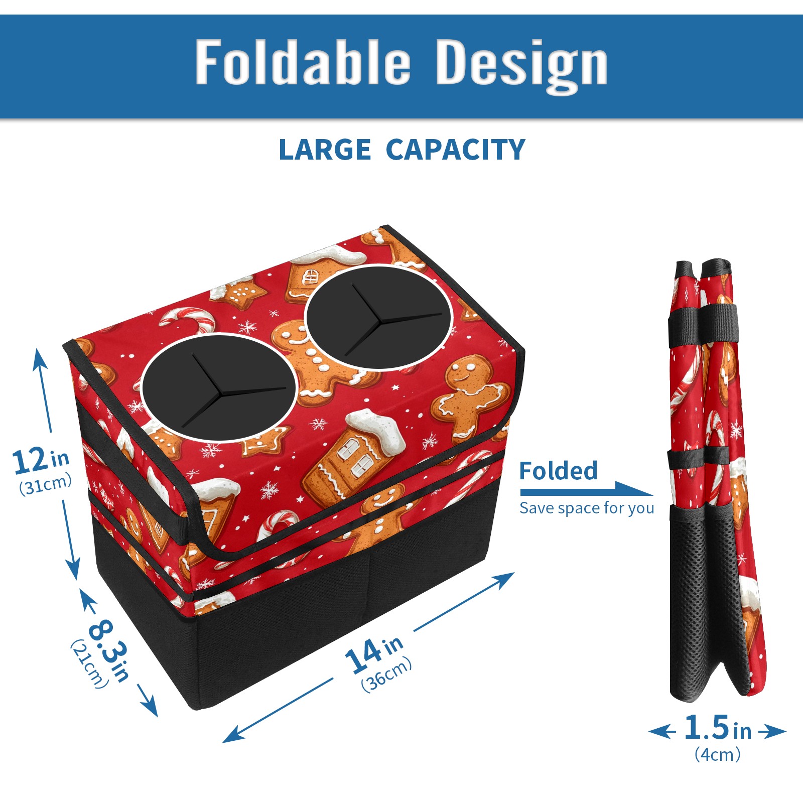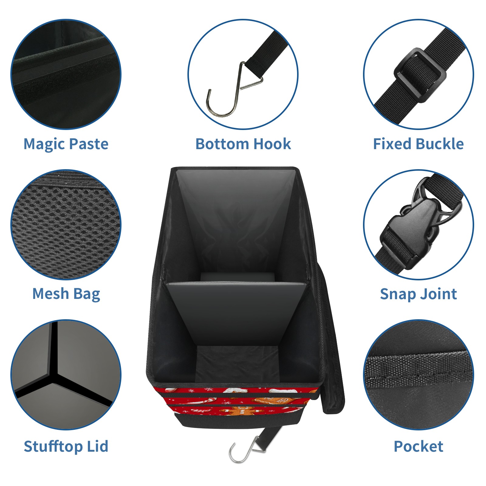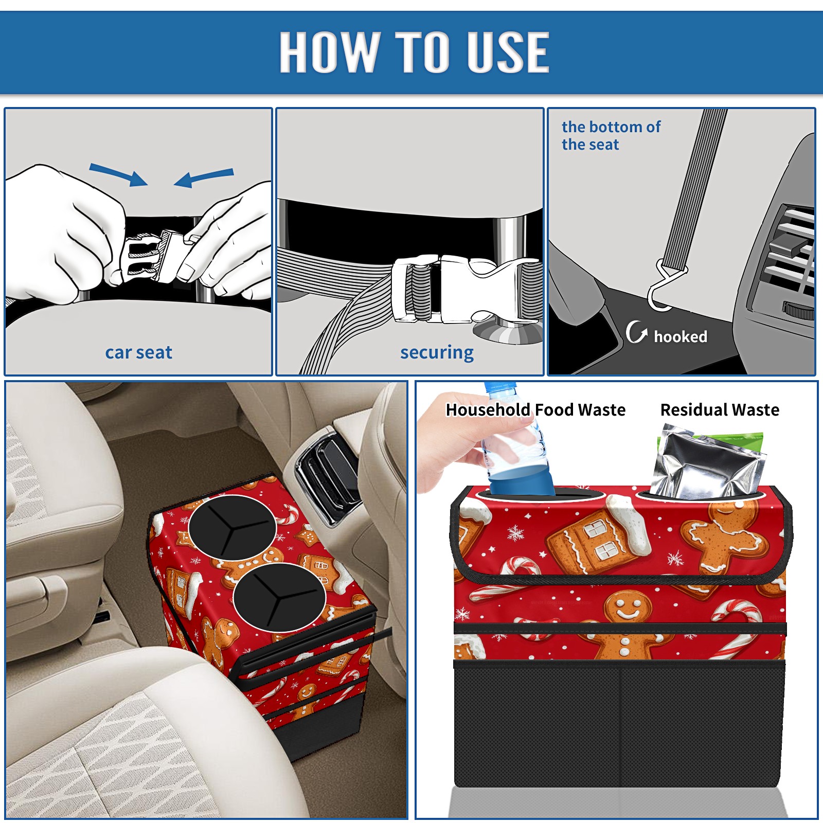Car Trash Can with Lid, Portable Hanging Automotive Garbage Bin for Vehicles, Leakproof Waste Bag Container for SUV Truck Van Interior Auto Travel Road Trips(Cookies And Candy Cane)