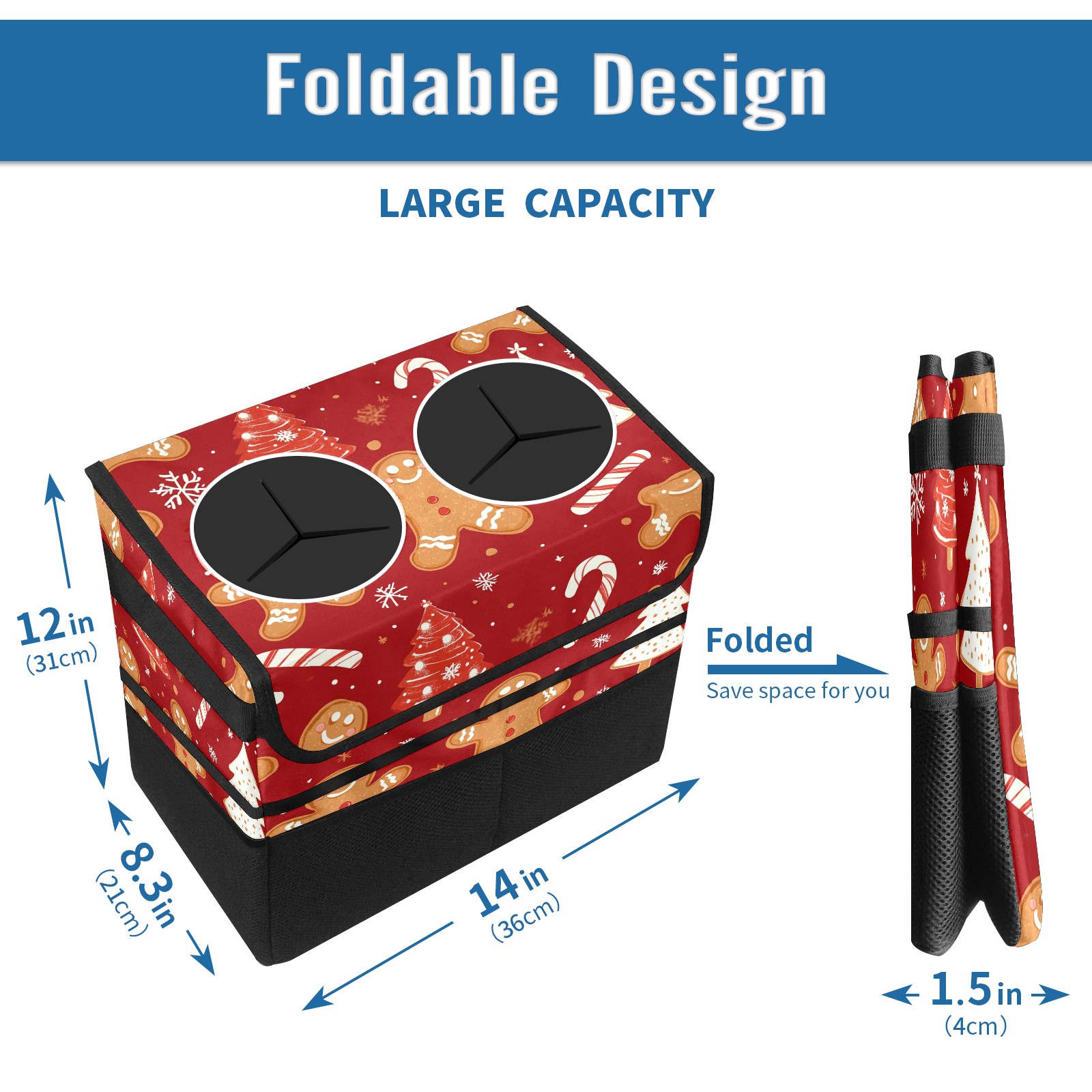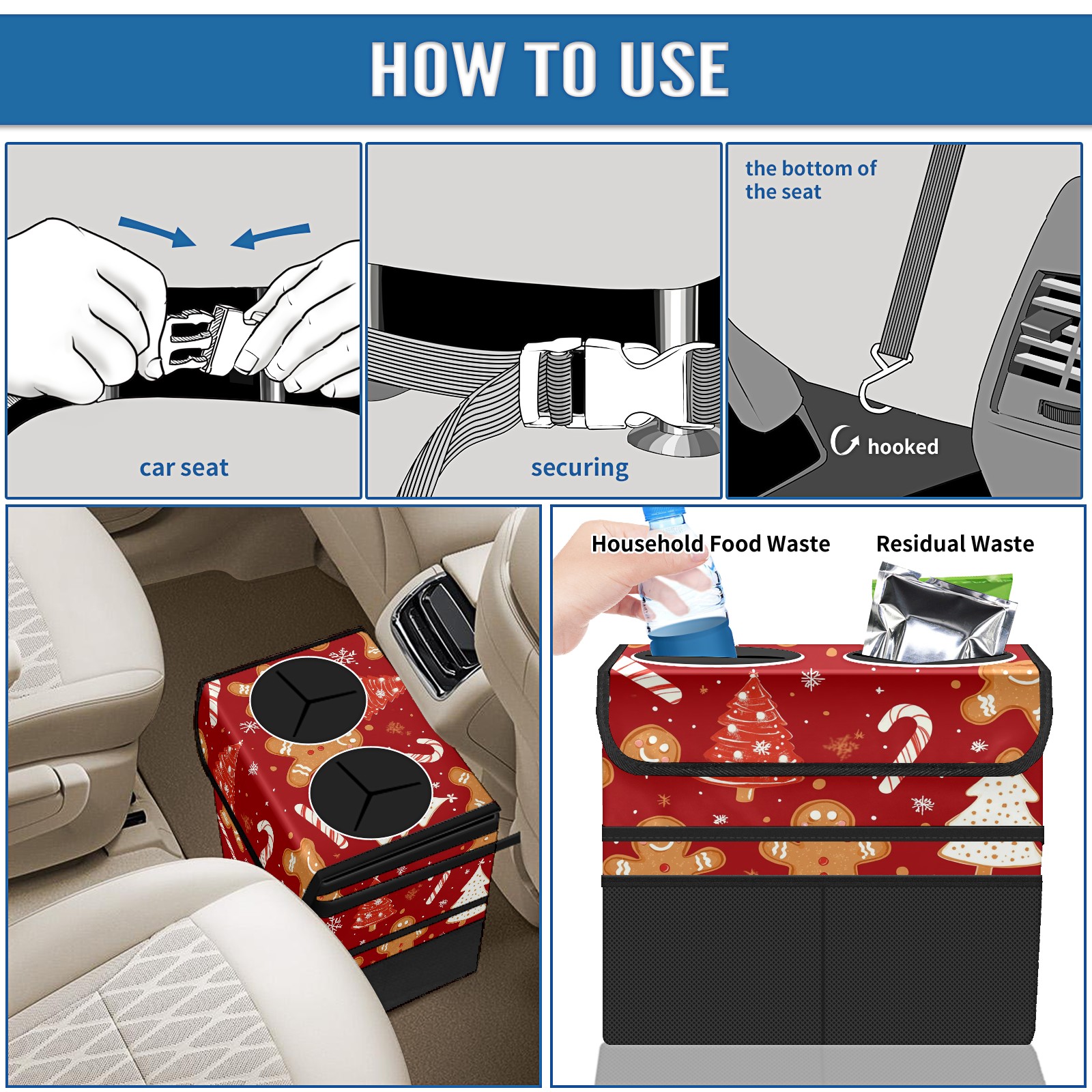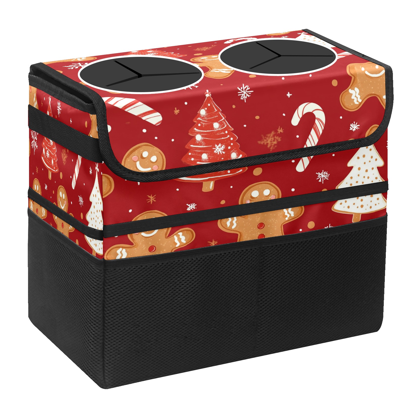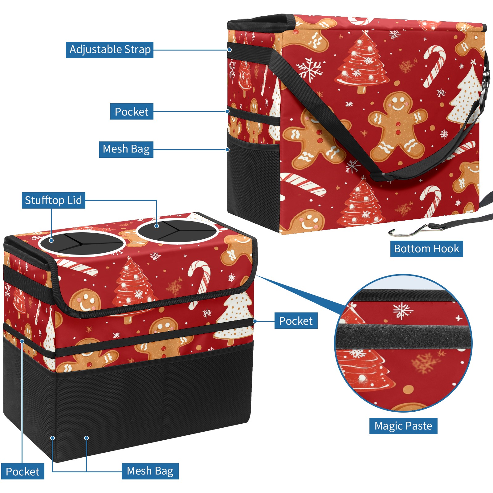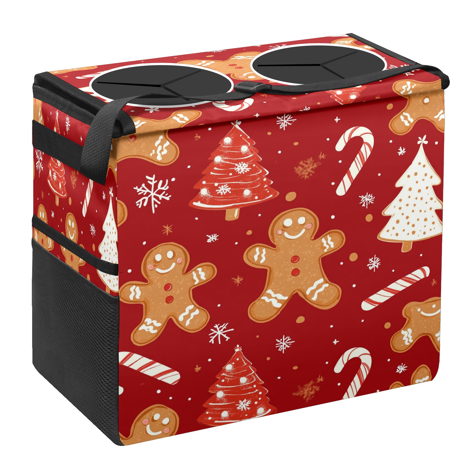 Car Trash Can with Lid, Portable Hanging Automotive Garbage Bin for Vehicles, Leakproof Waste Bag Container for SUV Truck Van Interior Auto Travel Road Trips(Christmas Tree And Candy Cane)