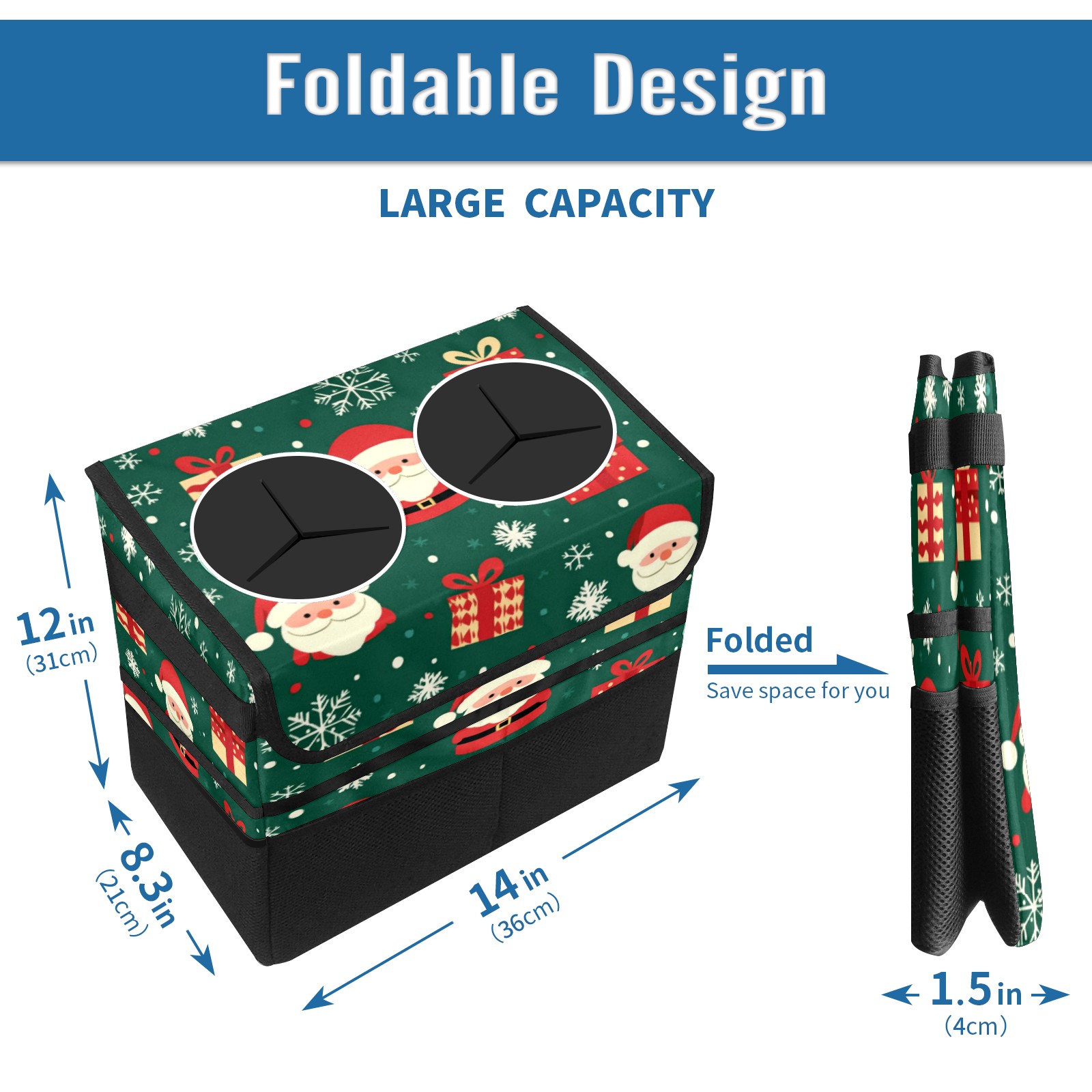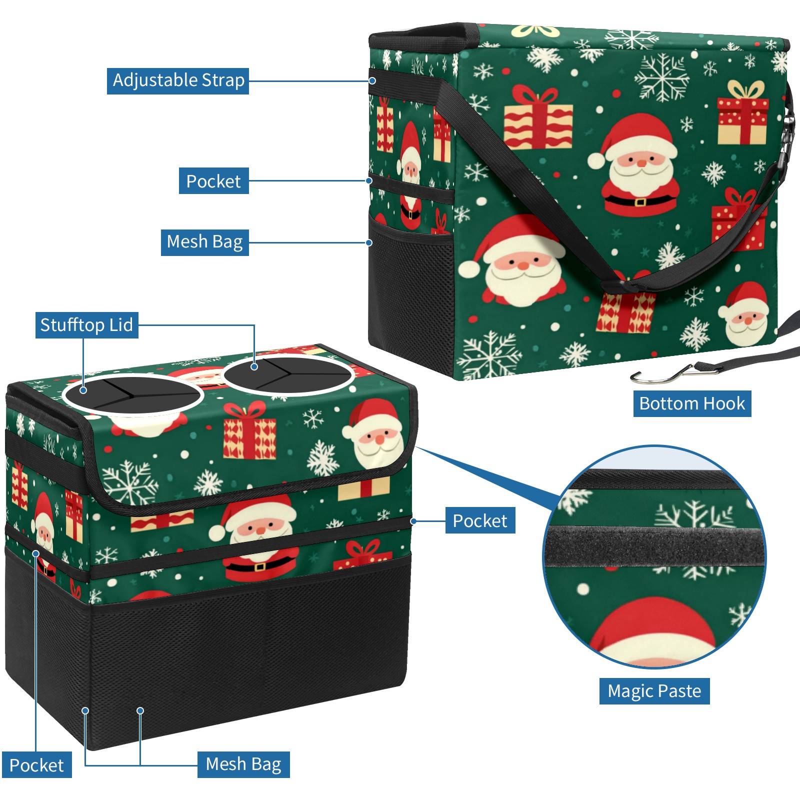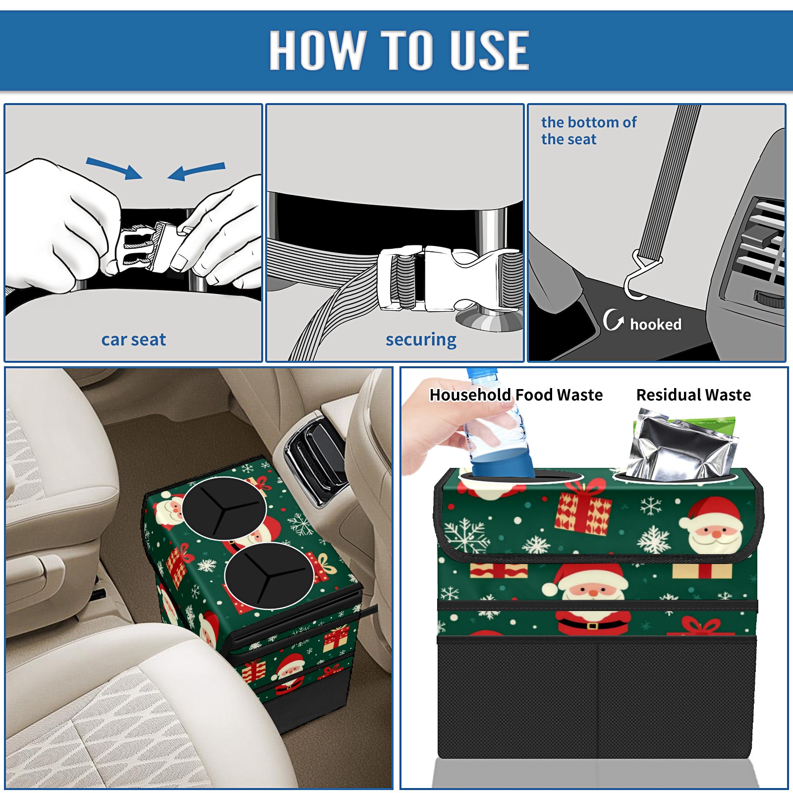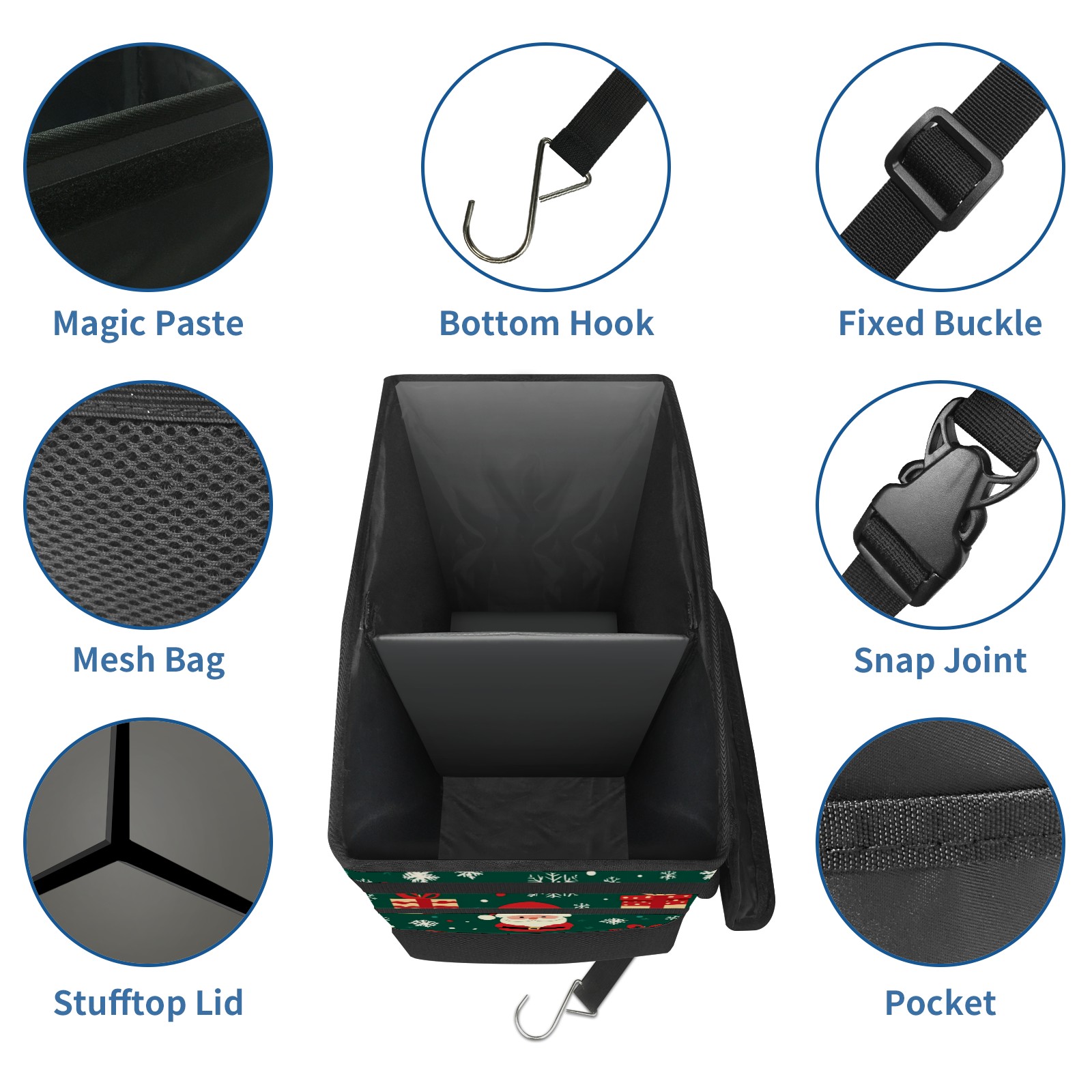 Car Trash Can with Lid, Portable Hanging Automotive Garbage Bin for Vehicles, Leakproof Waste Bag Container for SUV Truck Van Interior Auto Travel Road Trips(Christmas Gifts And Santa Claus)
