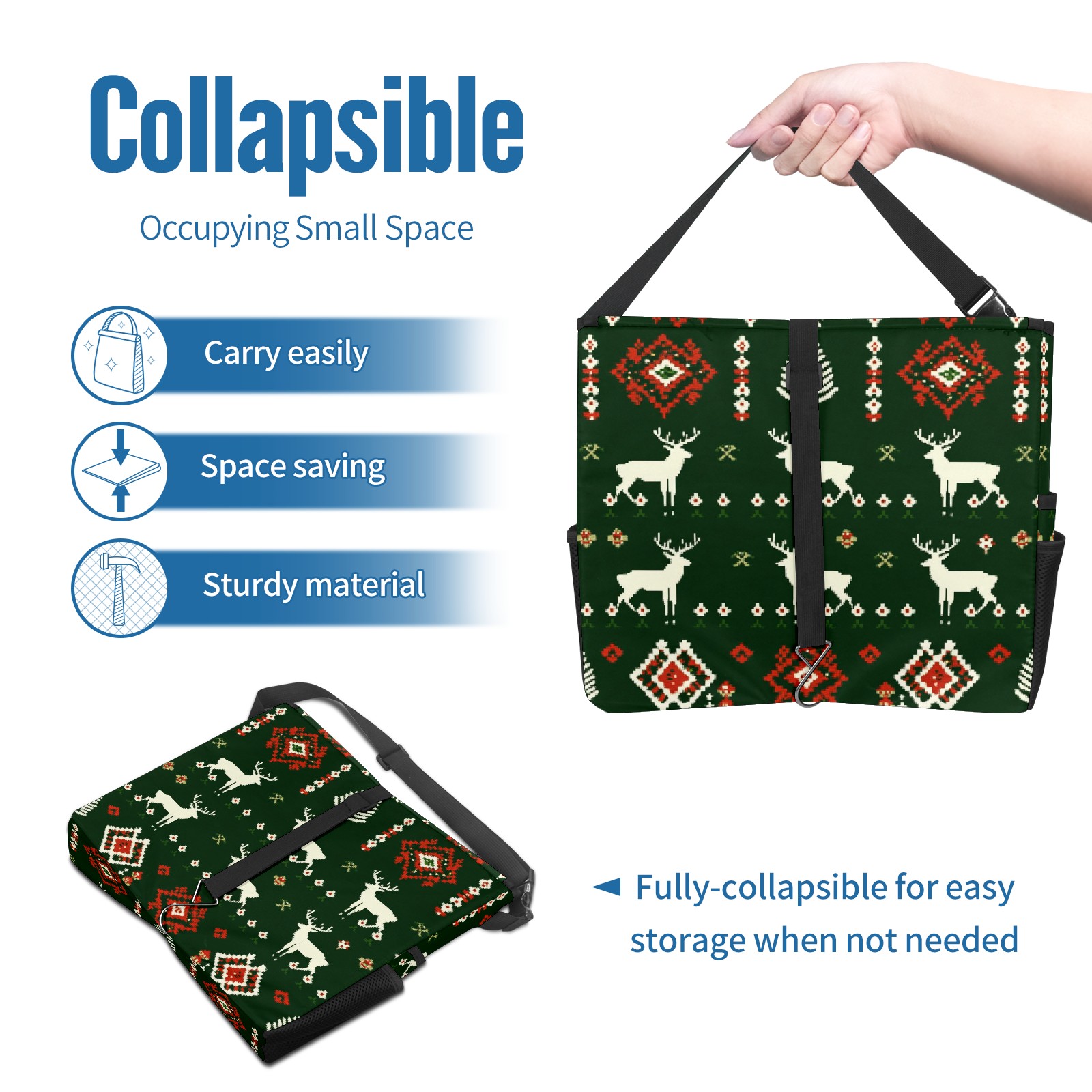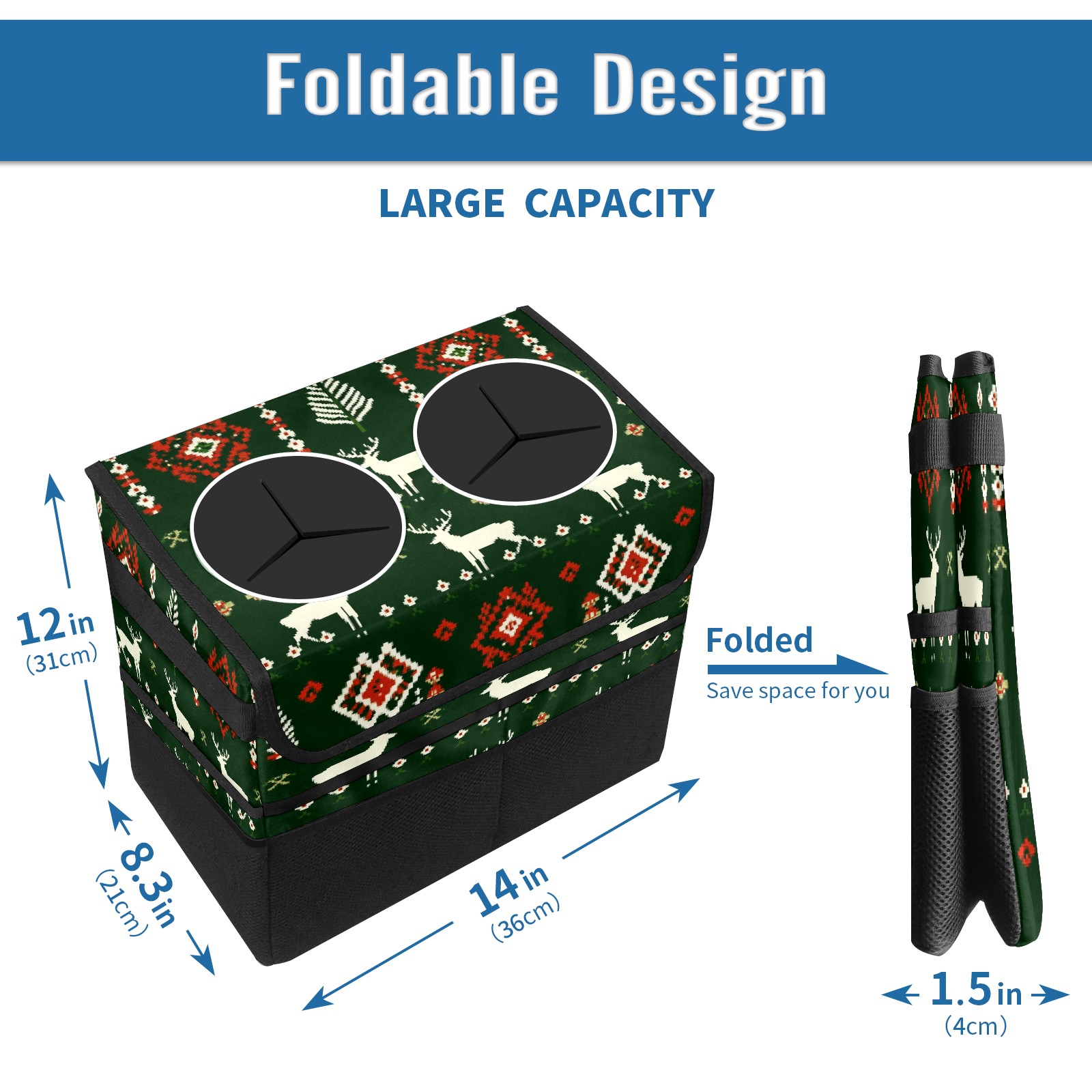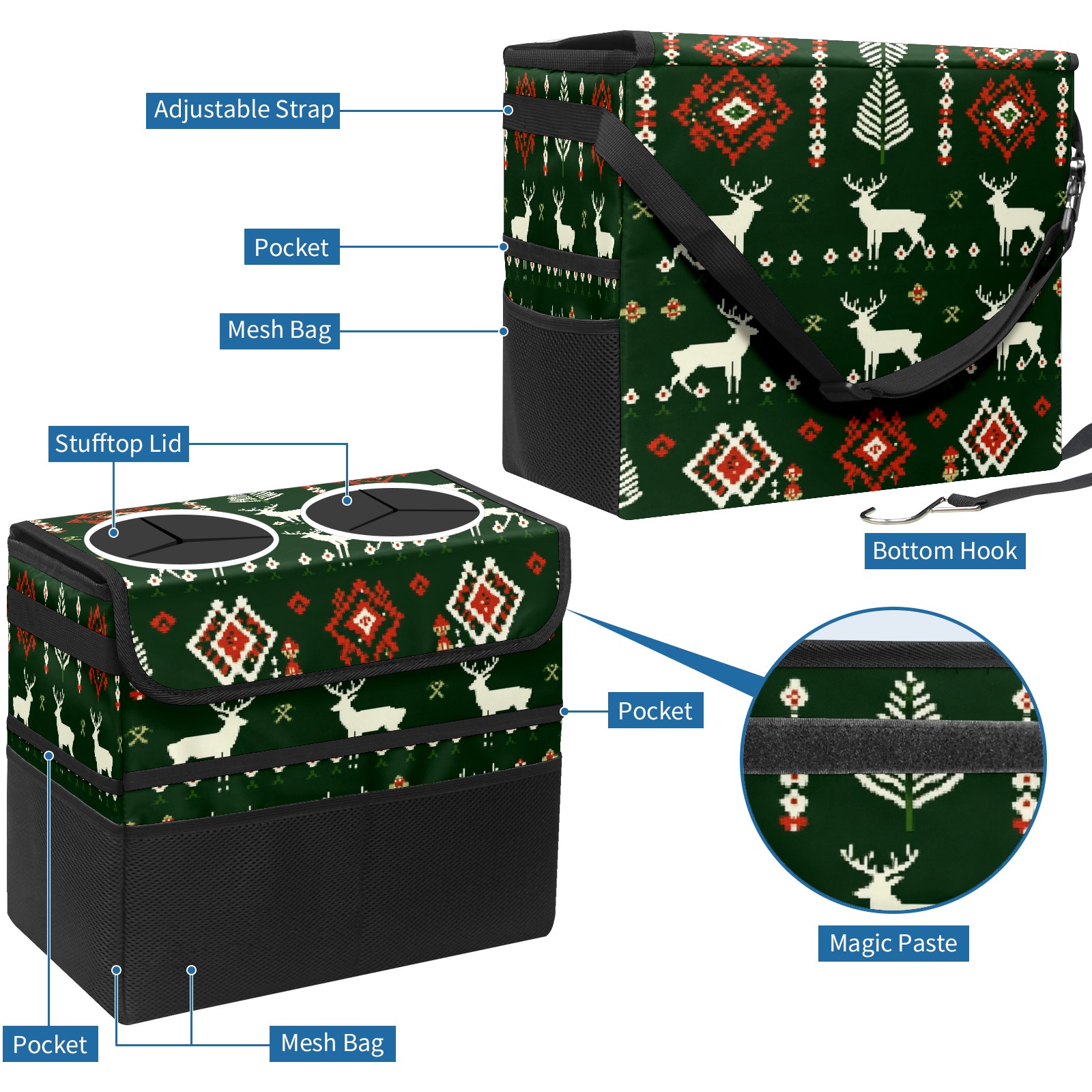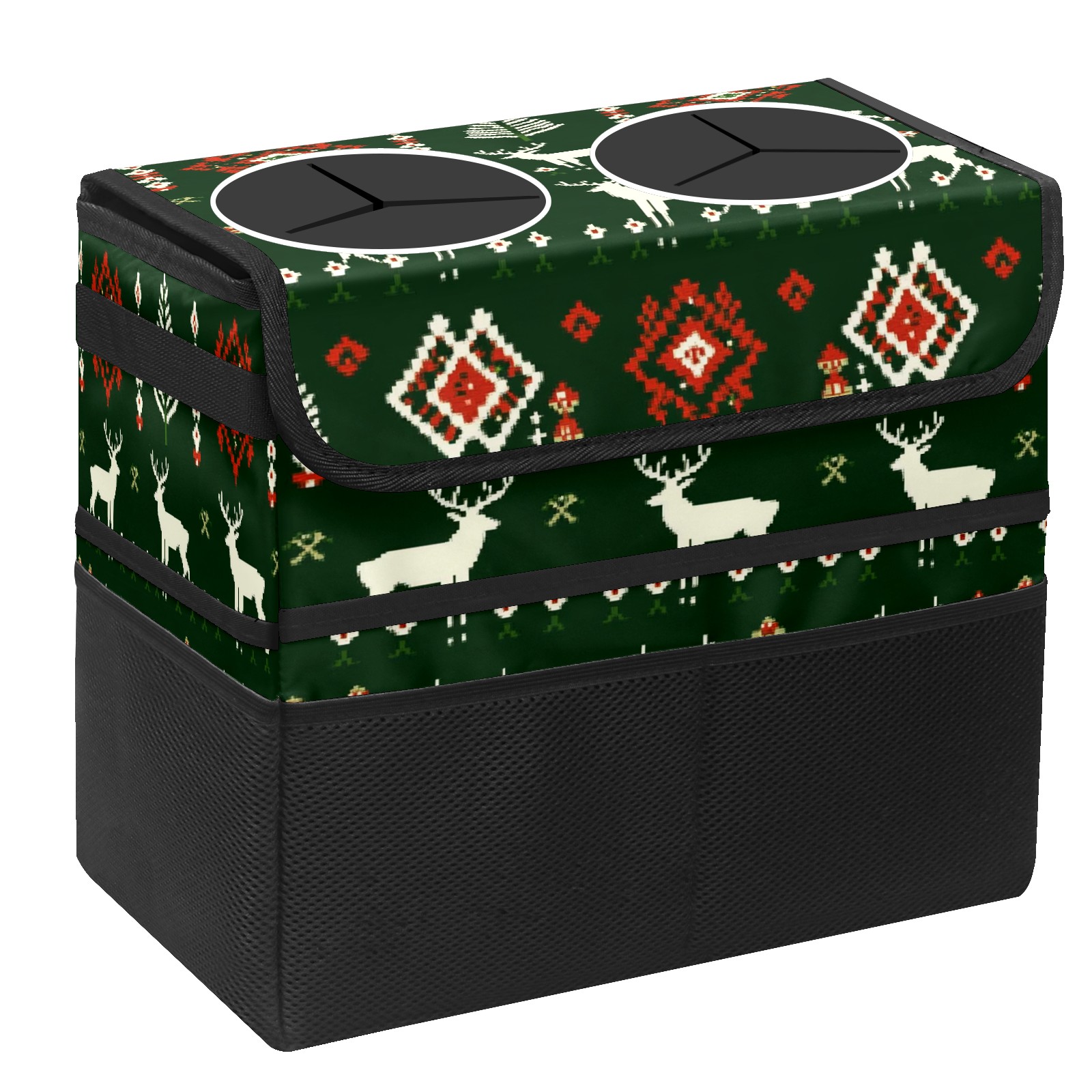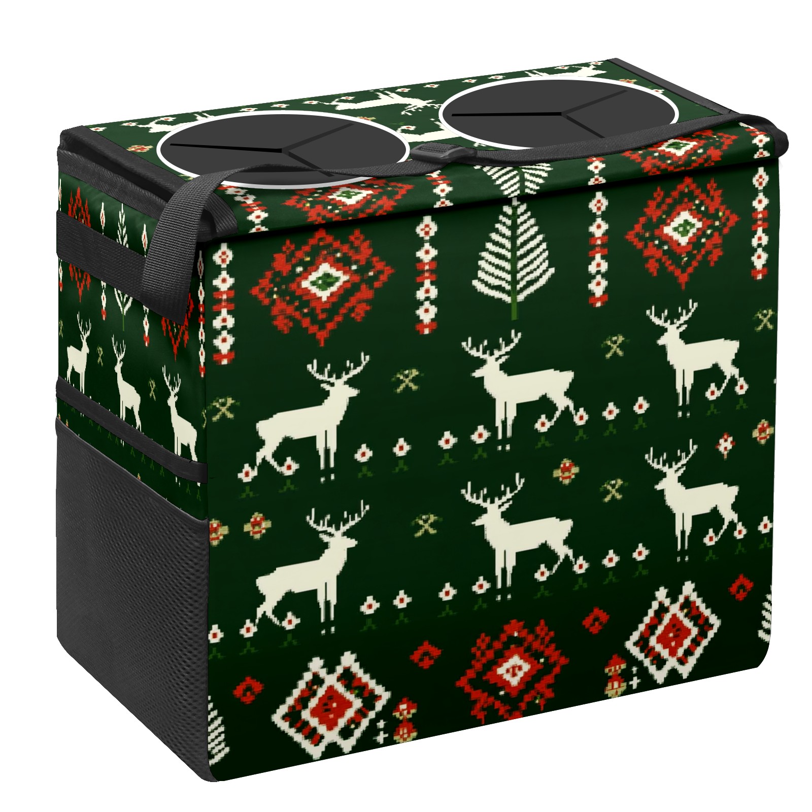 Car Trash Can with Lid, Portable Hanging Automotive Garbage Bin for Vehicles, Leakproof Waste Bag Container for SUV Truck Van Interior Auto Travel Road Trips(Christmas Sweater Pattern)