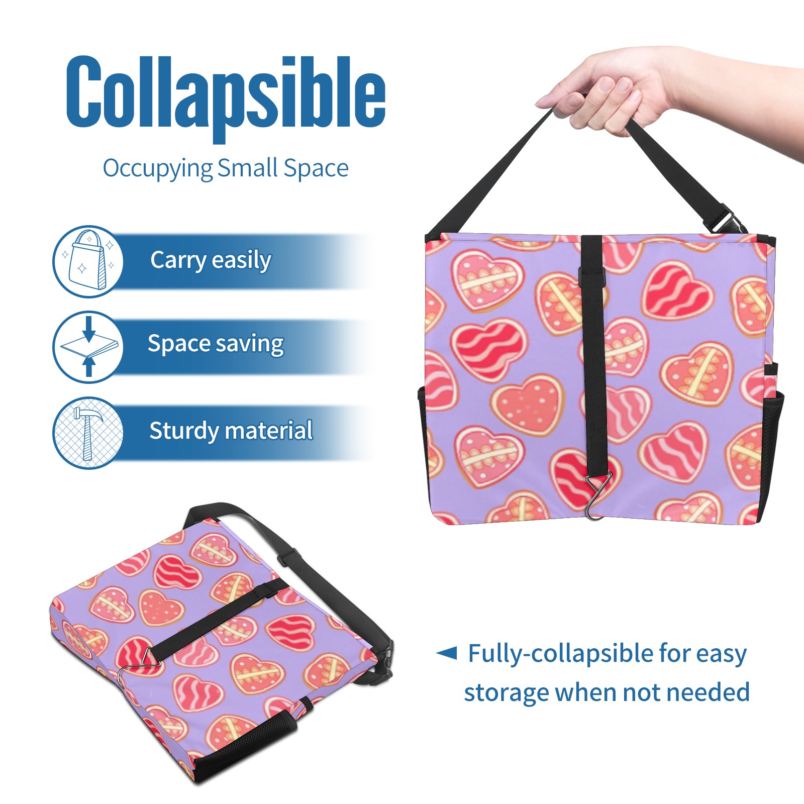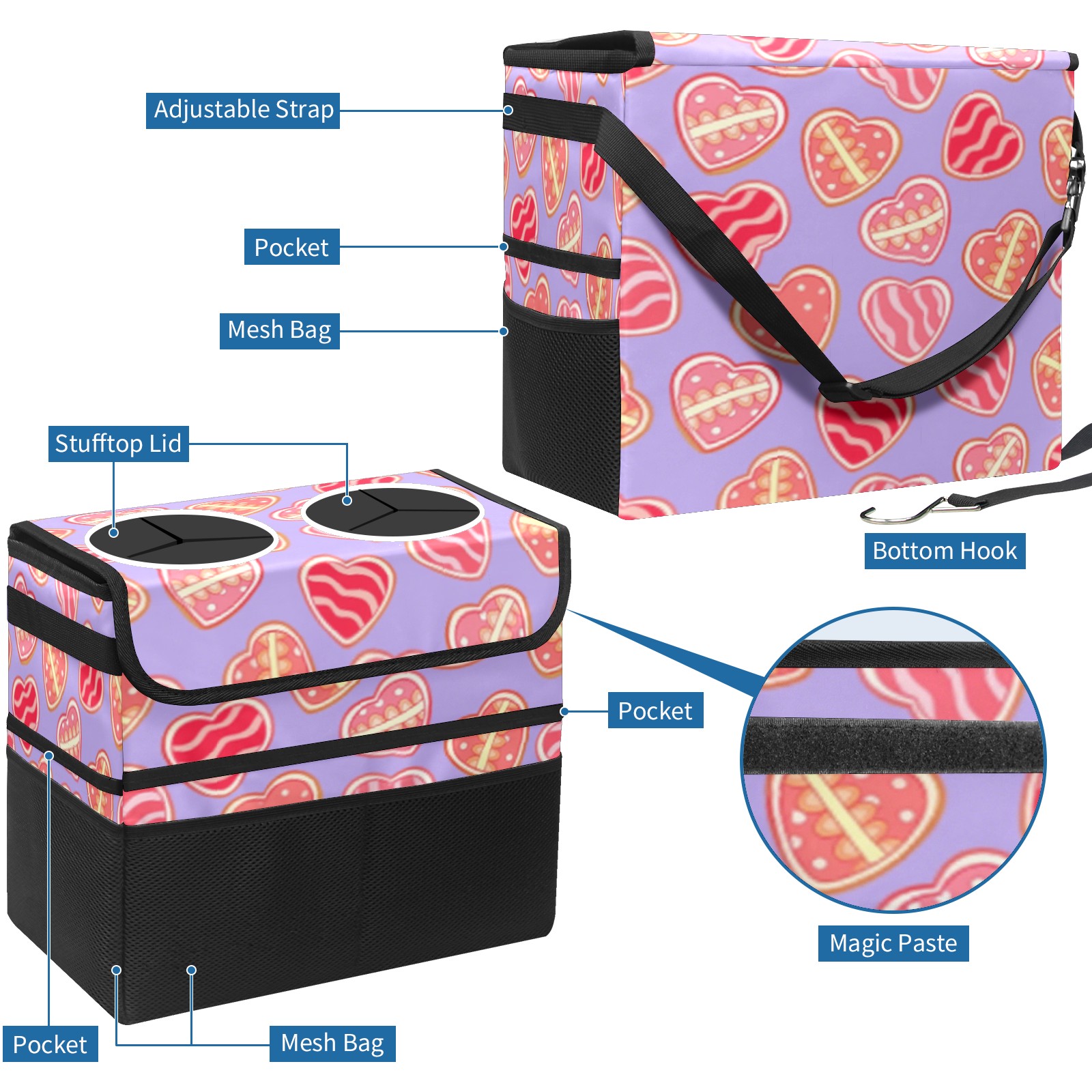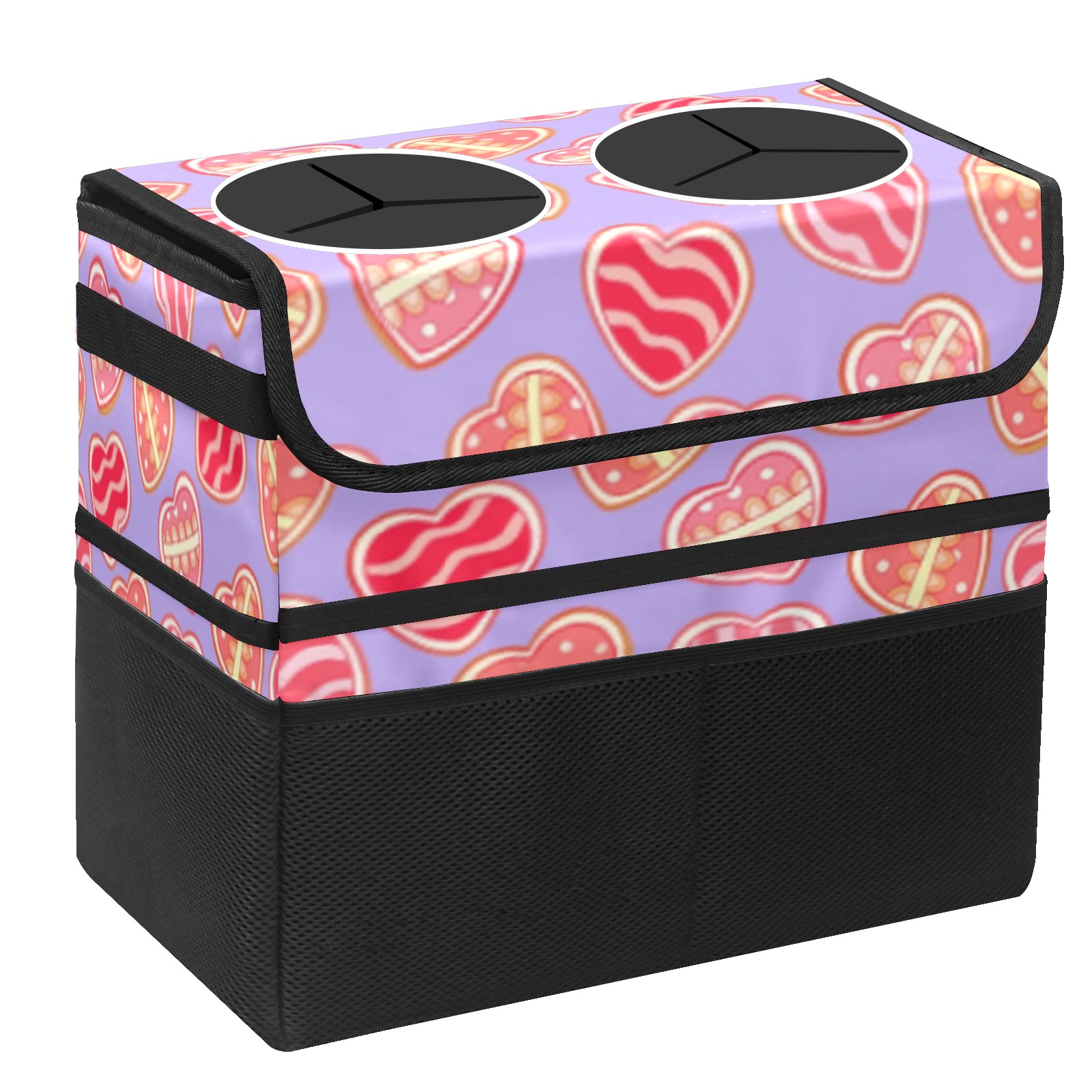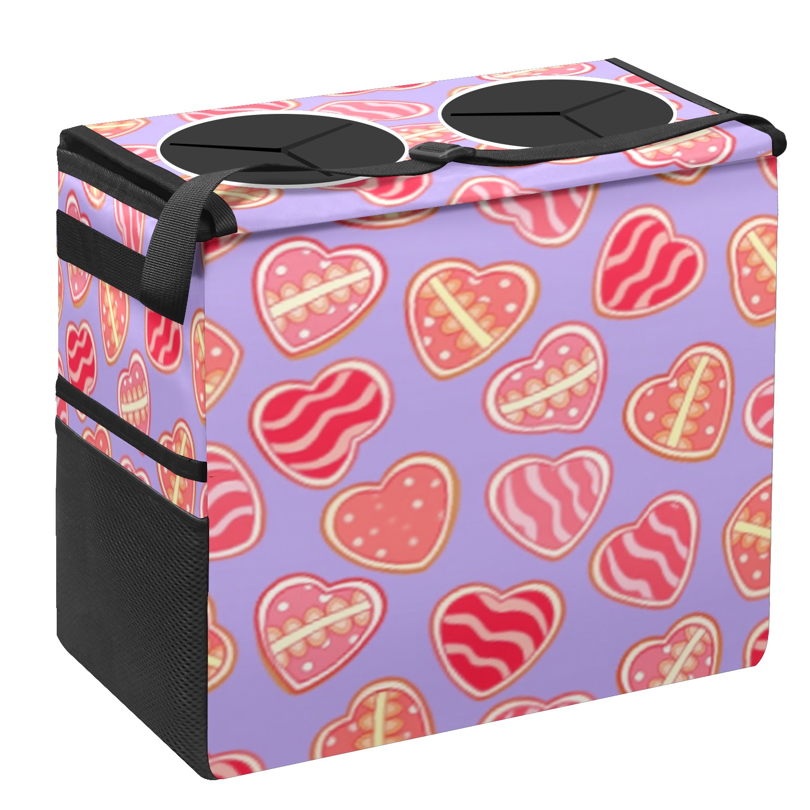 Car Trash Can with Lid, Portable Hanging Automotive Garbage Bin for Vehicles, Leakproof Waste Bag Container for SUV Truck Van Interior Auto Travel Road Trips(Sweet Hearts)