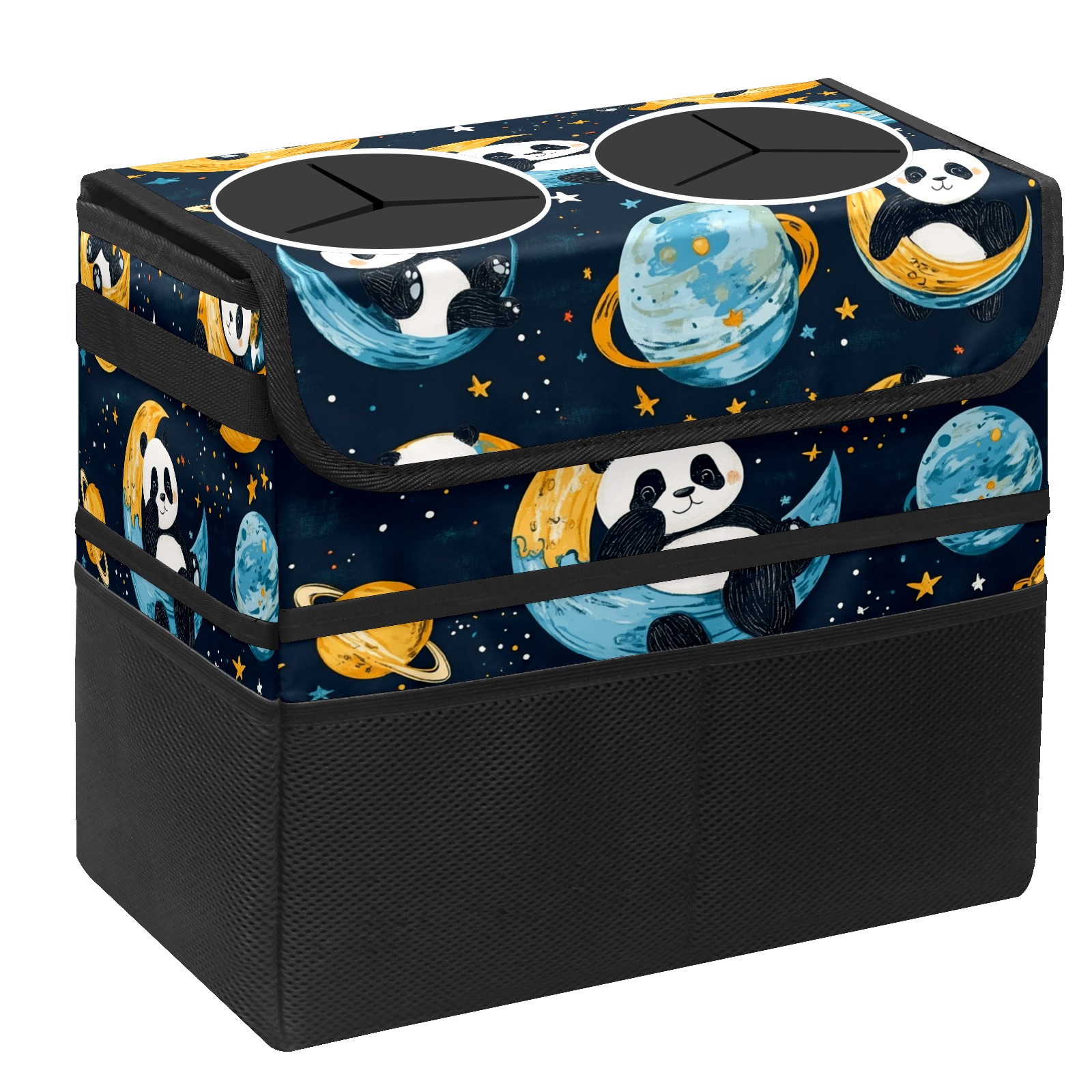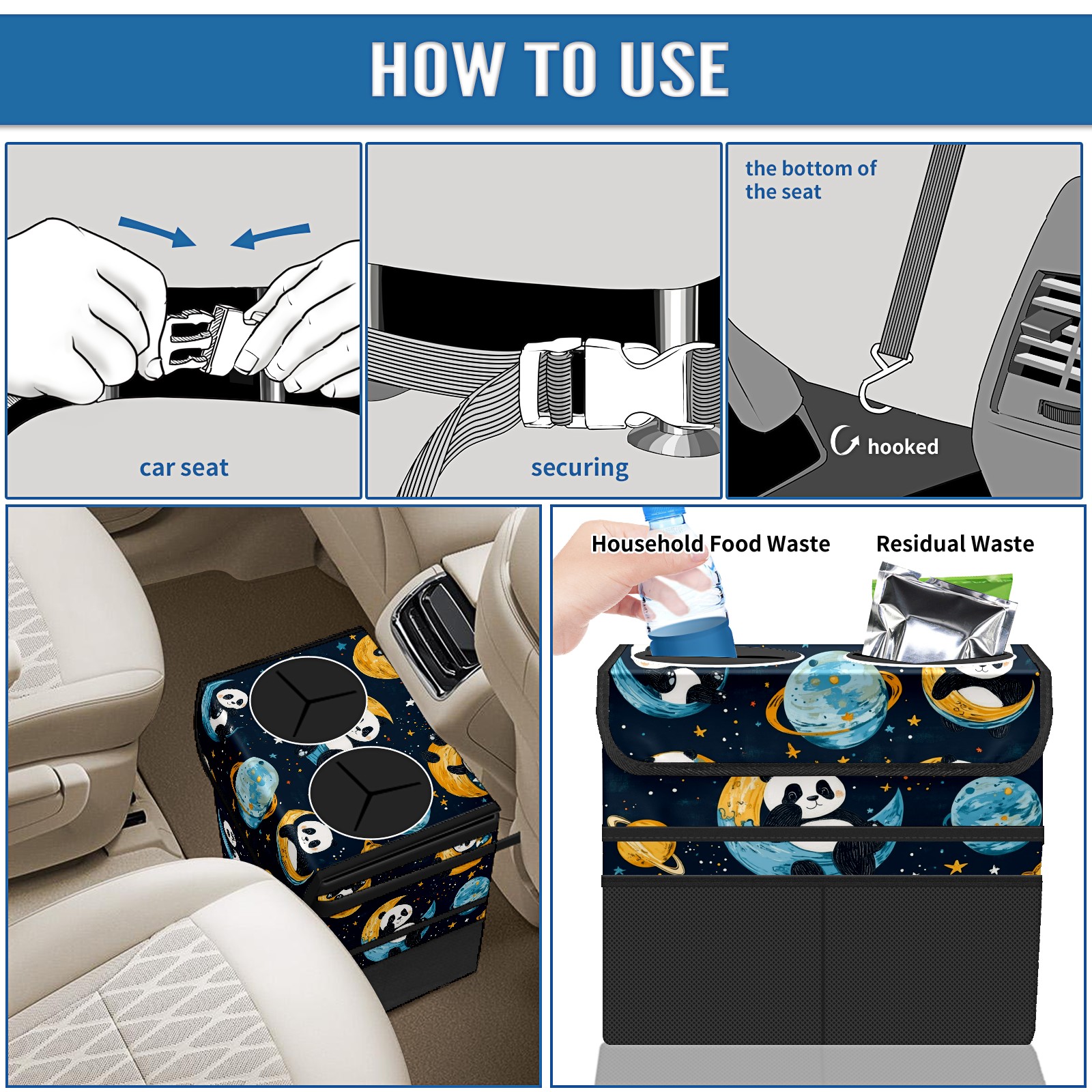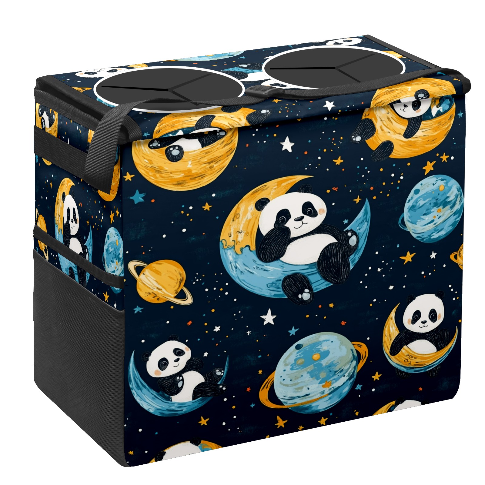Car Trash Can with Lid, Portable Hanging Automotive Garbage Bin for Vehicles, Leakproof Waste Bag Container for SUV Truck Van Interior Auto Travel Road Trips(Playful Pandas Floating)