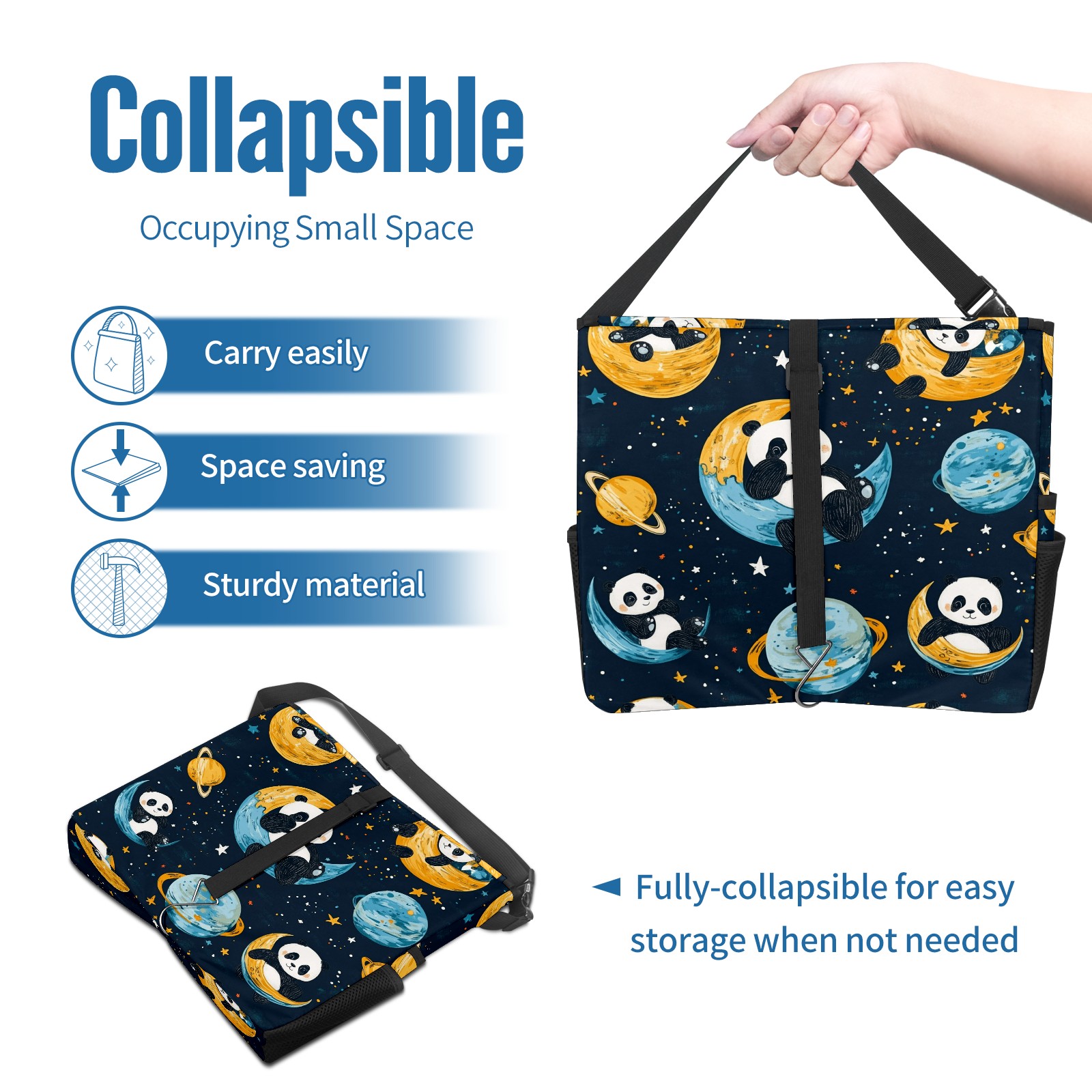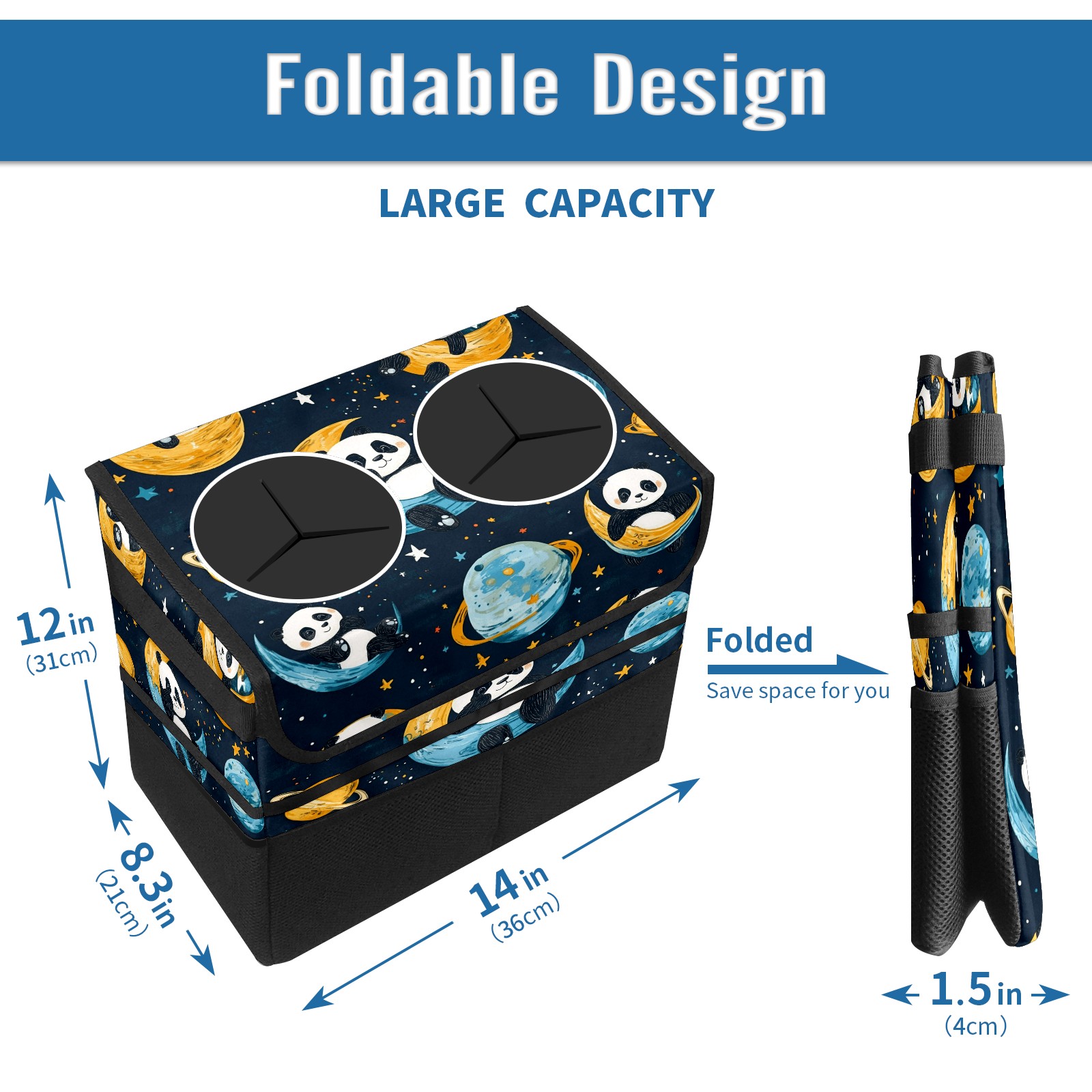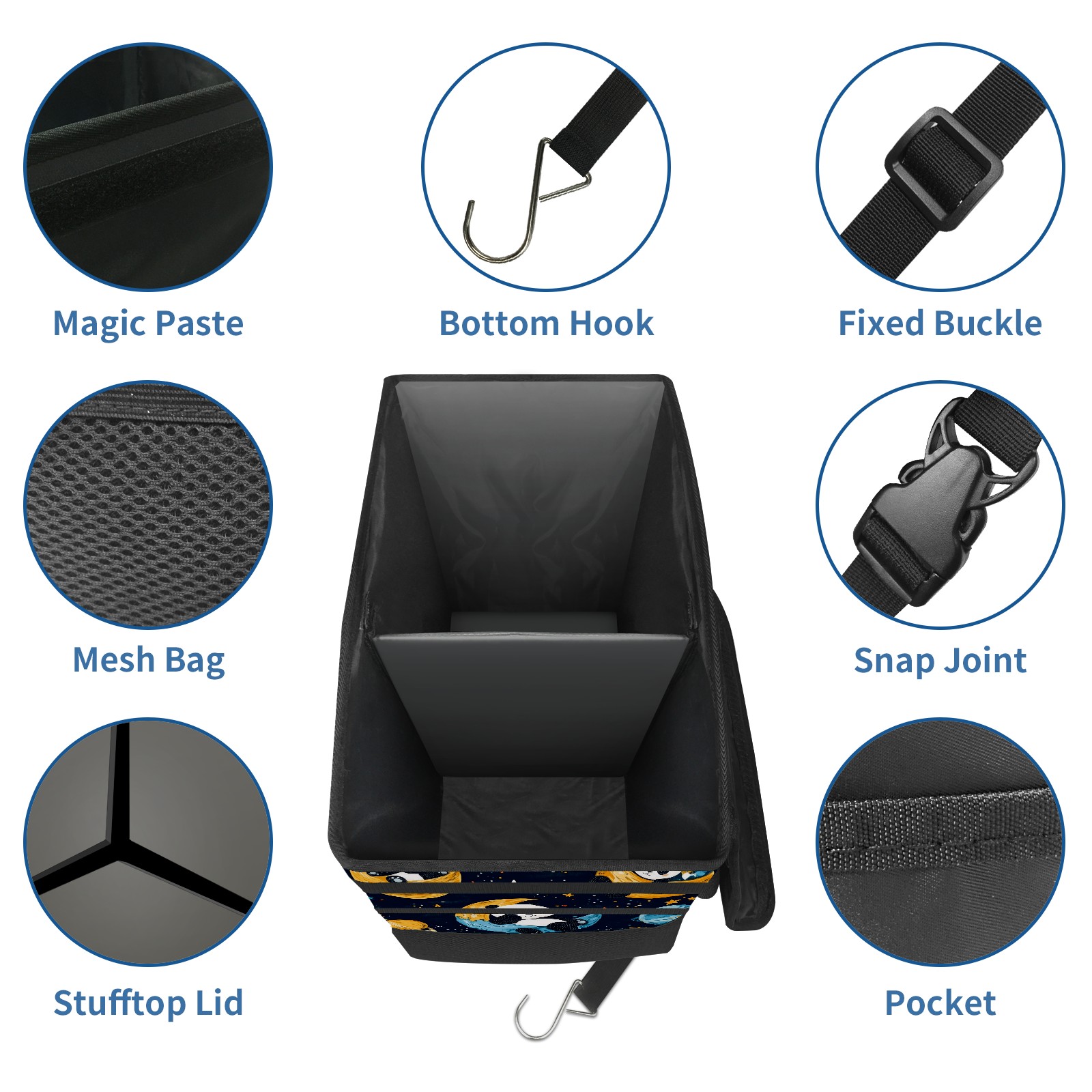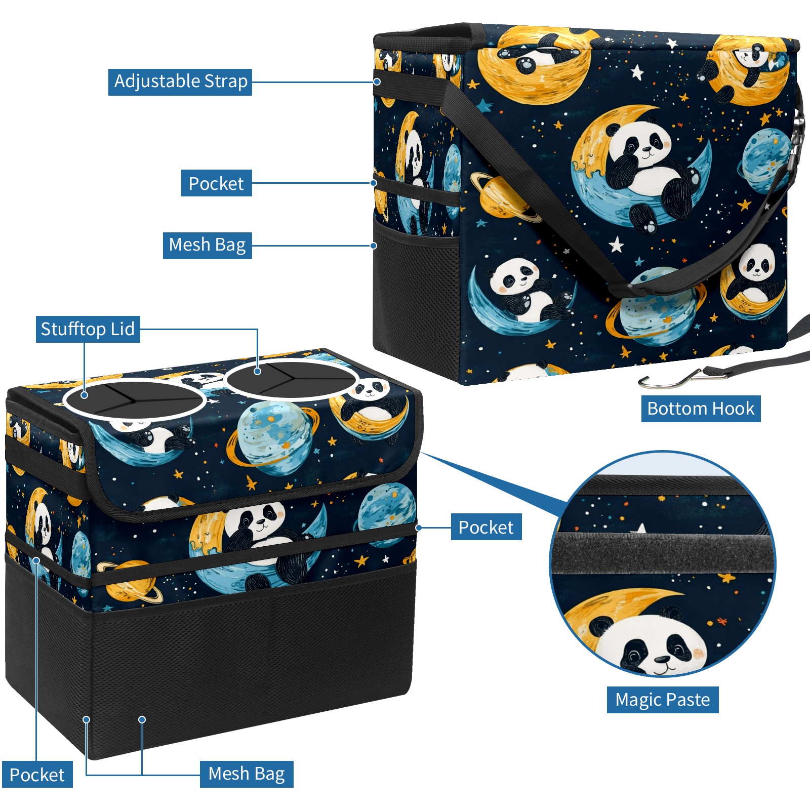 Car Trash Can with Lid, Portable Hanging Automotive Garbage Bin for Vehicles, Leakproof Waste Bag Container for SUV Truck Van Interior Auto Travel Road Trips(Playful Pandas Floating)