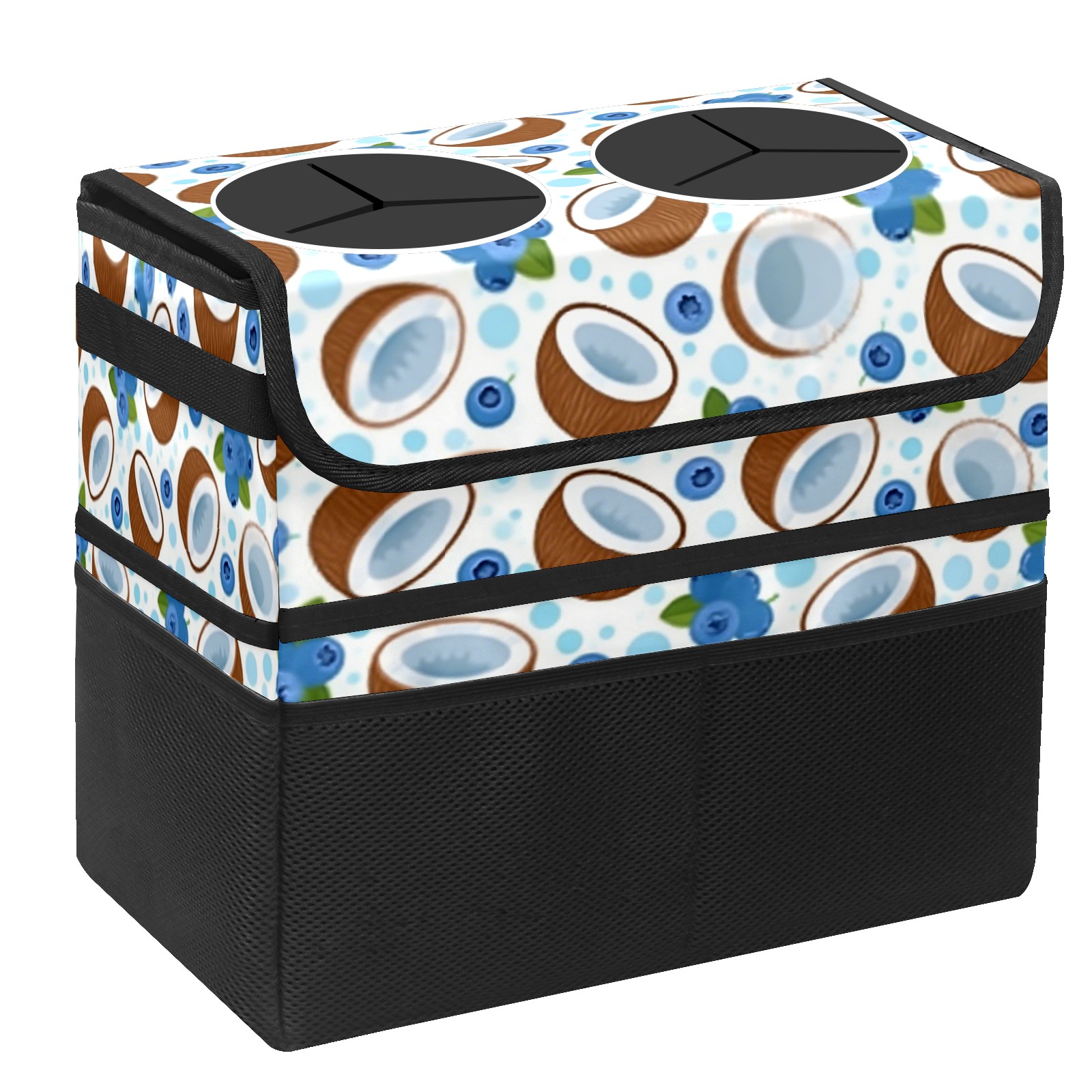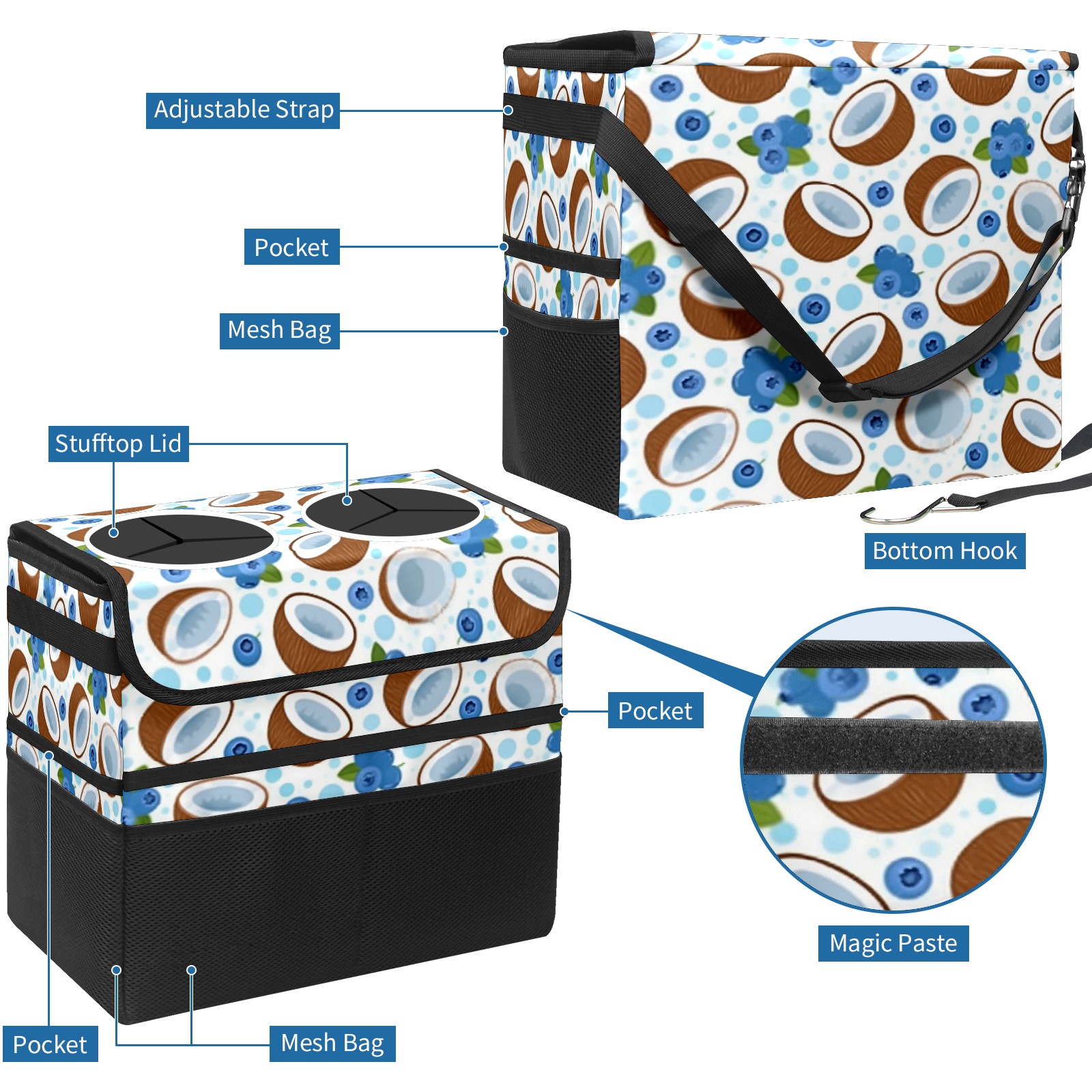 Car Trash Can with Lid, Portable Hanging Automotive Garbage Bin for Vehicles, Leakproof Waste Bag Container for SUV Truck Van Interior Auto Travel Road Trips(Blueberry Coconut)