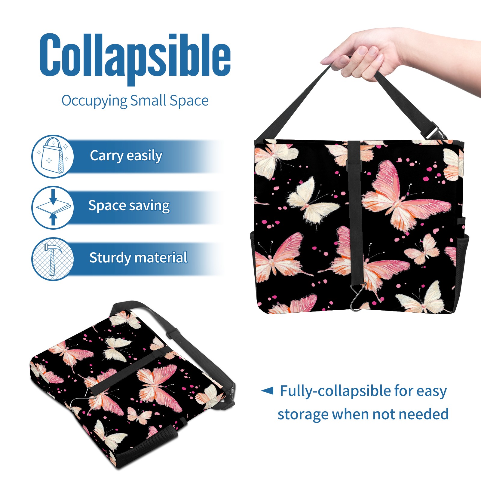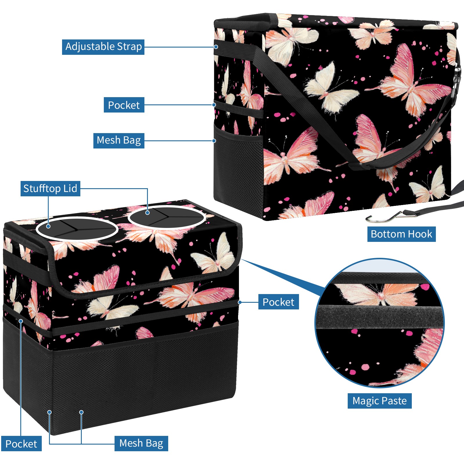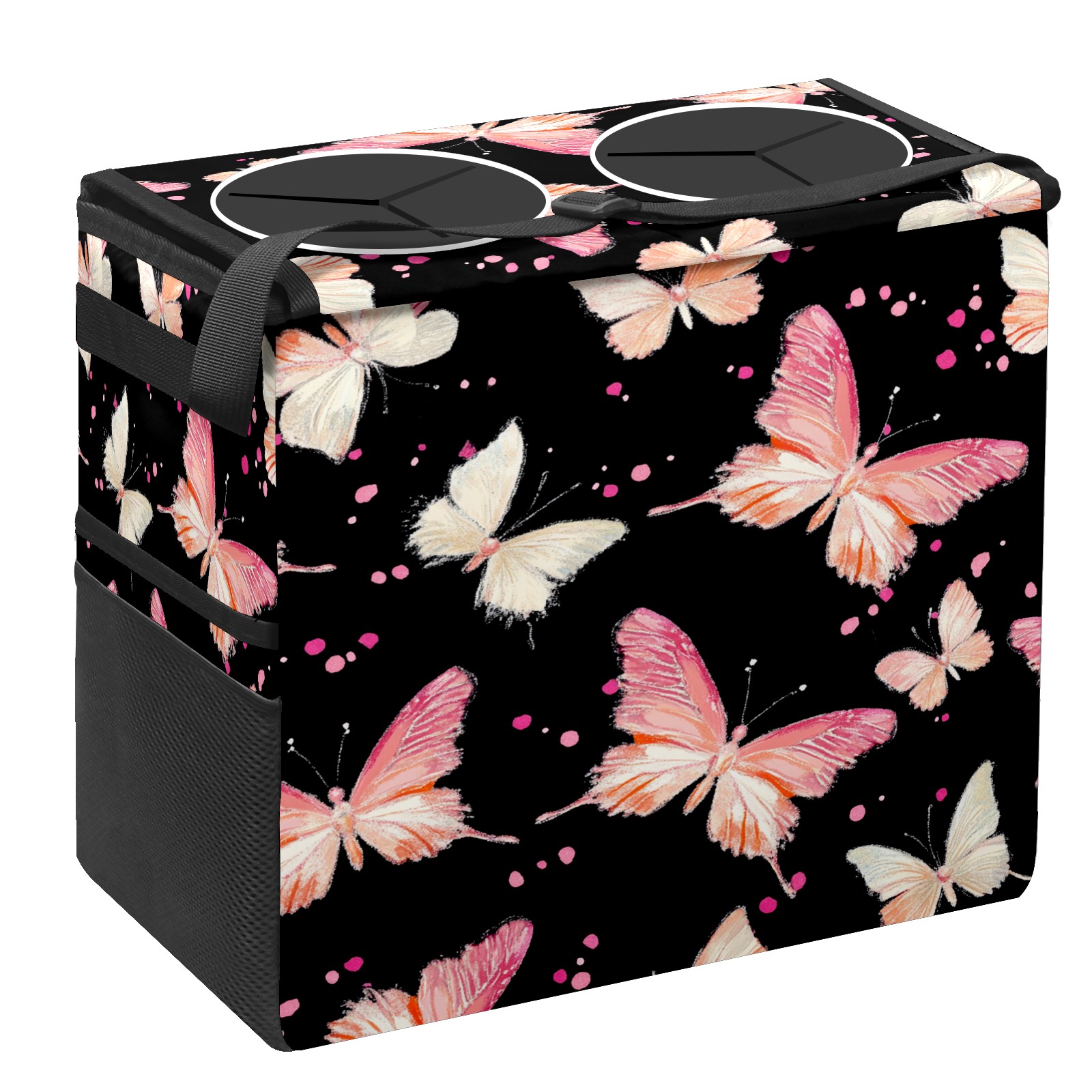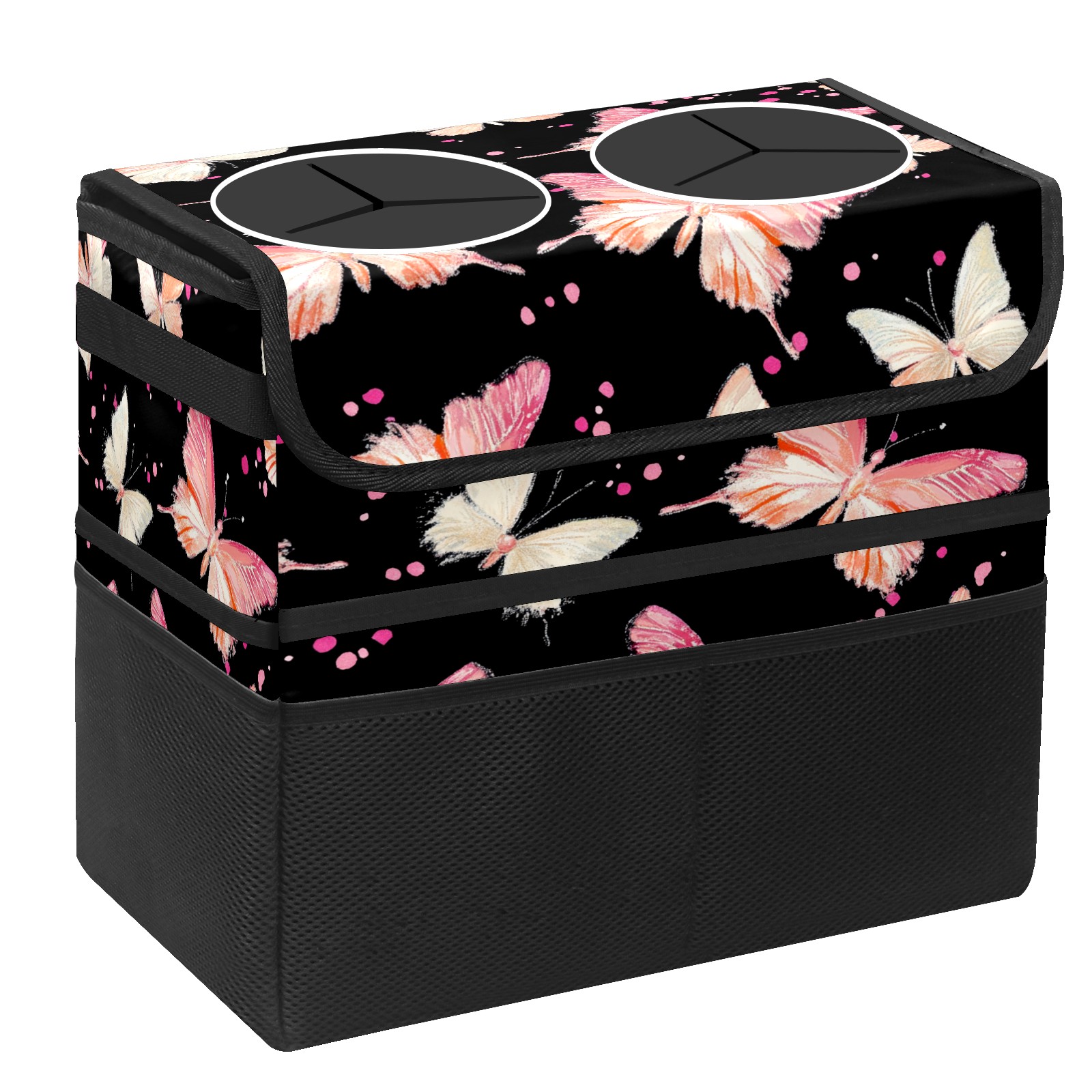 Car Trash Can with Lid, Portable Hanging Automotive Garbage Bin for Vehicles, Leakproof Waste Bag Container for SUV Truck Van Interior Auto Travel Road Trips(Pink And White Butterflies)