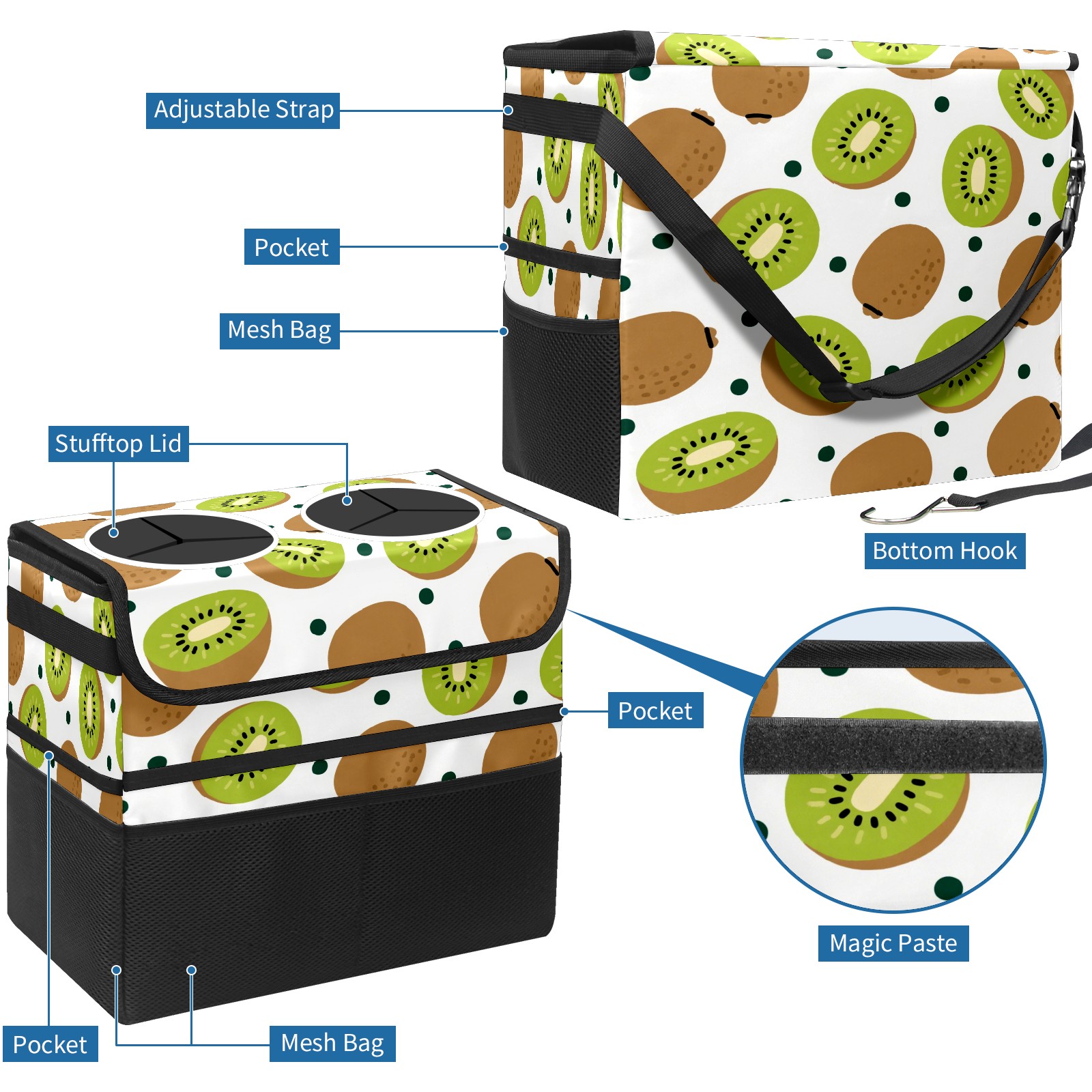 Car Trash Can with Lid, Portable Hanging Automotive Garbage Bin for Vehicles, Leakproof Waste Bag Container for SUV Truck Van Interior Auto Travel Road Trips(Kiwi)