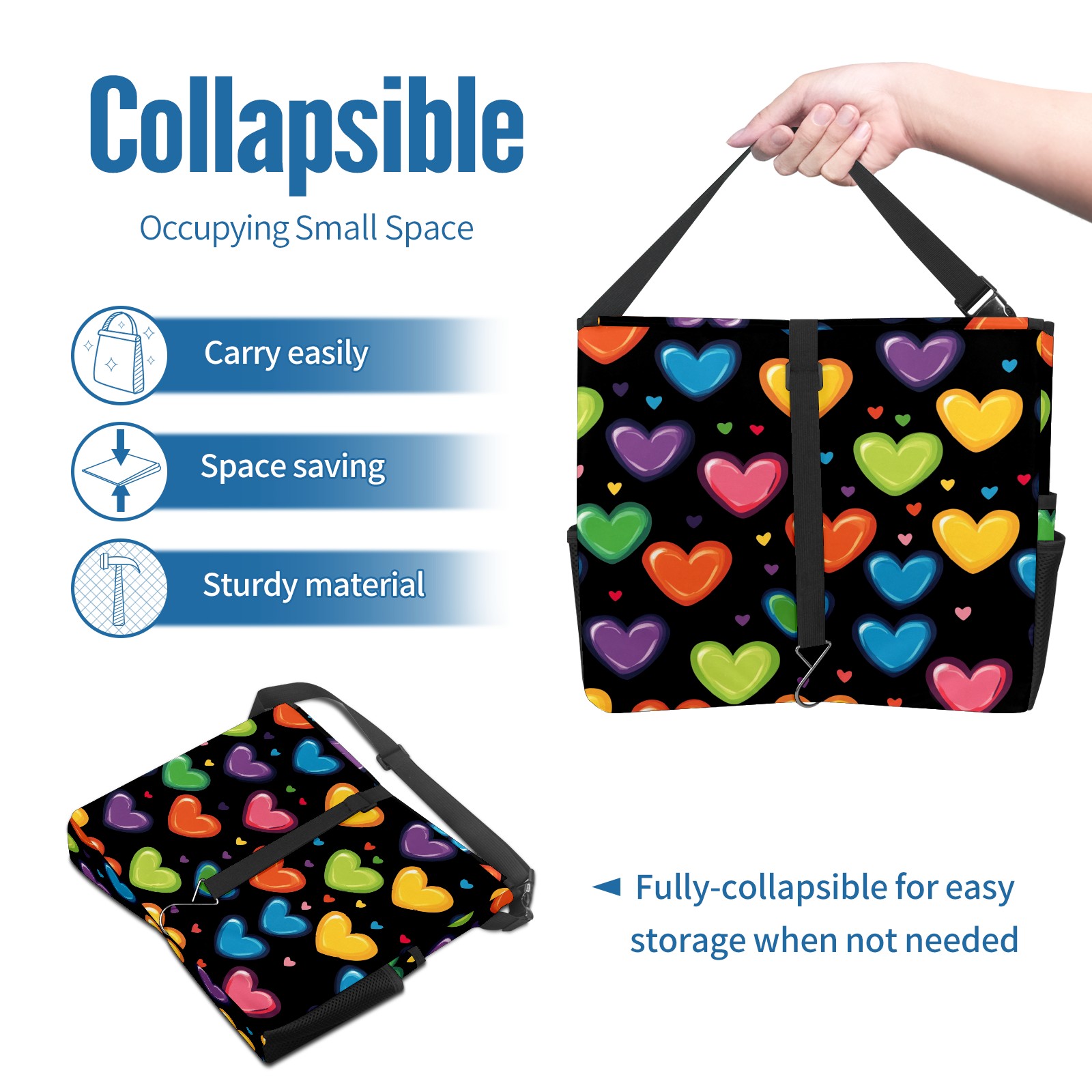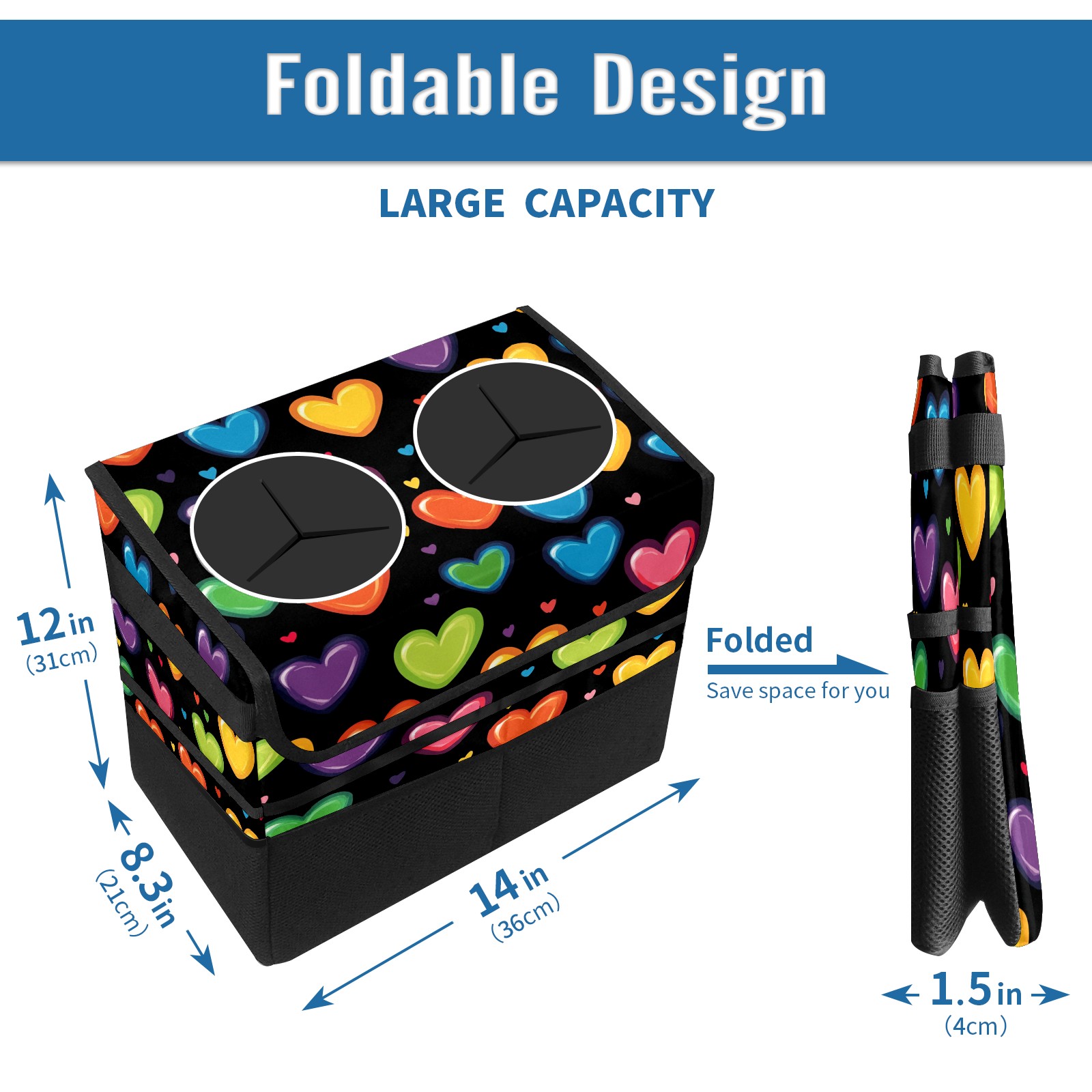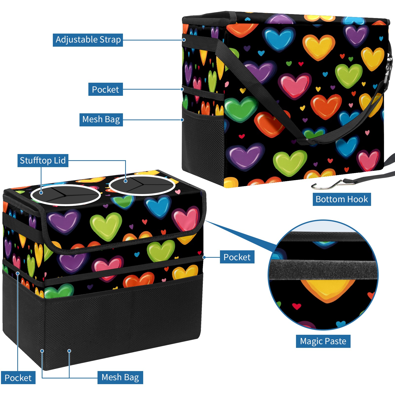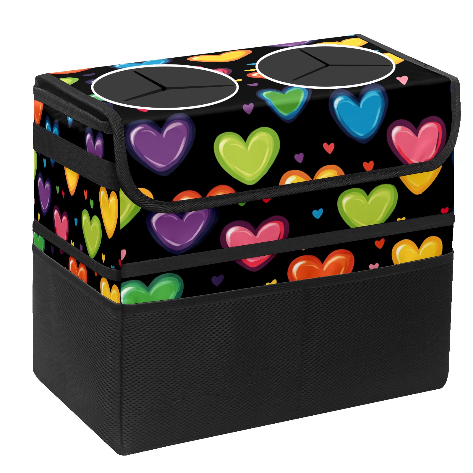Car Trash Can with Lid, Portable Hanging Automotive Garbage Bin for Vehicles, Leakproof Waste Bag Container for SUV Truck Van Interior Auto Travel Road Trips(Hearts In Rainbow Colors)