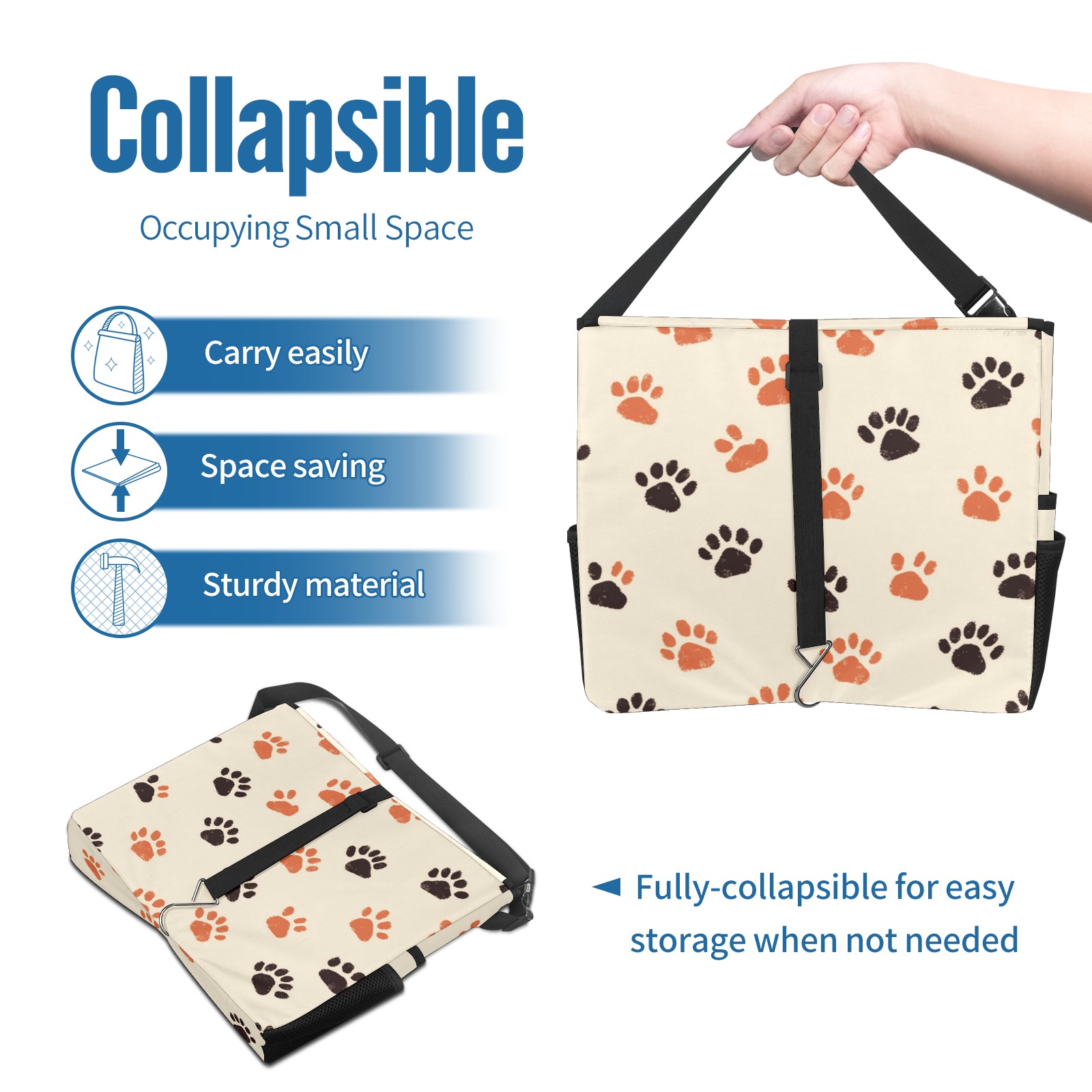 Car Trash Can with Lid, Portable Hanging Automotive Garbage Bin for Vehicles, Leakproof Waste Bag Container for SUV Truck Van Interior Auto Travel Road Trips(Cute Paw Prints)