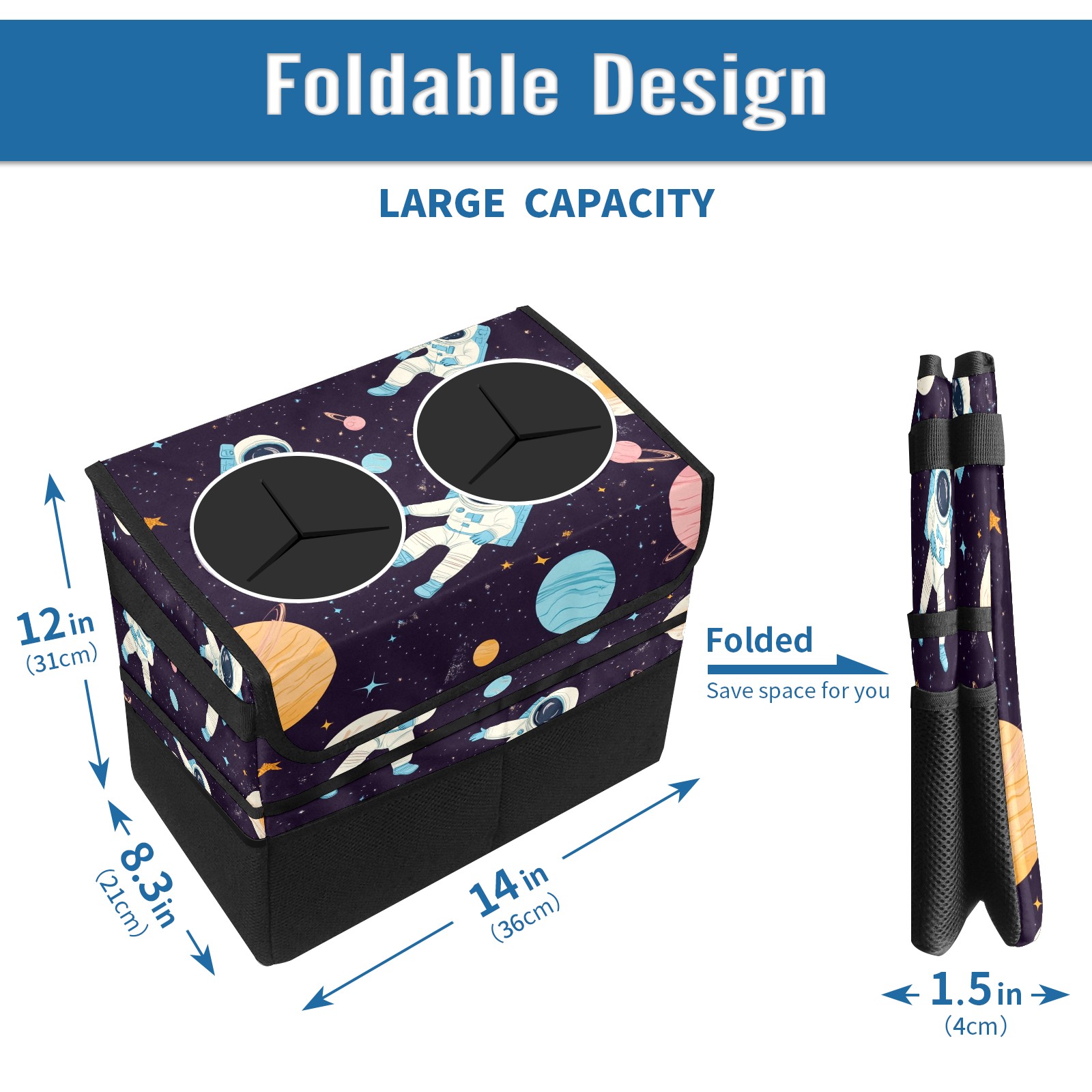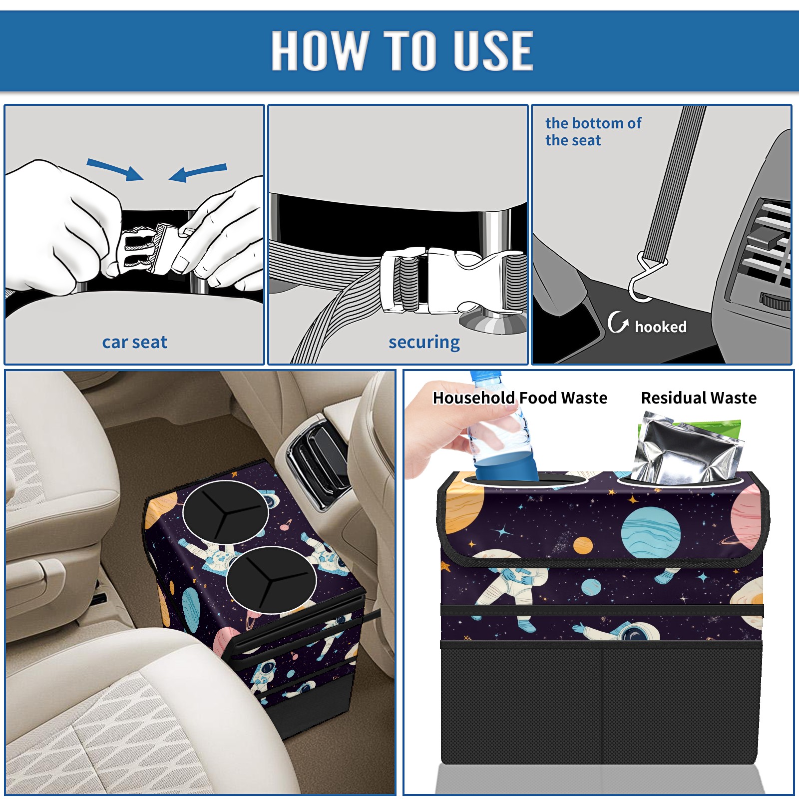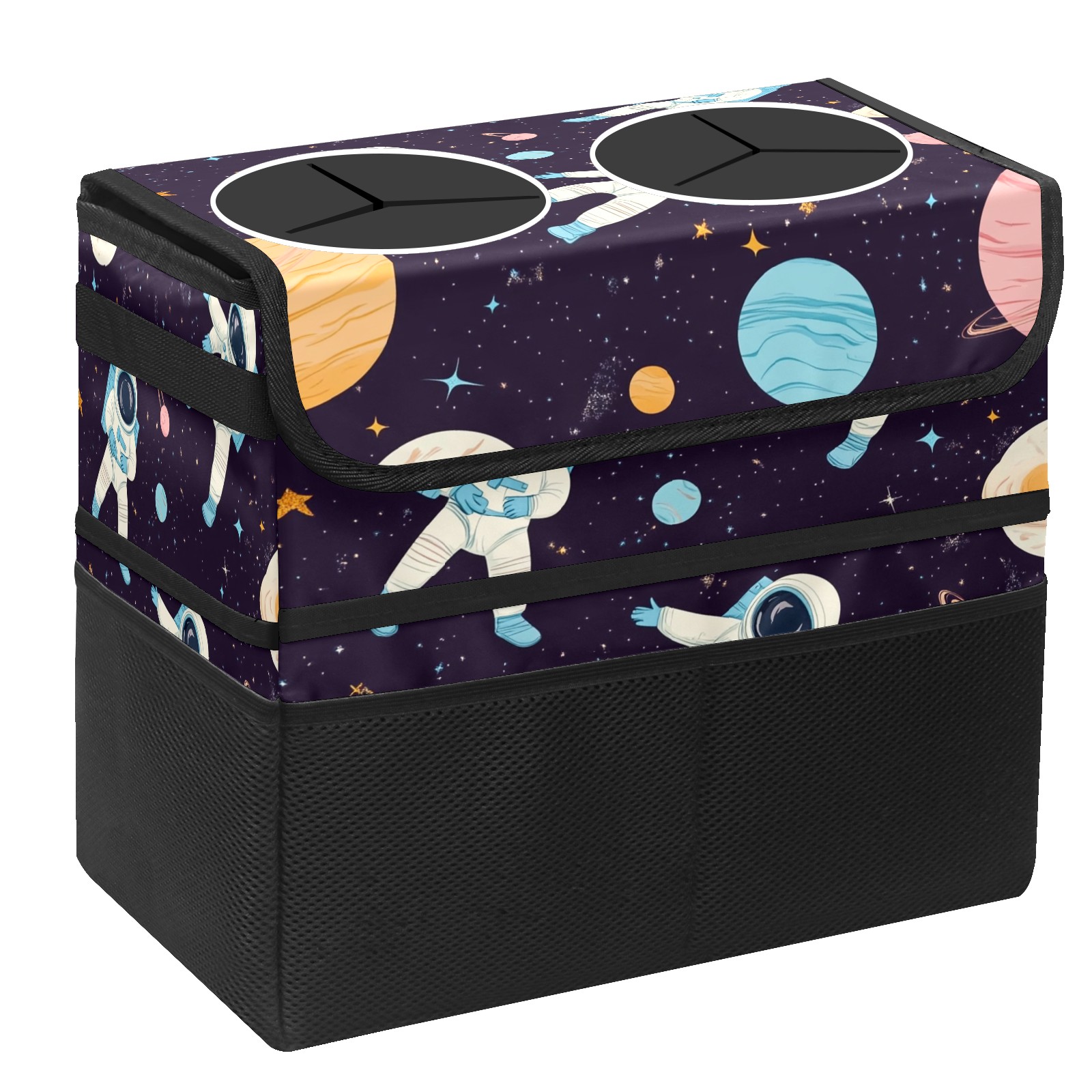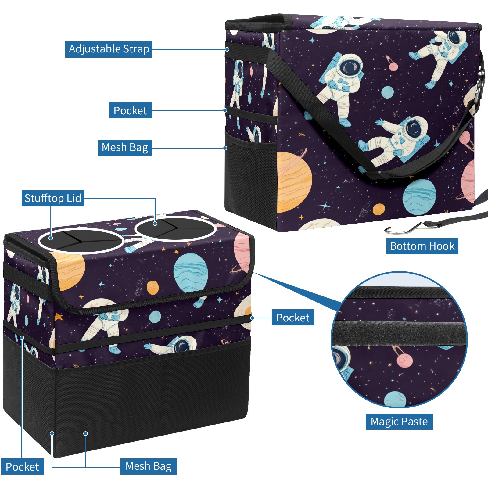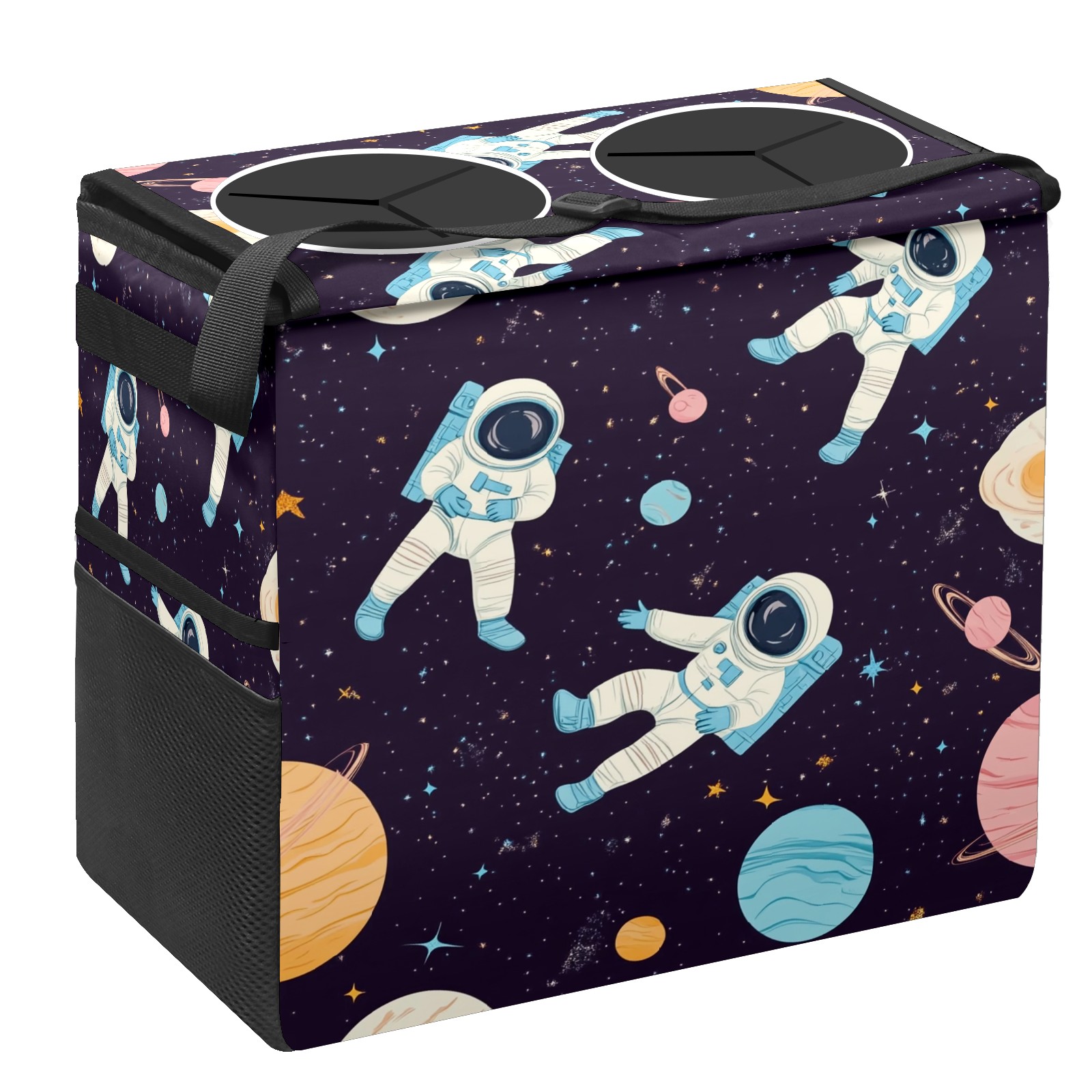 Car Trash Can with Lid, Portable Hanging Automotive Garbage Bin for Vehicles, Leakproof Waste Bag Container for SUV Truck Van Interior Auto Travel Road Trips(Astronauts Floating)