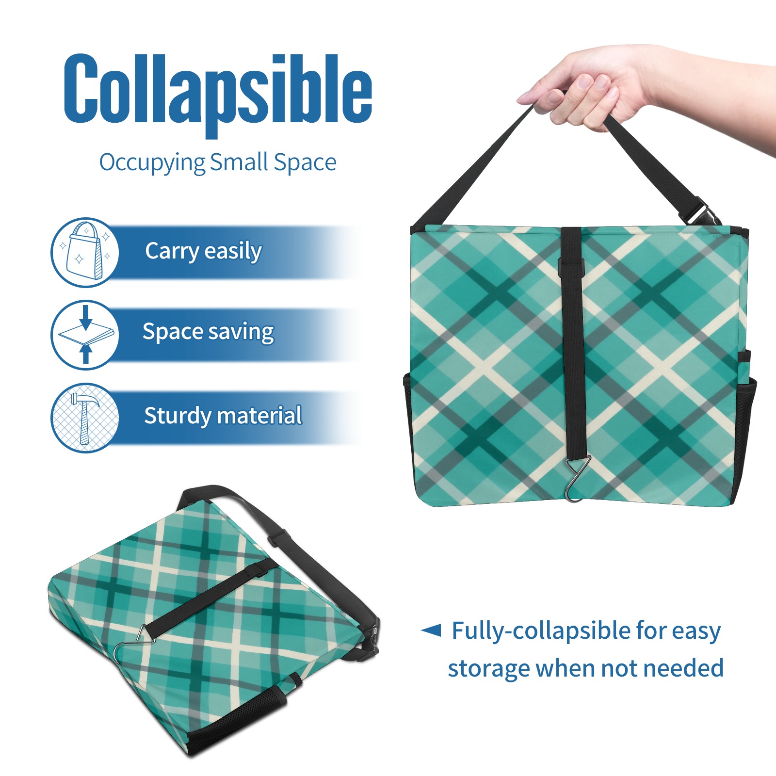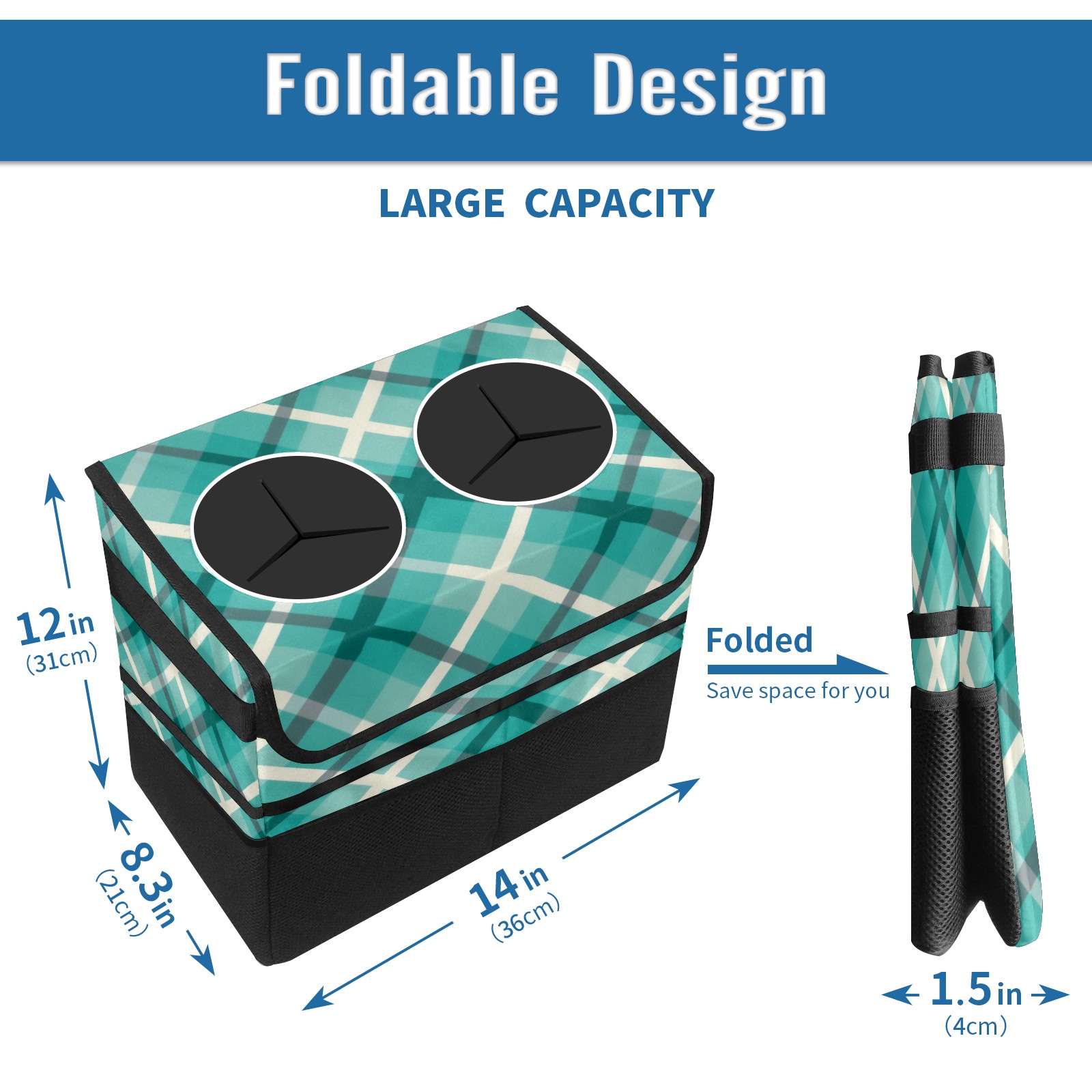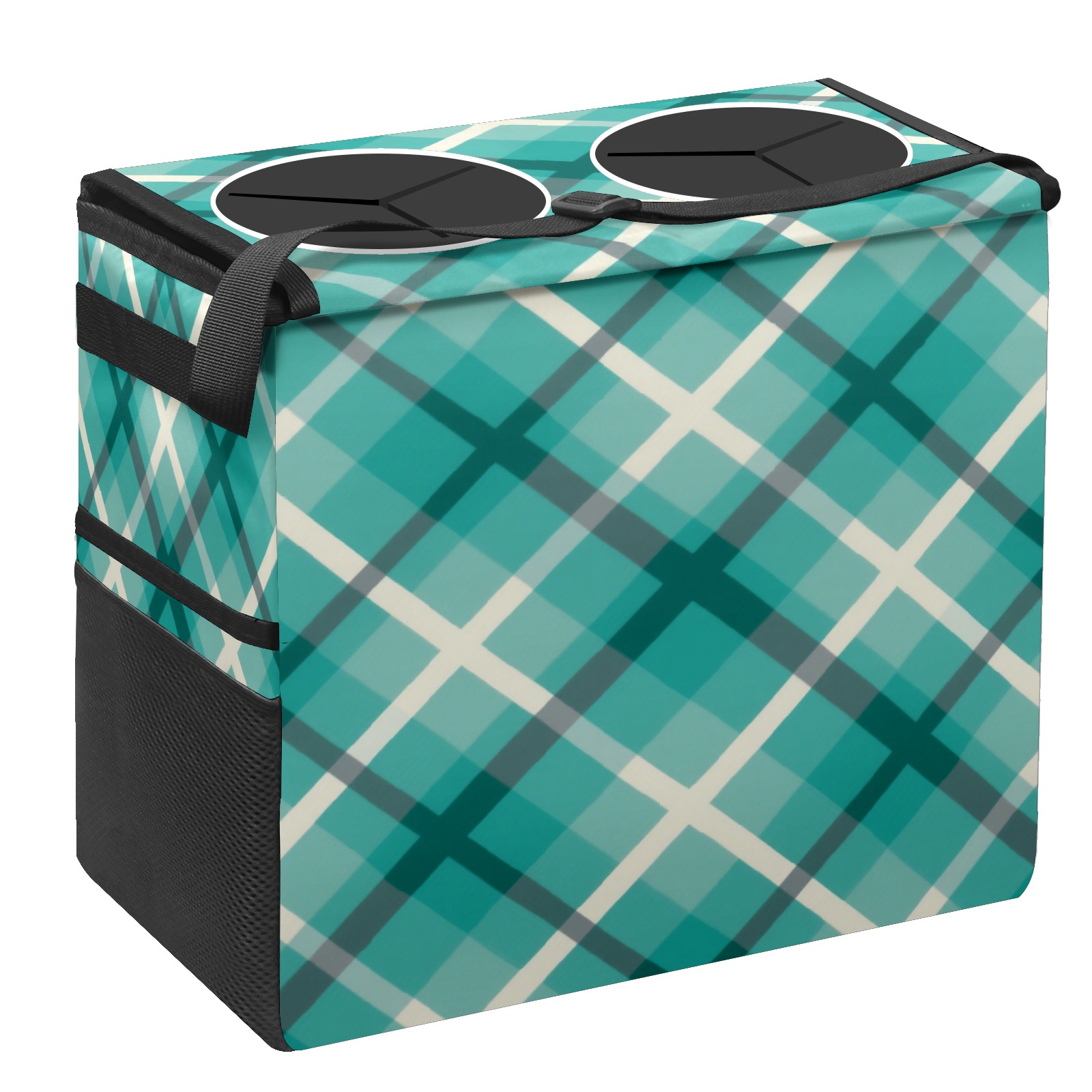 Car Trash Can with Lid, Portable Hanging Automotive Garbage Bin for Vehicles, Leakproof Waste Bag Container for SUV Truck Van Interior Auto Travel Road Trips(Blue Checkered)