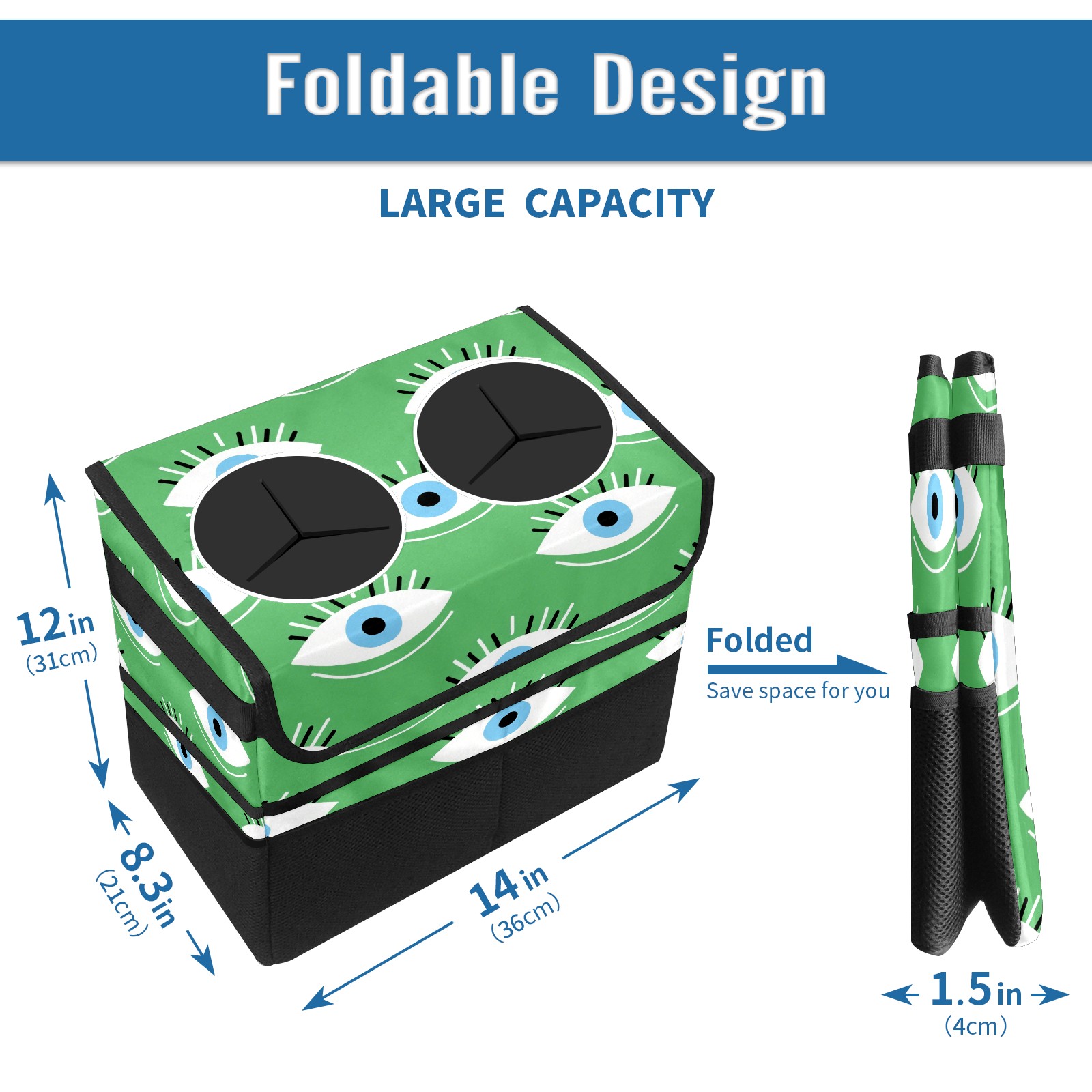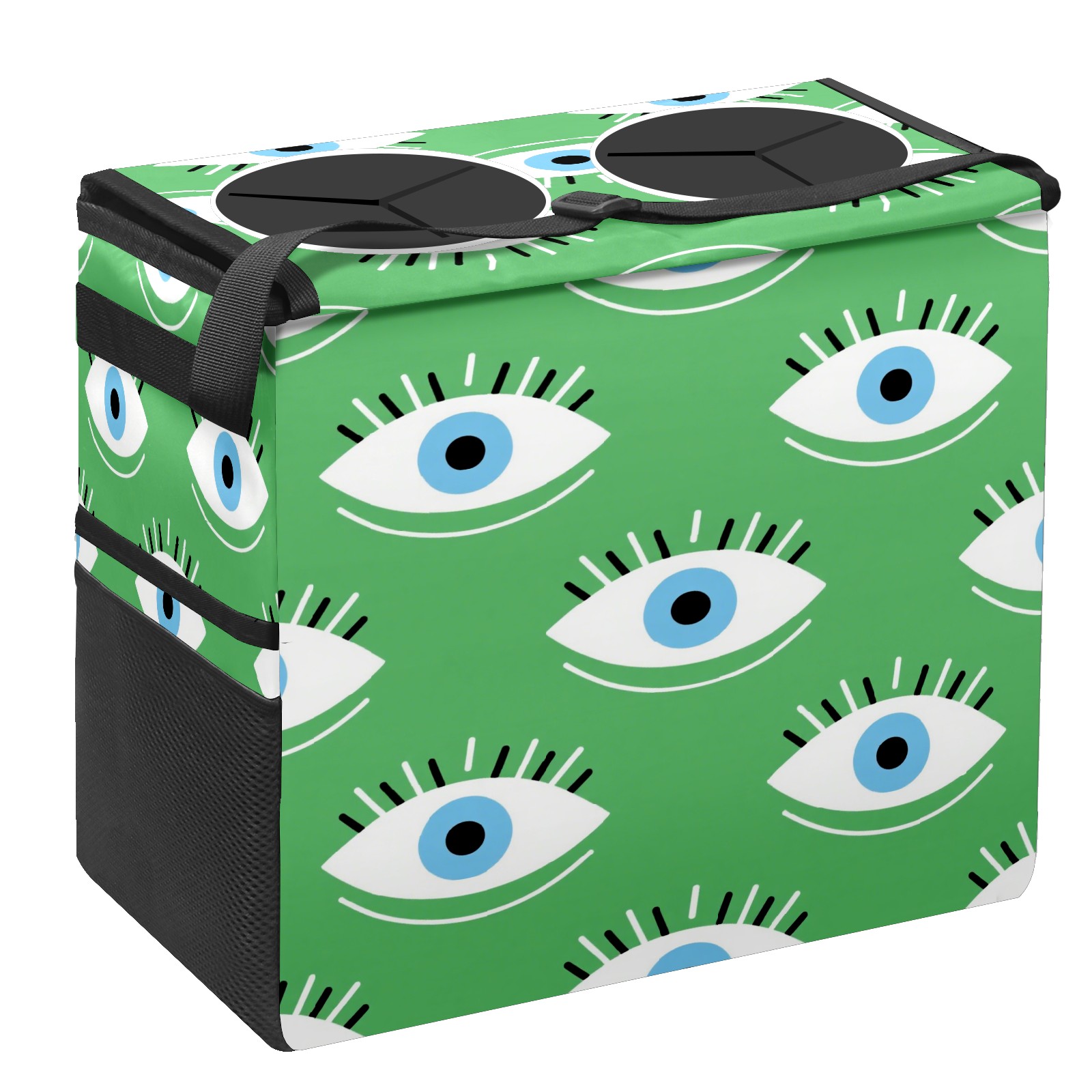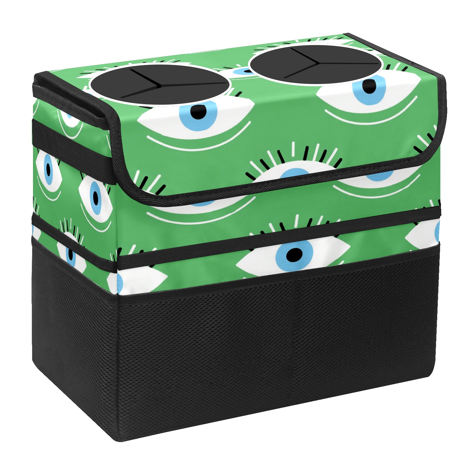 Car Trash Can with Lid, Portable Hanging Automotive Garbage Bin for Vehicles, Leakproof Waste Bag Container for SUV Truck Van Interior Auto Travel Road Trips(Green Eyes)