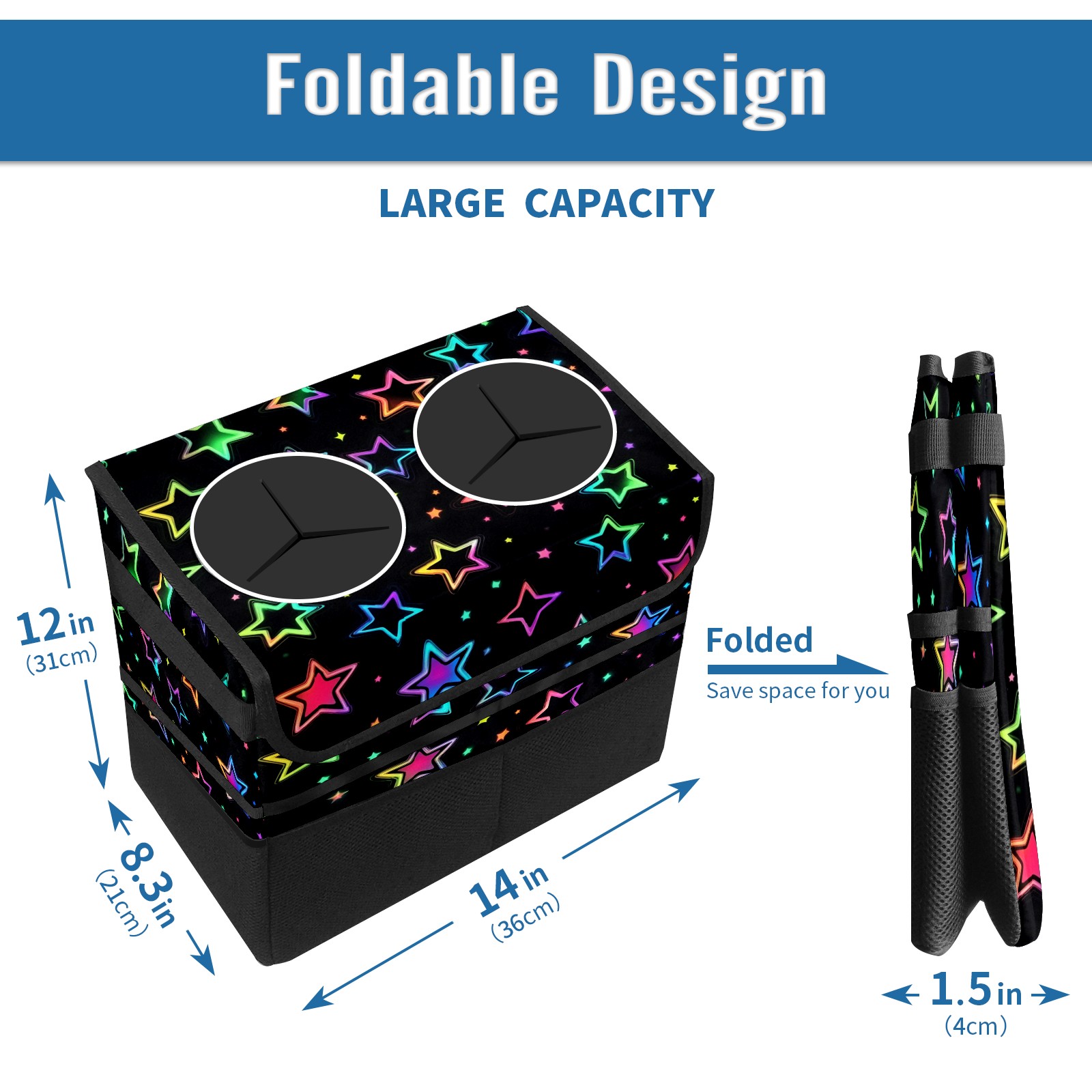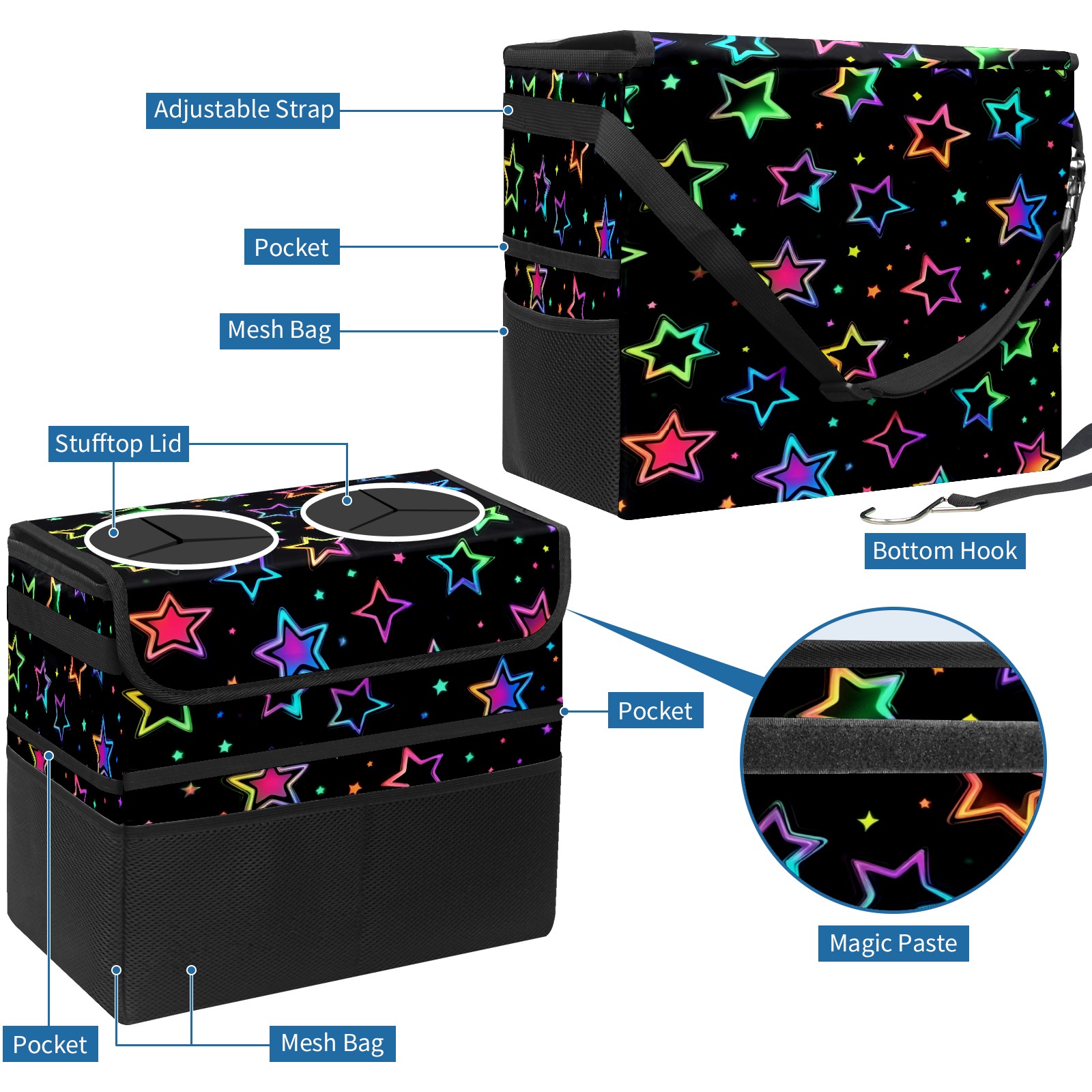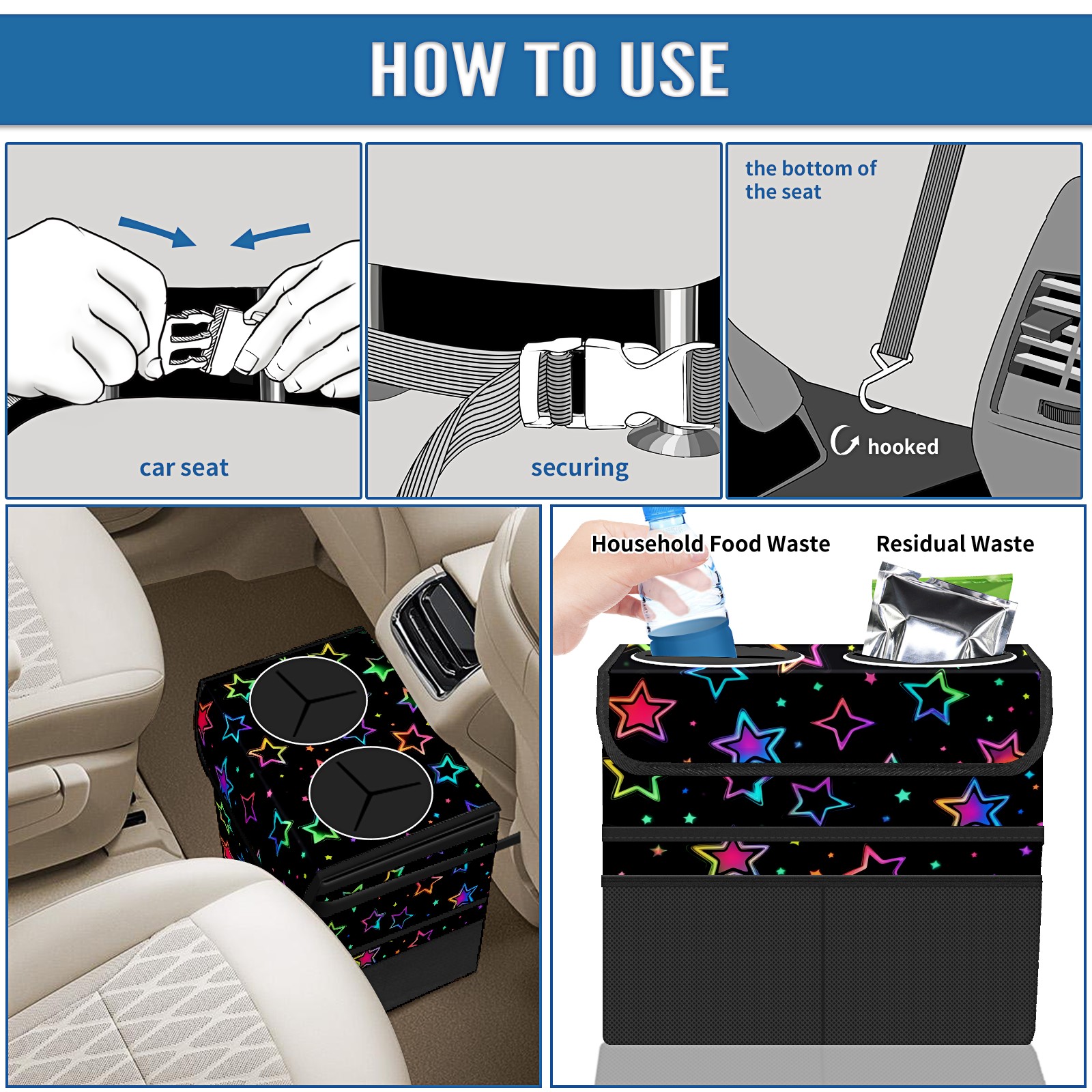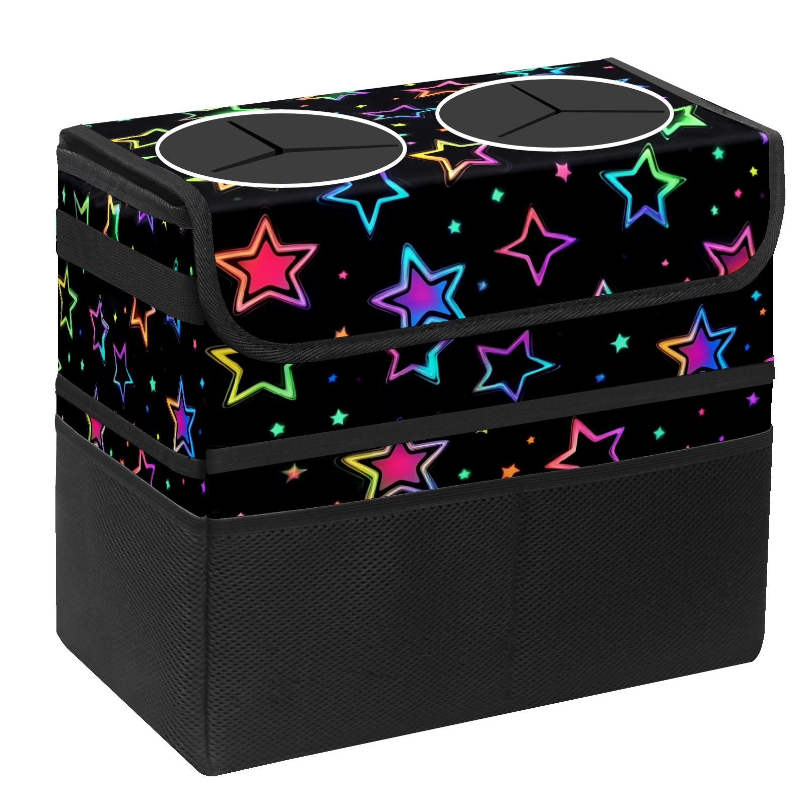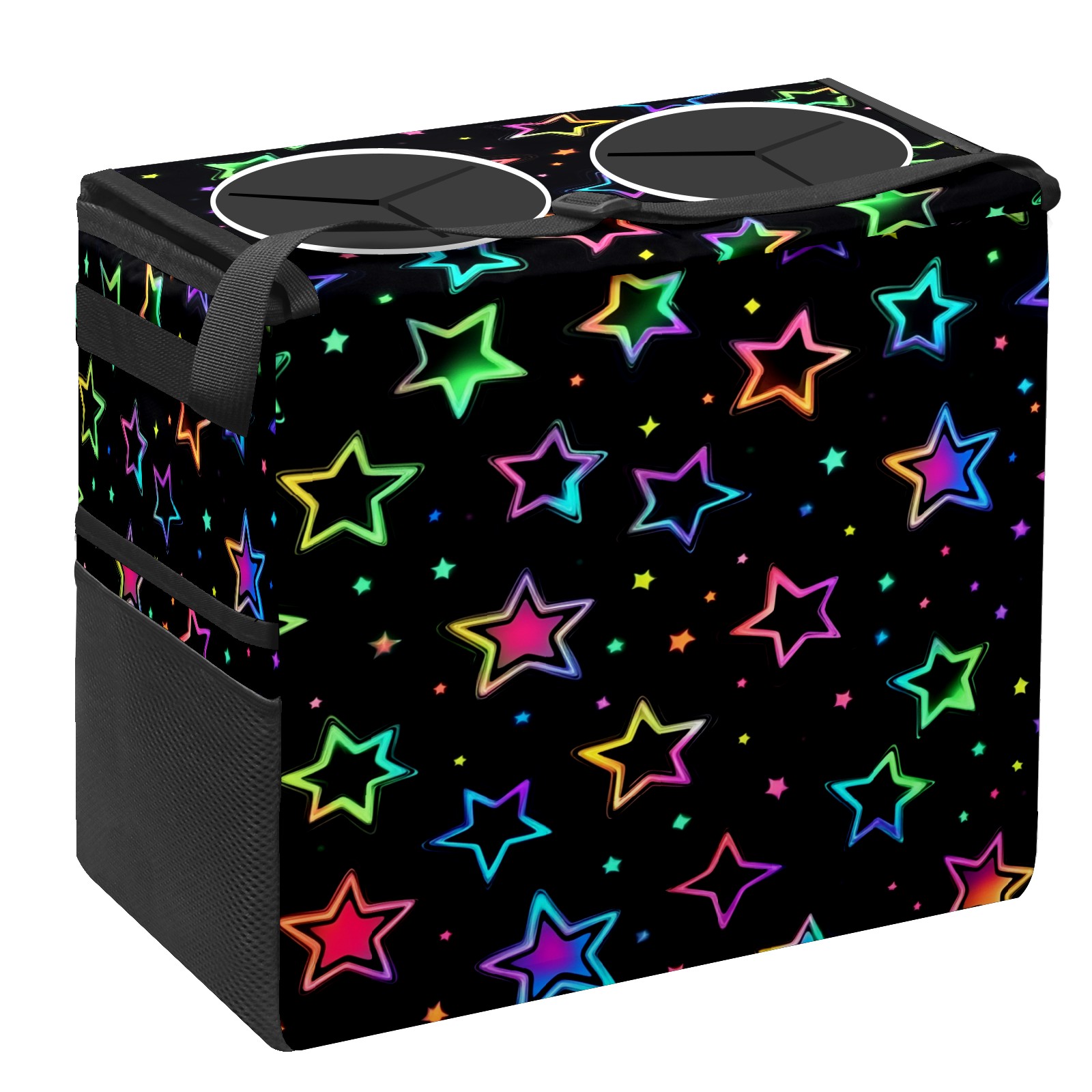 Car Trash Can with Lid, Portable Hanging Automotive Garbage Bin for Vehicles, Leakproof Waste Bag Container for SUV Truck Van Interior Auto Travel Road Trips(Neon Stars)