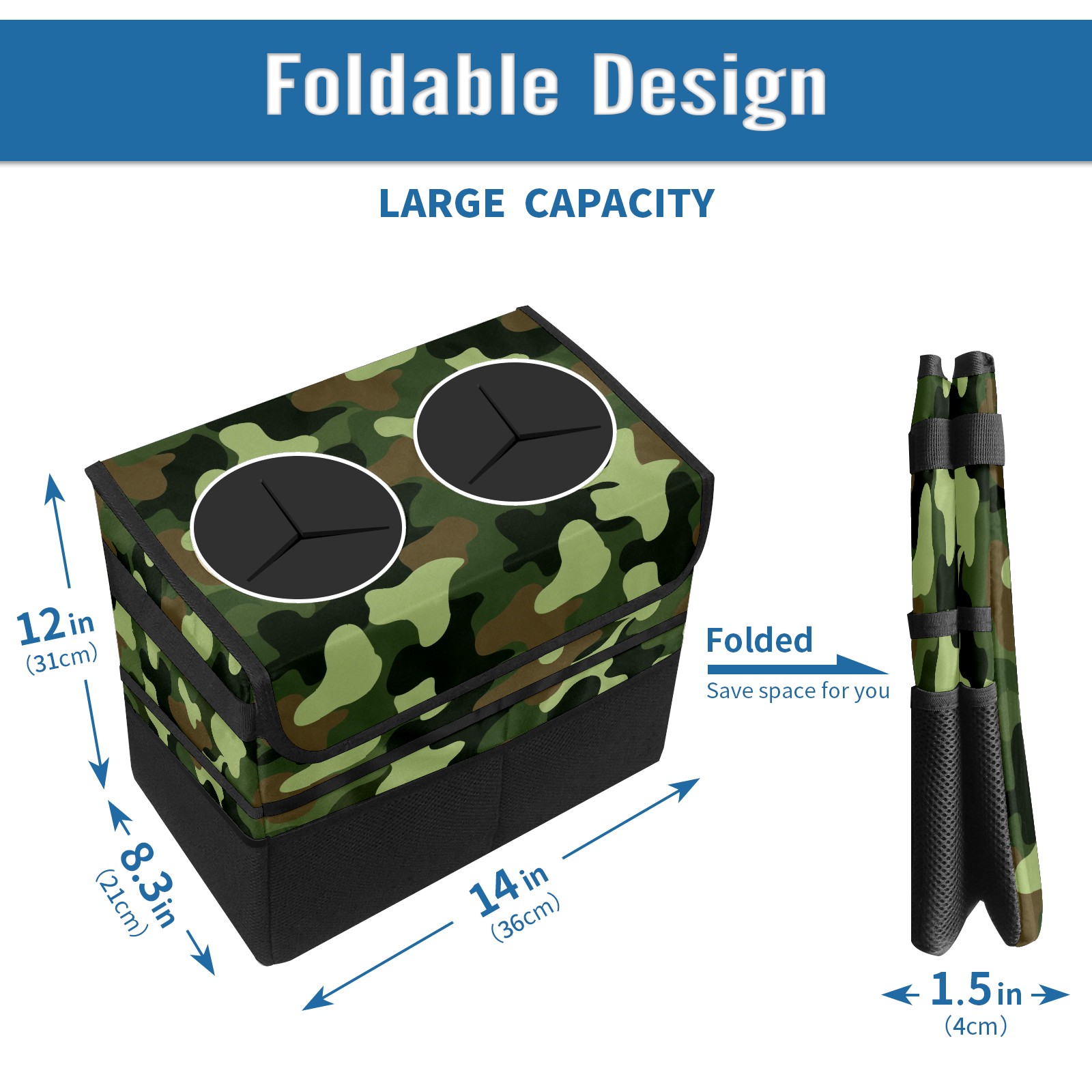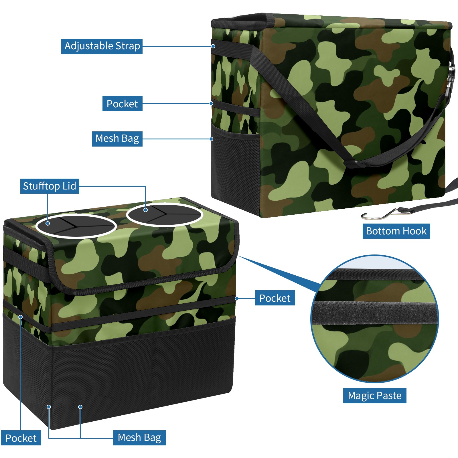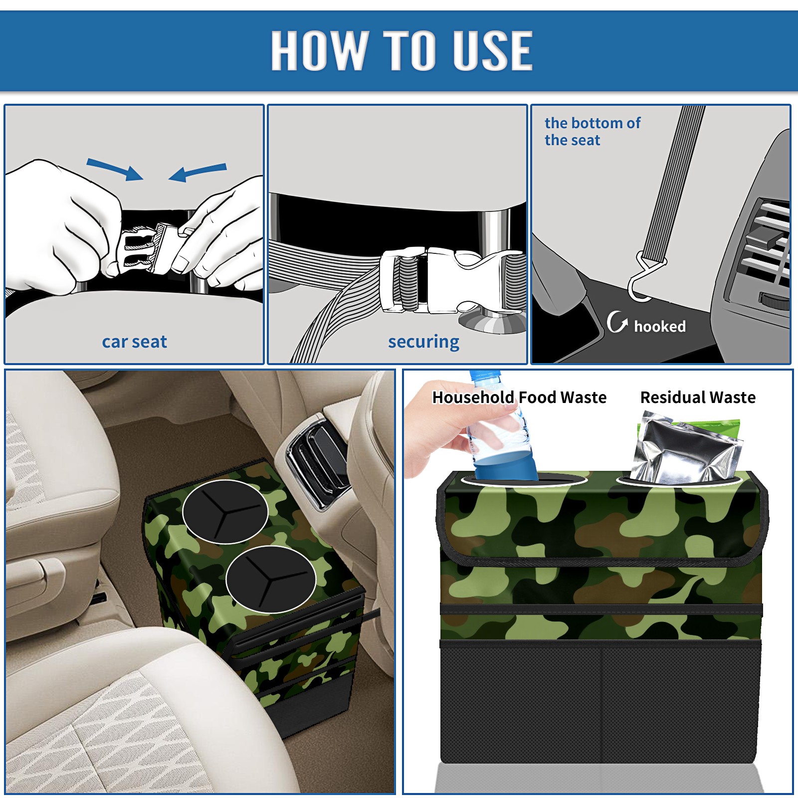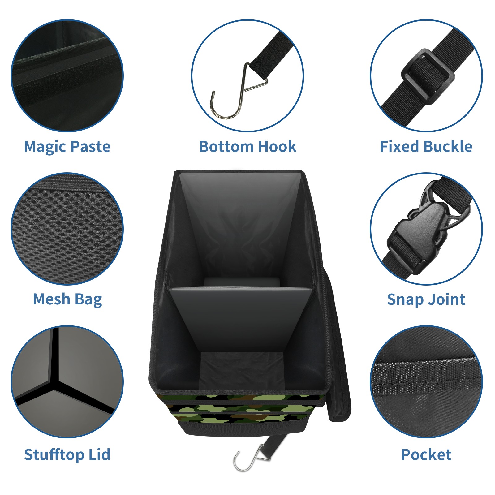 Car Trash Can with Lid, Portable Hanging Automotive Garbage Bin for Vehicles, Leakproof Waste Bag Container for SUV Truck Van Interior Auto Travel Road Trips(Camouflage Color)