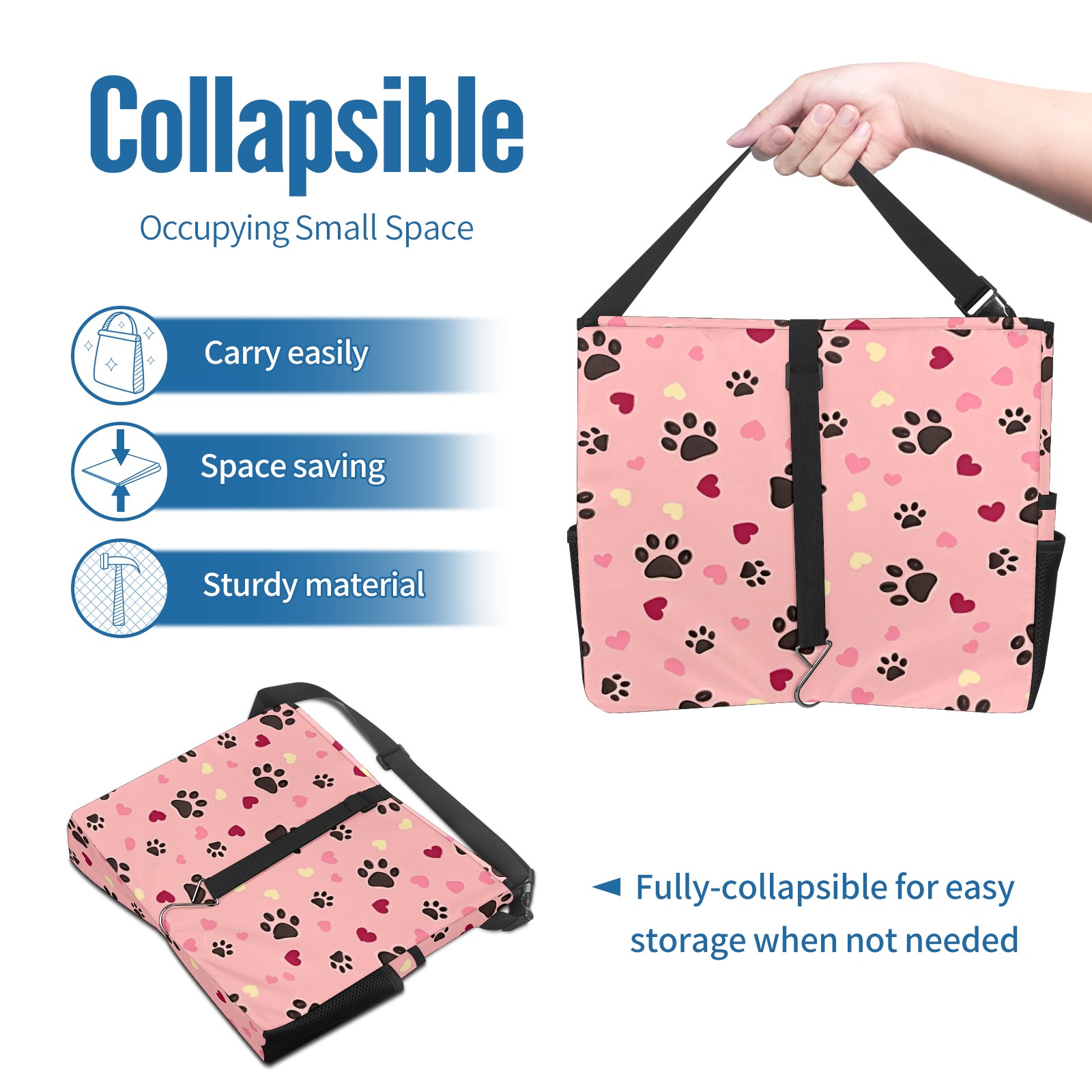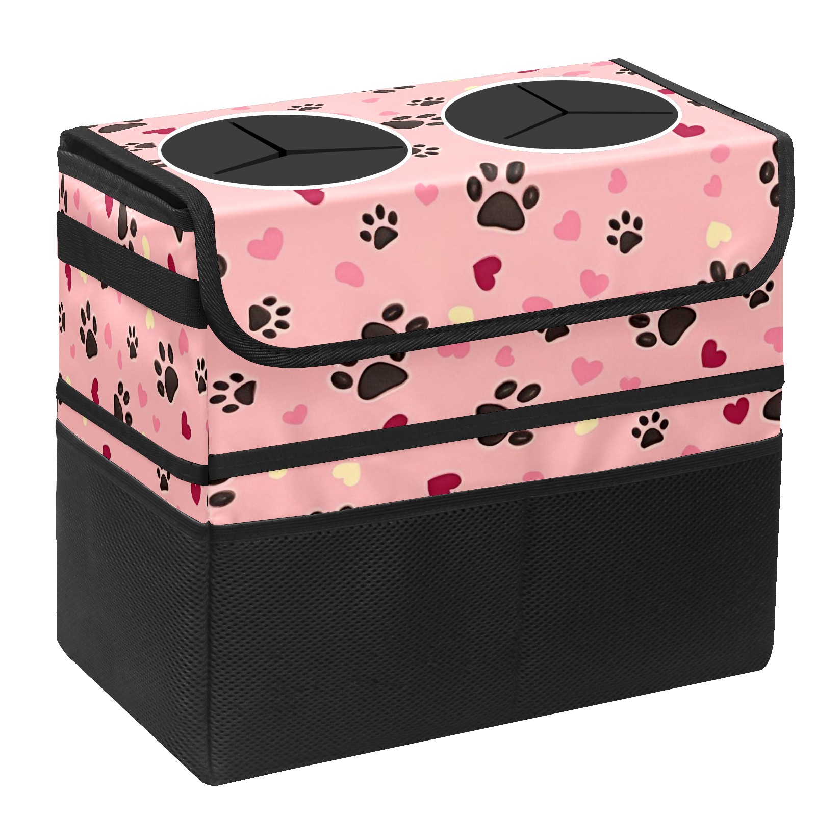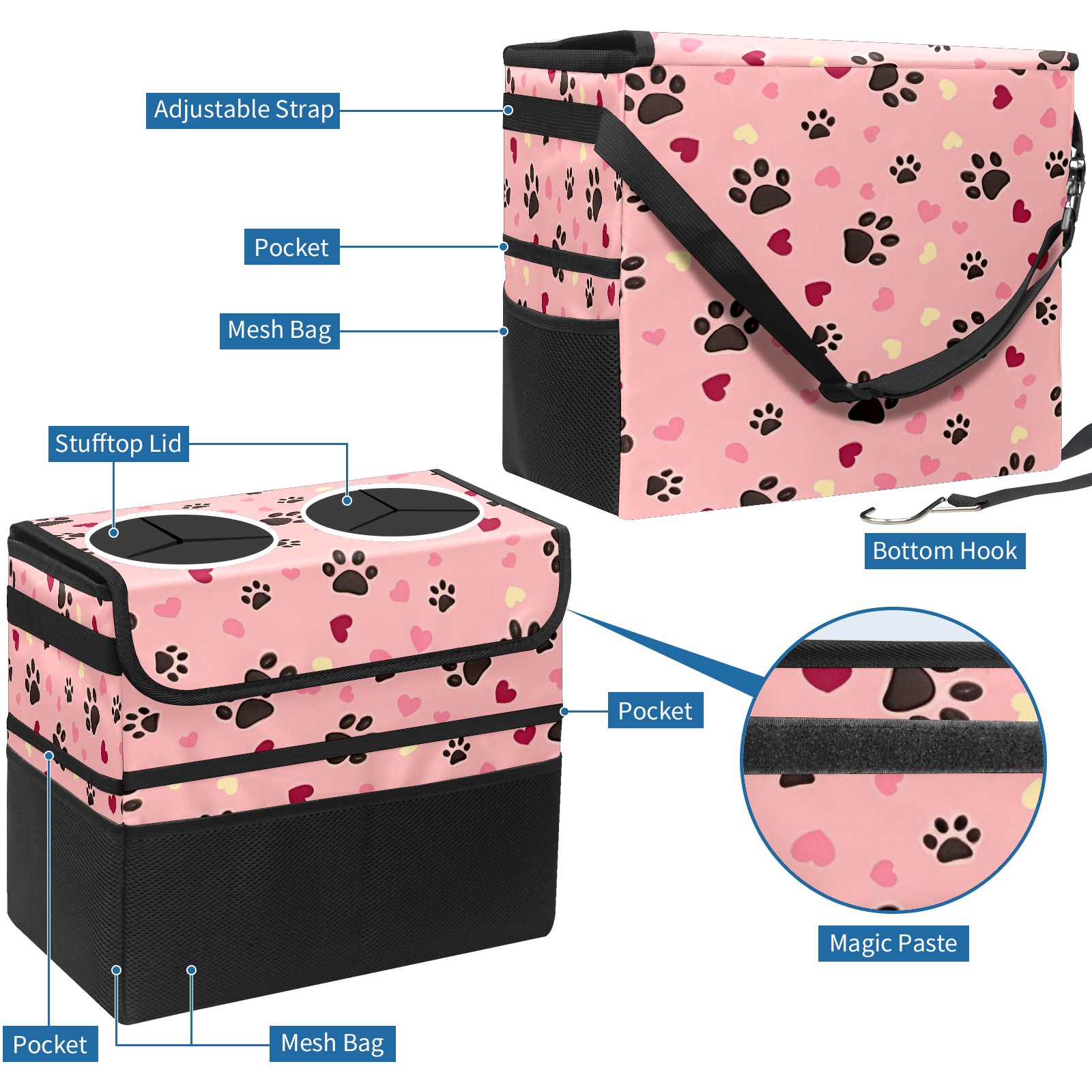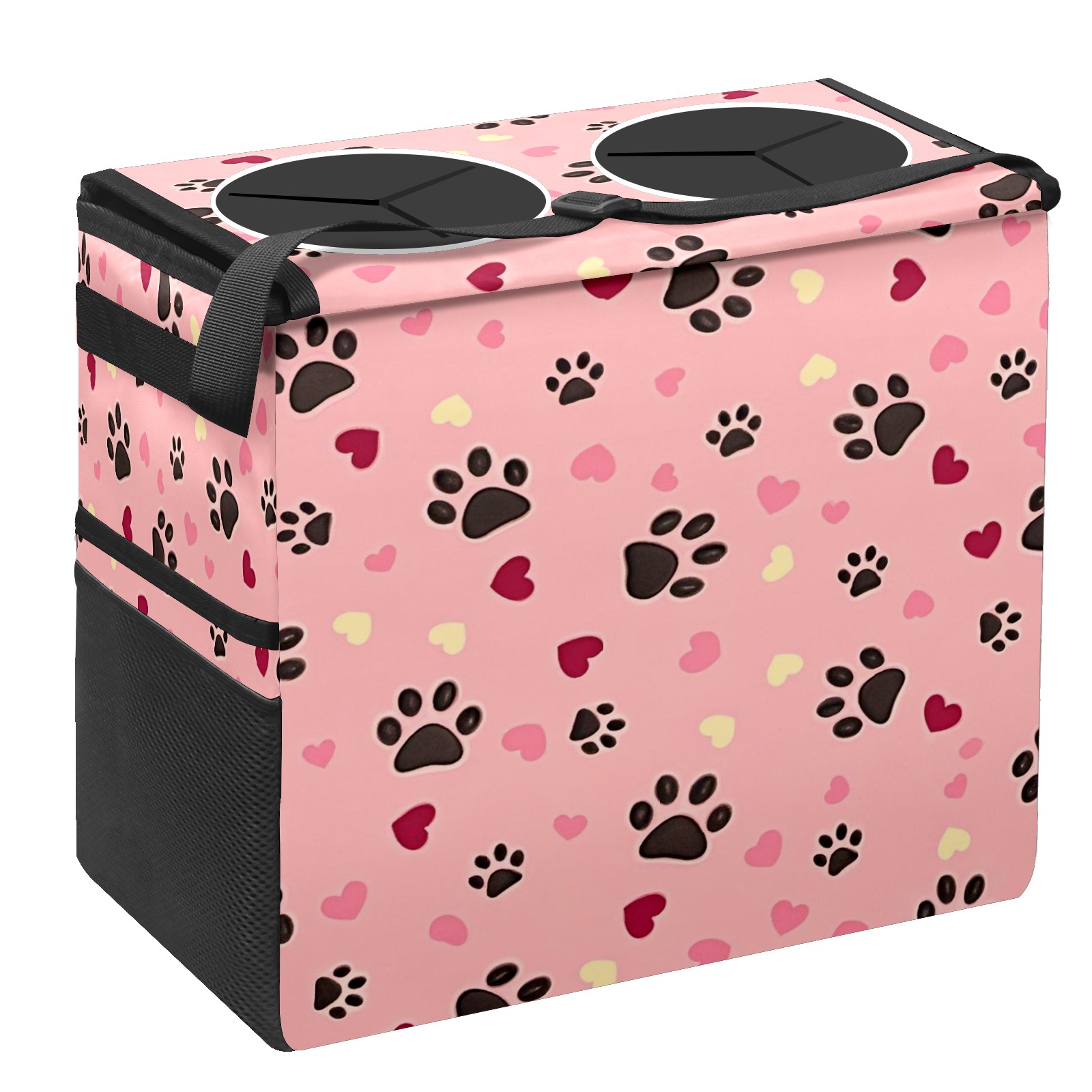 Car Trash Can with Lid, Portable Hanging Automotive Garbage Bin for Vehicles, Leakproof Waste Bag Container for SUV Truck Van Interior Auto Travel Road Trips(Heart And Dog Paw)