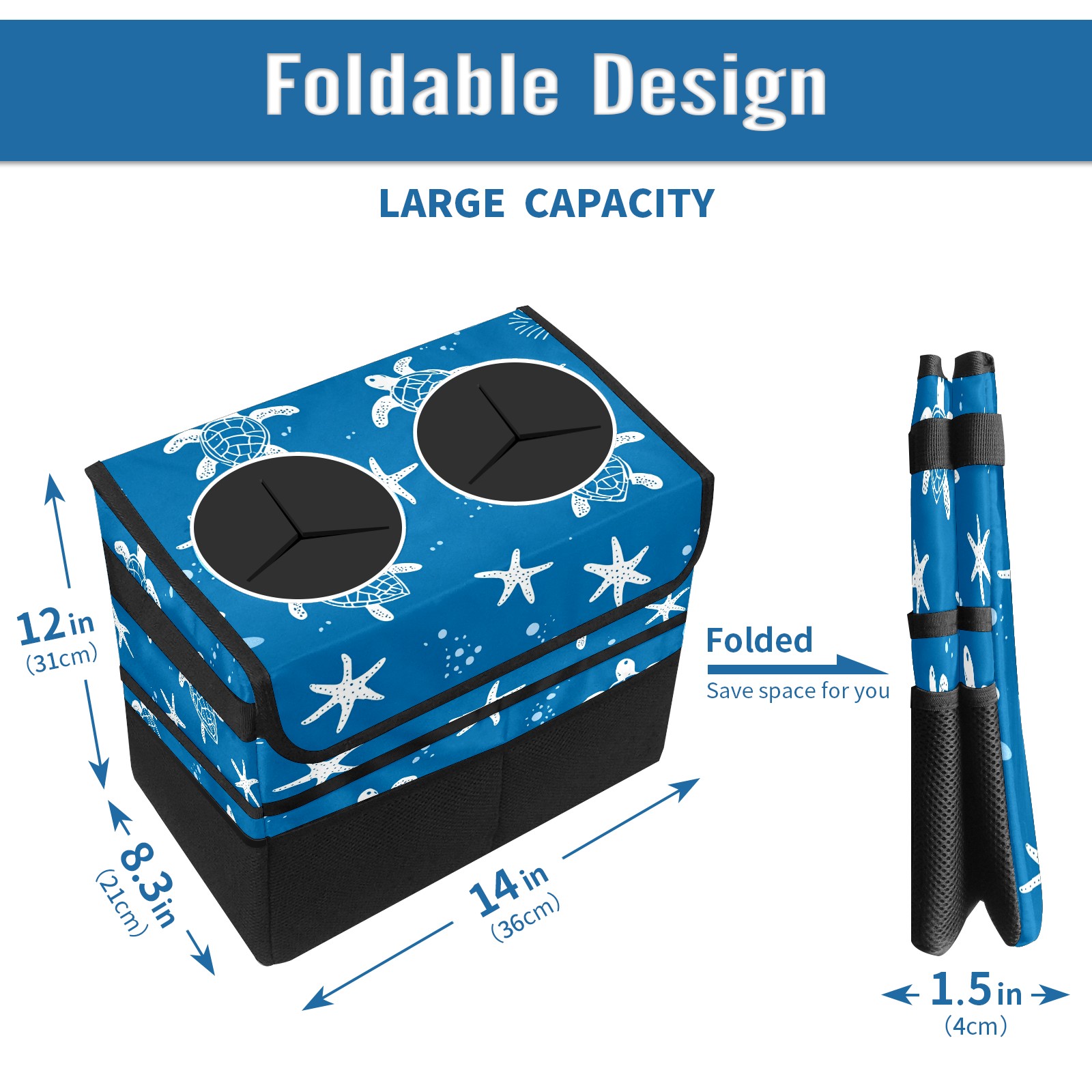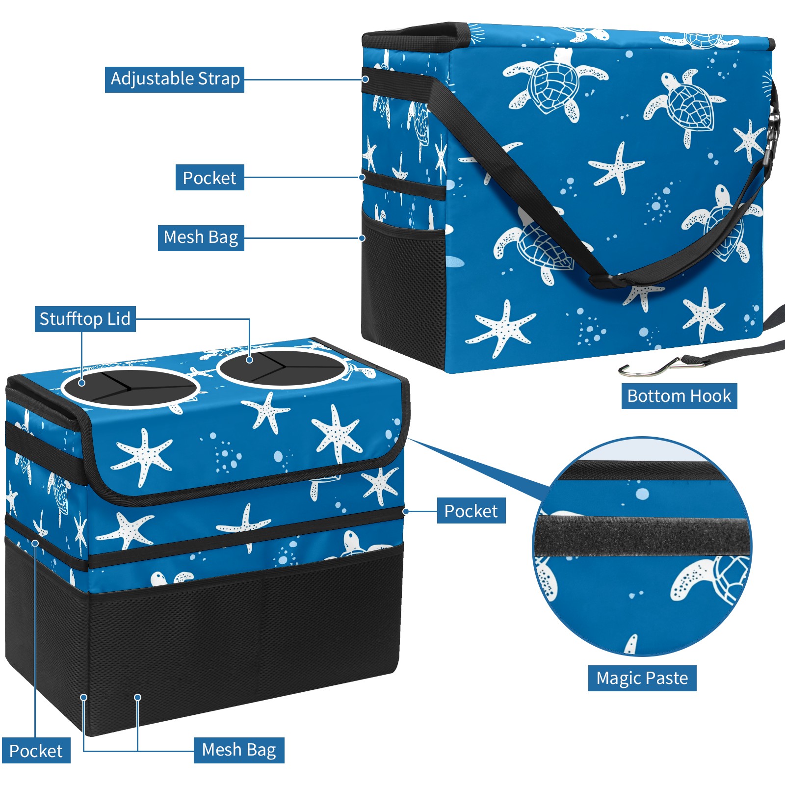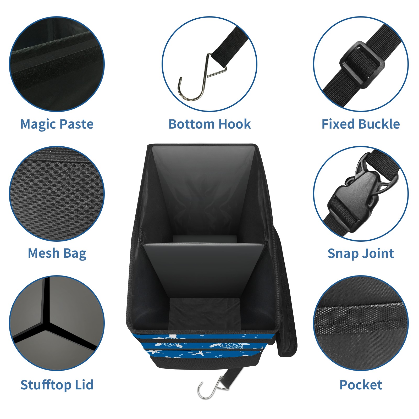 Car Trash Can with Lid, Portable Hanging Automotive Garbage Bin for Vehicles, Leakproof Waste Bag Container for SUV Truck Van Interior Auto Travel Road Trips(Turtle Silhouette)
