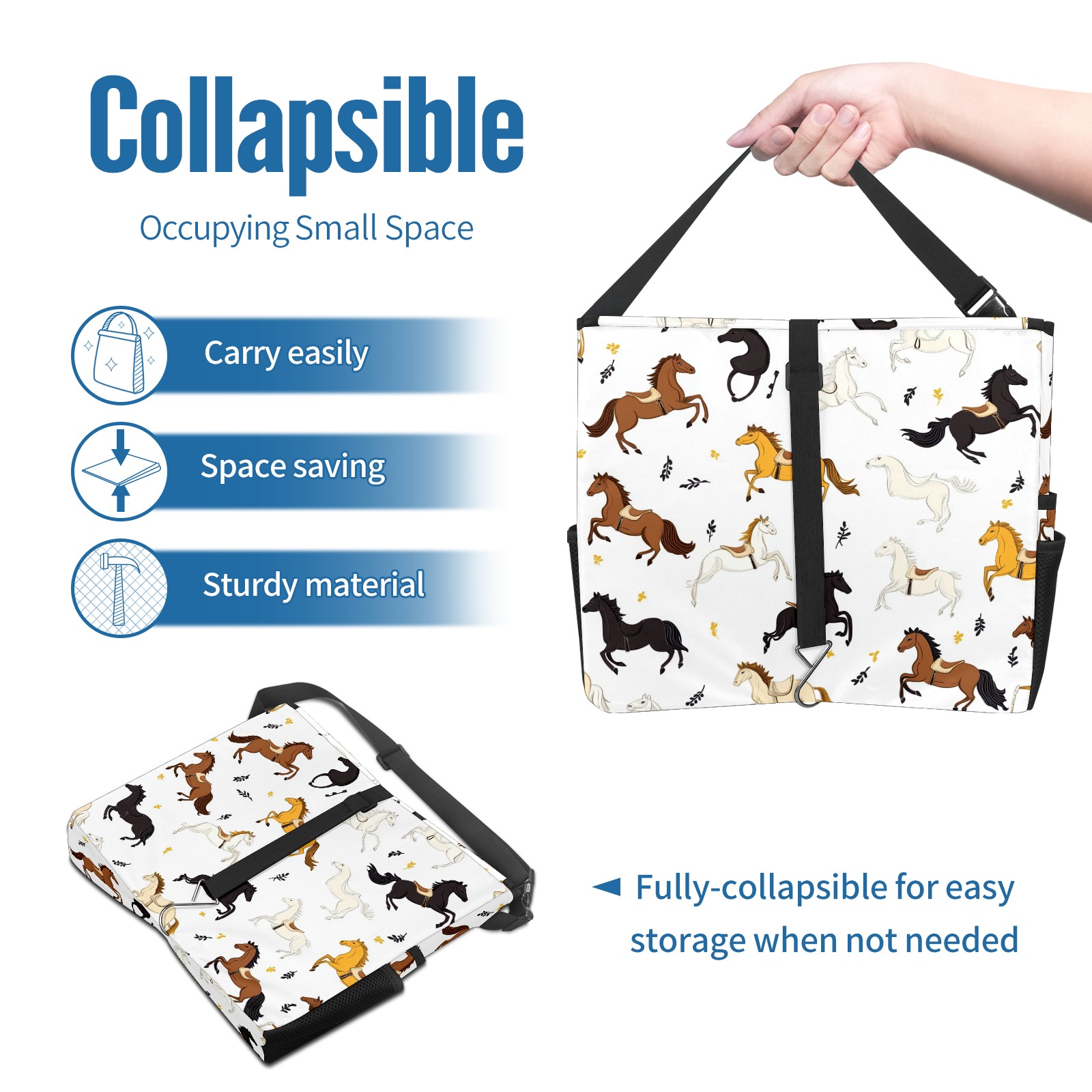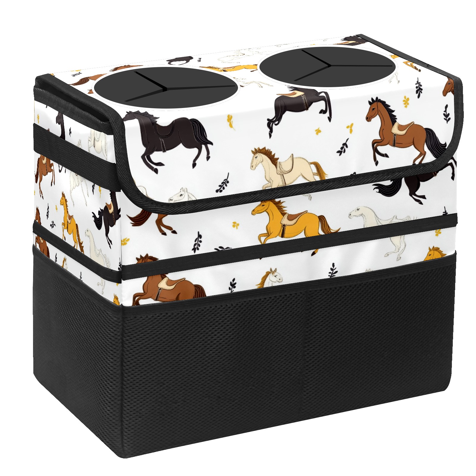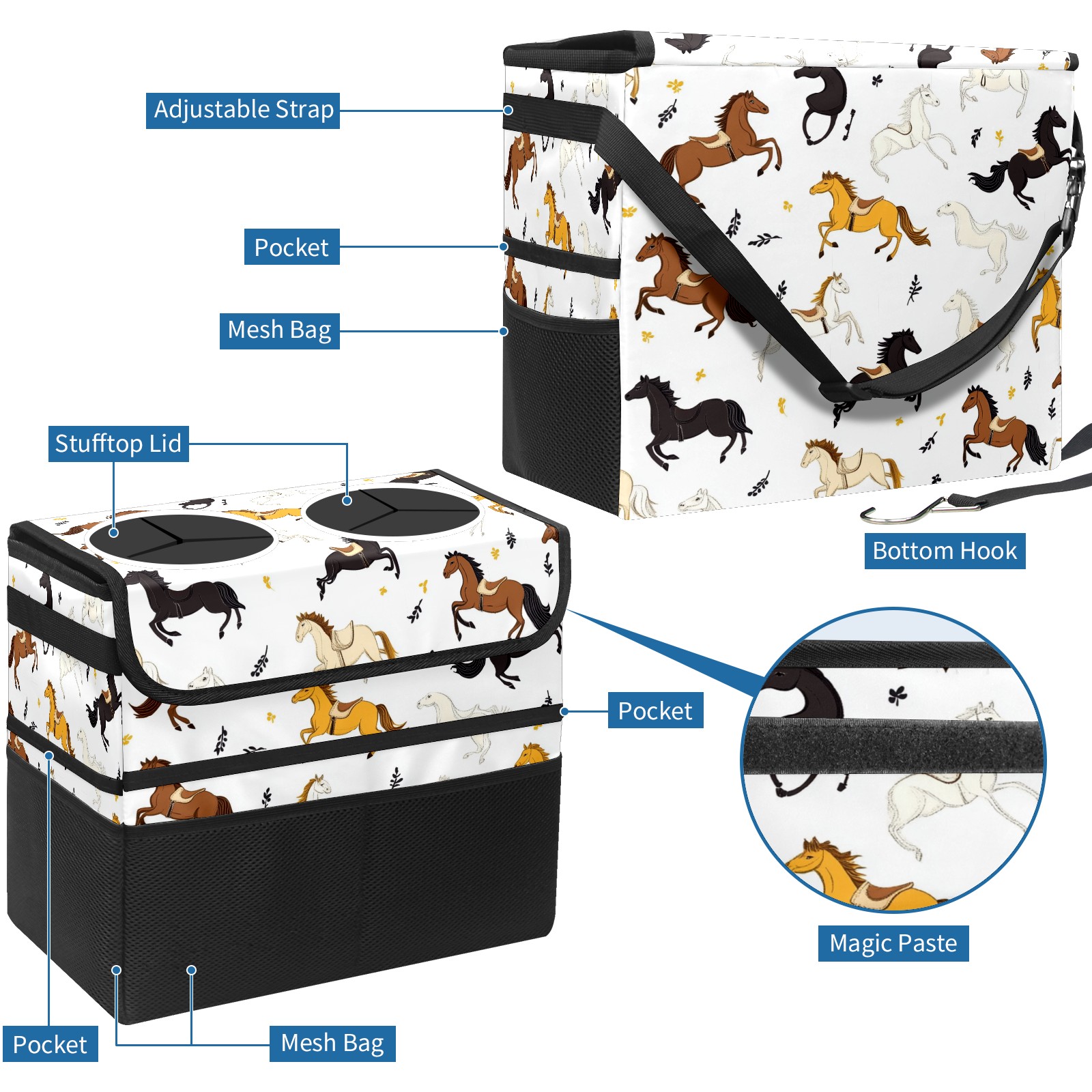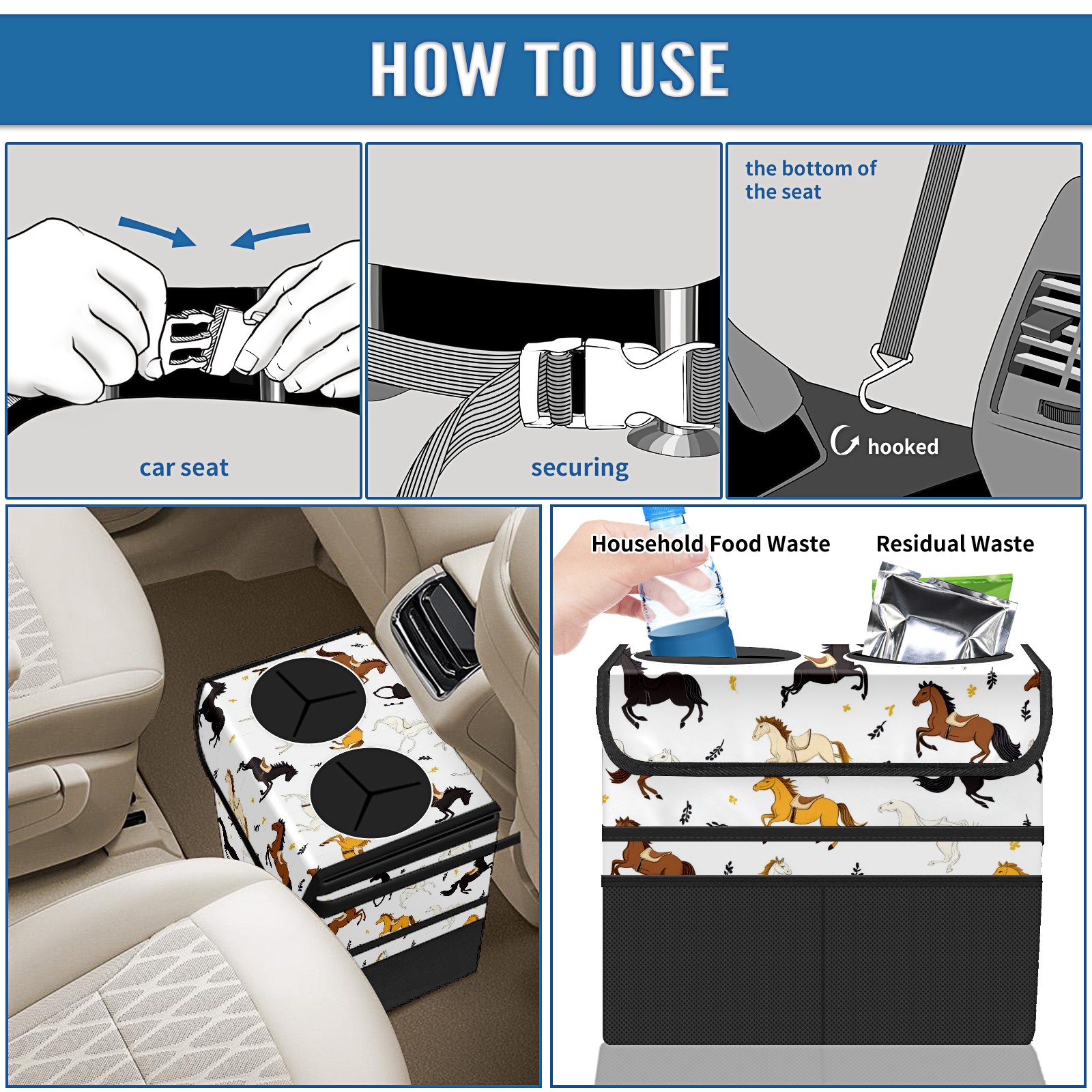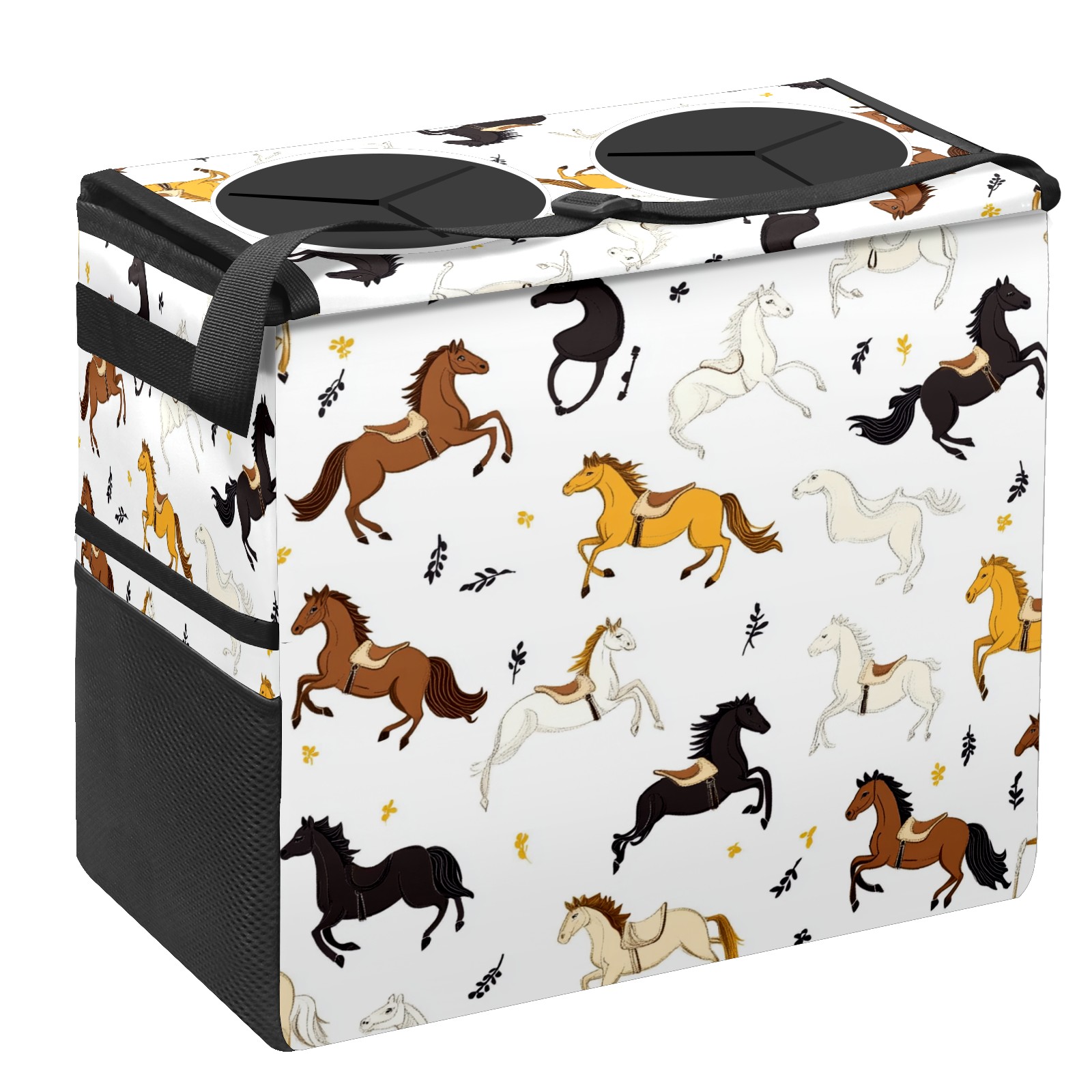 Car Trash Can with Lid, Portable Hanging Automotive Garbage Bin for Vehicles, Leakproof Waste Bag Container for SUV Truck Van Interior Auto Travel Road Trips(Horses)