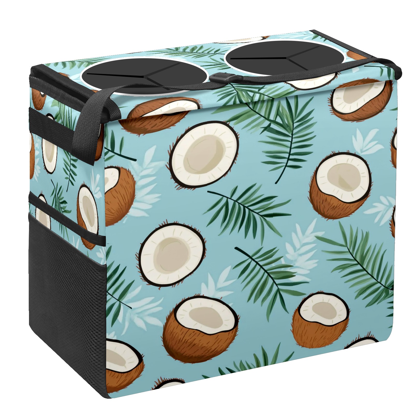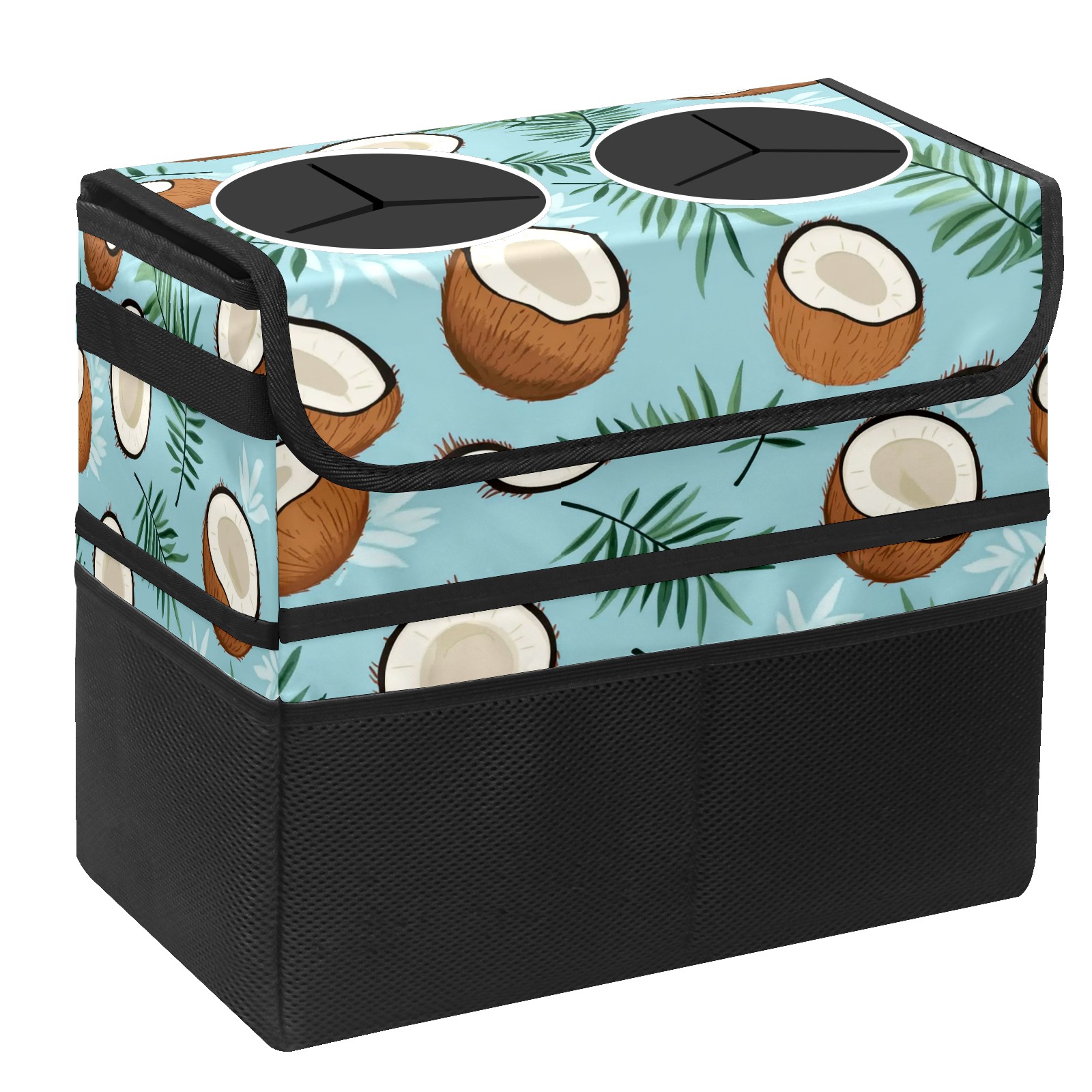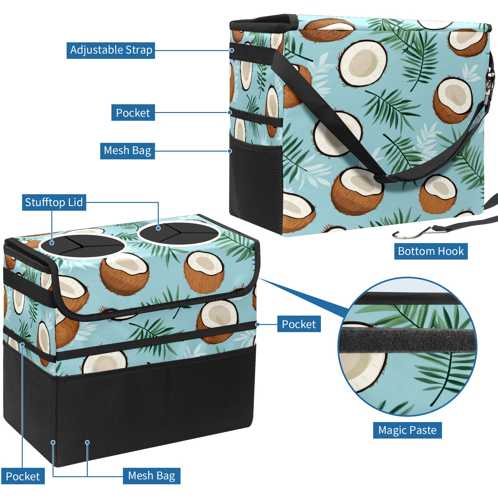 Car Trash Can with Lid, Portable Hanging Automotive Garbage Bin for Vehicles, Leakproof Waste Bag Container for SUV Truck Van Interior Auto Travel Road Trips(Coconuts And Leaves)