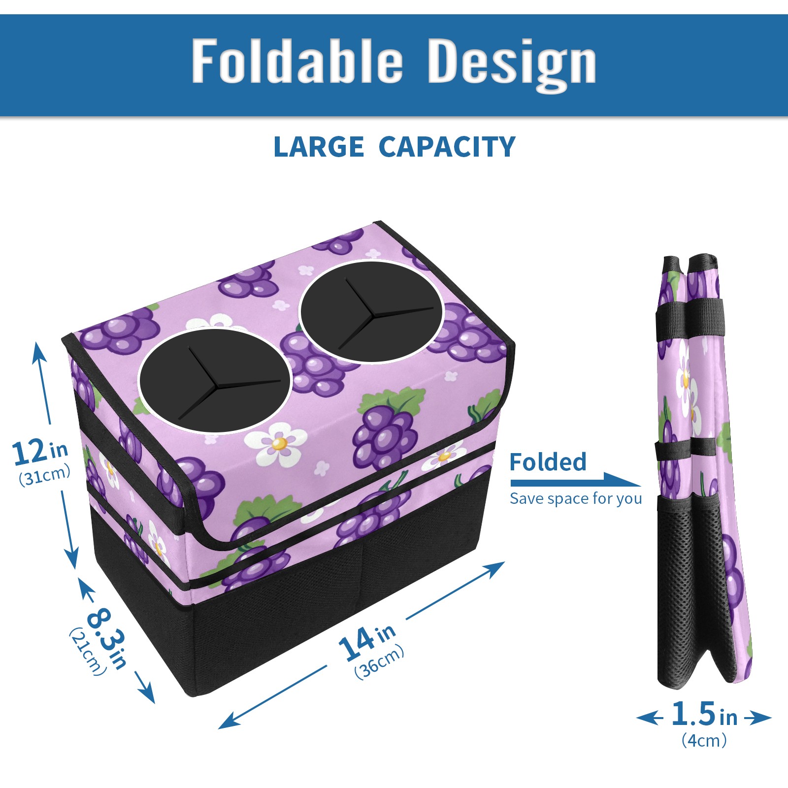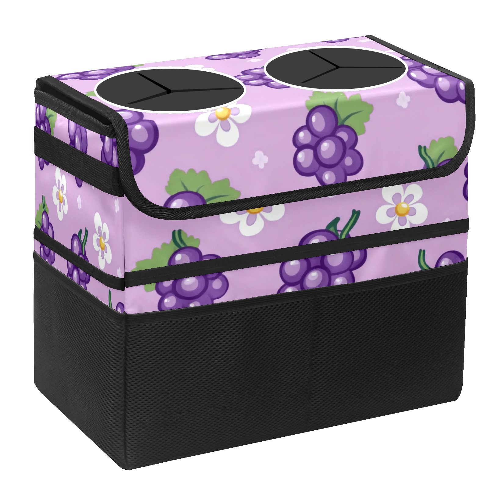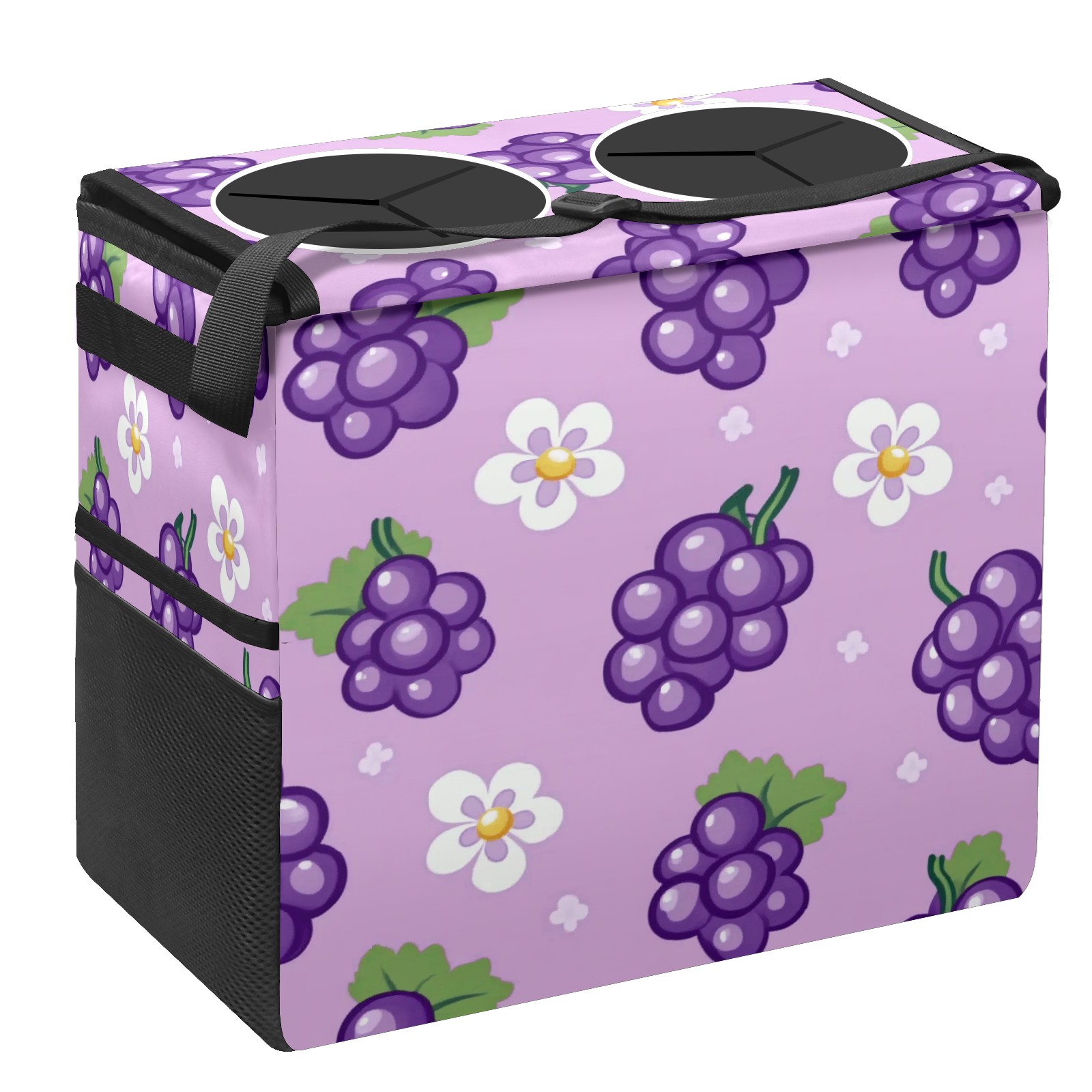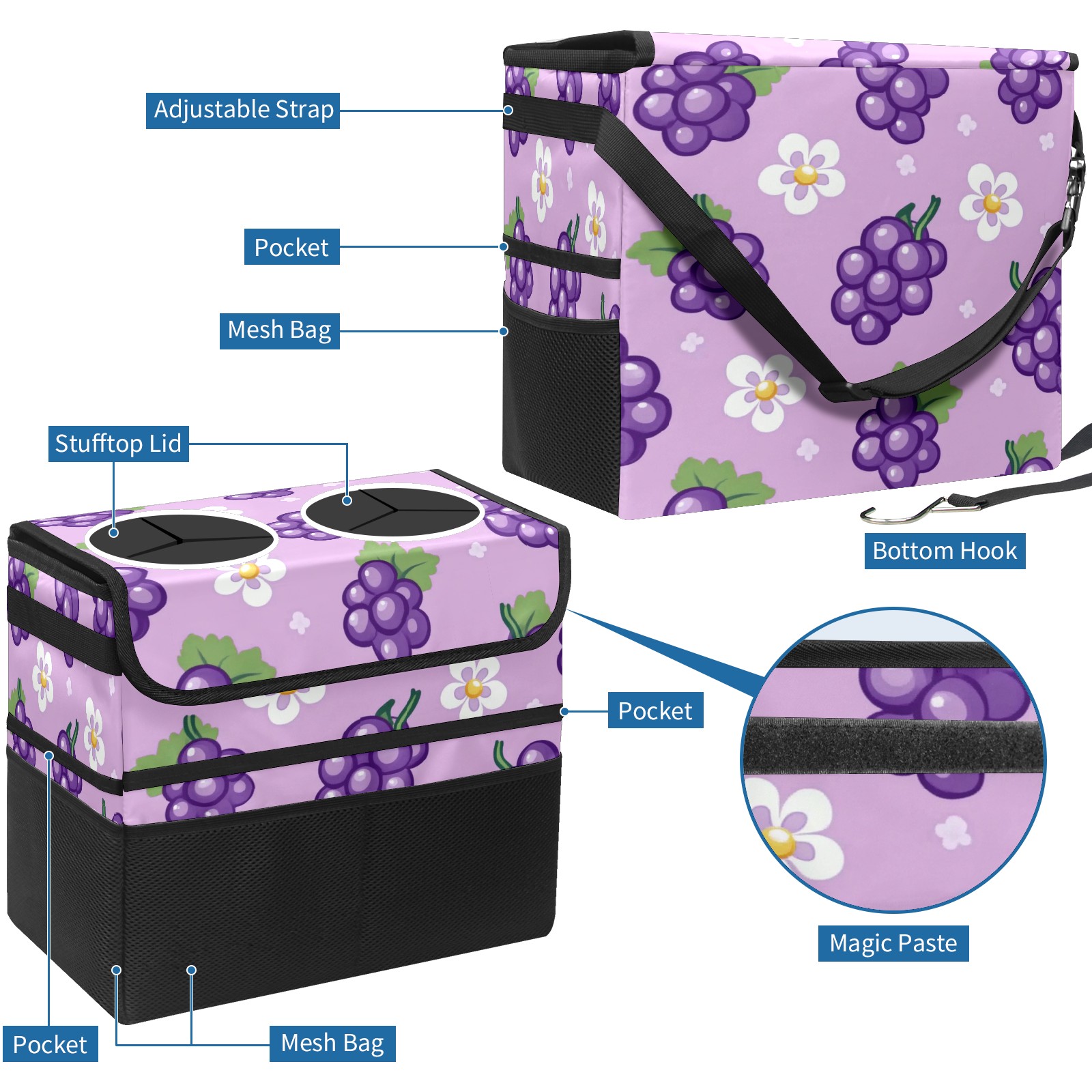 Car Trash Can with Lid, Portable Hanging Automotive Garbage Bin for Vehicles, Leakproof Waste Bag Container for SUV Truck Van Interior Auto Travel Road Trips(Grapes And White Flowers)