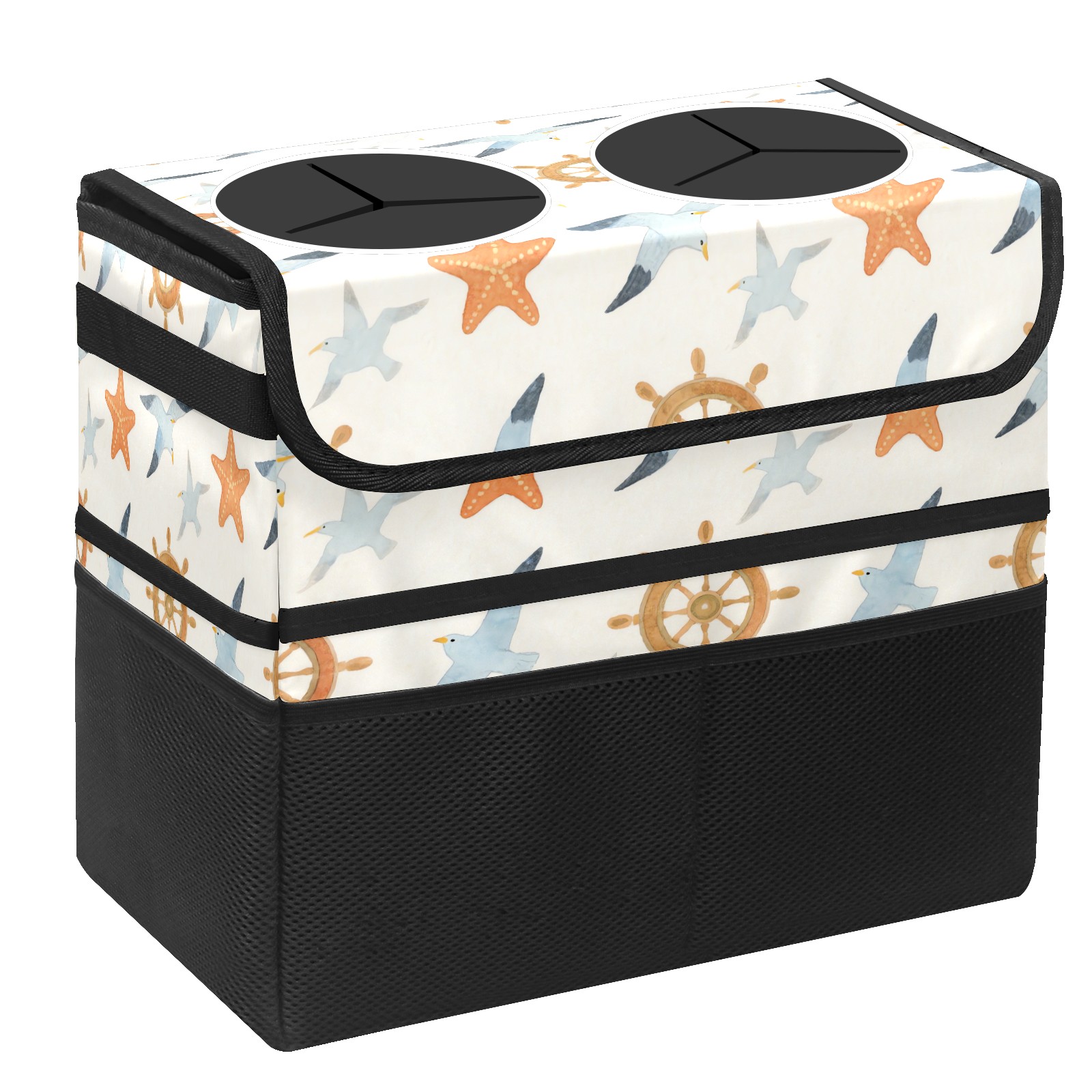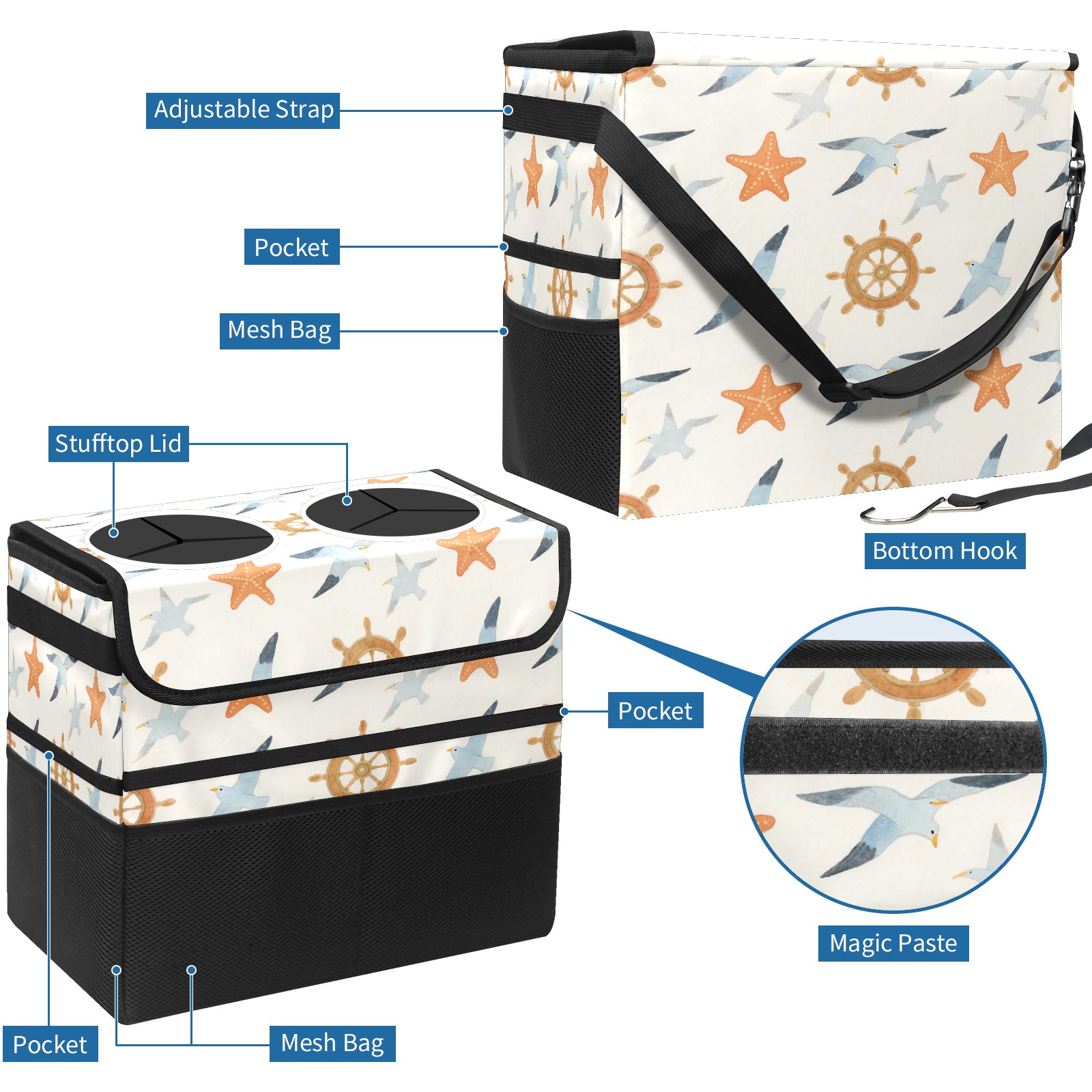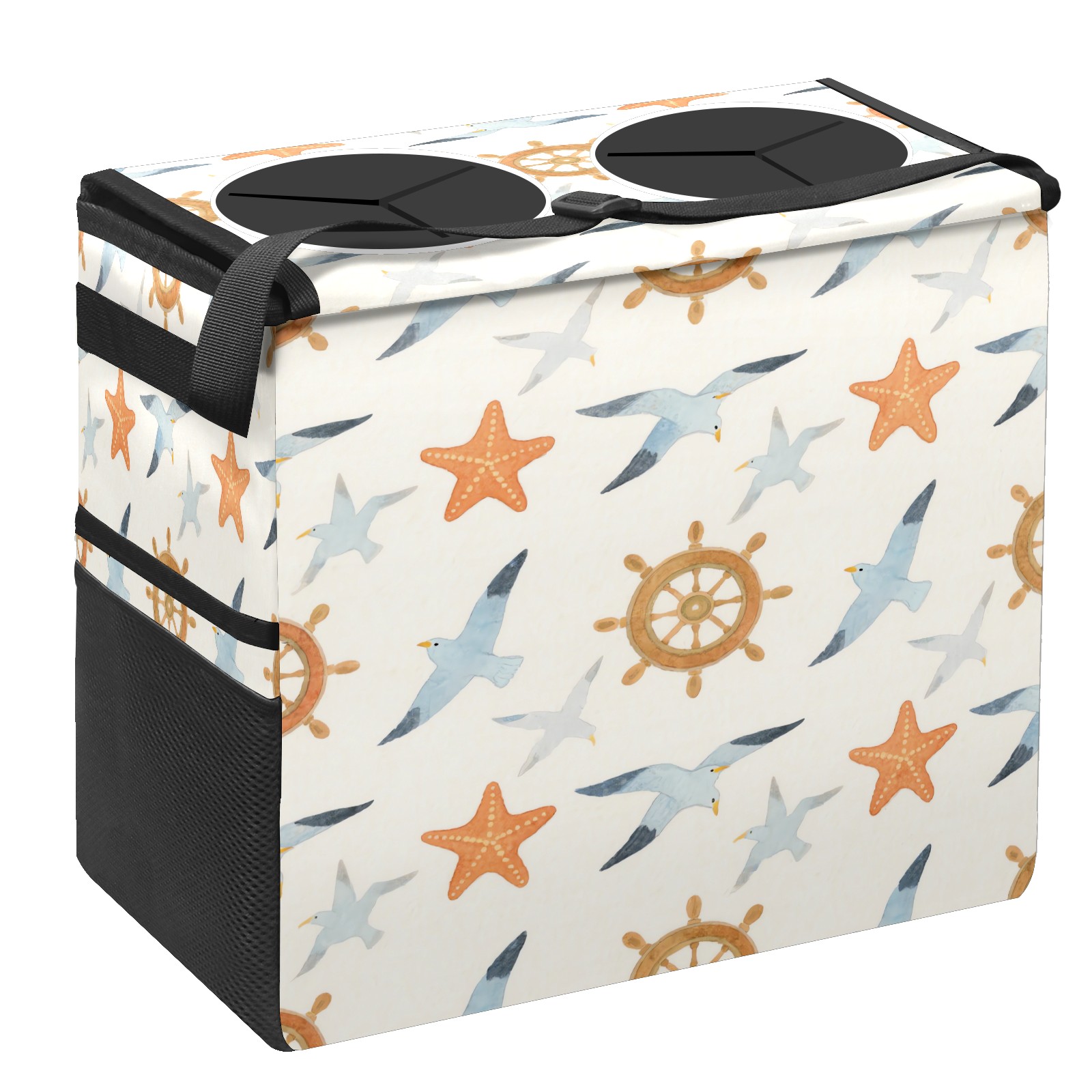 Car Trash Can with Lid, Portable Hanging Automotive Garbage Bin for Vehicles, Leakproof Waste Bag Container for SUV Truck Van Interior Auto Travel Road Trips(Seagull And Starfish)