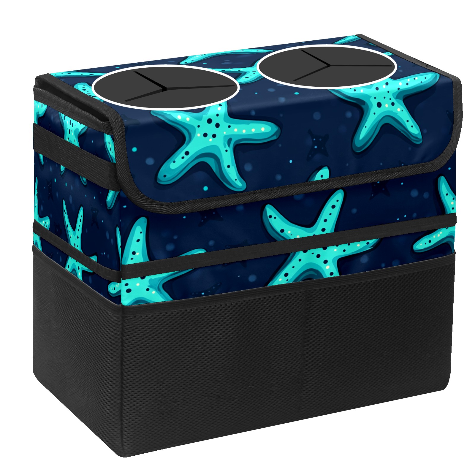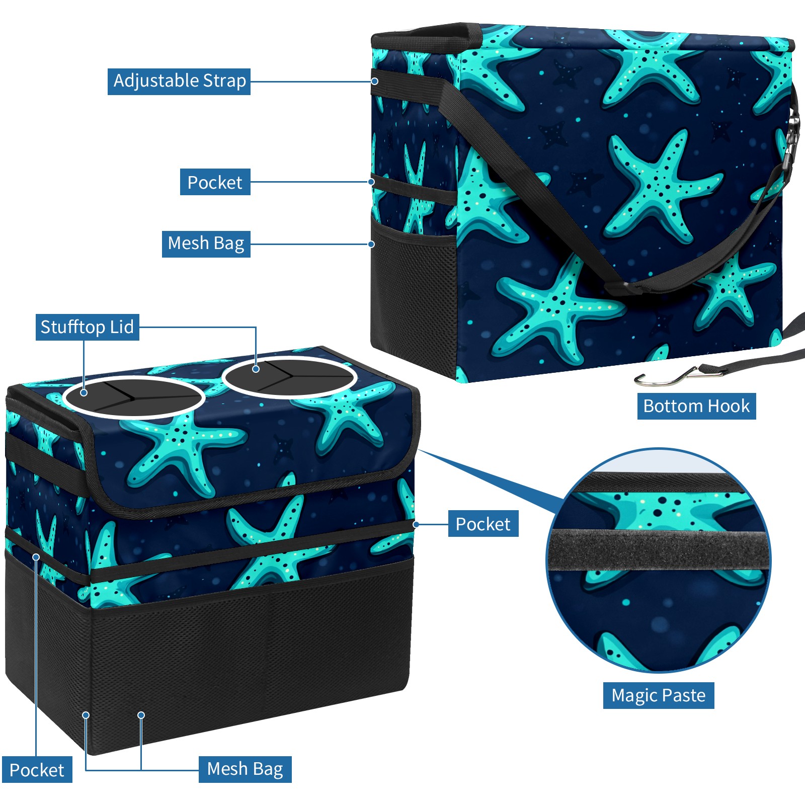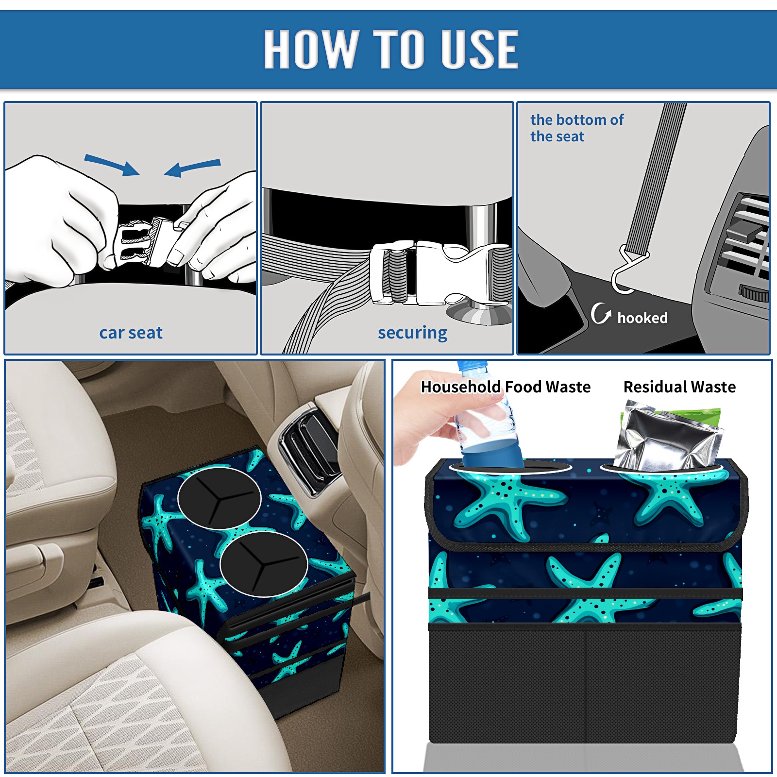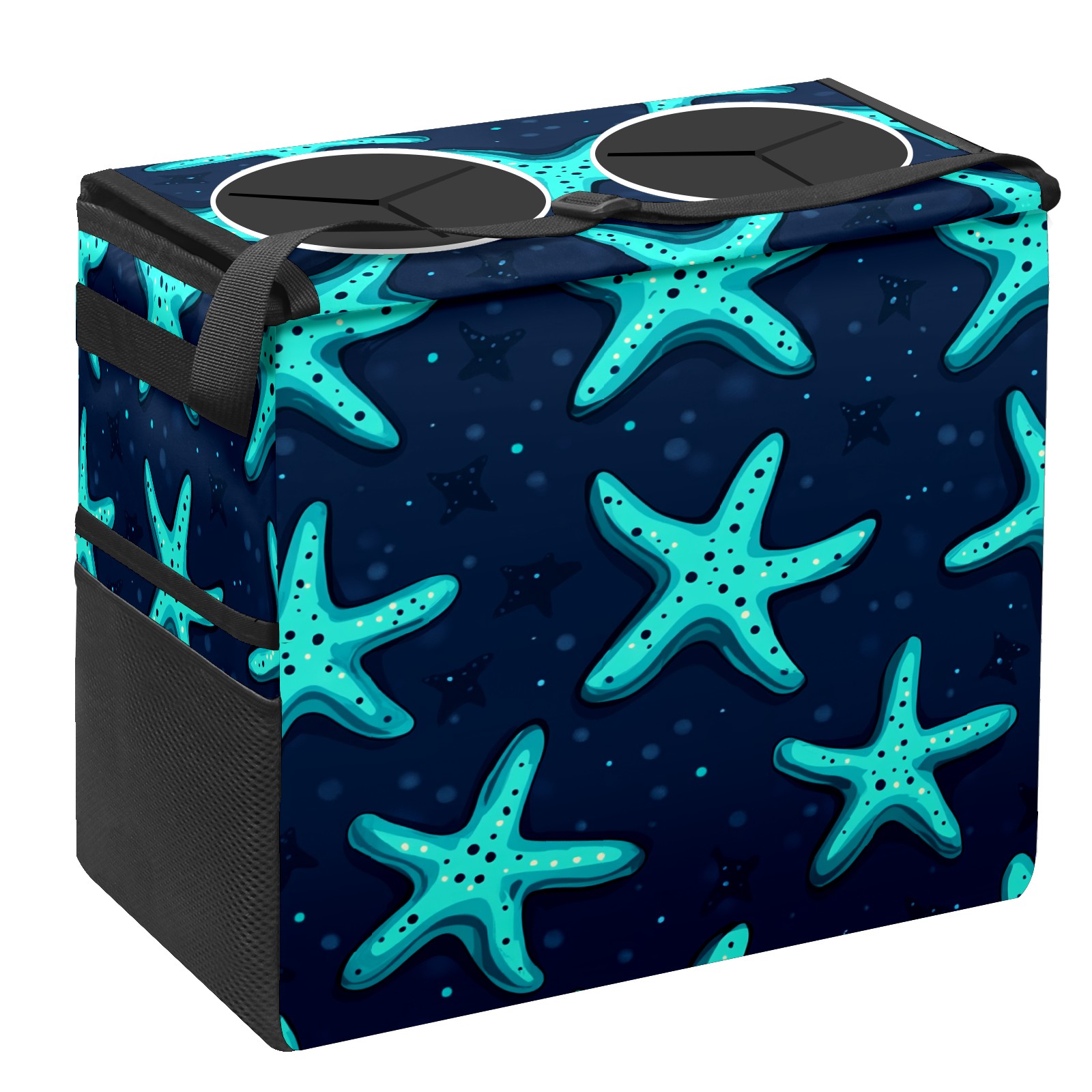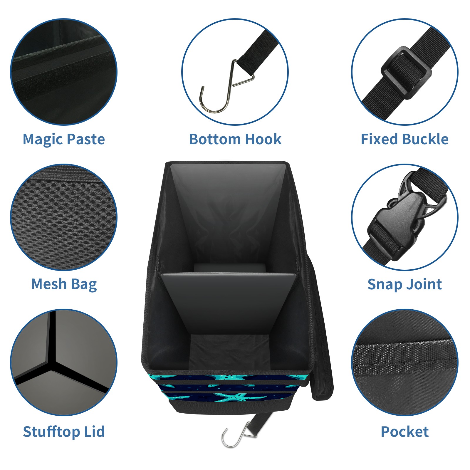 Car Trash Can with Lid, Portable Hanging Automotive Garbage Bin for Vehicles, Leakproof Waste Bag Container for SUV Truck Van Interior Auto Travel Road Trips(Starfish)