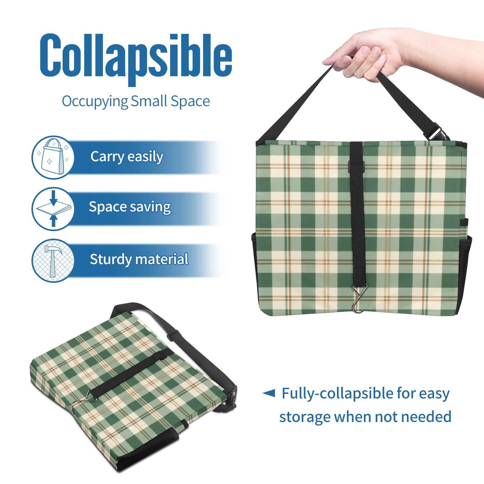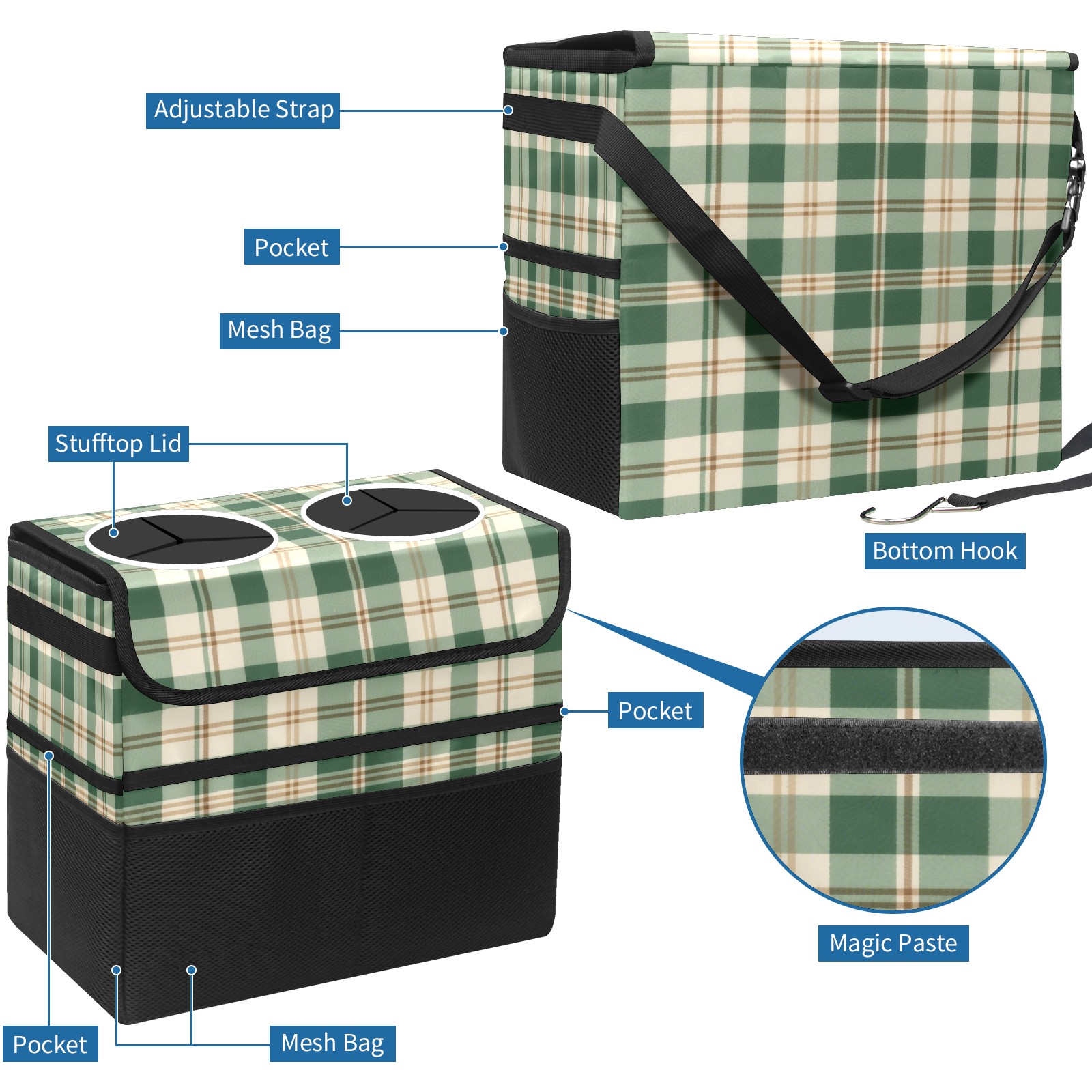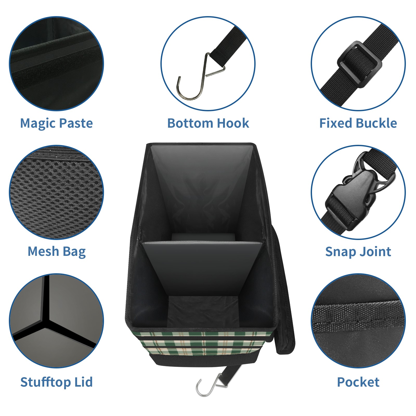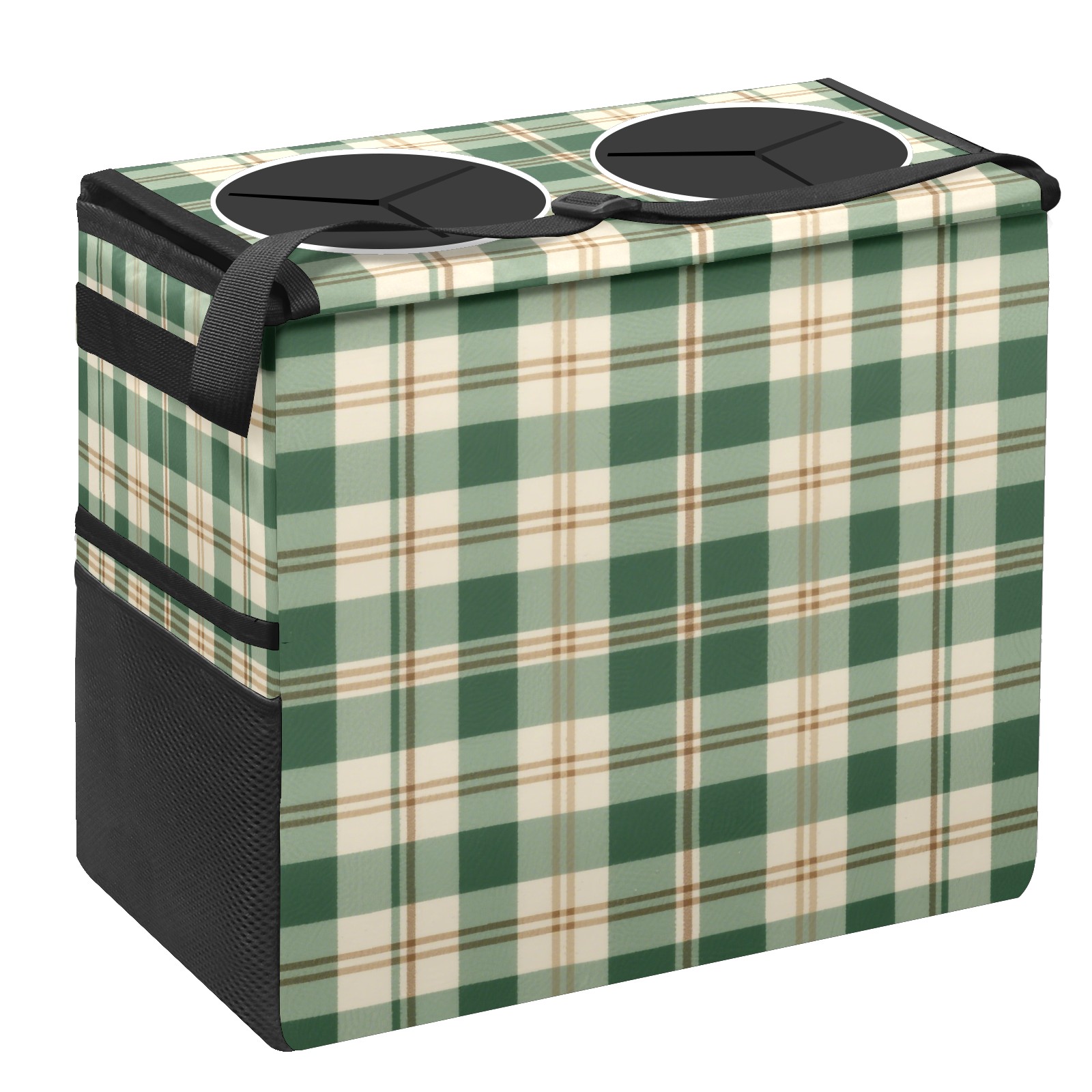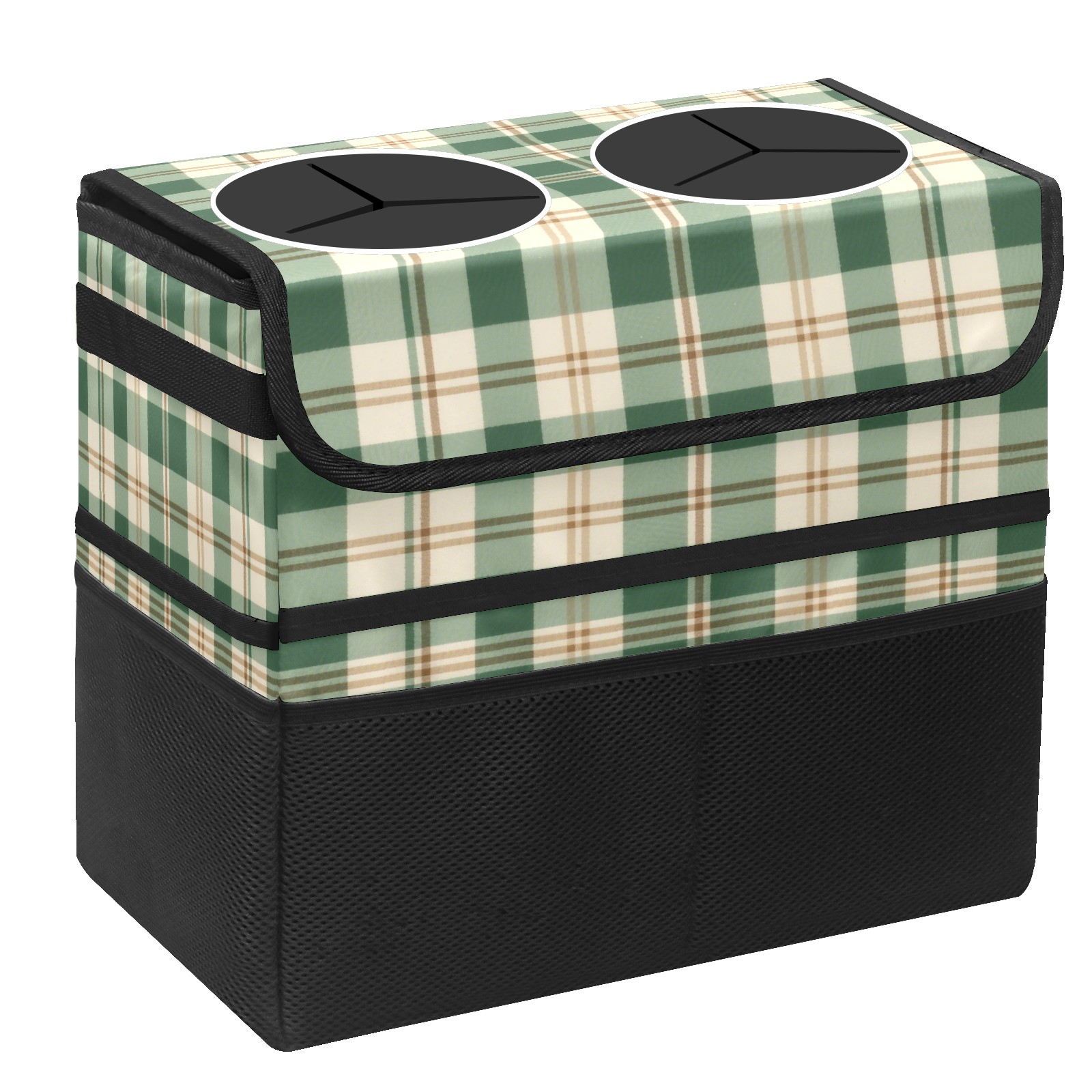 Car Trash Can with Lid, Portable Hanging Automotive Garbage Bin for Vehicles, Leakproof Waste Bag Container for SUV Truck Van Interior Auto Travel Road Trips(Green And White Checkered)