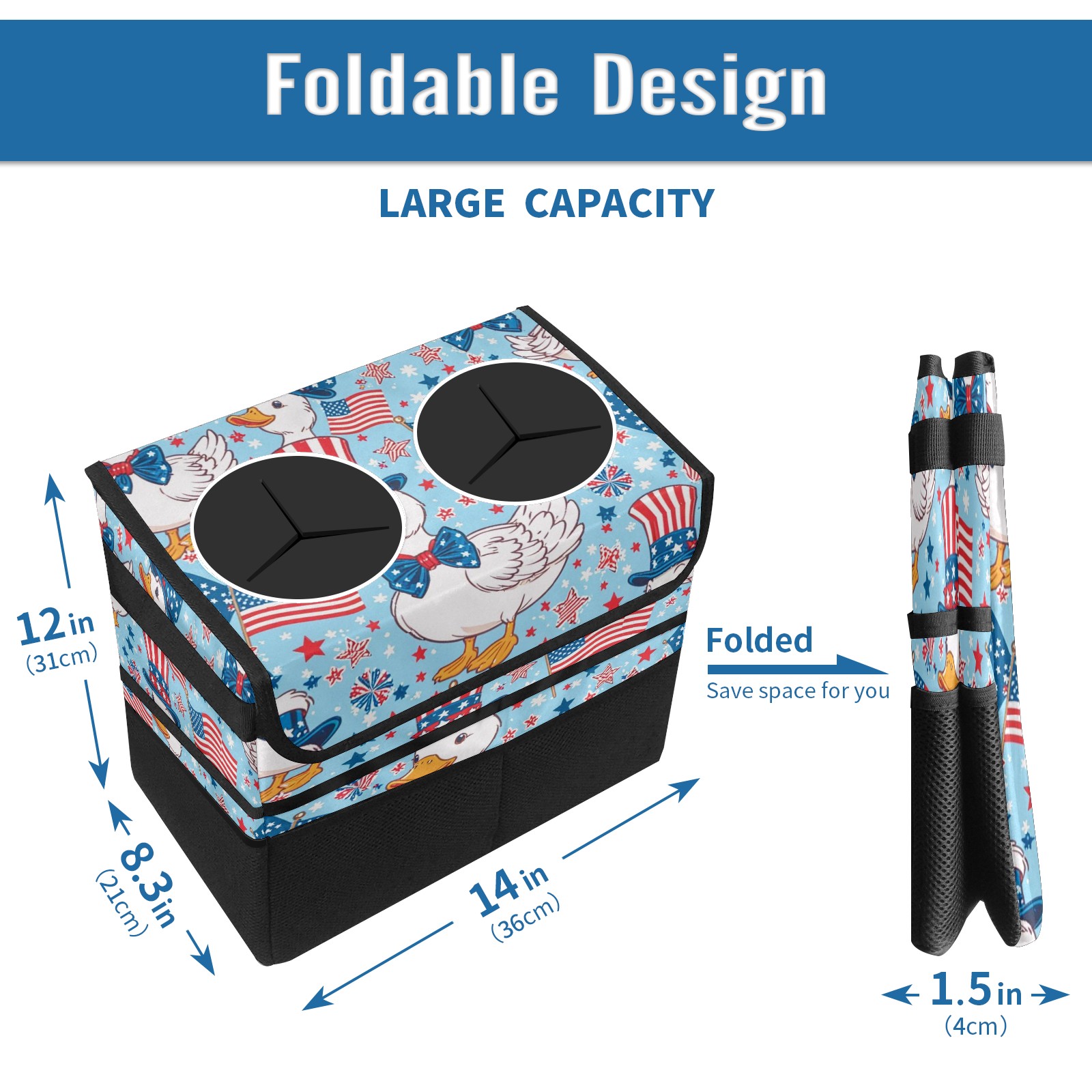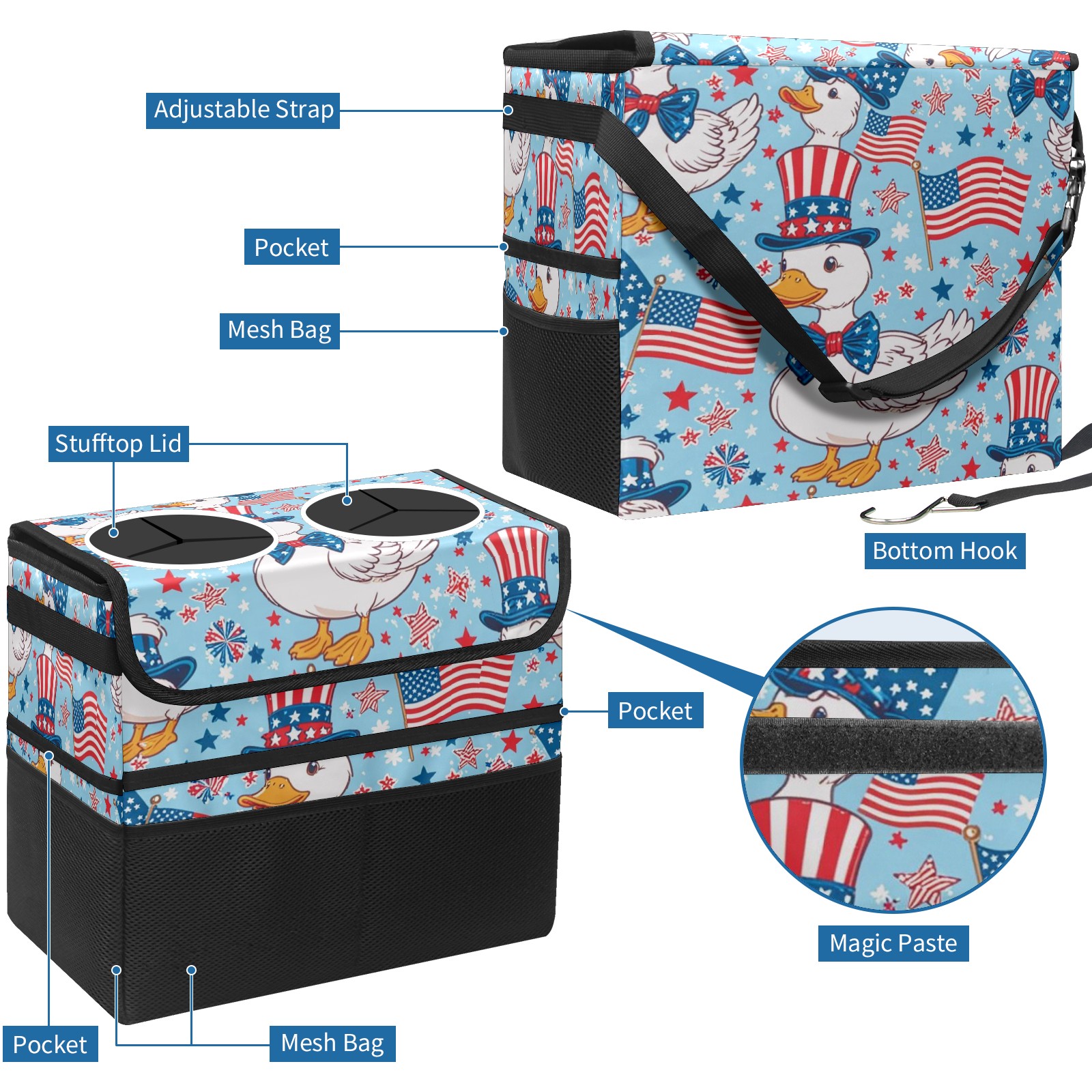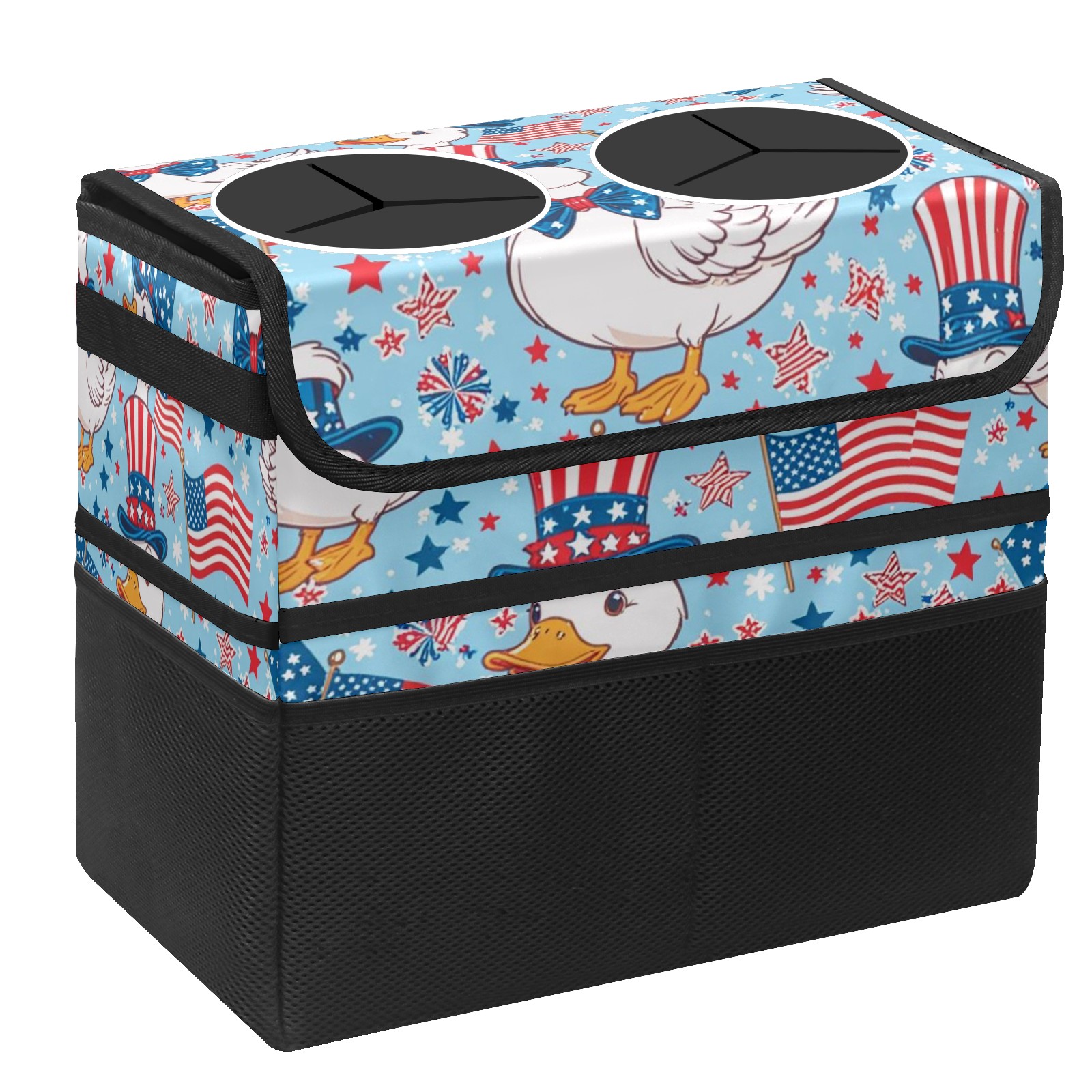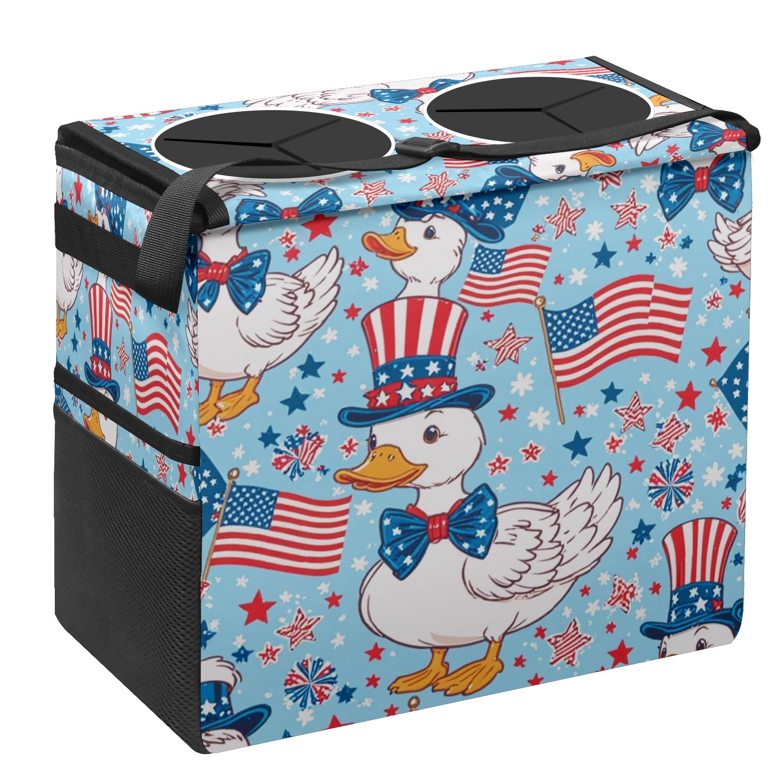 Car Trash Can with Lid, Portable Hanging Automotive Garbage Bin for Vehicles, Leakproof Waste Bag Container for SUV Truck Van Interior Auto Travel Road Trips(American Flag And Ducks)
