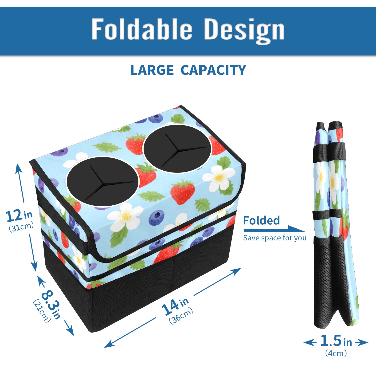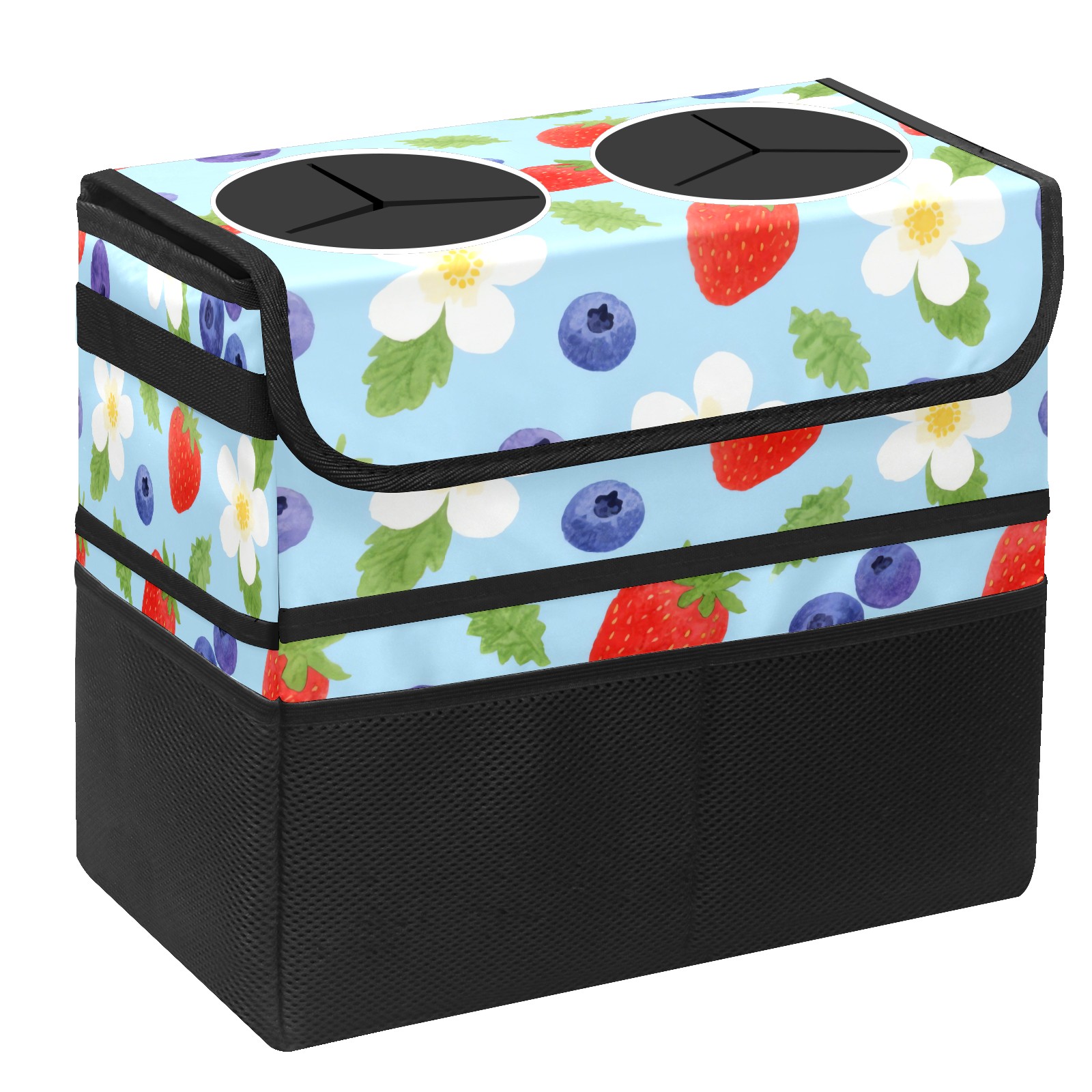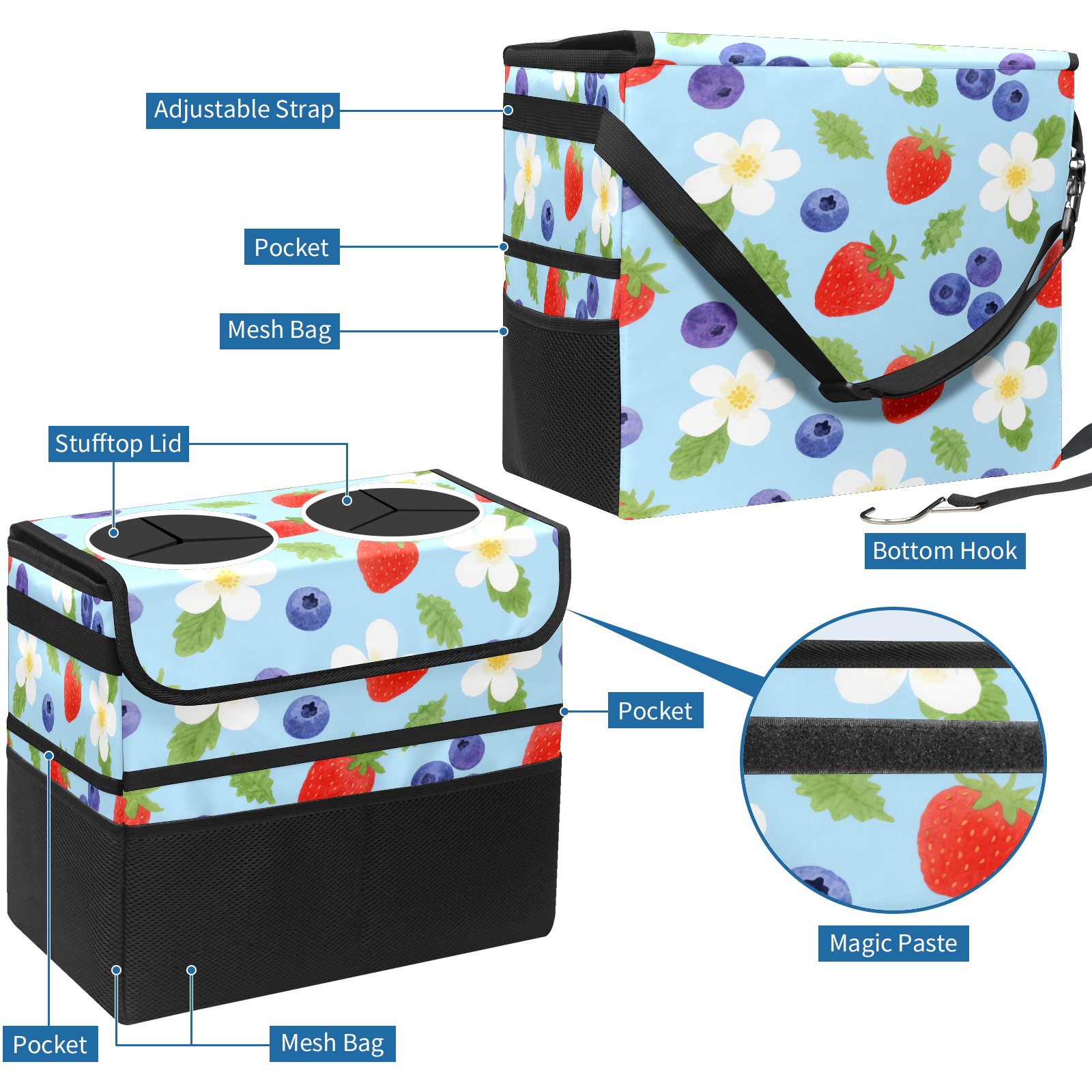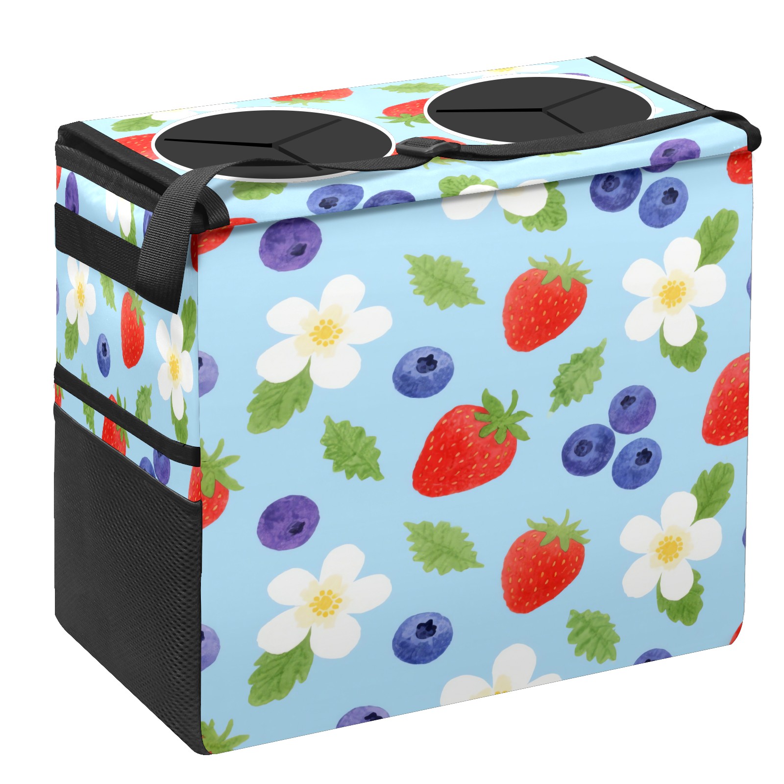 Car Trash Can with Lid, Portable Hanging Automotive Garbage Bin for Vehicles, Leakproof Waste Bag Container for SUV Truck Van Interior Auto Travel Road Trips(Strawberry And Blueberry)