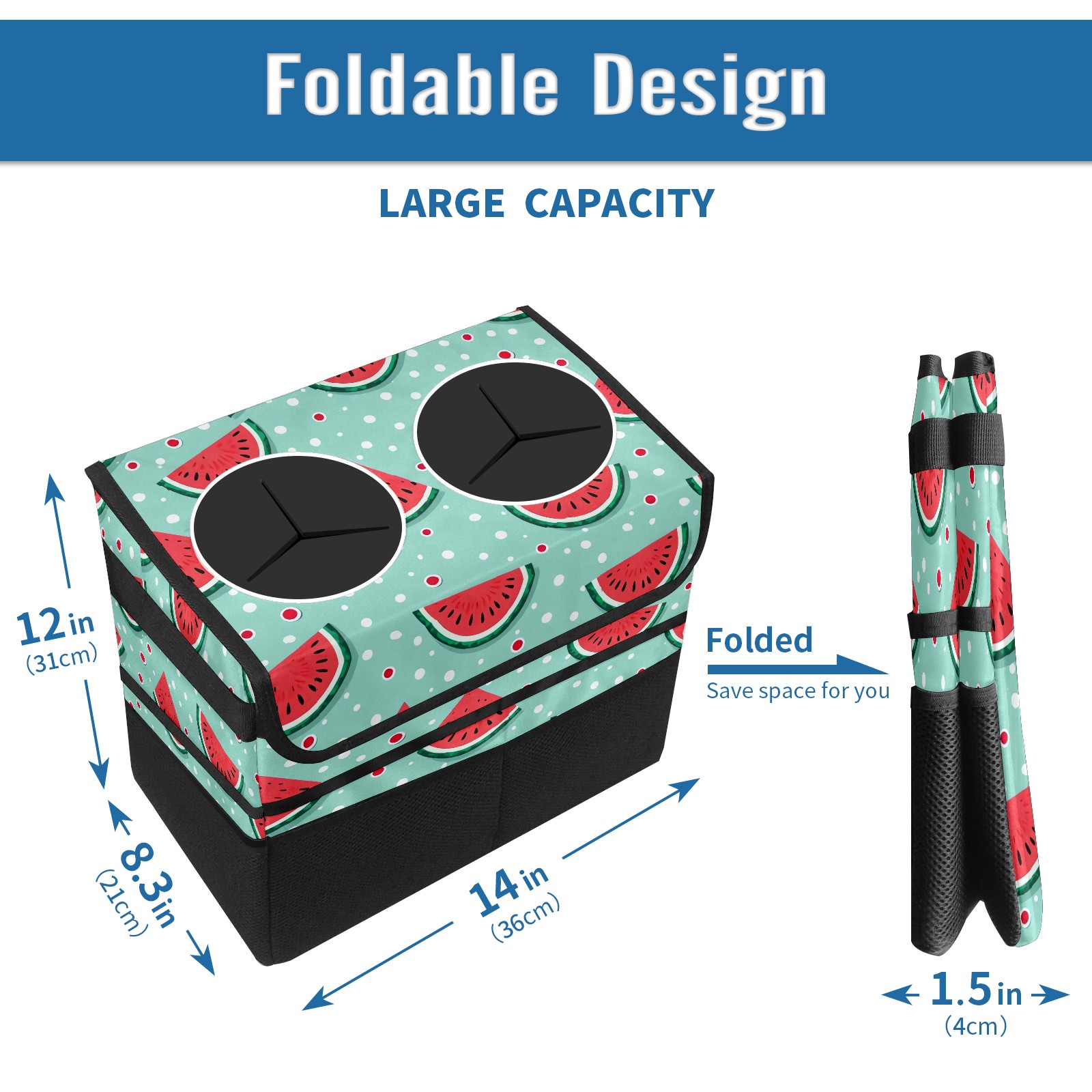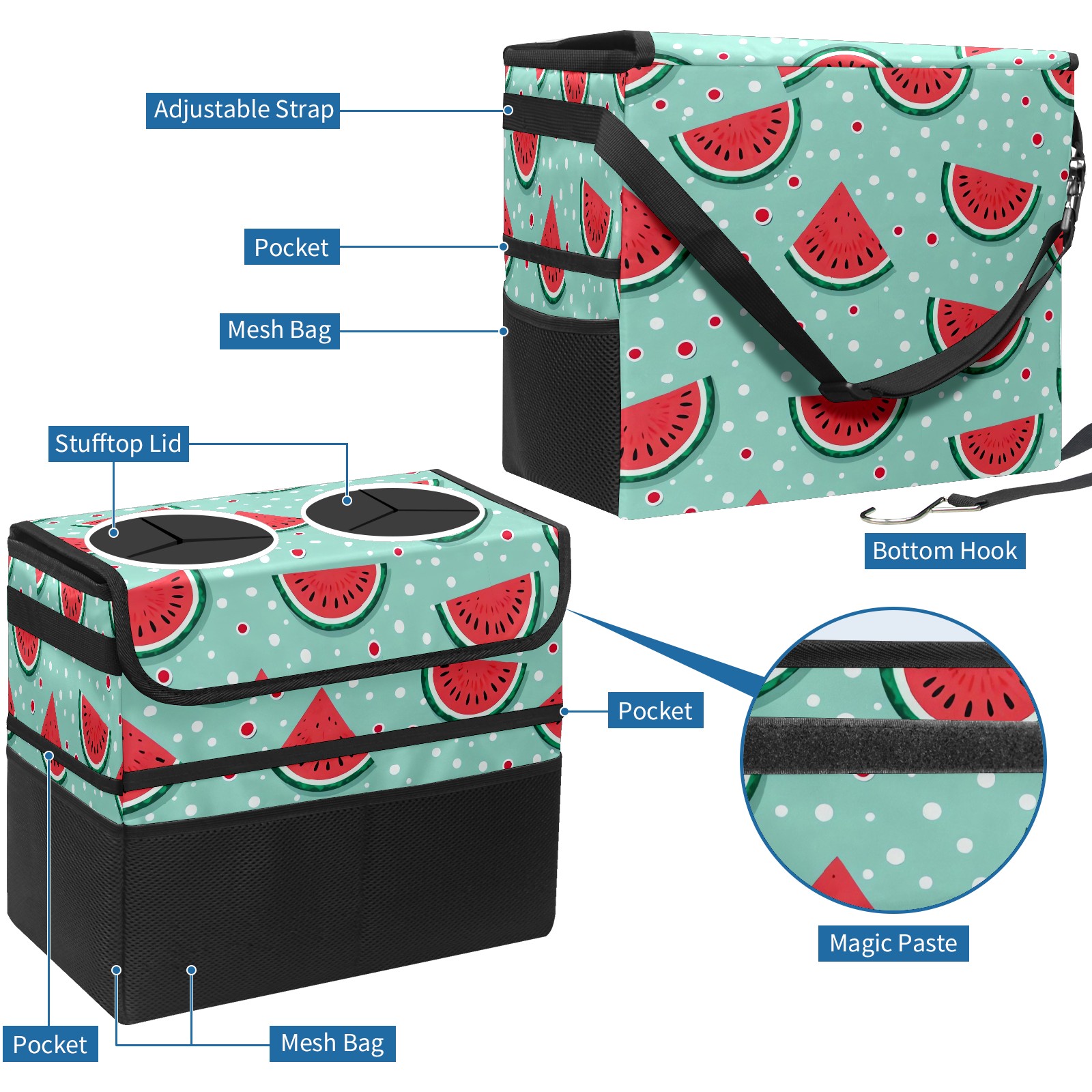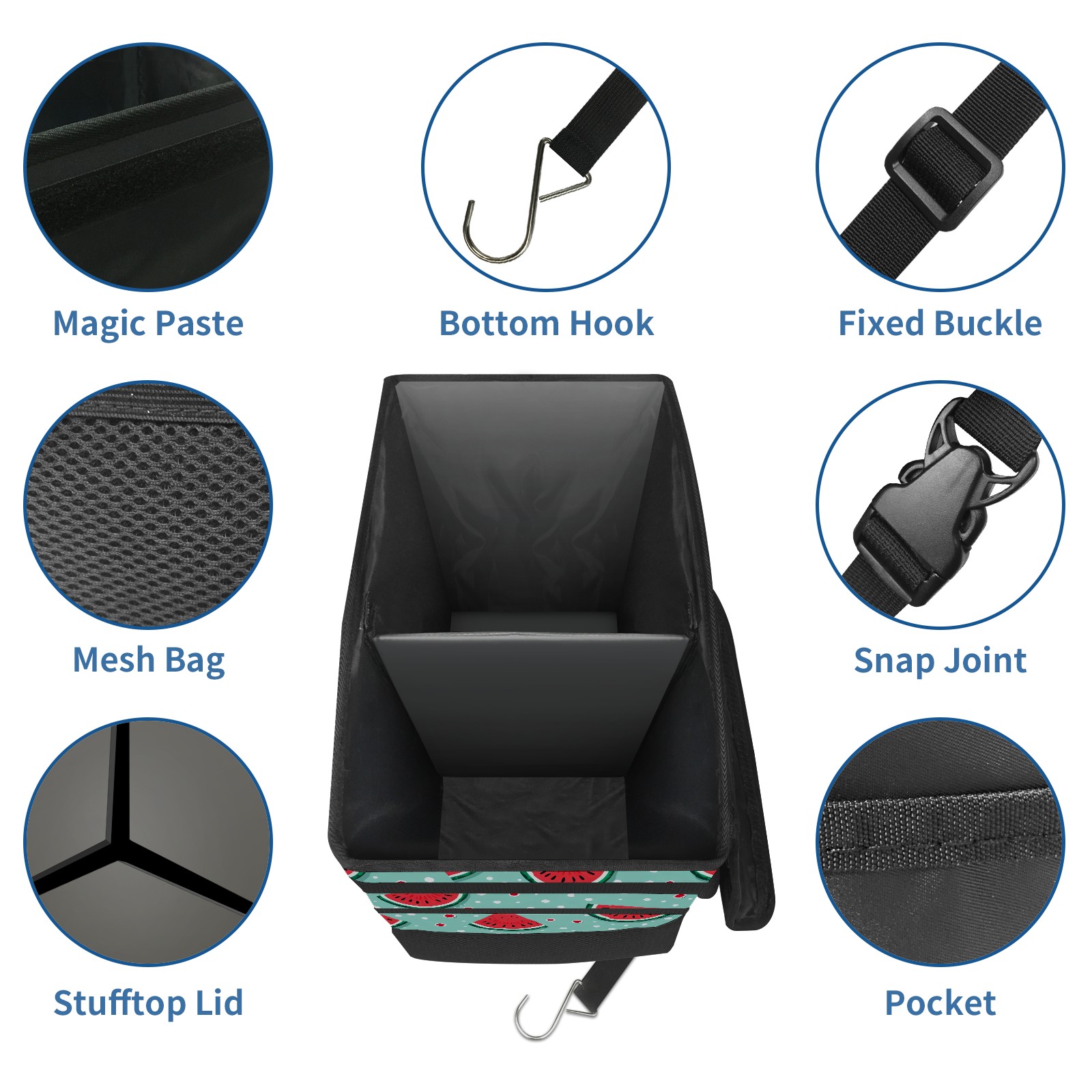 Car Trash Can with Lid, Portable Hanging Automotive Garbage Bin for Vehicles, Leakproof Waste Bag Container for SUV Truck Van Interior Auto Travel Road Trips(Watermelon)