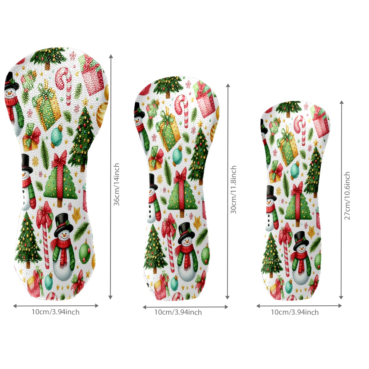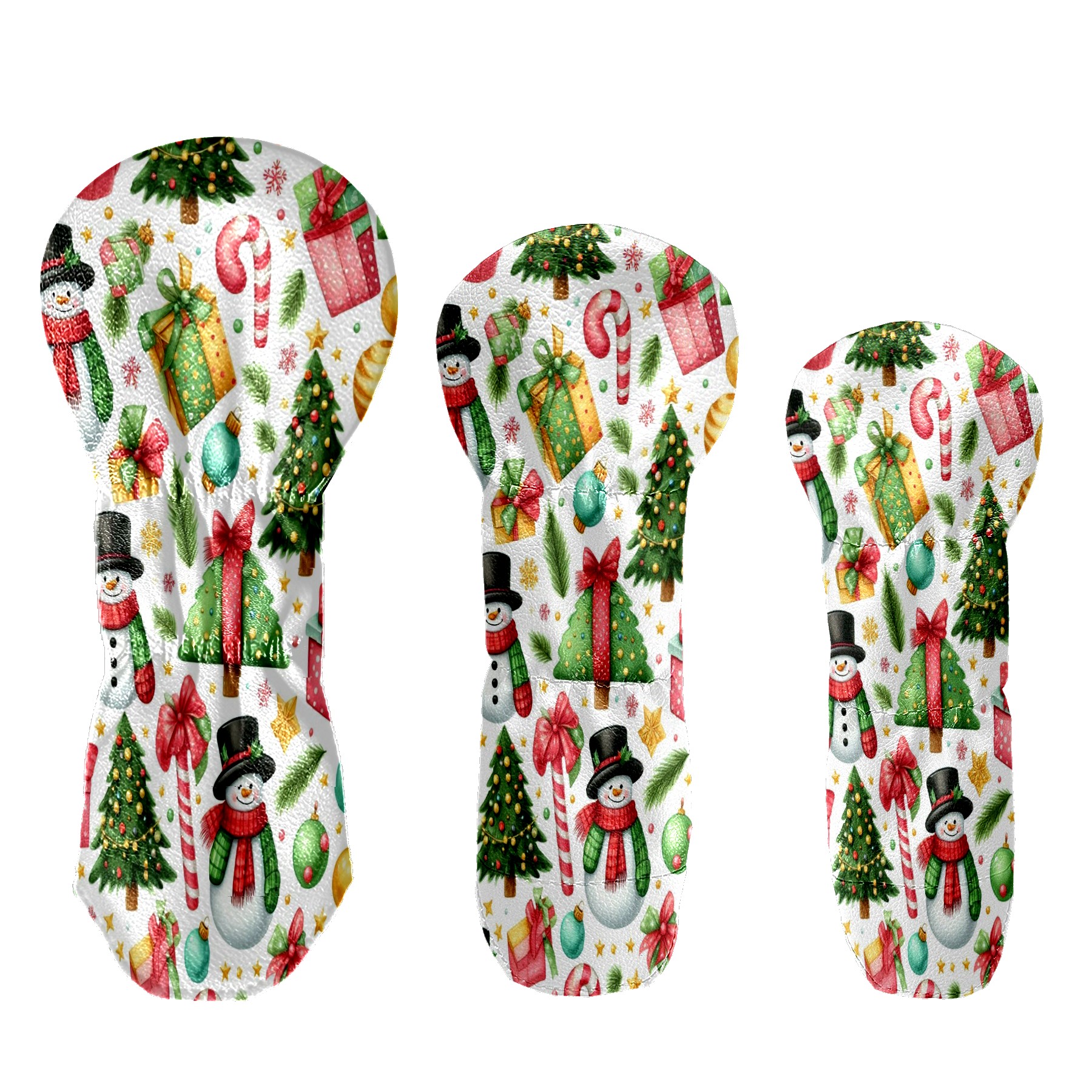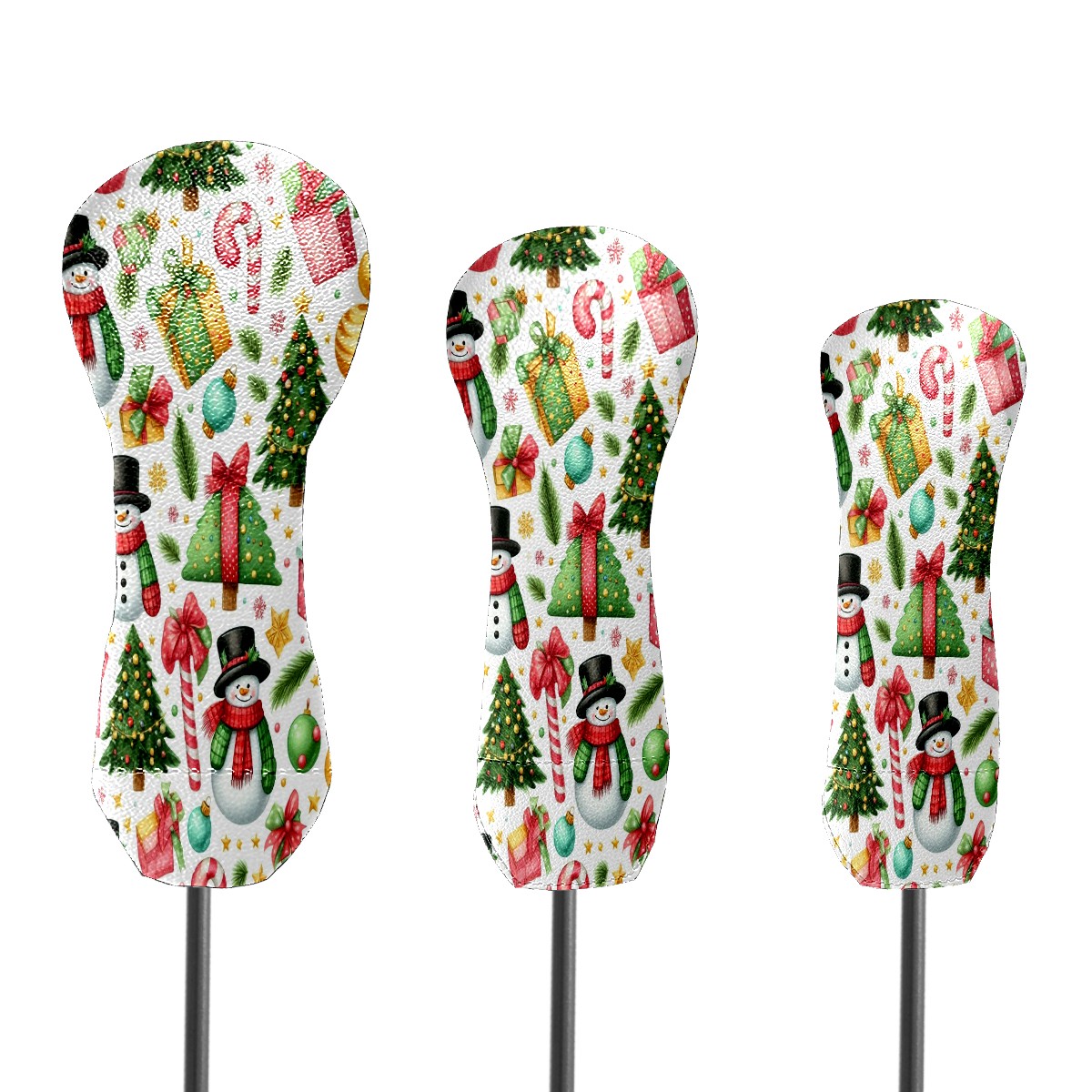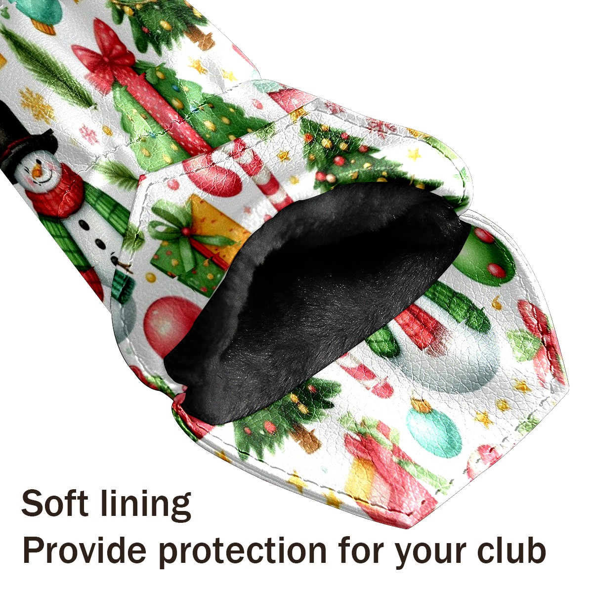 Golf Head Covers 3-Pack Green Christmas Snowman Trees Waterproof PU Leather & Plush Velvet Lining Fits Driver Fairway Hybrid Clubs, Scratch Protection Durable Golf Gift for Men & Women
