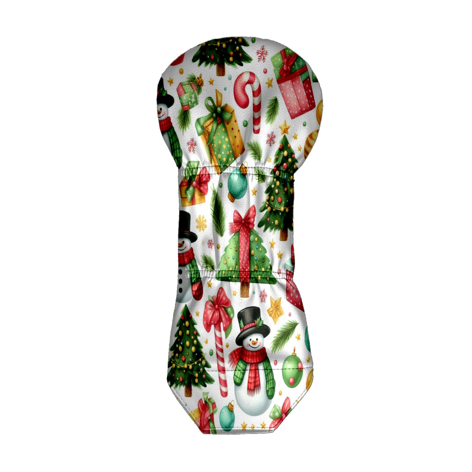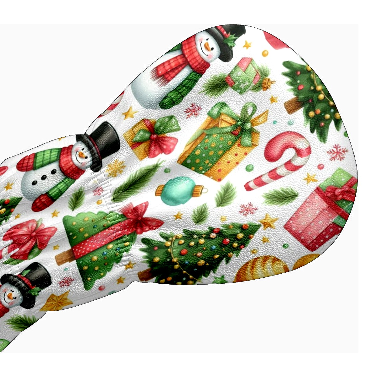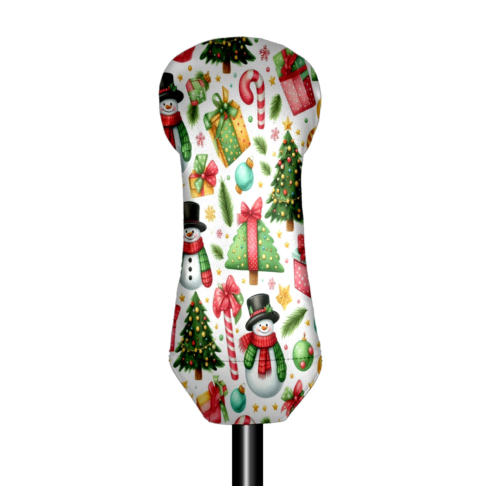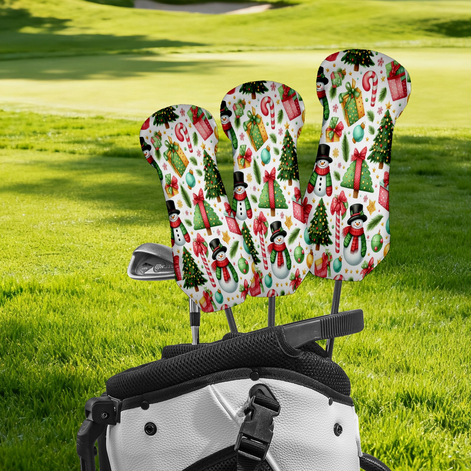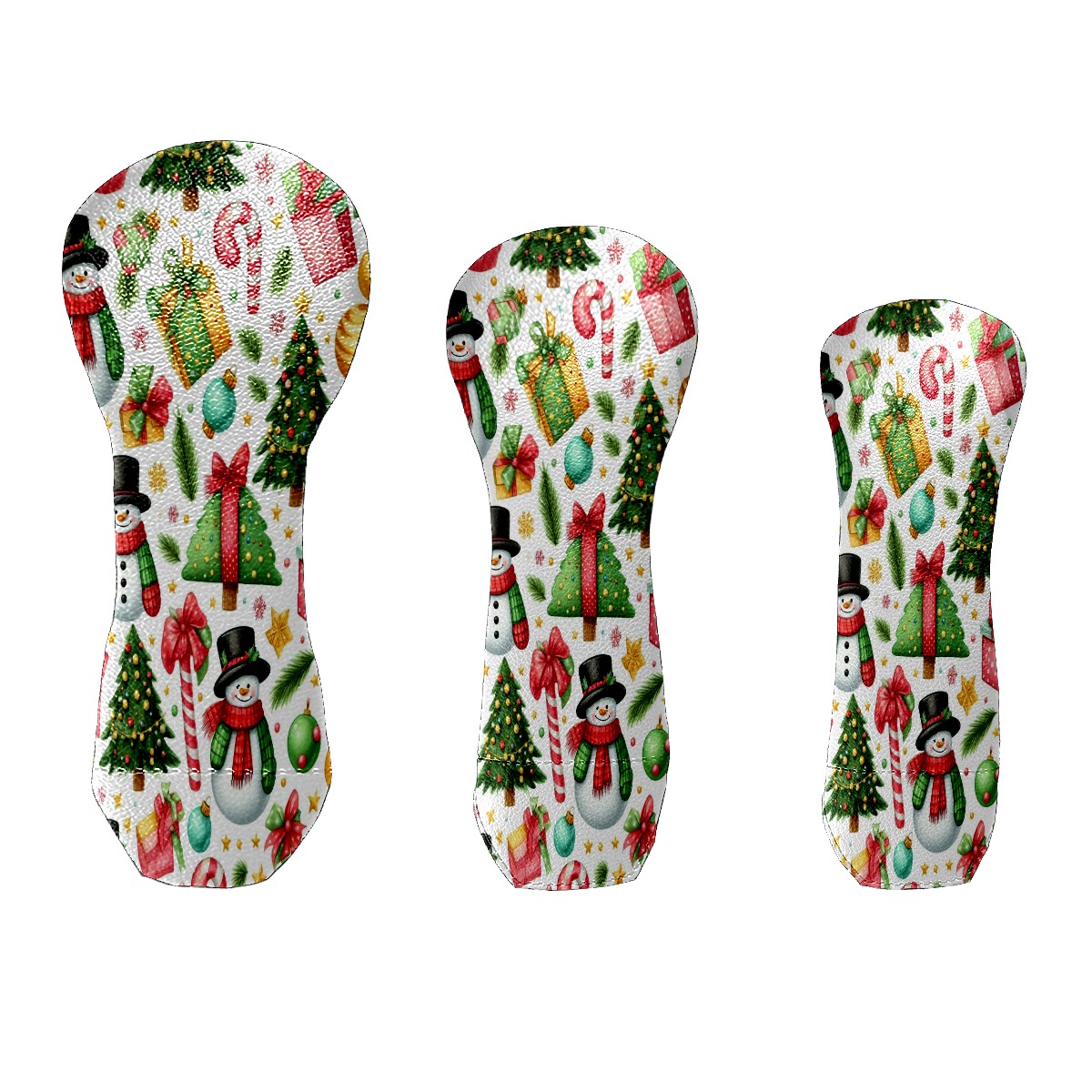 Golf Head Covers 3-Pack Green Christmas Snowman Trees Waterproof PU Leather & Plush Velvet Lining Fits Driver Fairway Hybrid Clubs, Scratch Protection Durable Golf Gift for Men & Women