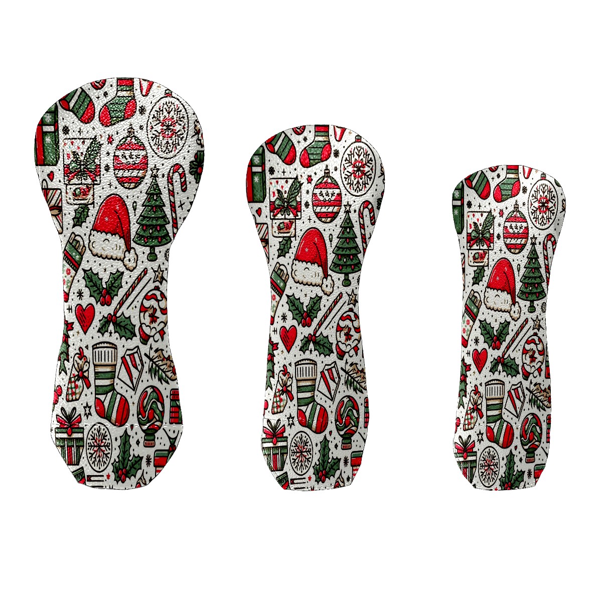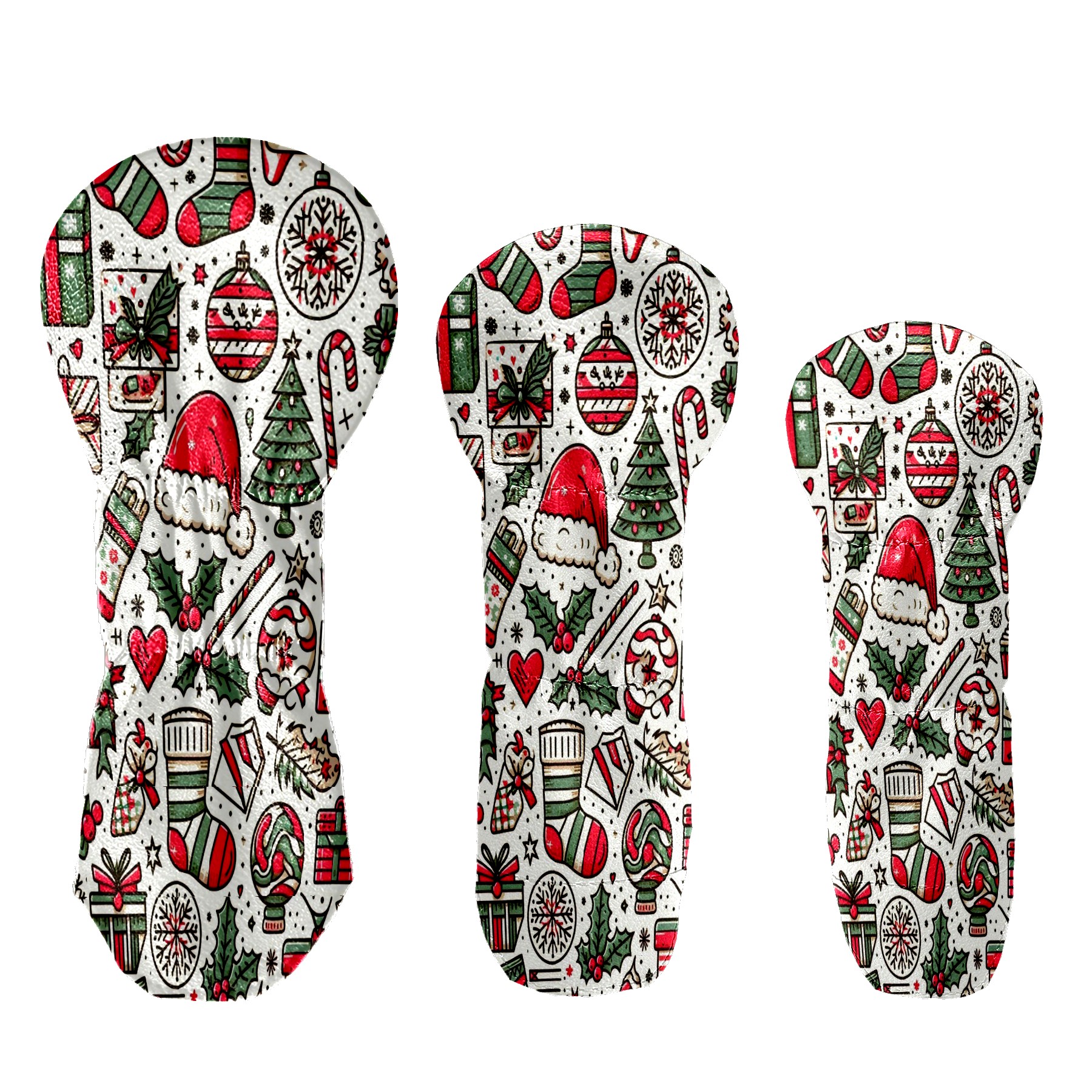 Golf Head Covers 3-Pack Red Green Christmas Gifts Waterproof PU Leather & Plush Velvet Lining Fits Driver Fairway Hybrid Clubs, Scratch Protection Durable Golf Gift for Men & Women