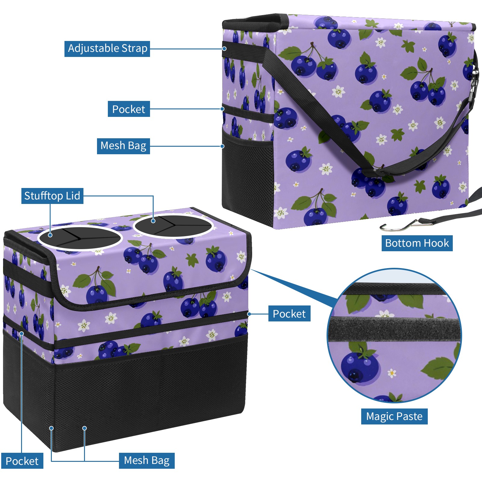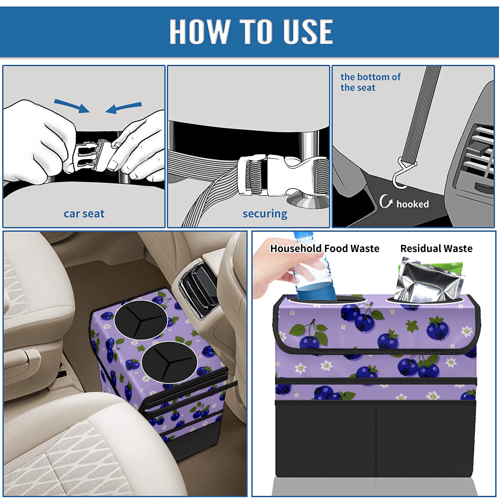 Car Trash Can with Lid, Portable Hanging Automotive Garbage Bin for Vehicles, Leakproof Waste Bag Container for SUV Truck Van Interior Auto Travel Road Trips(Blueberry)