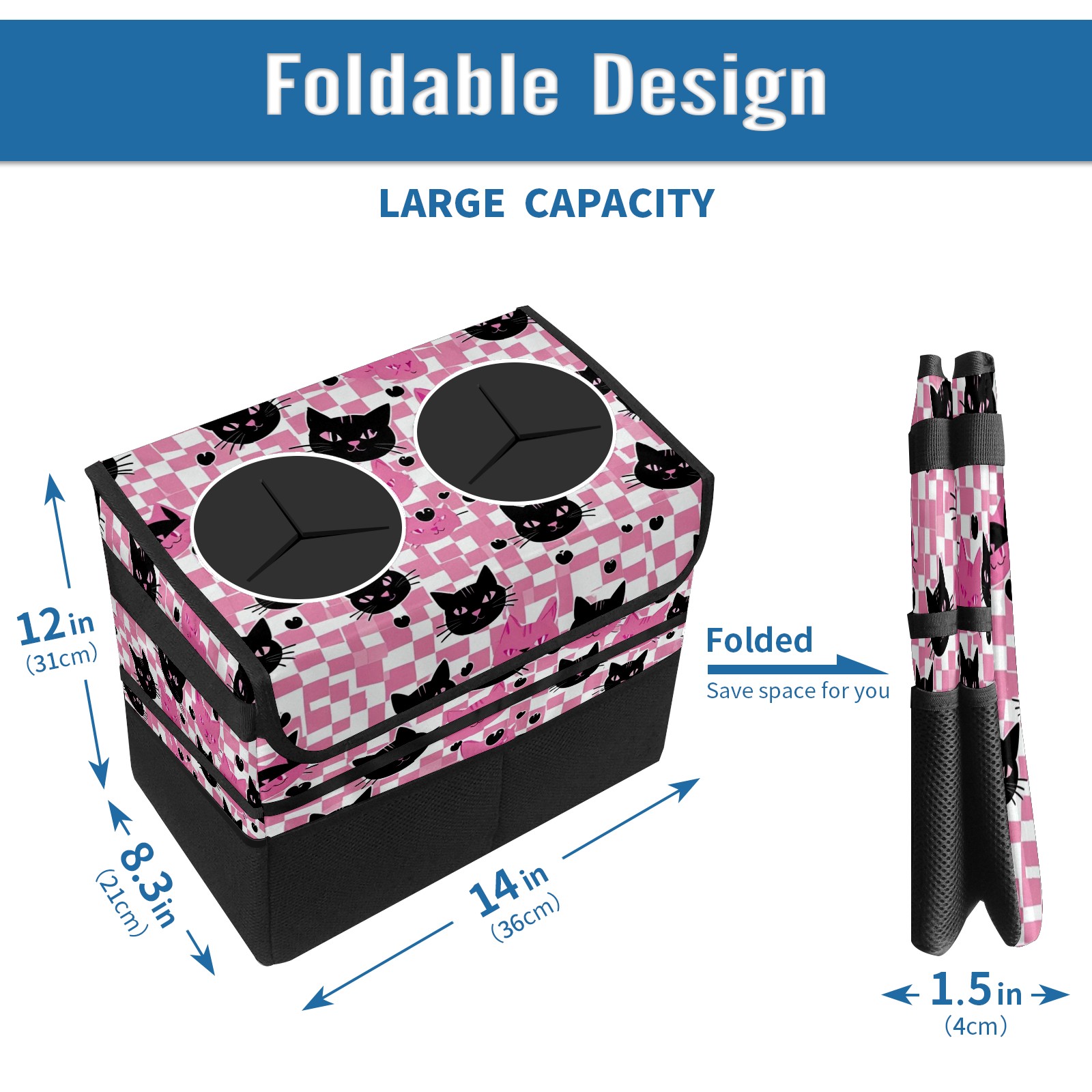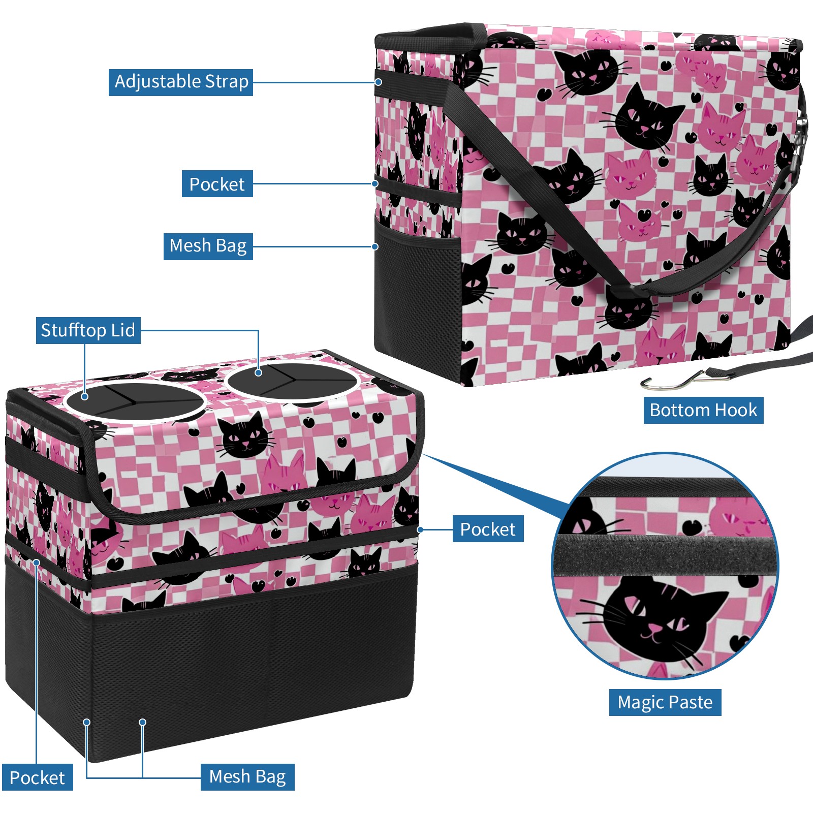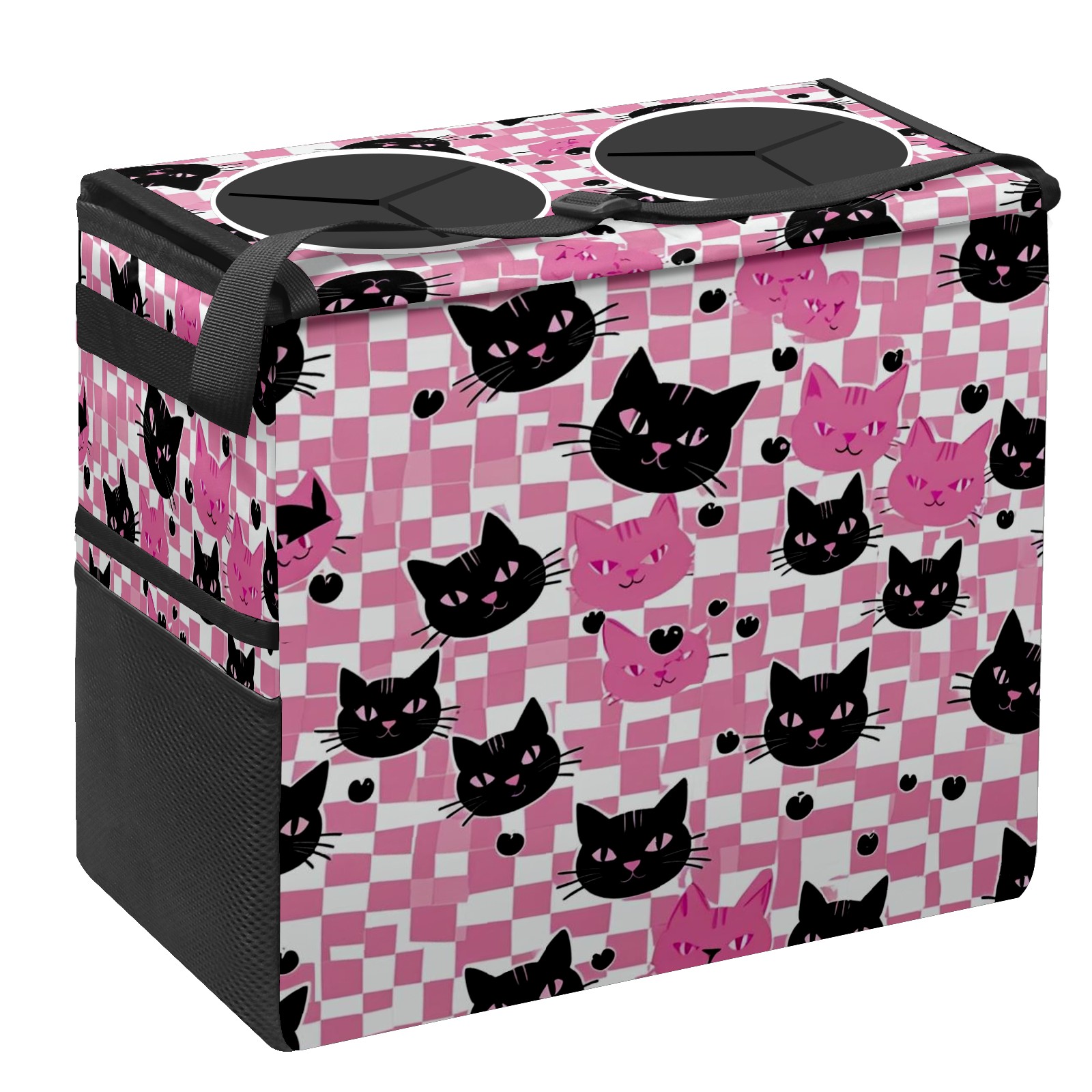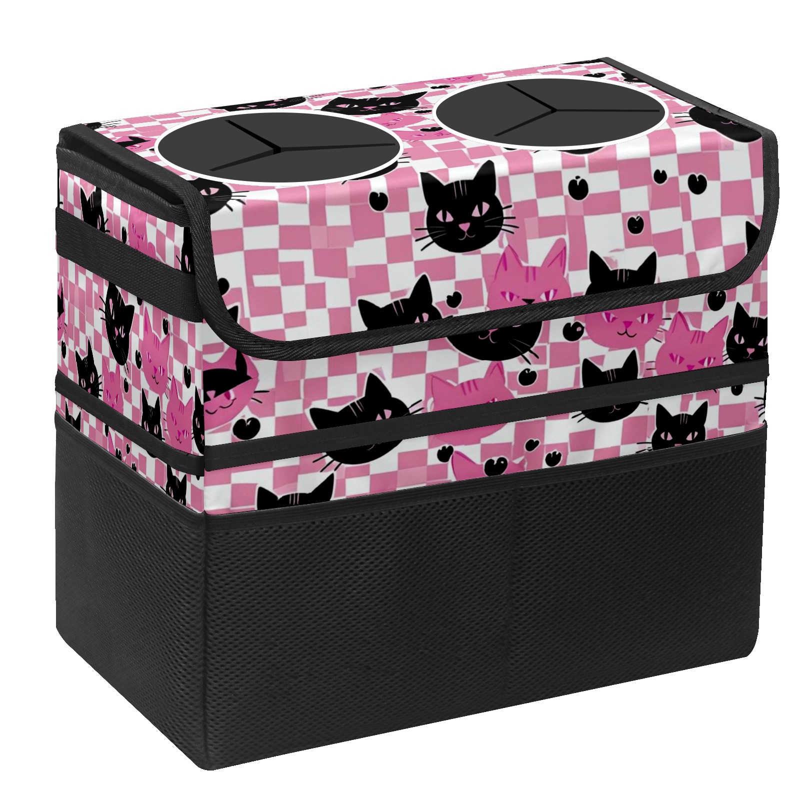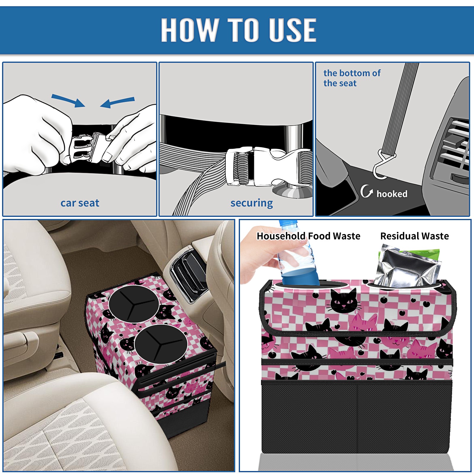 Car Trash Can with Lid, Portable Hanging Automotive Garbage Bin for Vehicles, Leakproof Waste Bag Container for SUV Truck Van Interior Auto Travel Road Trips(Pink Black Cat)
