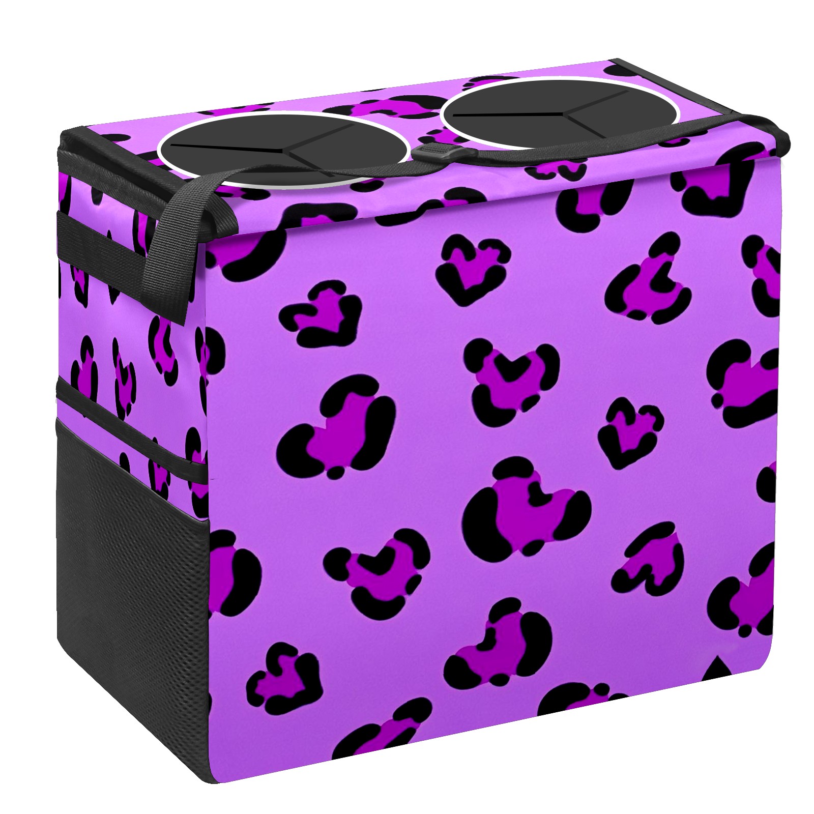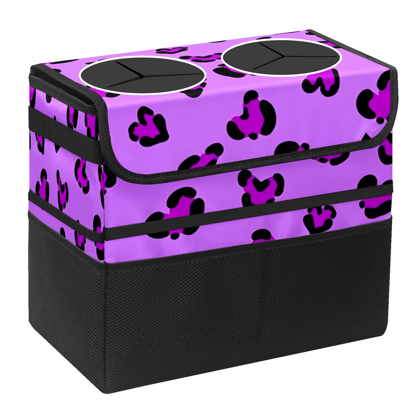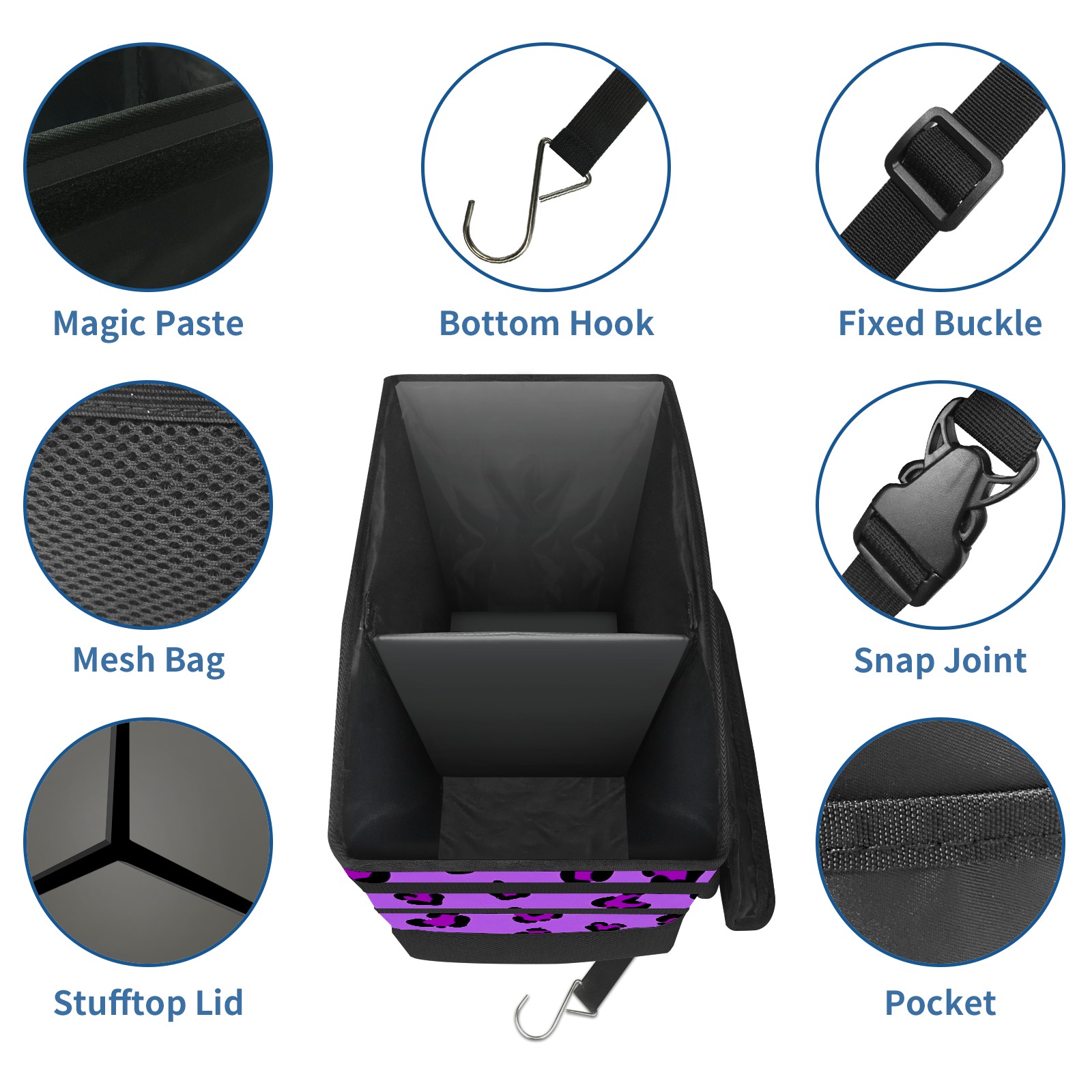 Car Trash Can with Lid, Portable Hanging Automotive Garbage Bin for Vehicles, Leakproof Waste Bag Container for SUV Truck Van Interior Auto Travel Road Trips(Purple Leopard)