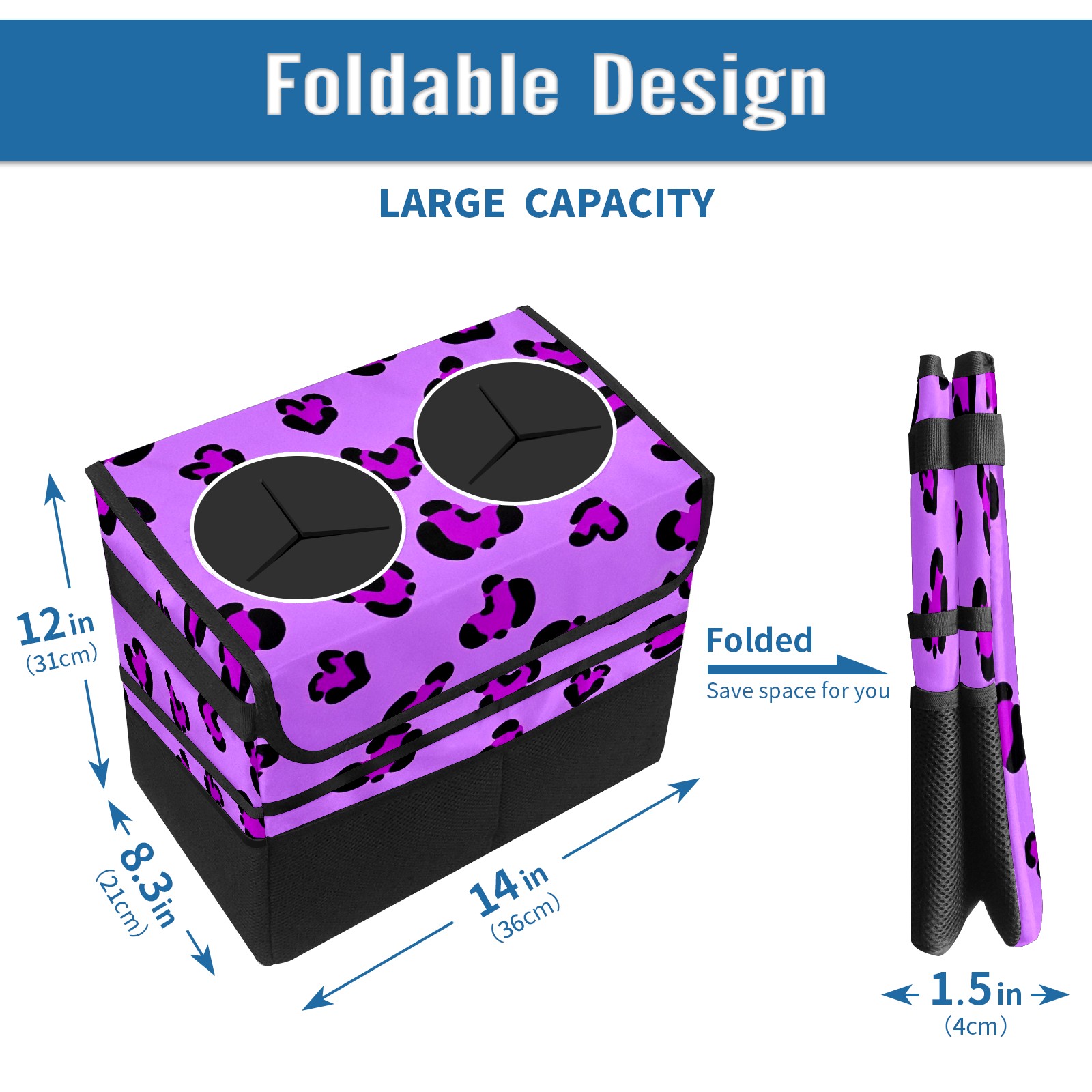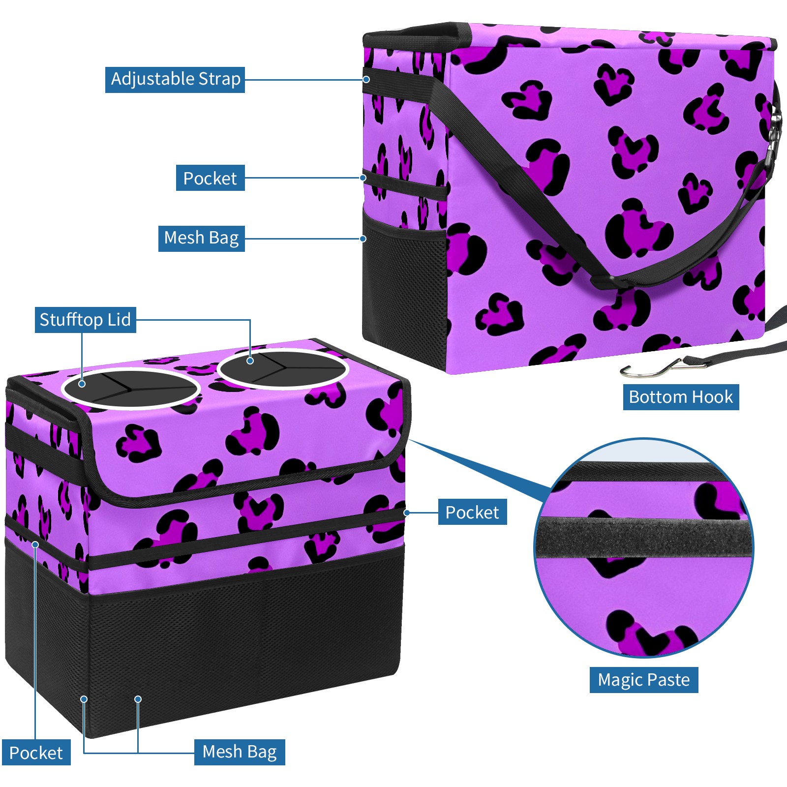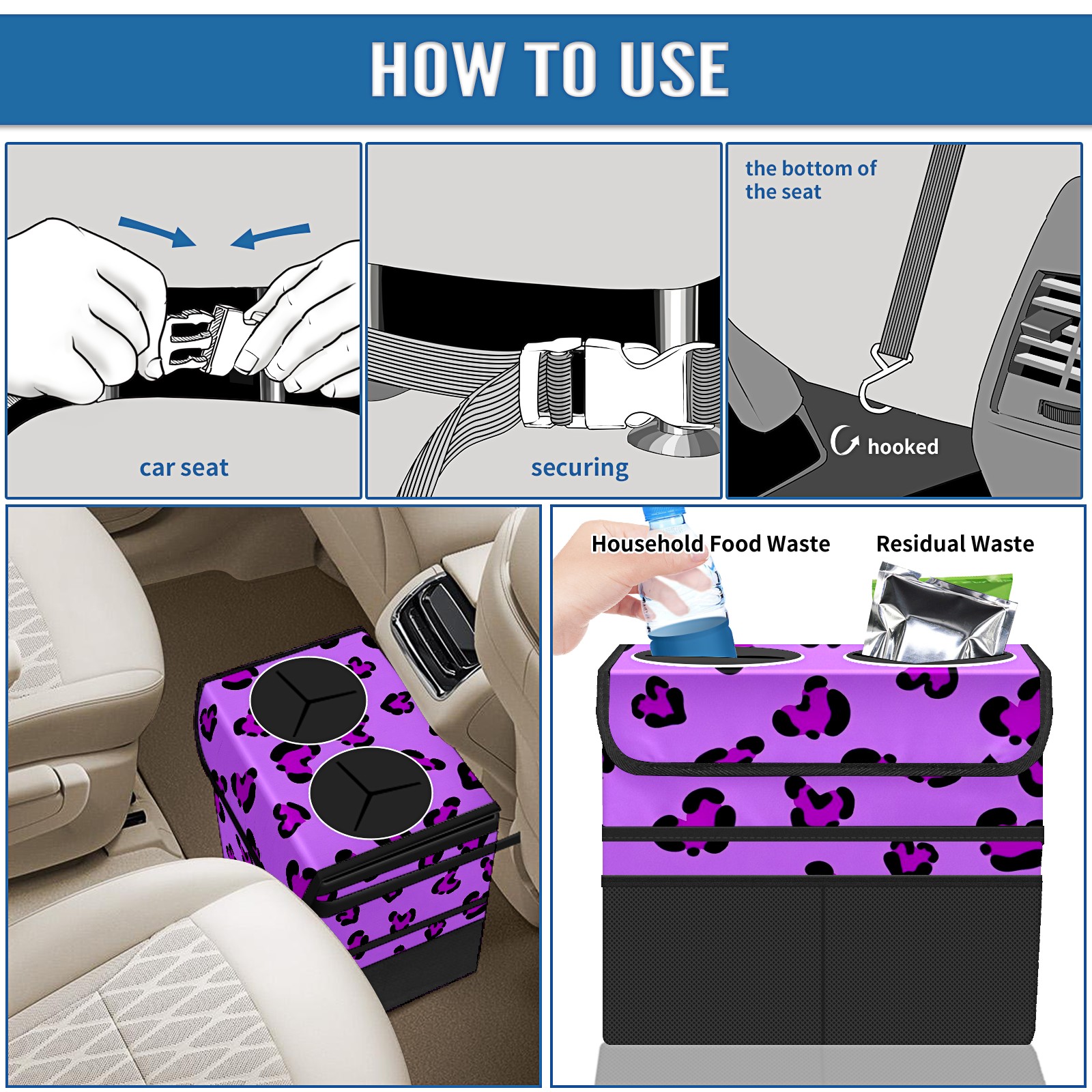 Car Trash Can with Lid, Portable Hanging Automotive Garbage Bin for Vehicles, Leakproof Waste Bag Container for SUV Truck Van Interior Auto Travel Road Trips(Purple Leopard)