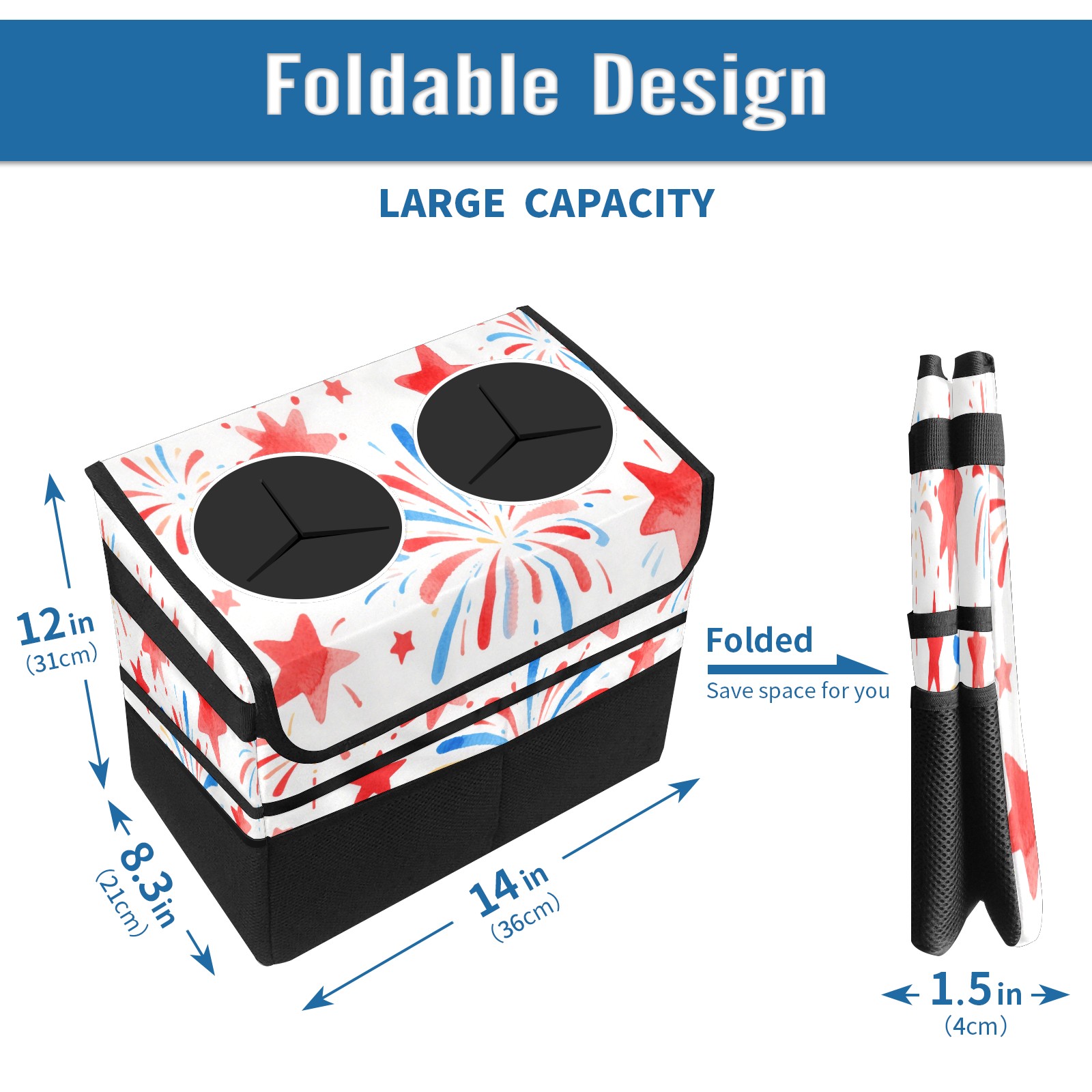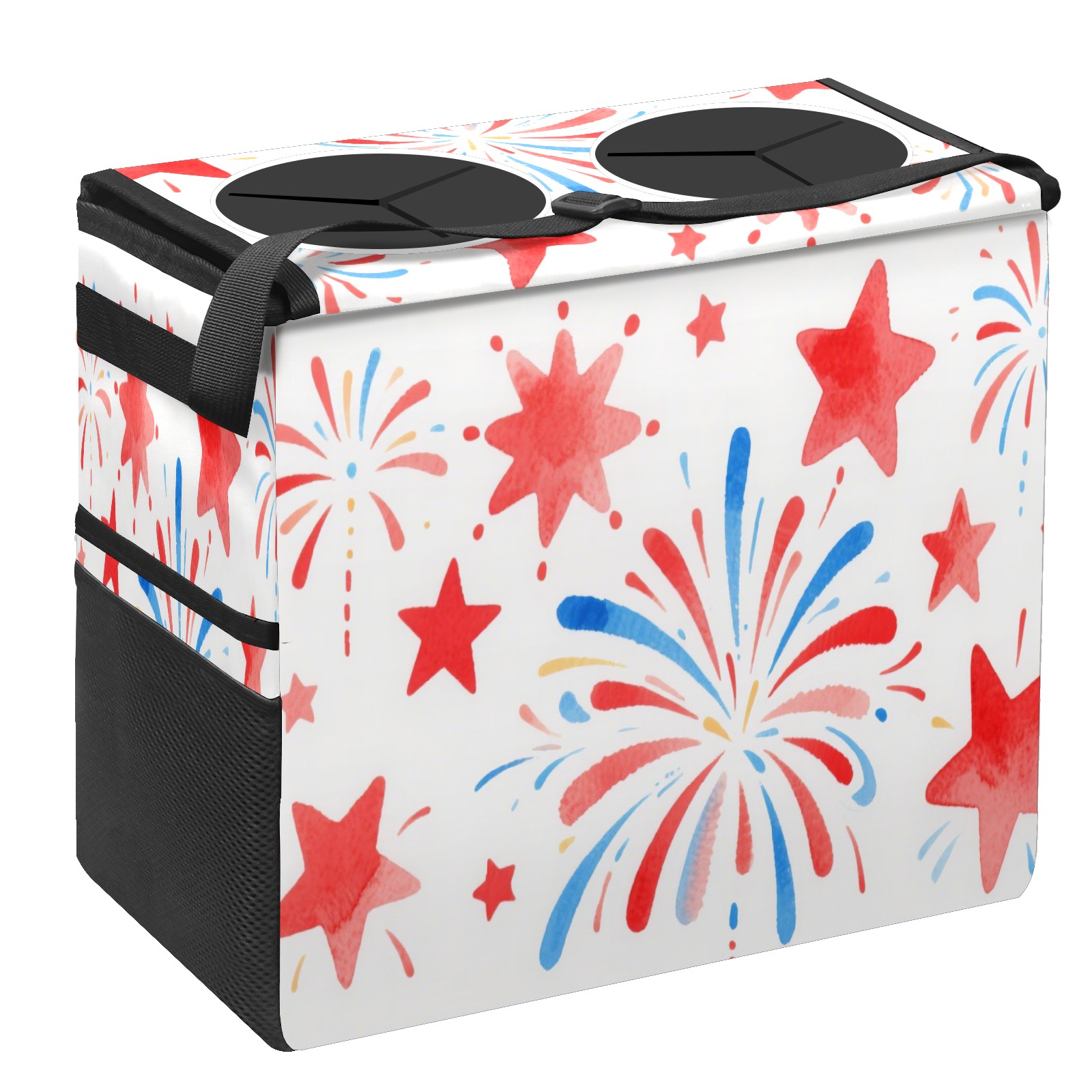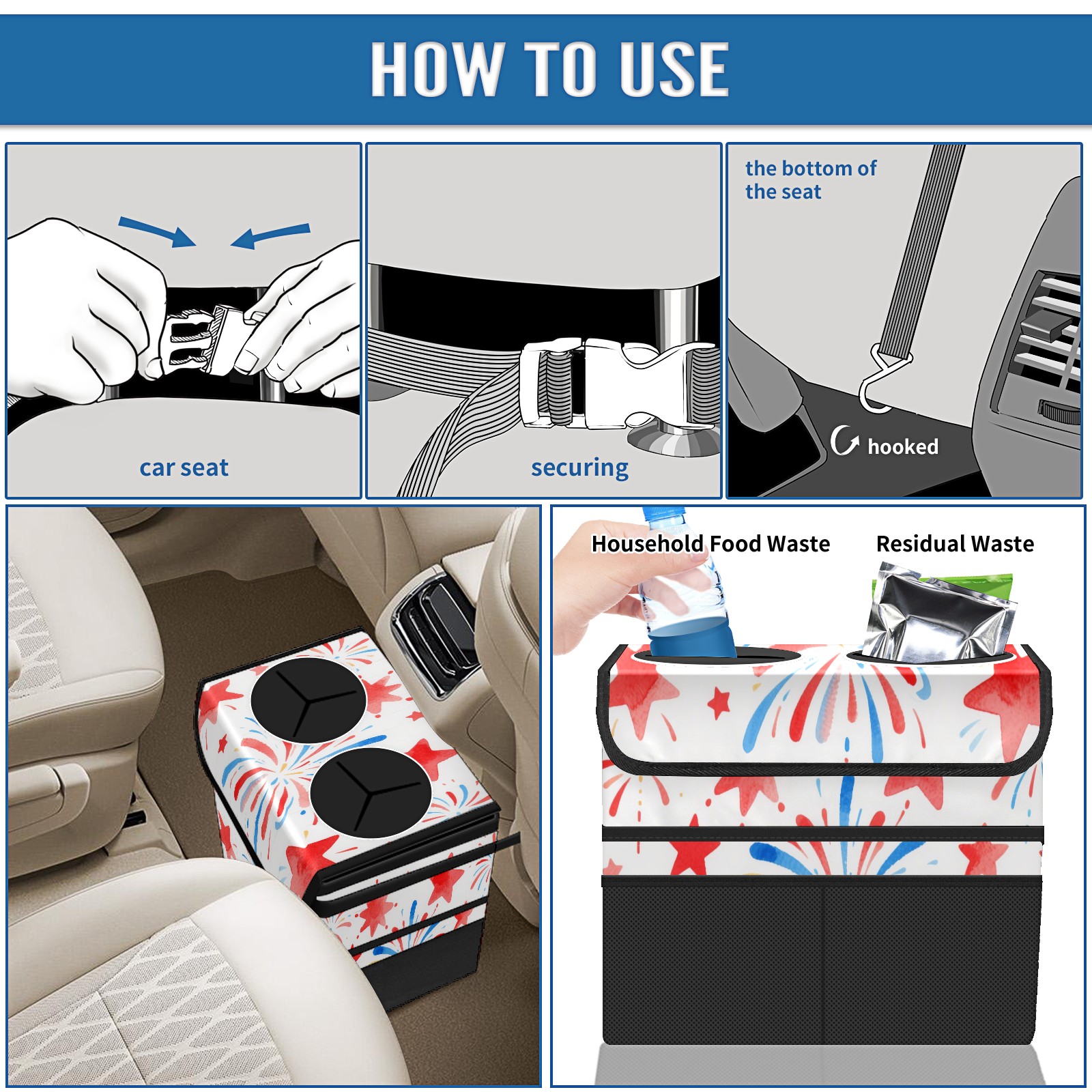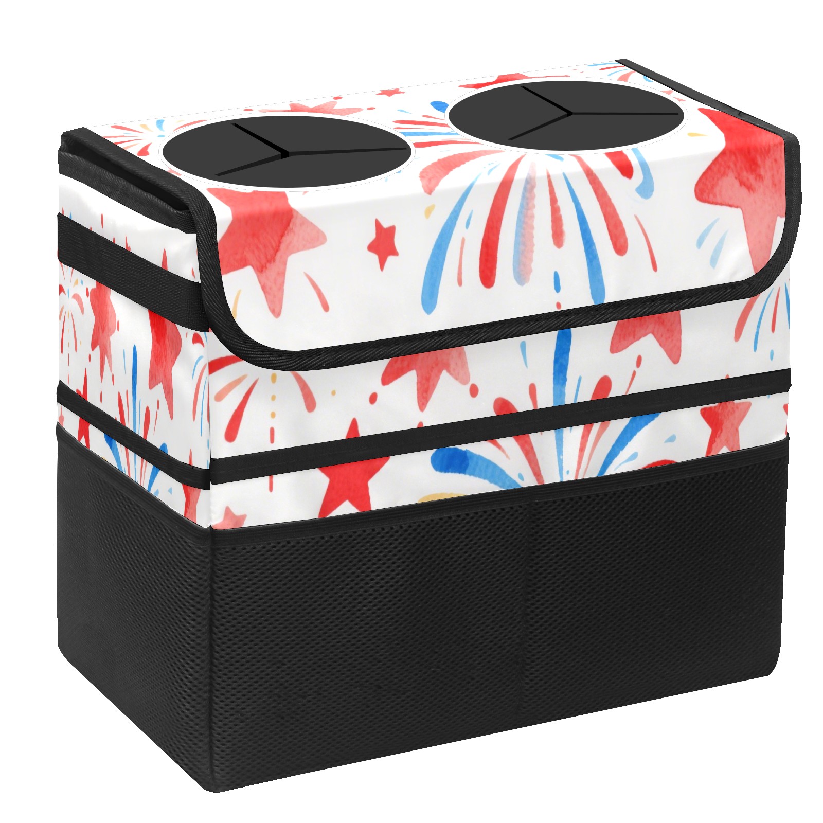 Car Trash Can with Lid, Portable Hanging Automotive Garbage Bin for Vehicles, Leakproof Waste Bag Container for SUV Truck Van Interior Auto Travel Road Trips(Firework Star)
