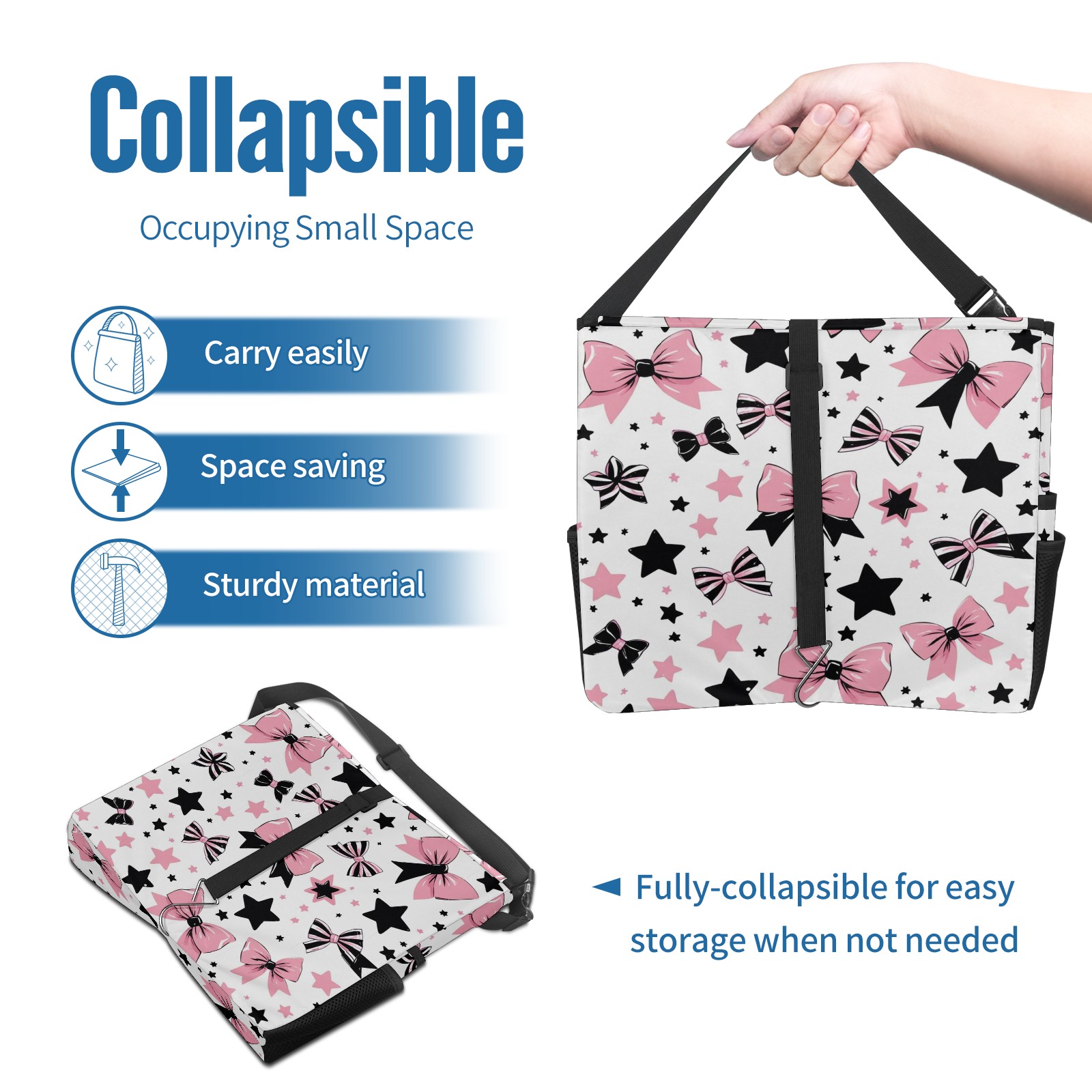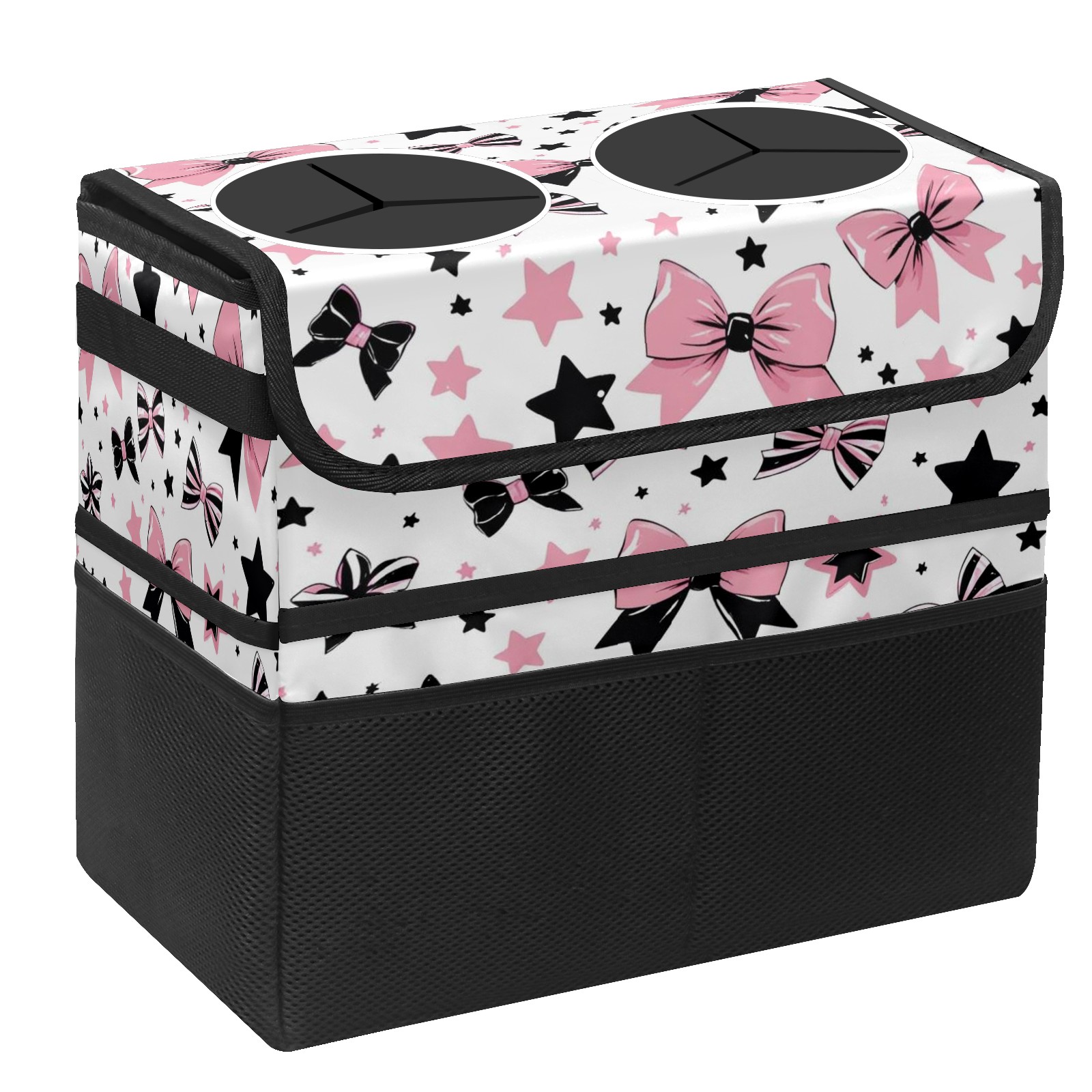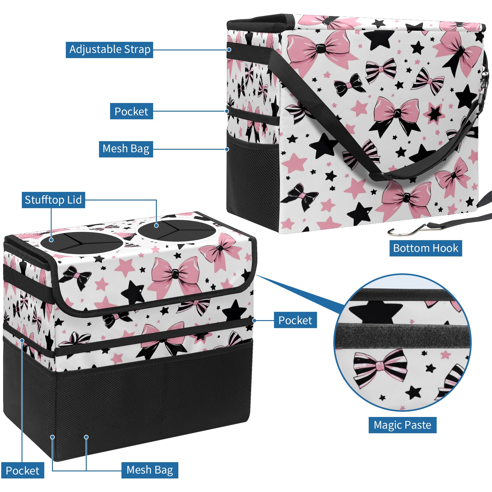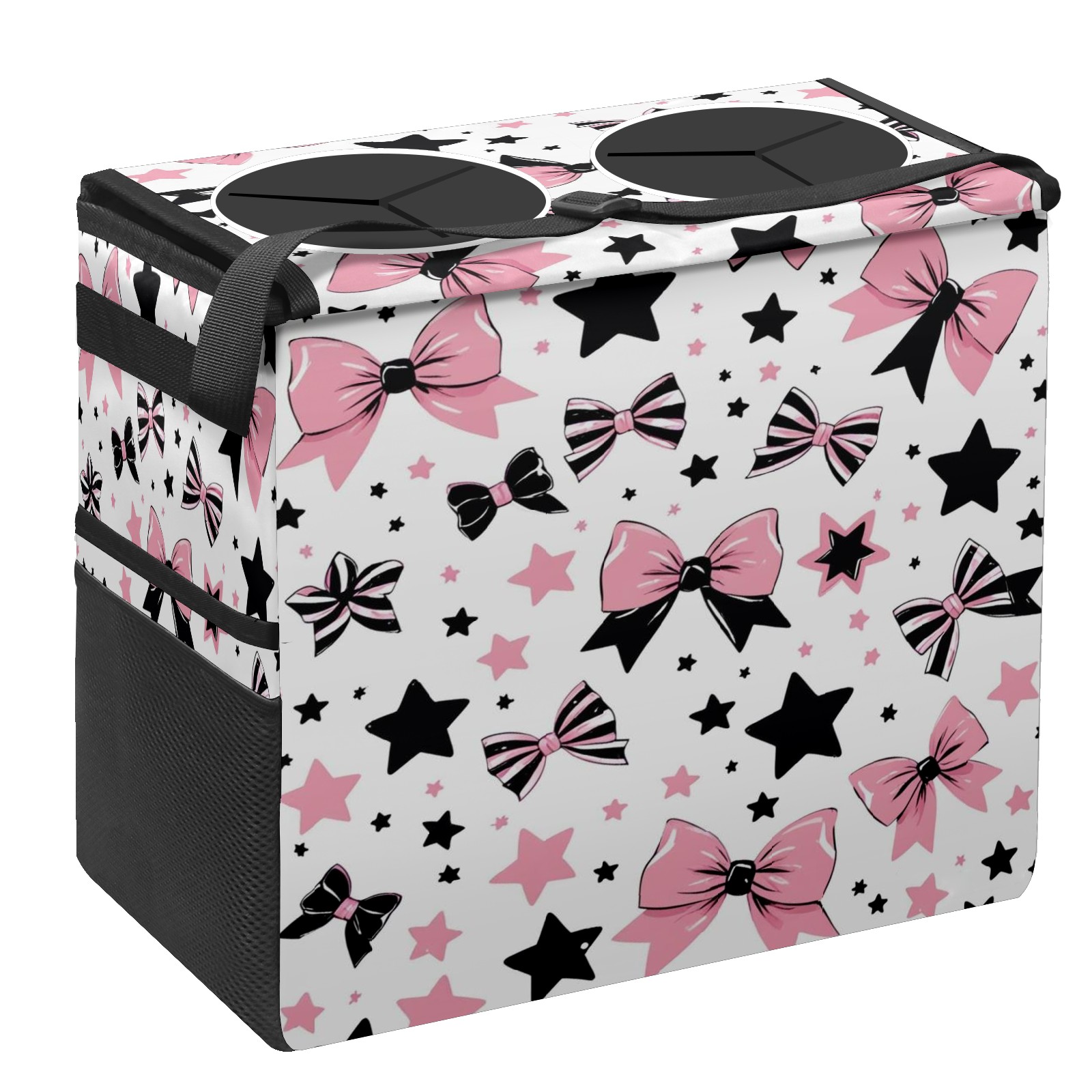 Car Trash Can with Lid, Portable Hanging Automotive Garbage Bin for Vehicles, Leakproof Waste Bag Container for SUV Truck Van Interior Auto Travel Road Trips(Pinkblack Star)