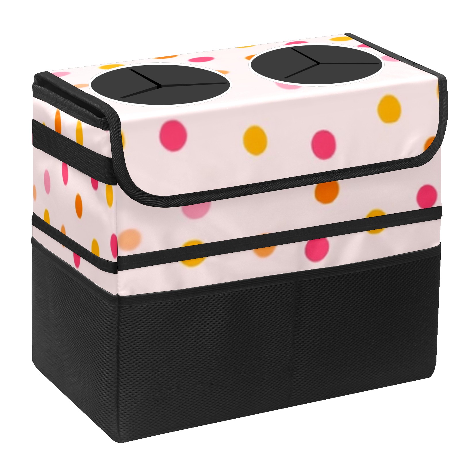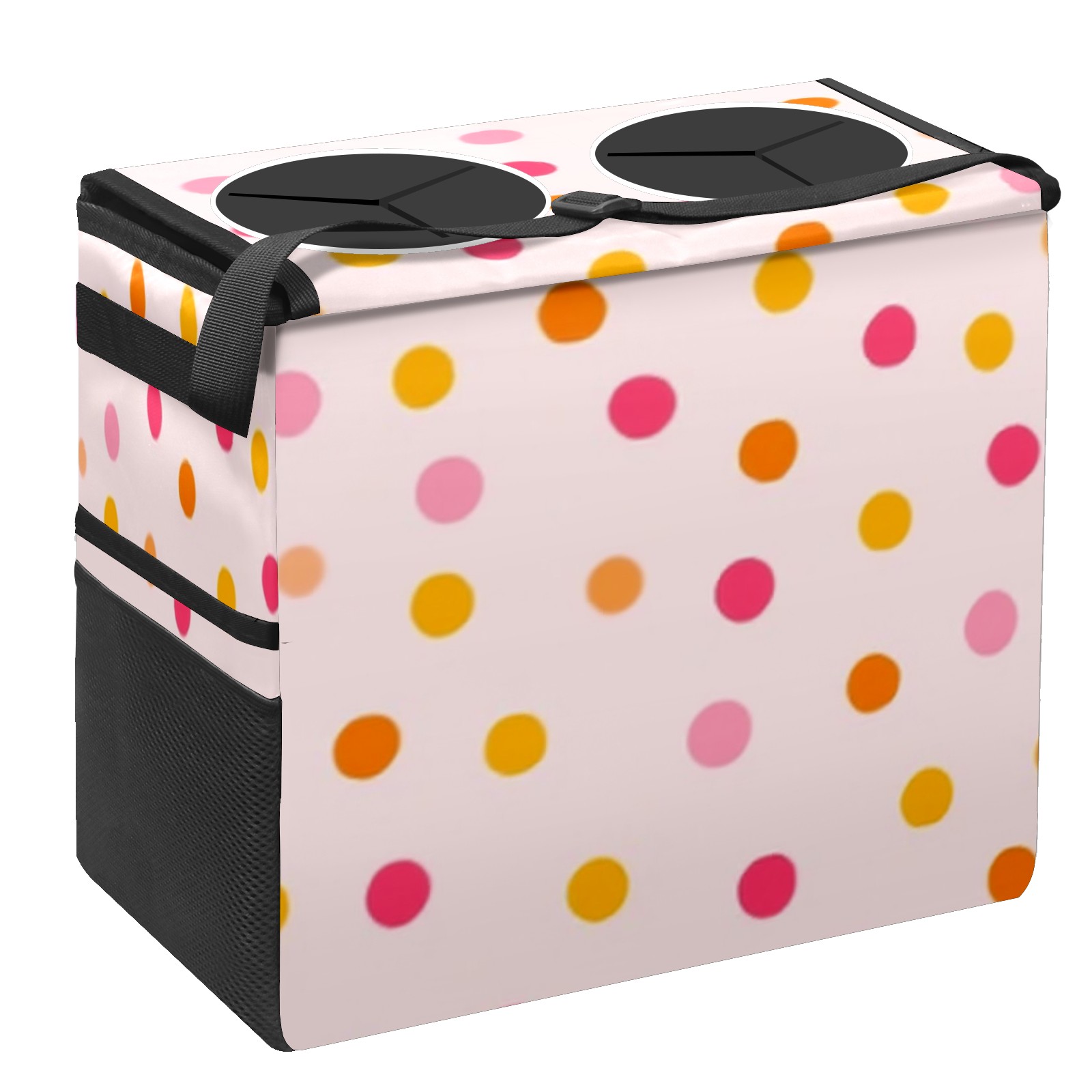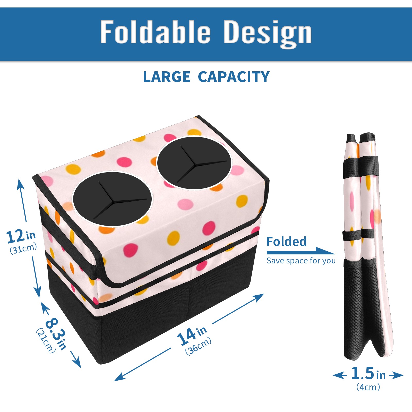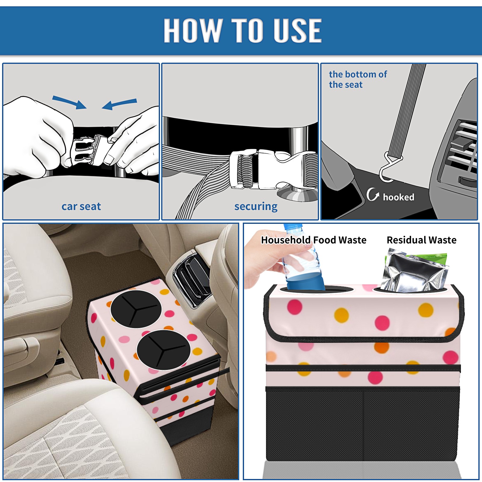 Car Trash Can with Lid, Portable Hanging Automotive Garbage Bin for Vehicles, Leakproof Waste Bag Container for SUV Truck Van Interior Auto Travel Road Trips(Pink Polka Dot)