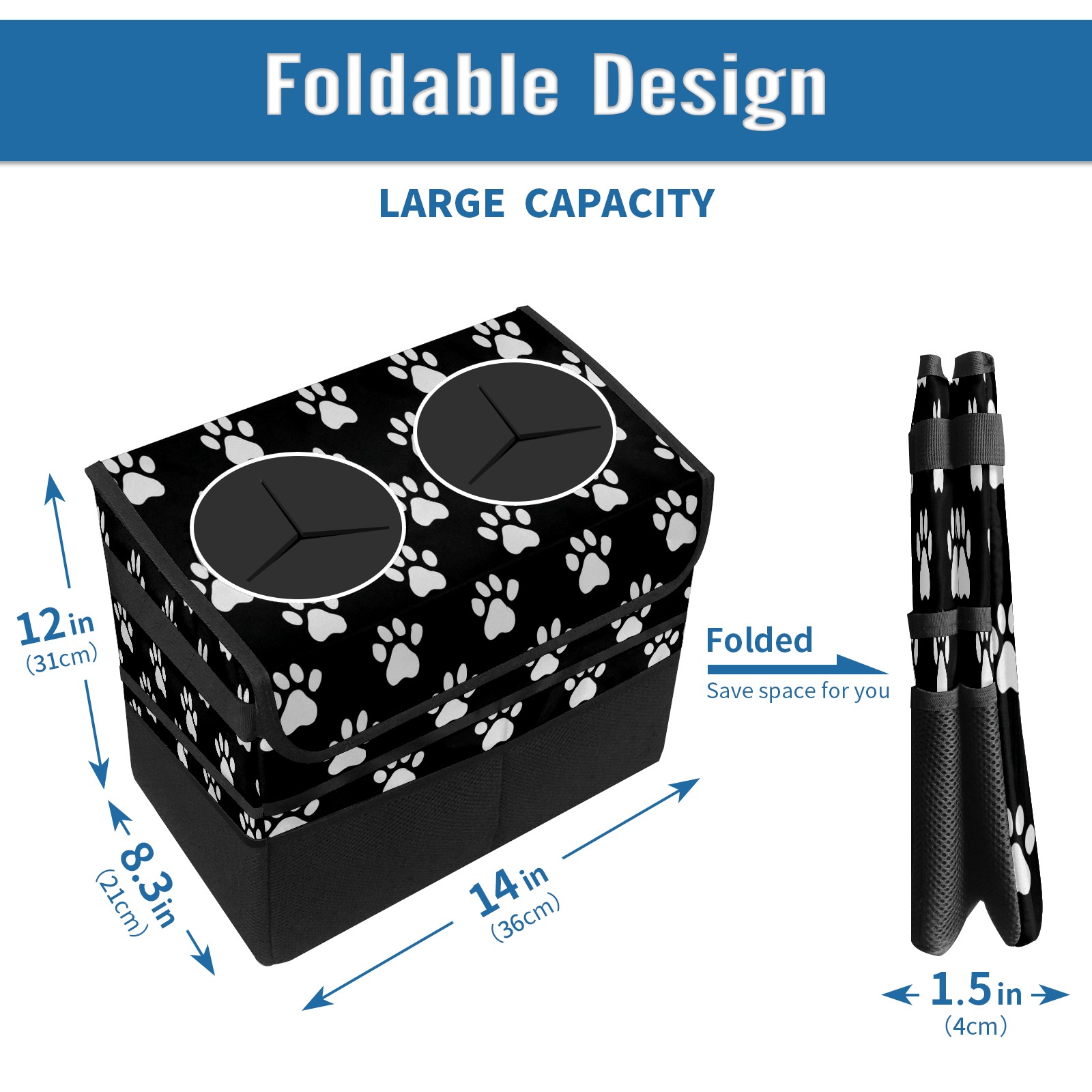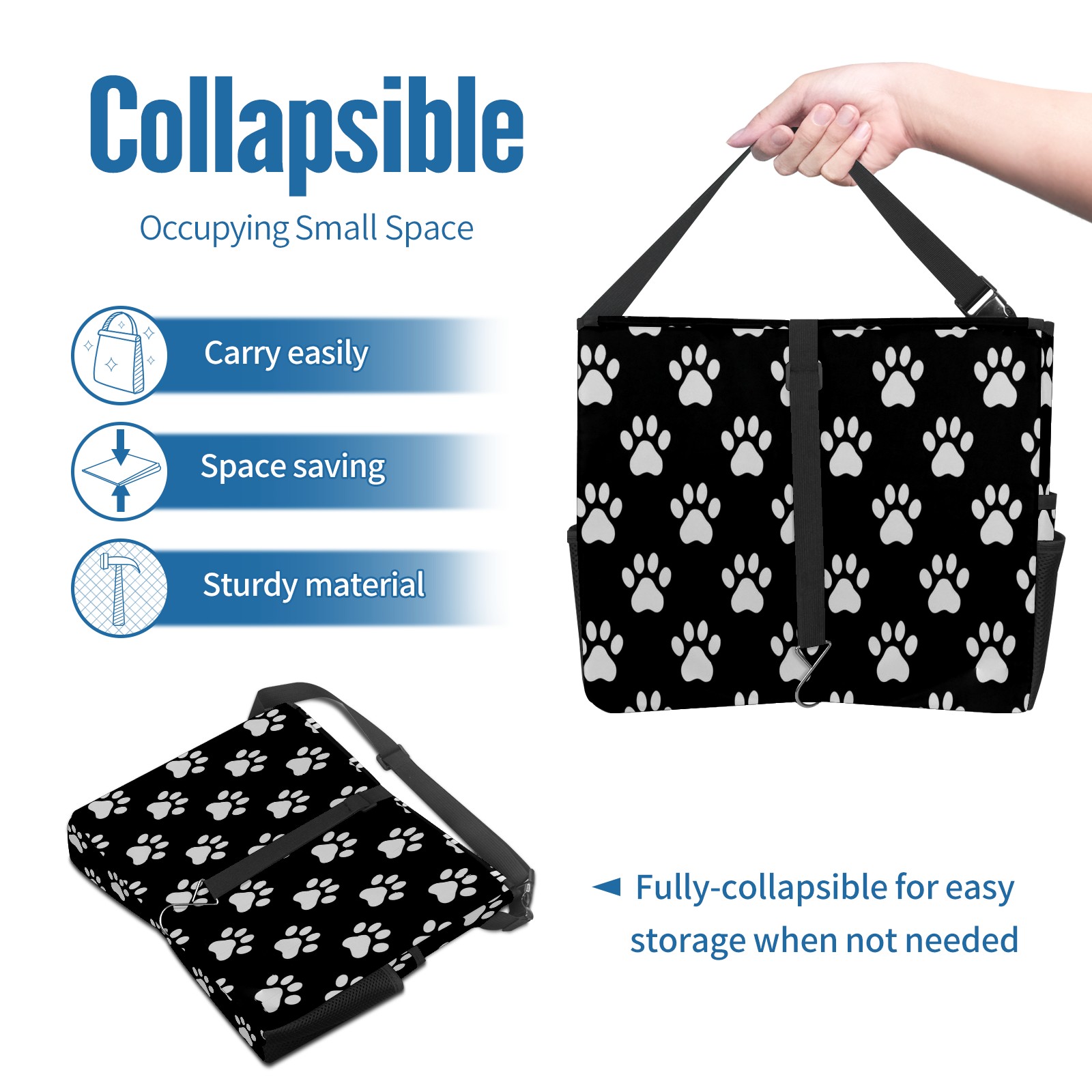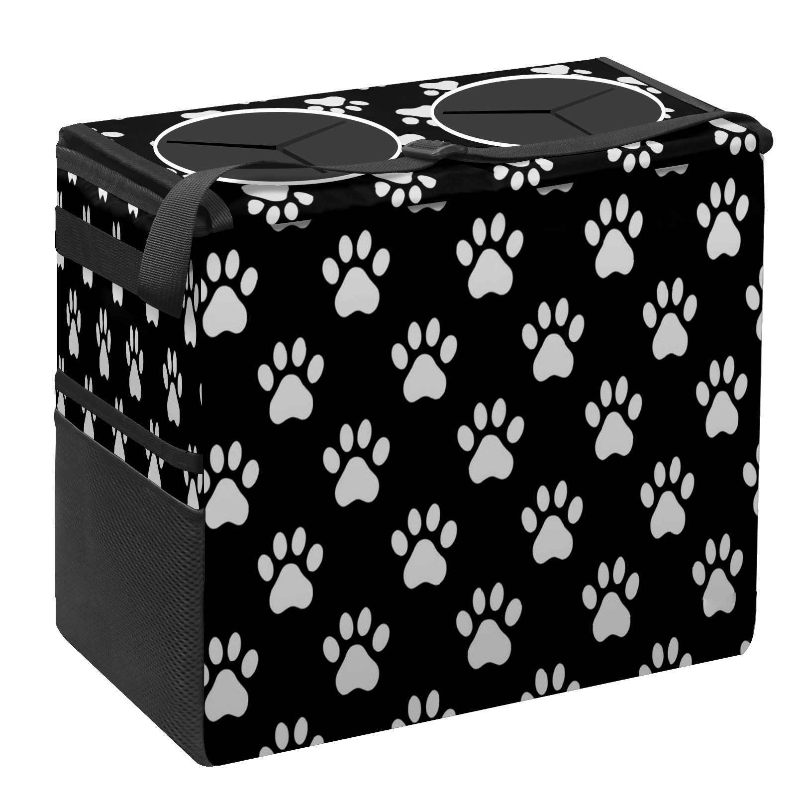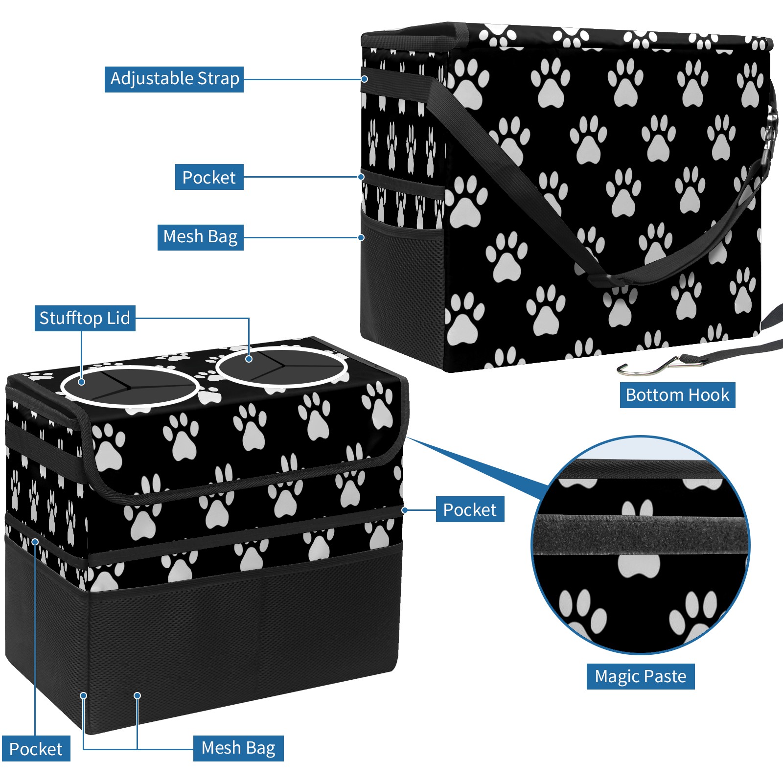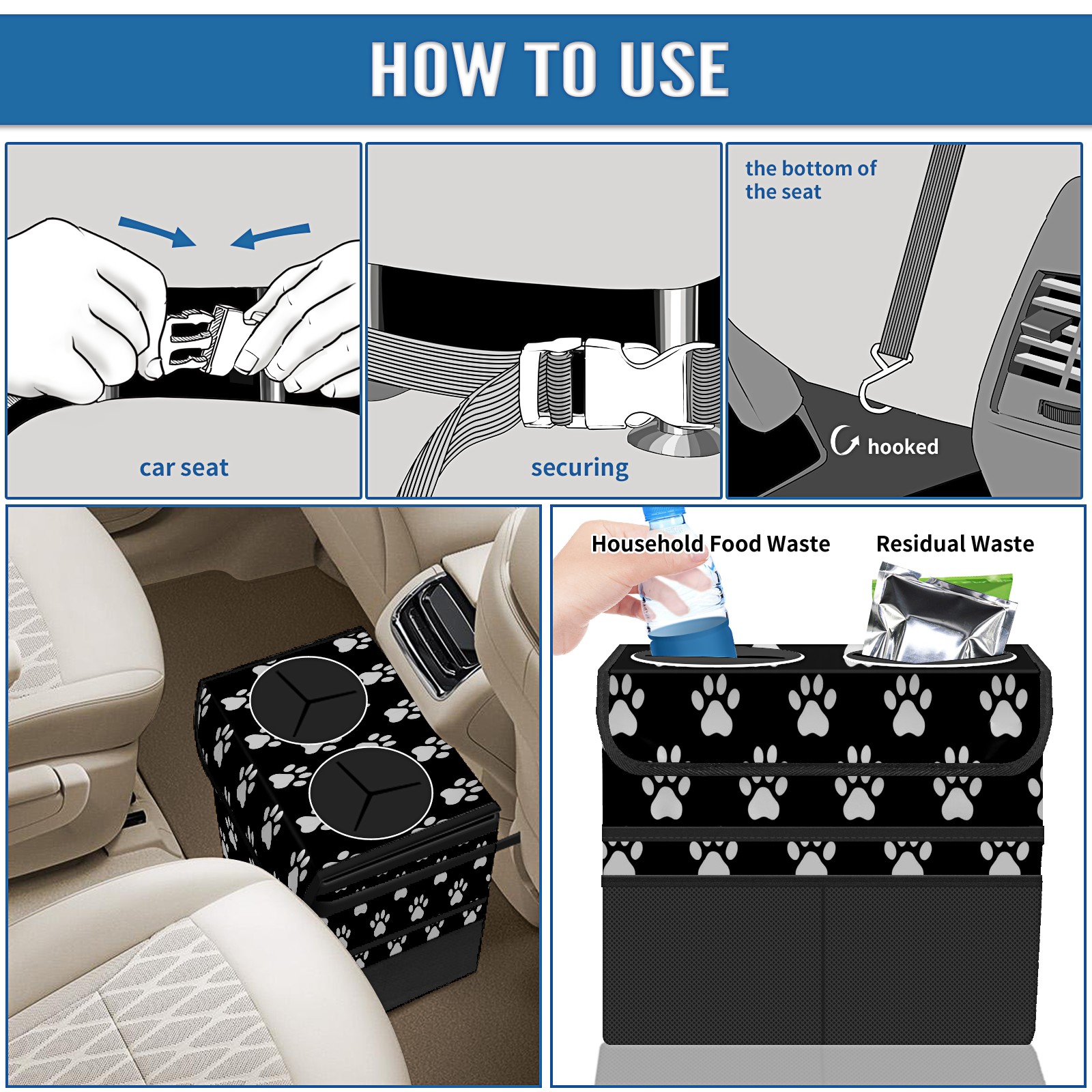 Car Trash Can with Lid, Portable Hanging Automotive Garbage Bin for Vehicles, Leakproof Waste Bag Container for SUV Truck Van Interior Auto Travel Road Trips(Paw Print)