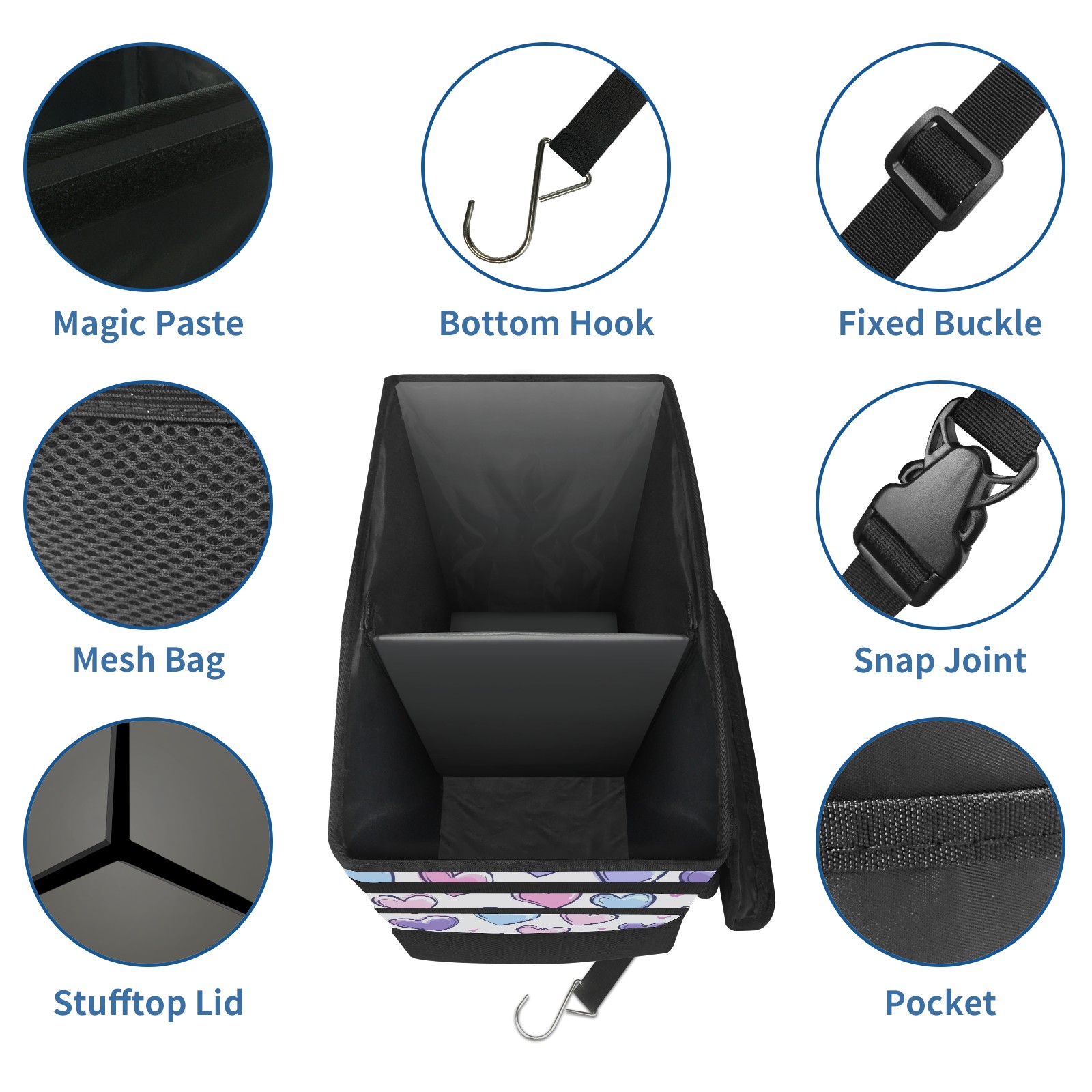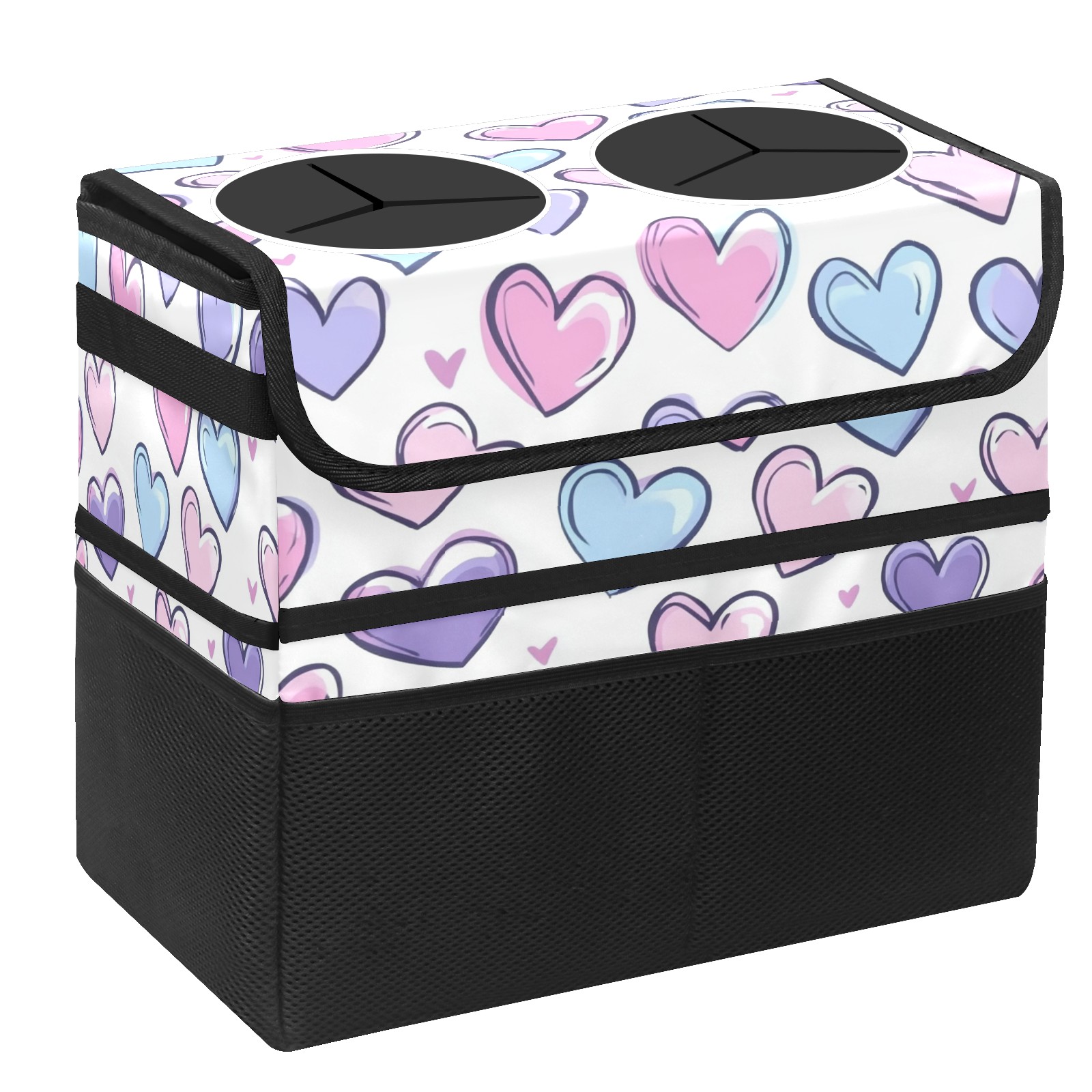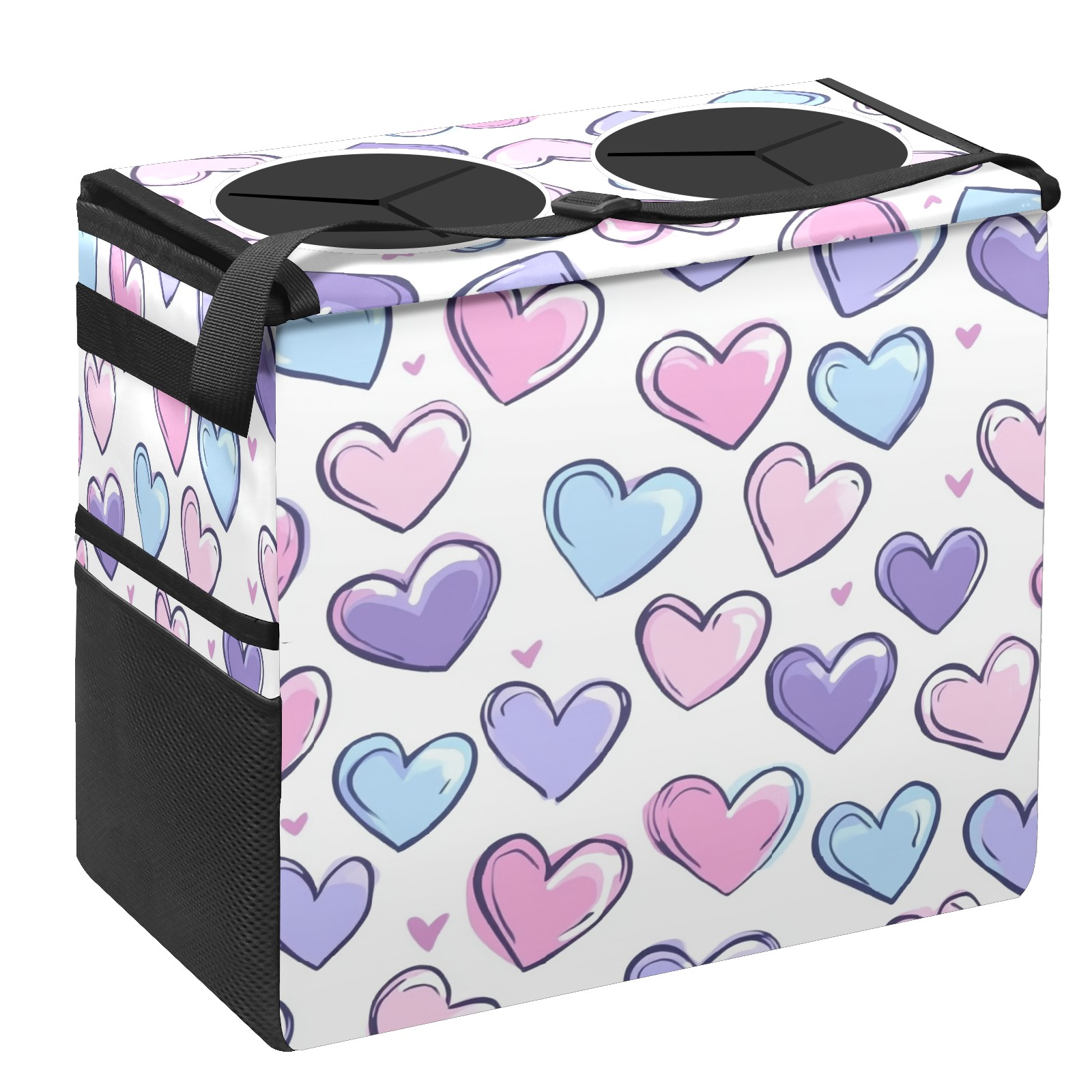 Car Trash Can with Lid, Portable Hanging Automotive Garbage Bin for Vehicles, Leakproof Waste Bag Container for SUV Truck Van Interior Auto Travel Road Trips(Colorful Hearts)