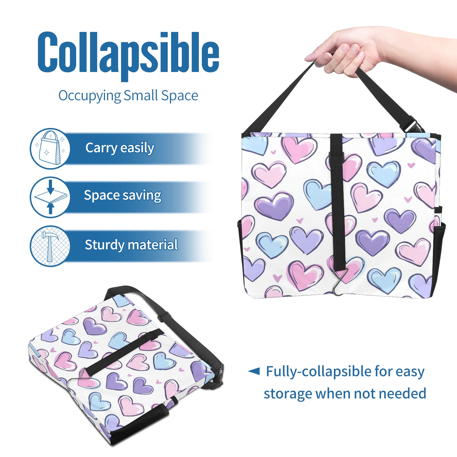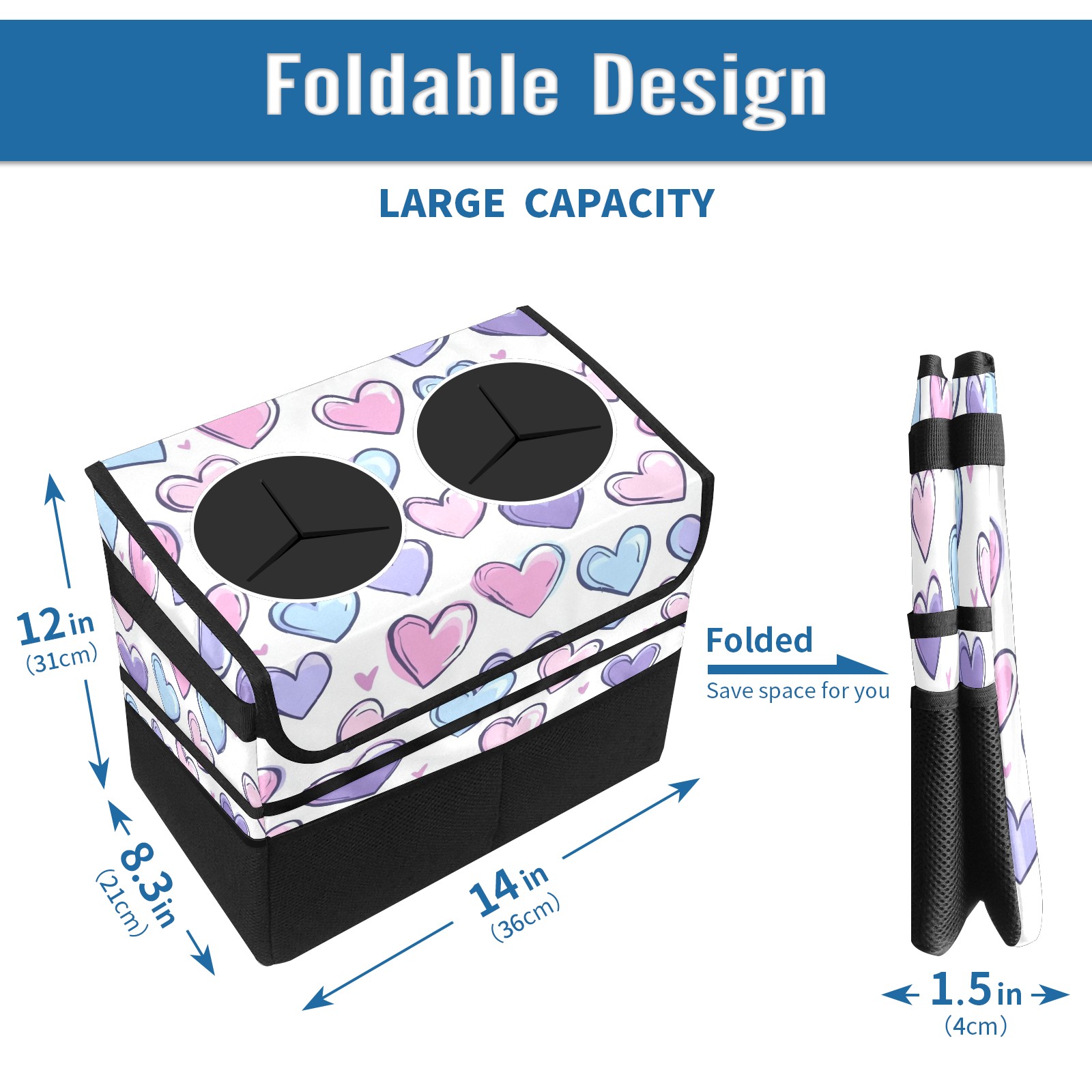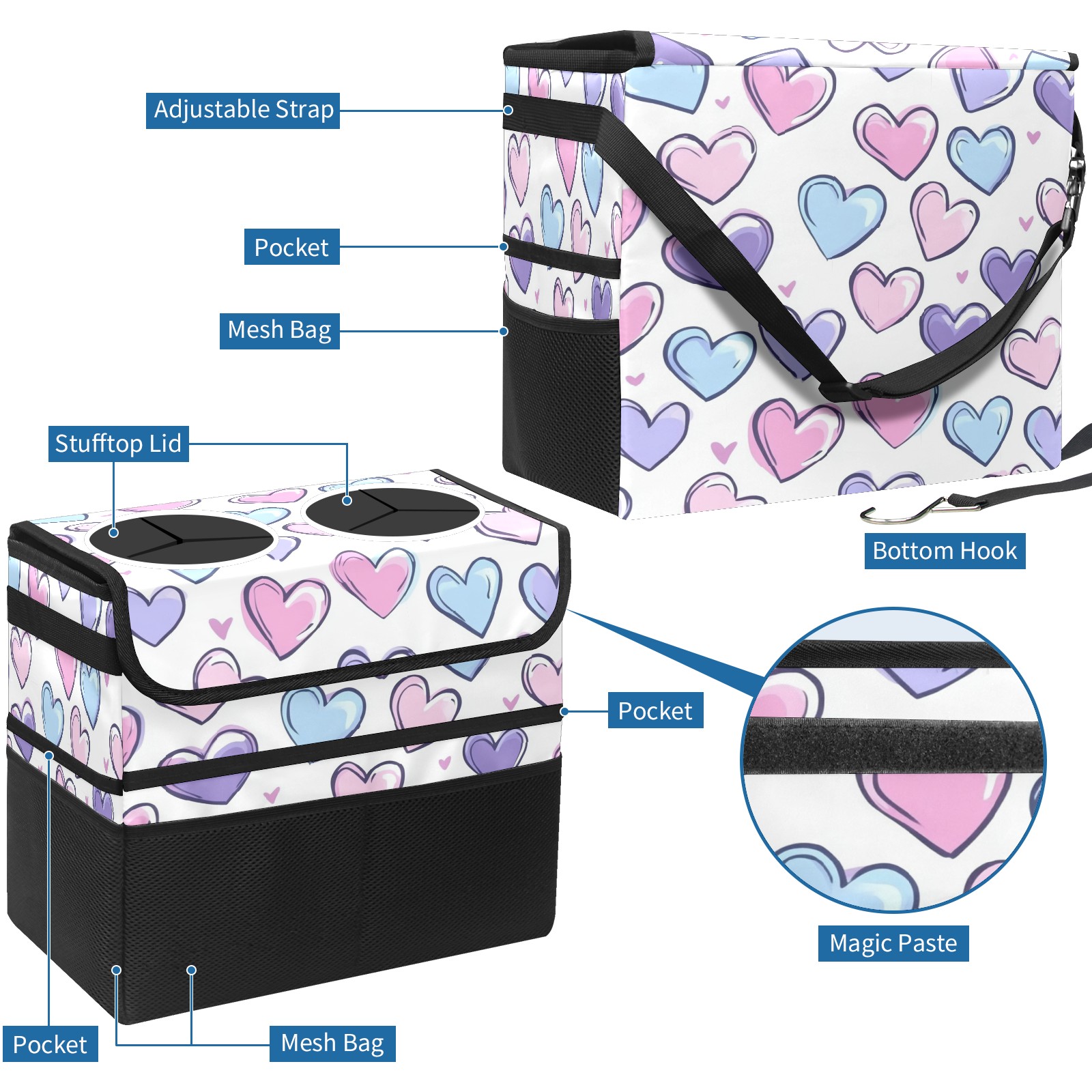 Car Trash Can with Lid, Portable Hanging Automotive Garbage Bin for Vehicles, Leakproof Waste Bag Container for SUV Truck Van Interior Auto Travel Road Trips(Colorful Hearts)