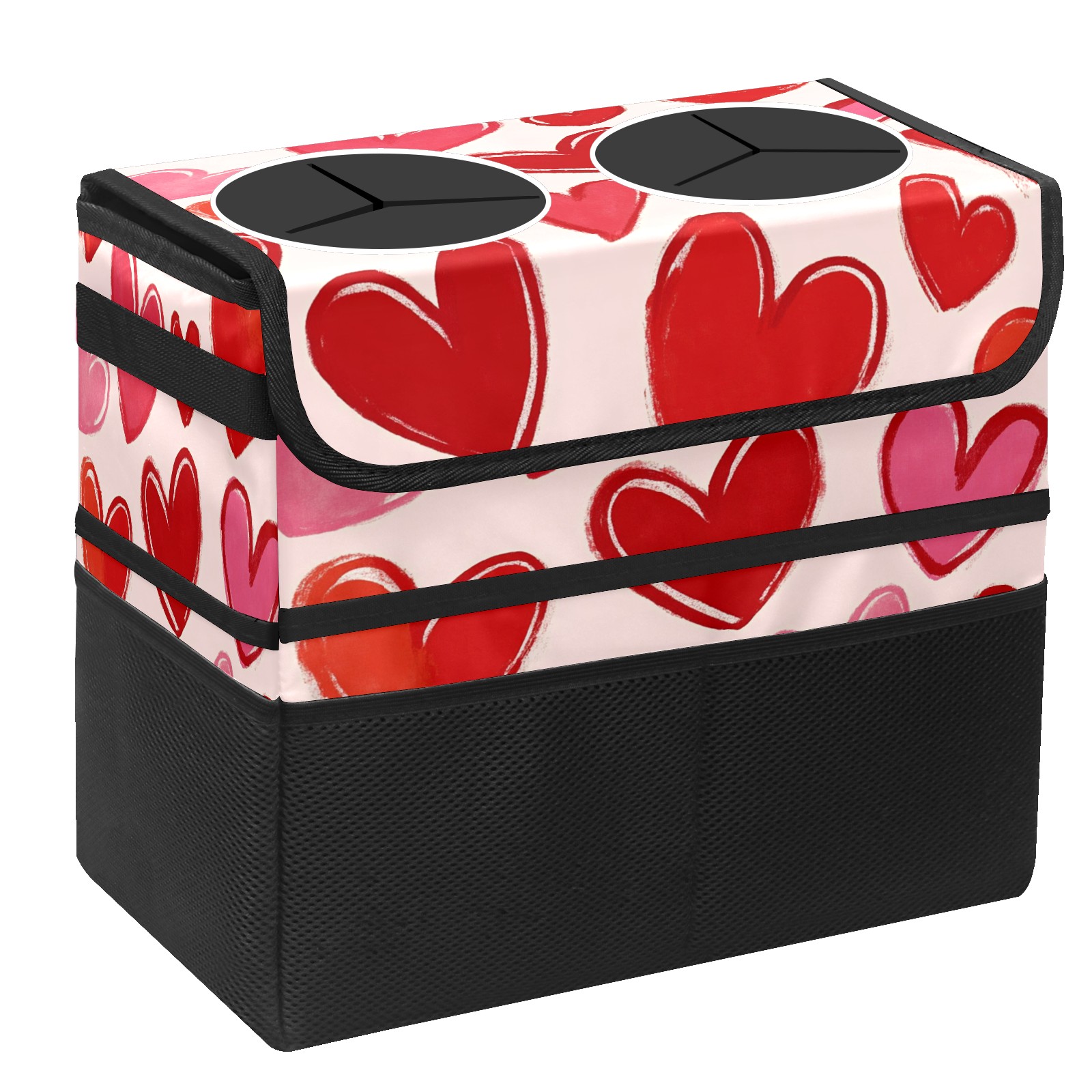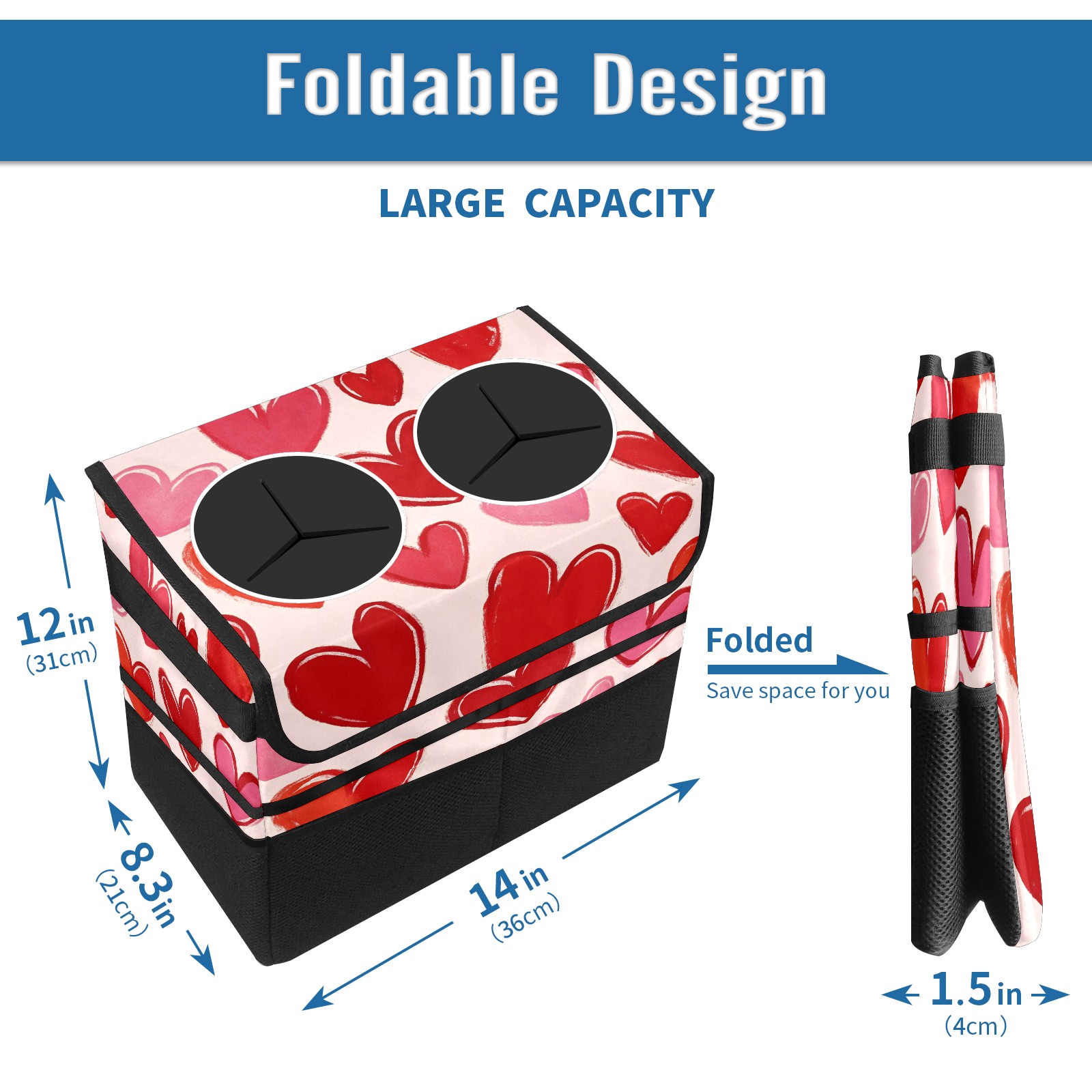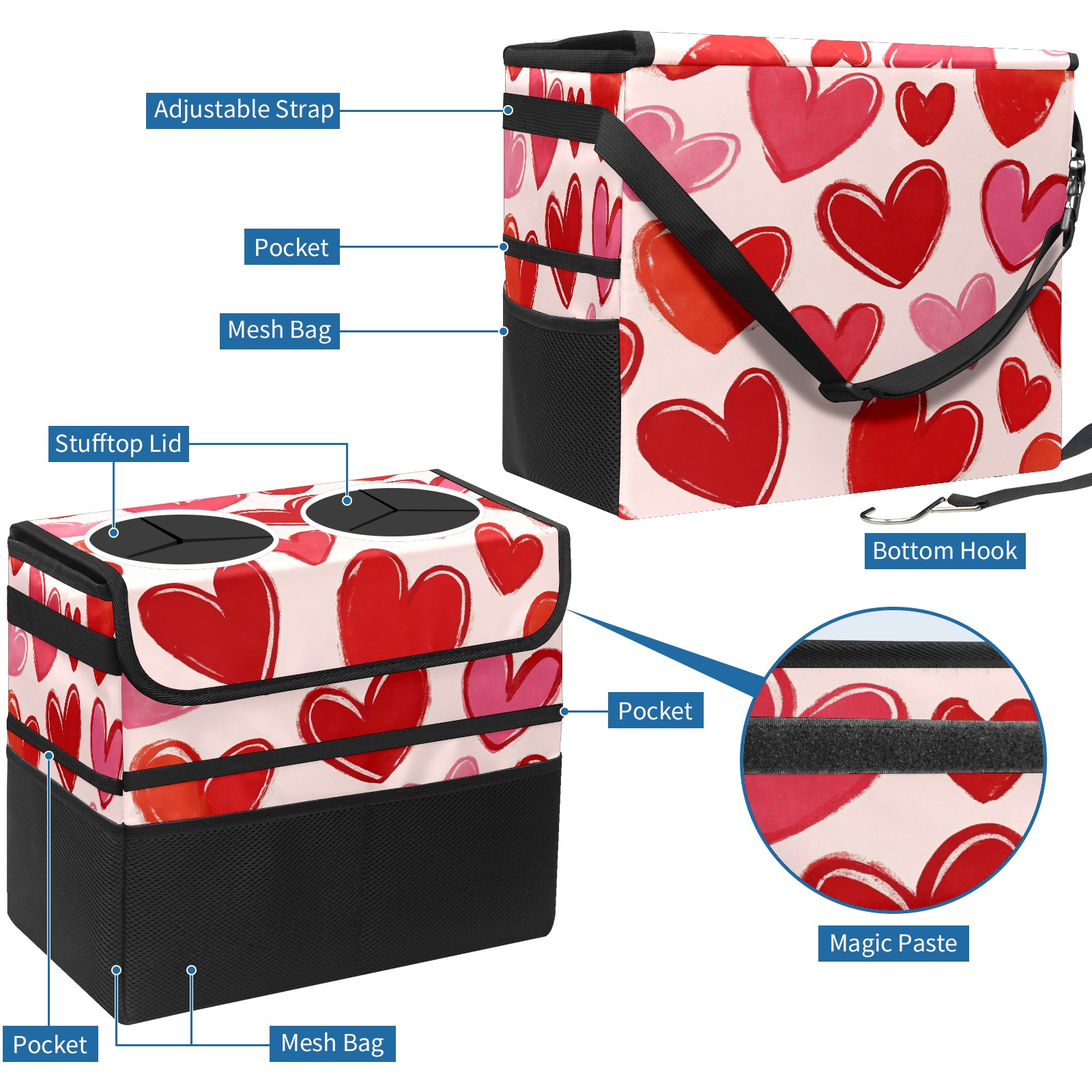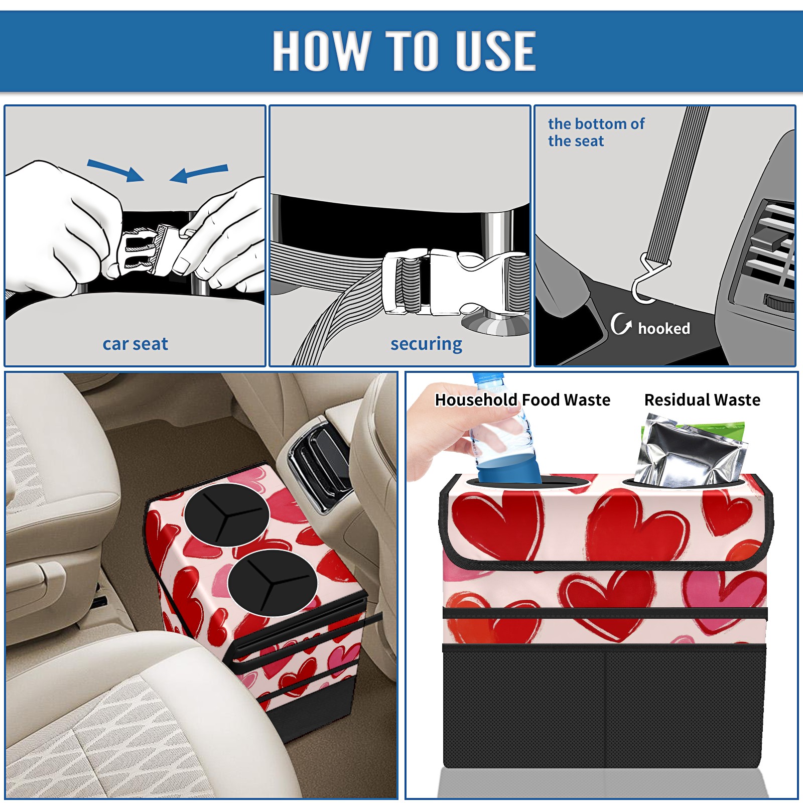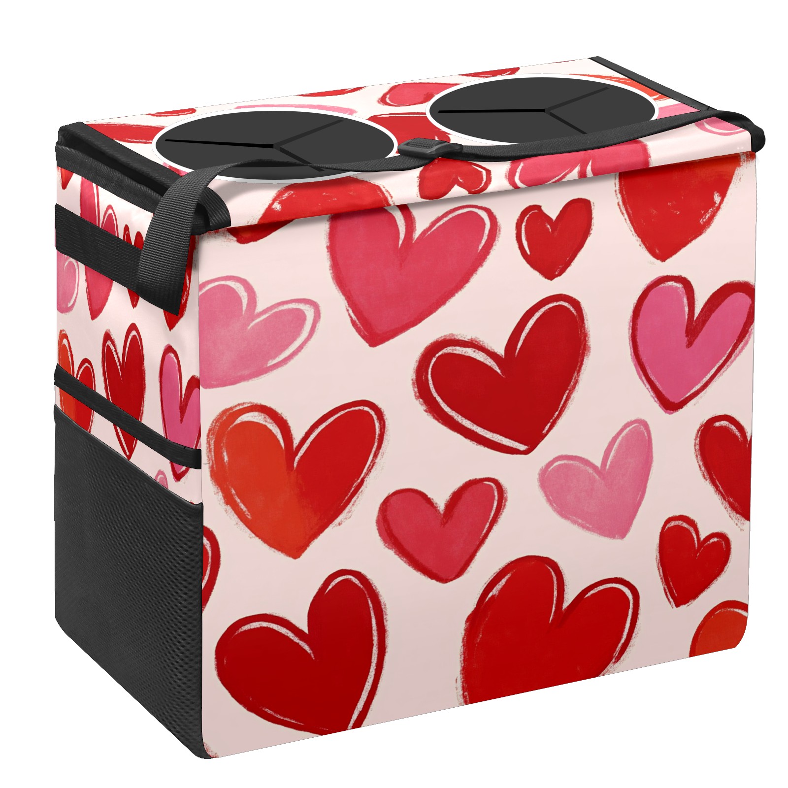 Car Trash Can with Lid, Portable Hanging Automotive Garbage Bin for Vehicles, Leakproof Waste Bag Container for SUV Truck Van Interior Auto Travel Road Trips(Red And Pink Hearts)